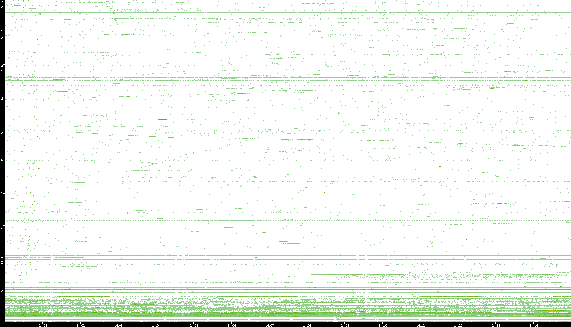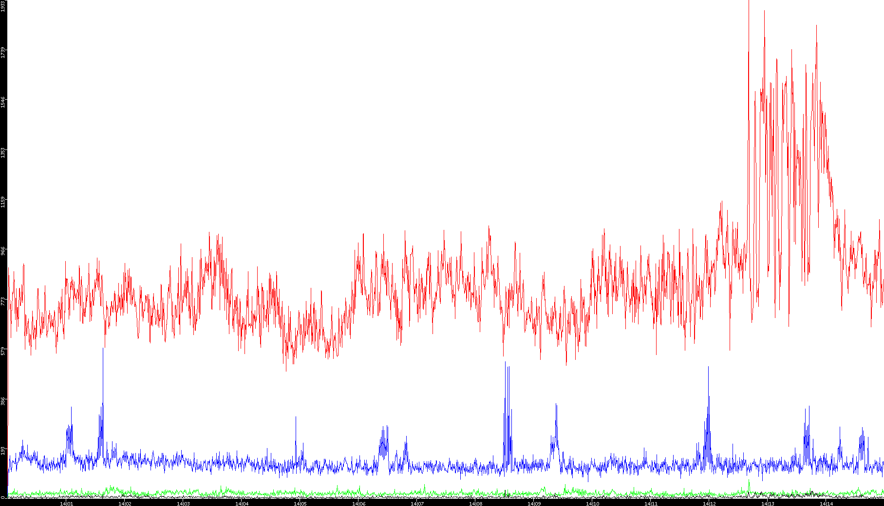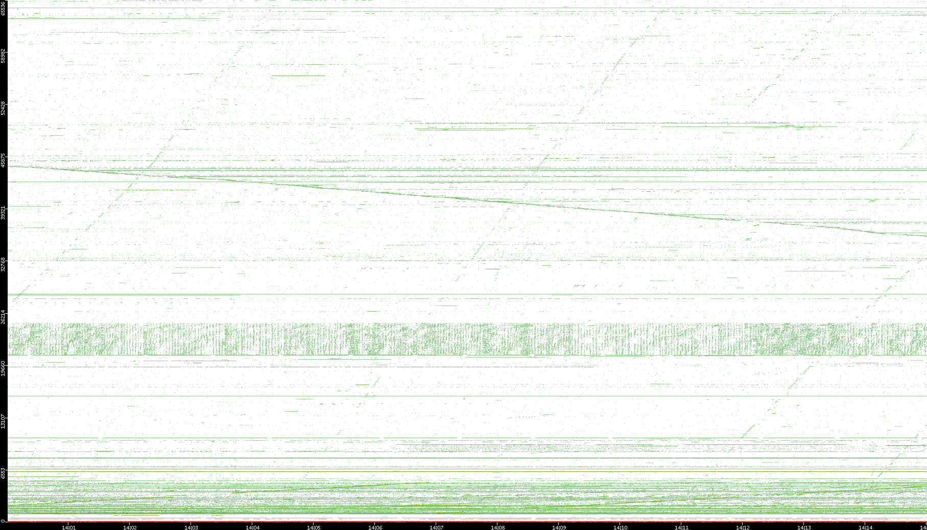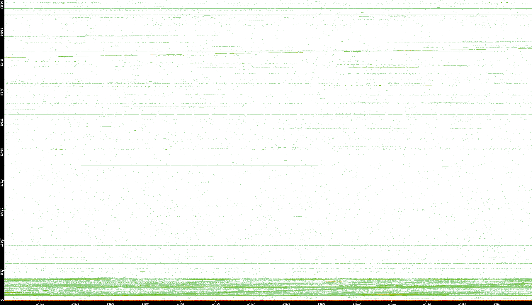 2001/01/14 Dest. IP vs. Time Dest. Port vs. Time Src. IP vs. Time Src. Port vs. Time Nb. of Packets vs. Time Throughput vs. Time Average Packet Size vs. Time Entropy of Port vs. Time