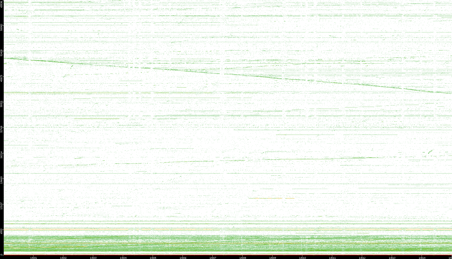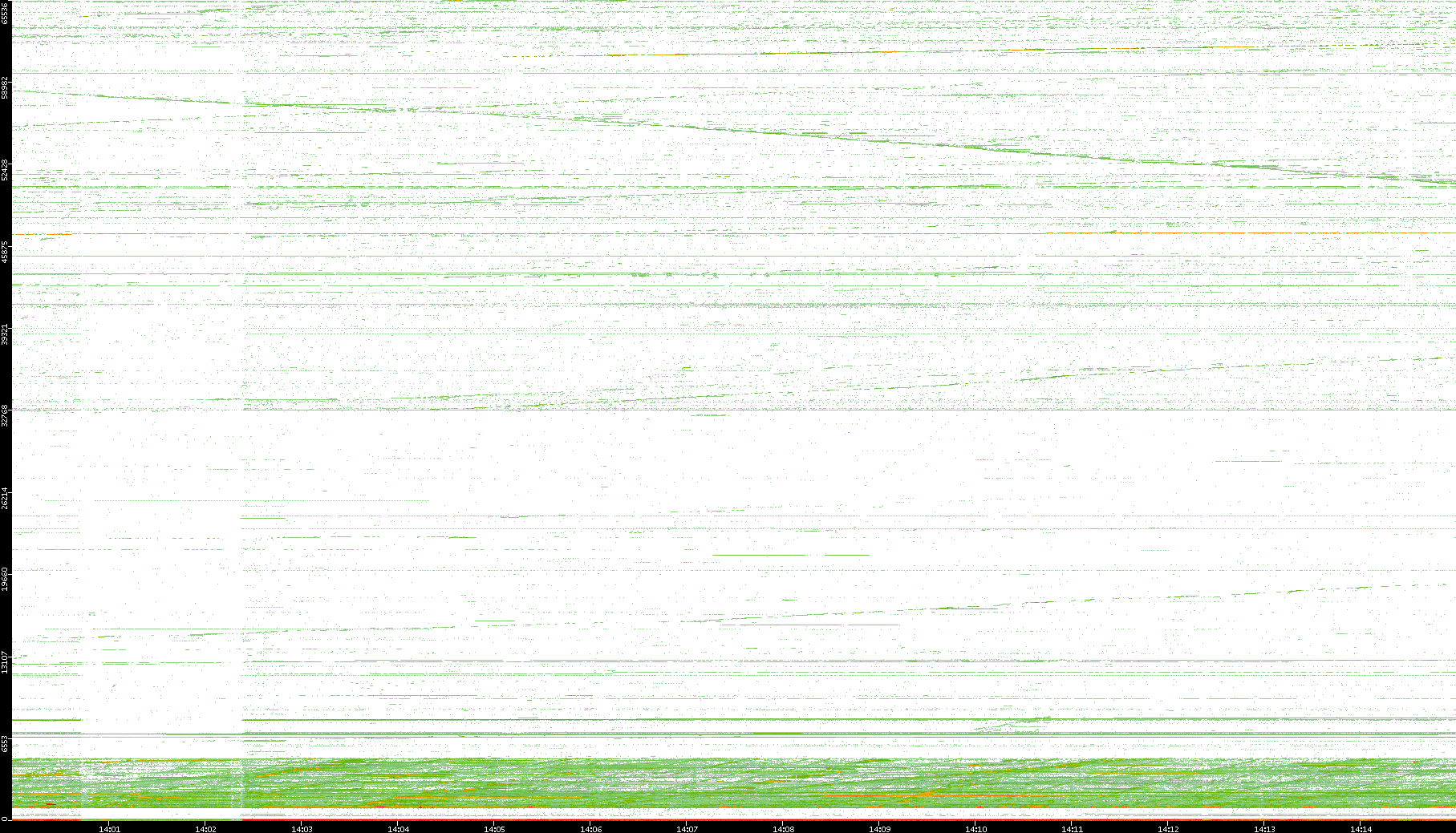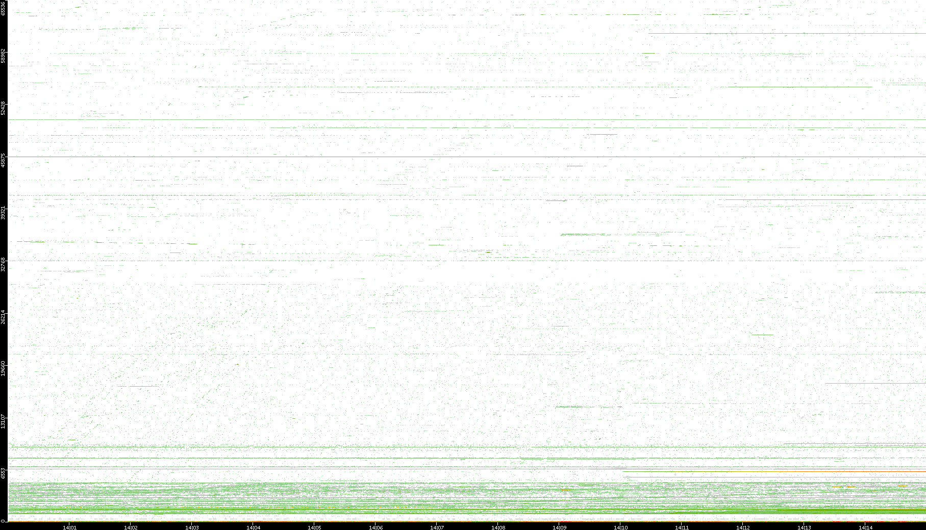 2001/01/14 Dest. IP vs. Time Dest. Port vs. Time Src. IP vs. Time Src. Port vs. Time Nb. of Packets vs. Time Throughput vs. Time Average Packet Size vs. Time Entropy of Port vs. Time