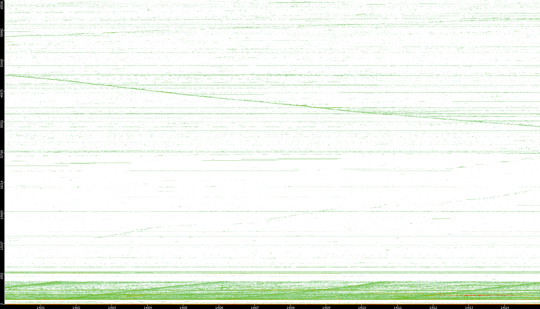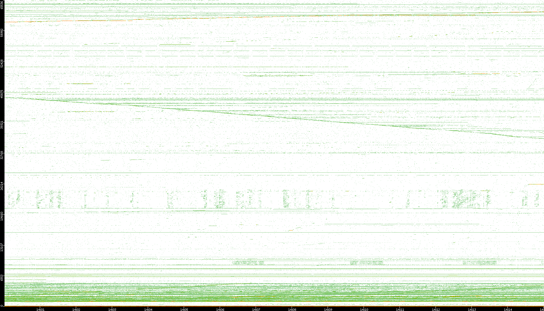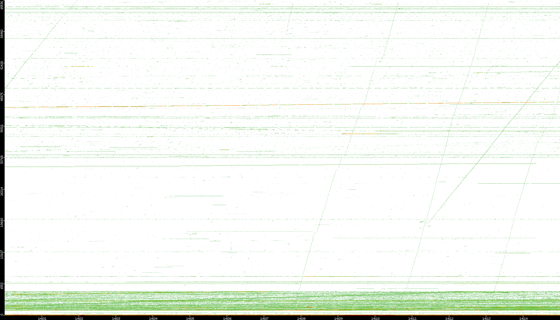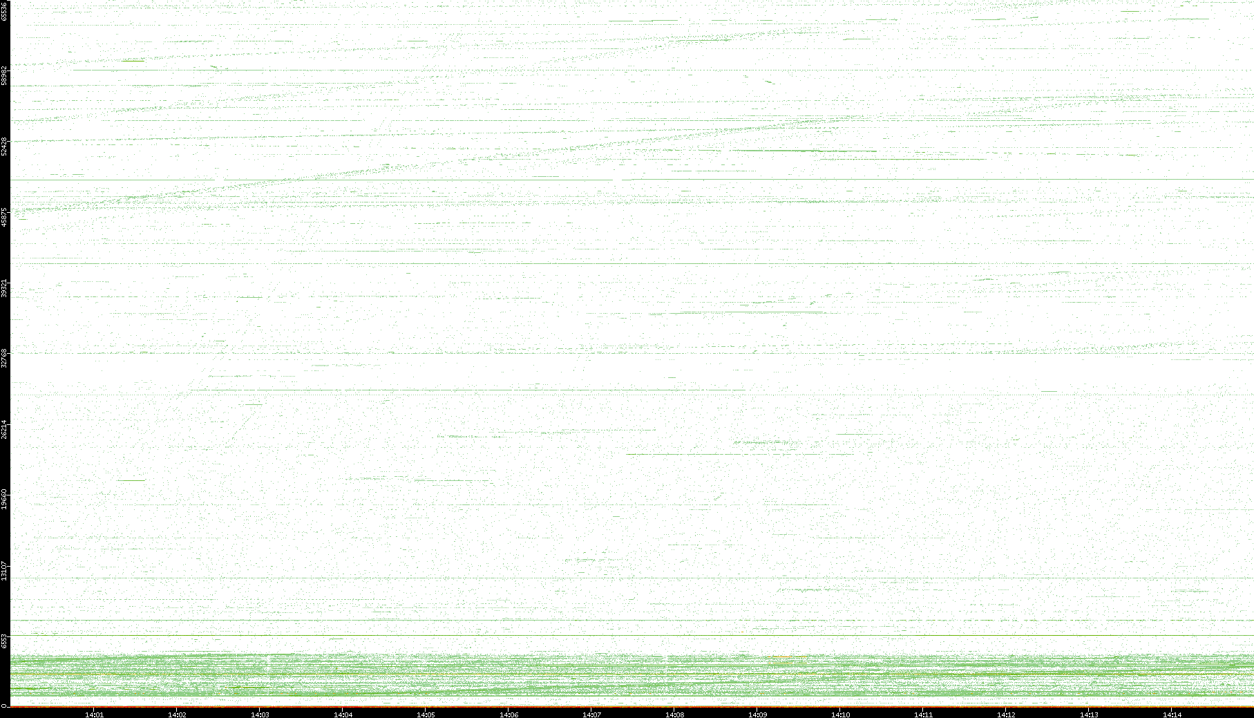 2001/01/14 Dest. IP vs. Time Dest. Port vs. Time Src. IP vs. Time Src. Port vs. Time Nb. of Packets vs. Time Throughput vs. Time Average Packet Size vs. Time Entropy of Port vs. Time