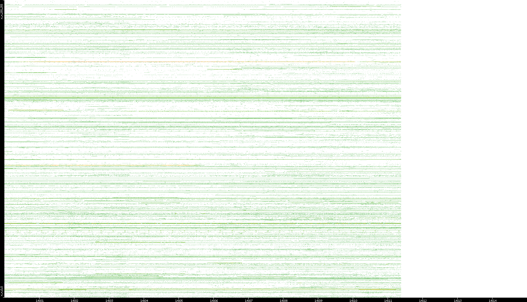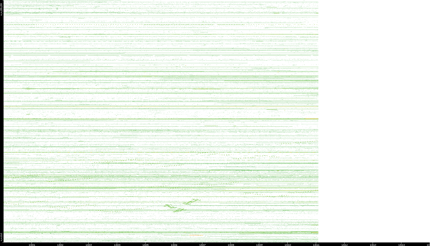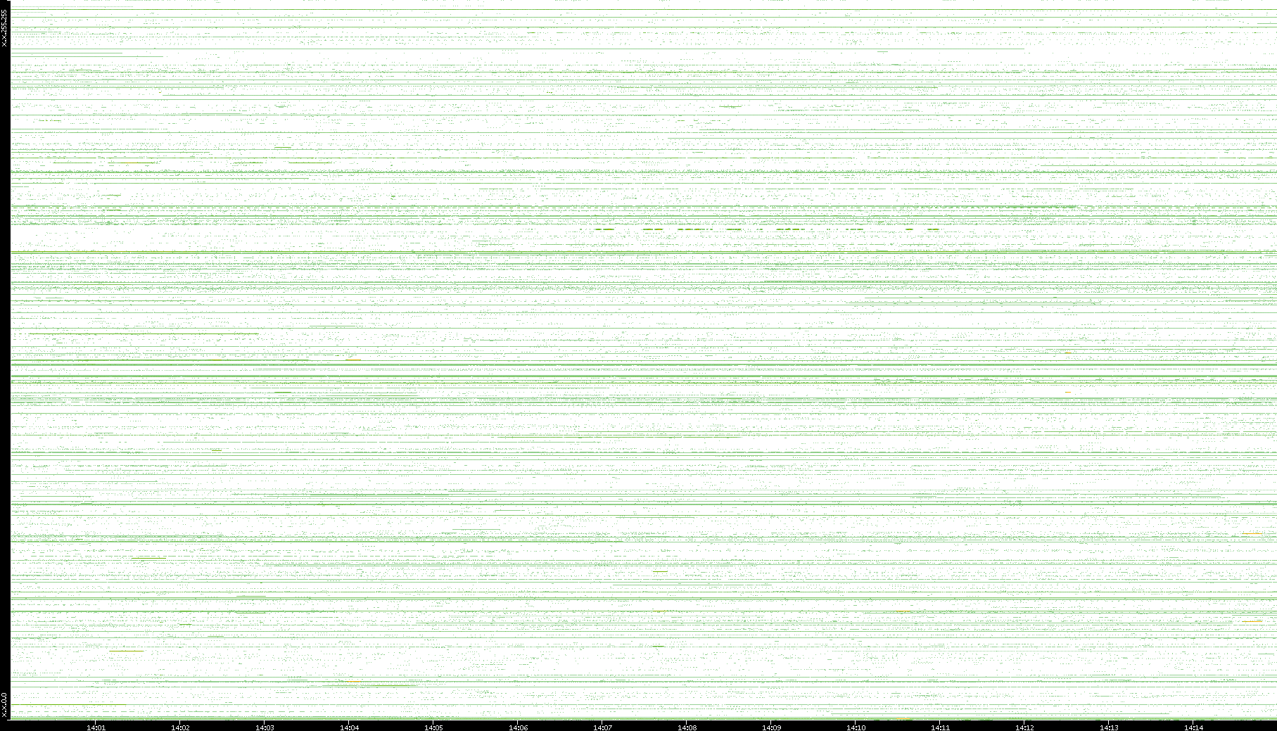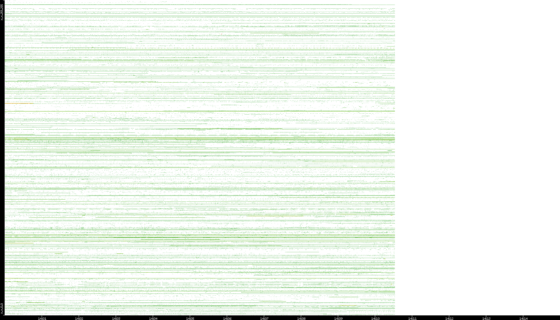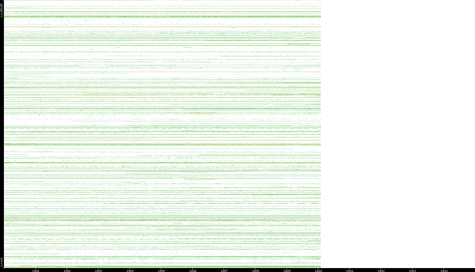 2001/05/14 Dest. IP vs. Time Dest. Port vs. Time Src. IP vs. Time Src. Port vs. Time Nb. of Packets vs. Time Throughput vs. Time Average Packet Size vs. Time Entropy of Port vs. Time