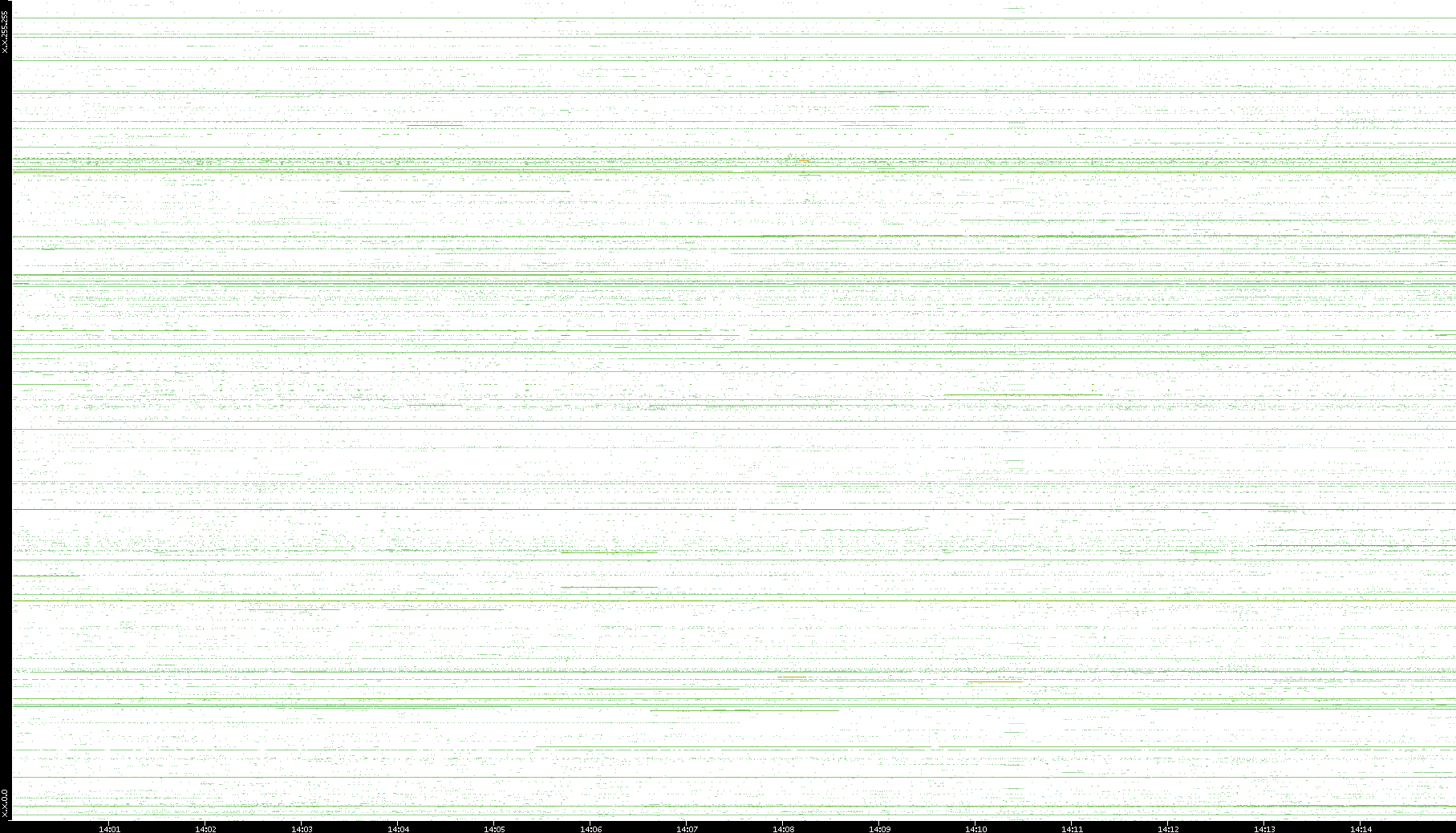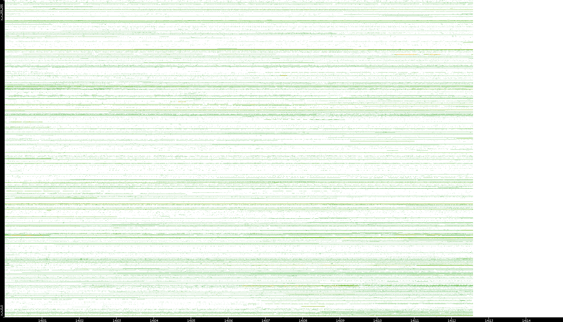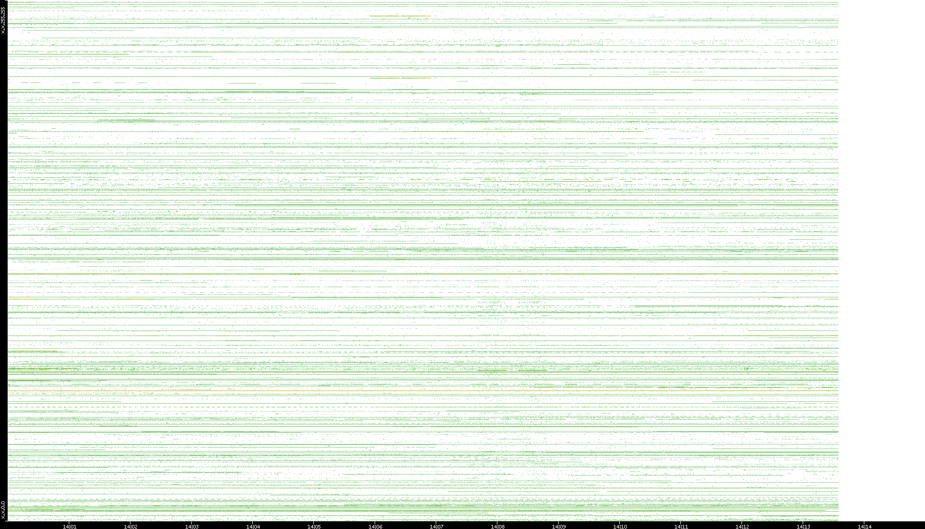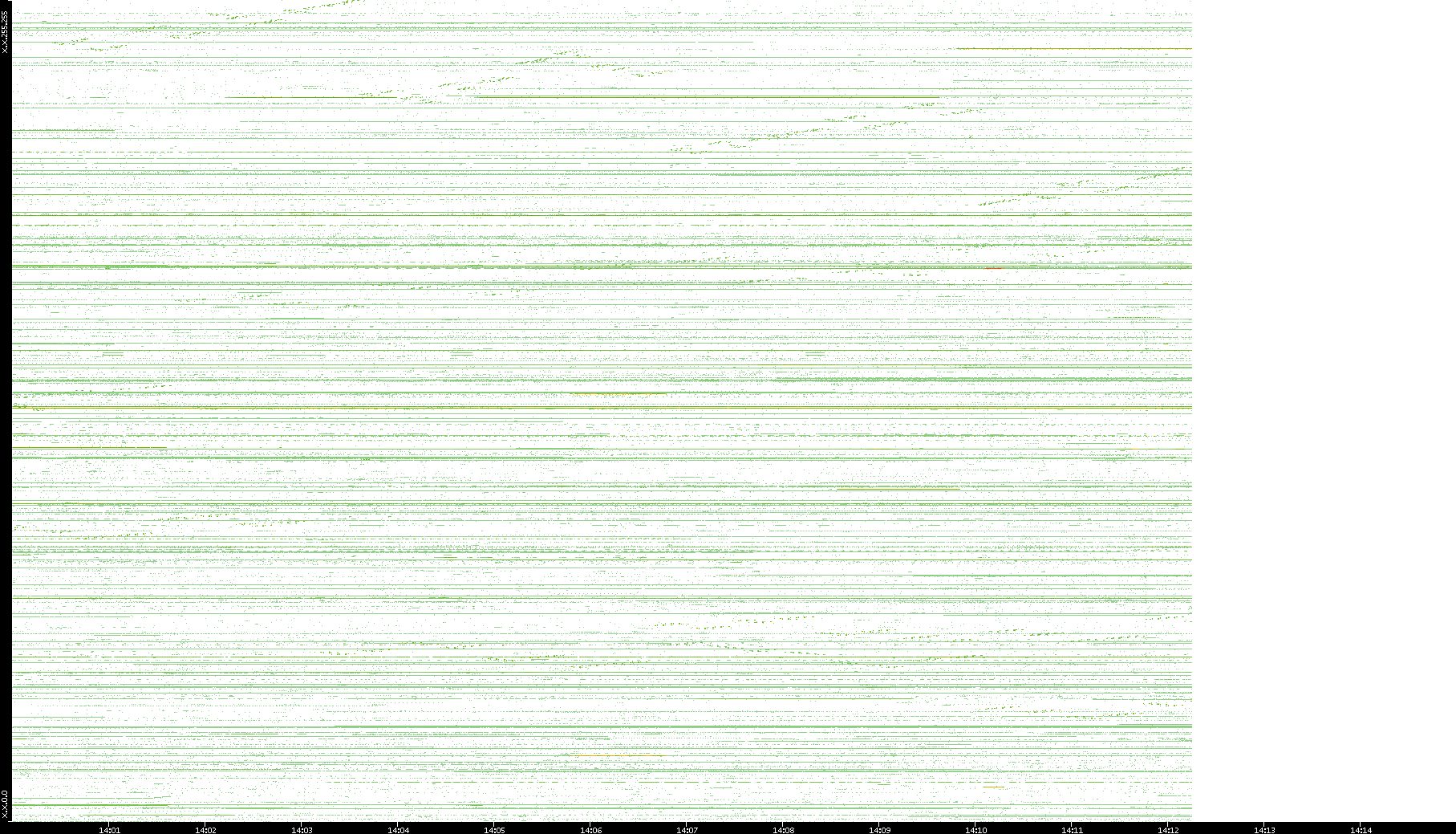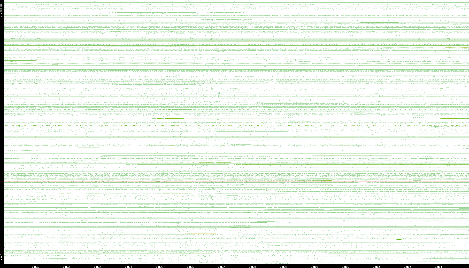 2001/05/14 Dest. IP vs. Time Dest. Port vs. Time Src. IP vs. Time Src. Port vs. Time Nb. of Packets vs. Time Throughput vs. Time Average Packet Size vs. Time Entropy of Port vs. Time