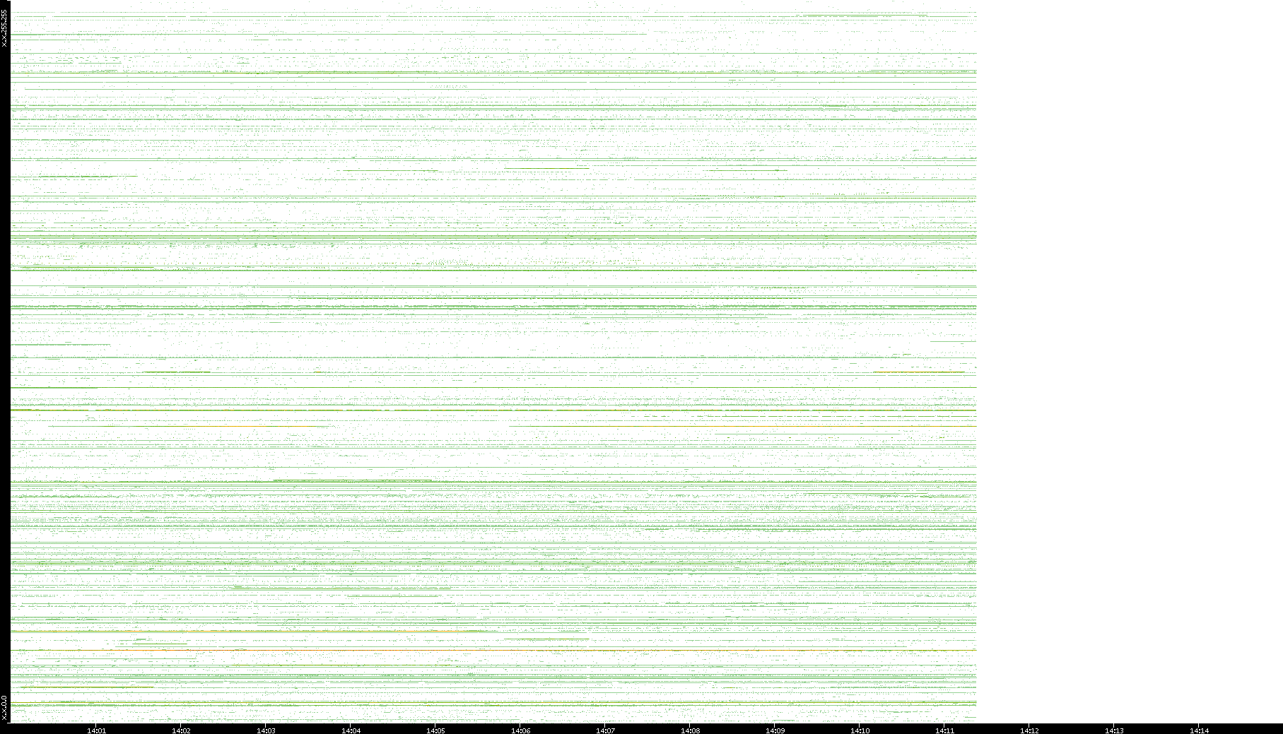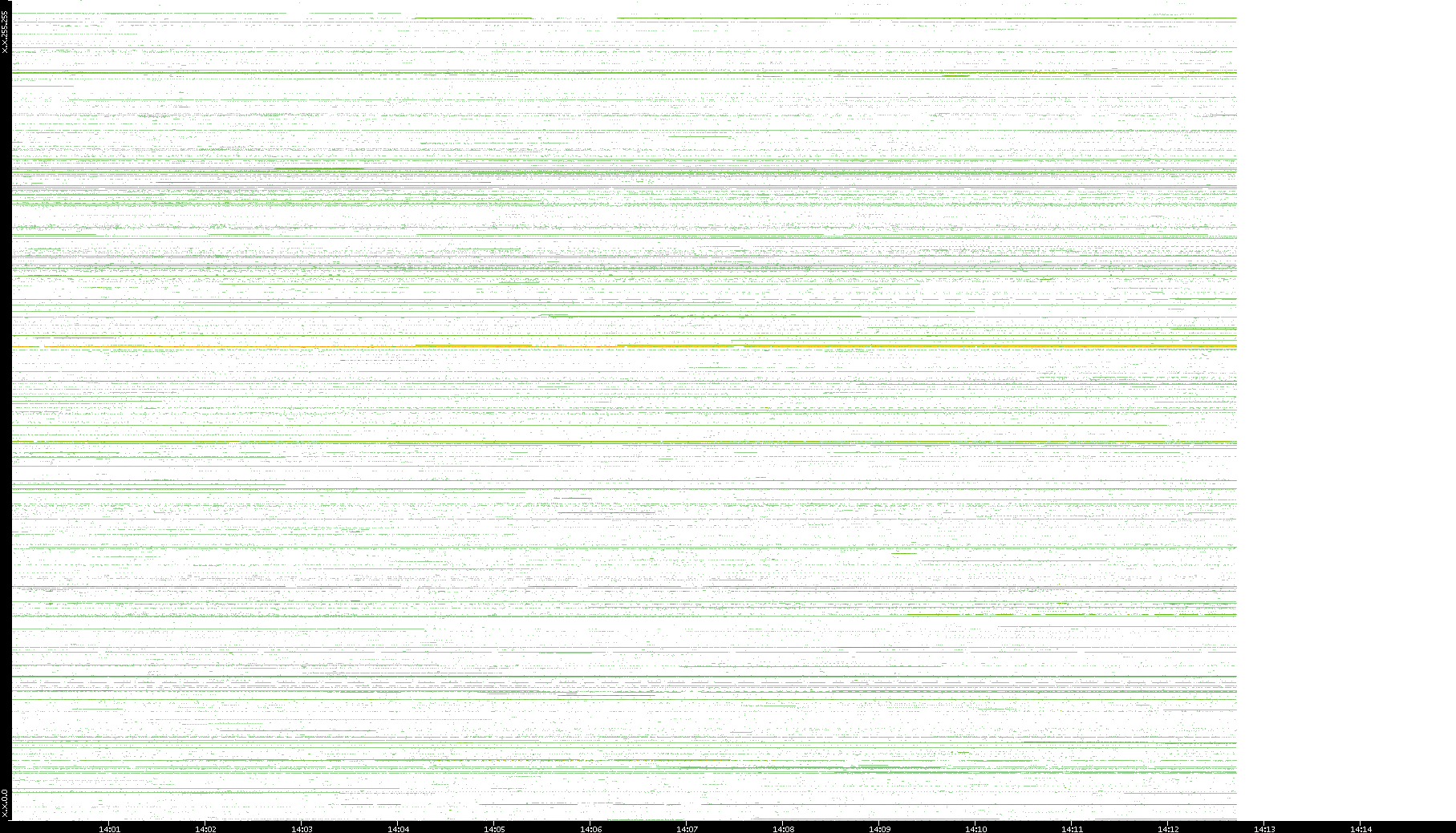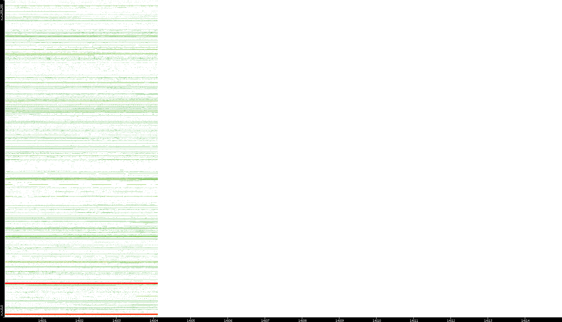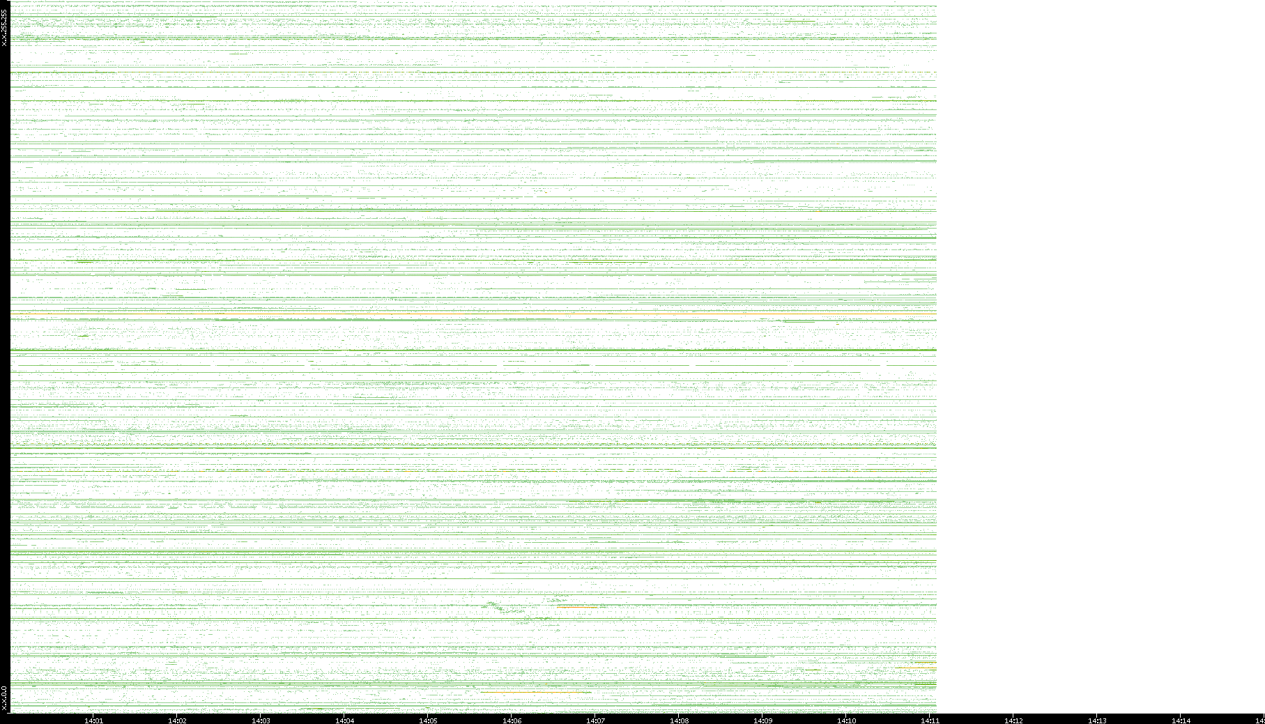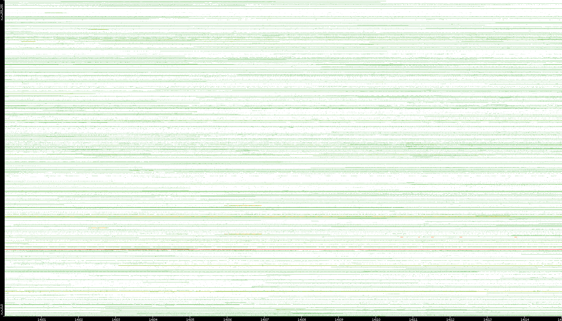 2001/05/14 Dest. IP vs. Time Dest. Port vs. Time Src. IP vs. Time Src. Port vs. Time Nb. of Packets vs. Time Throughput vs. Time Average Packet Size vs. Time Entropy of Port vs. Time