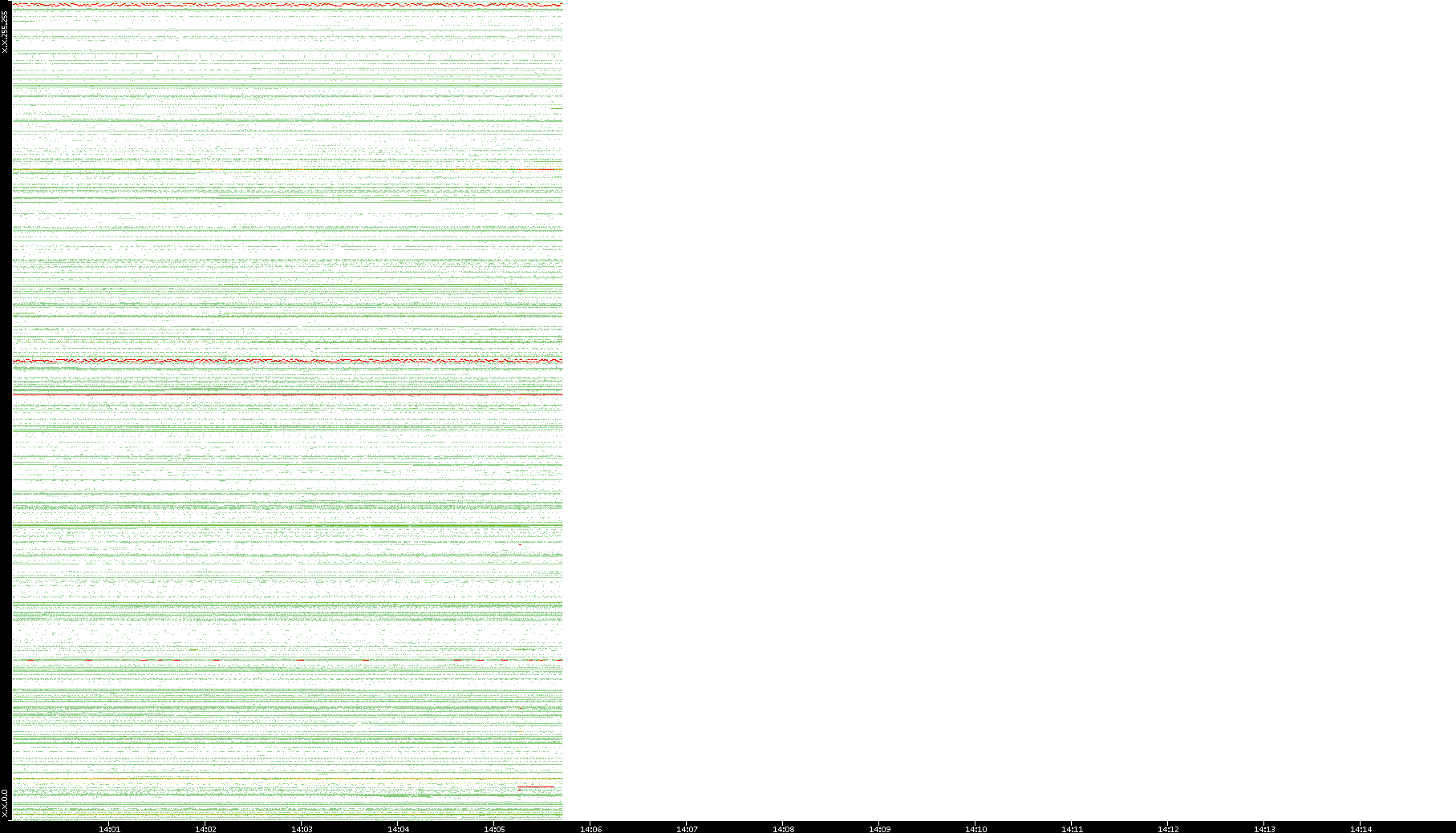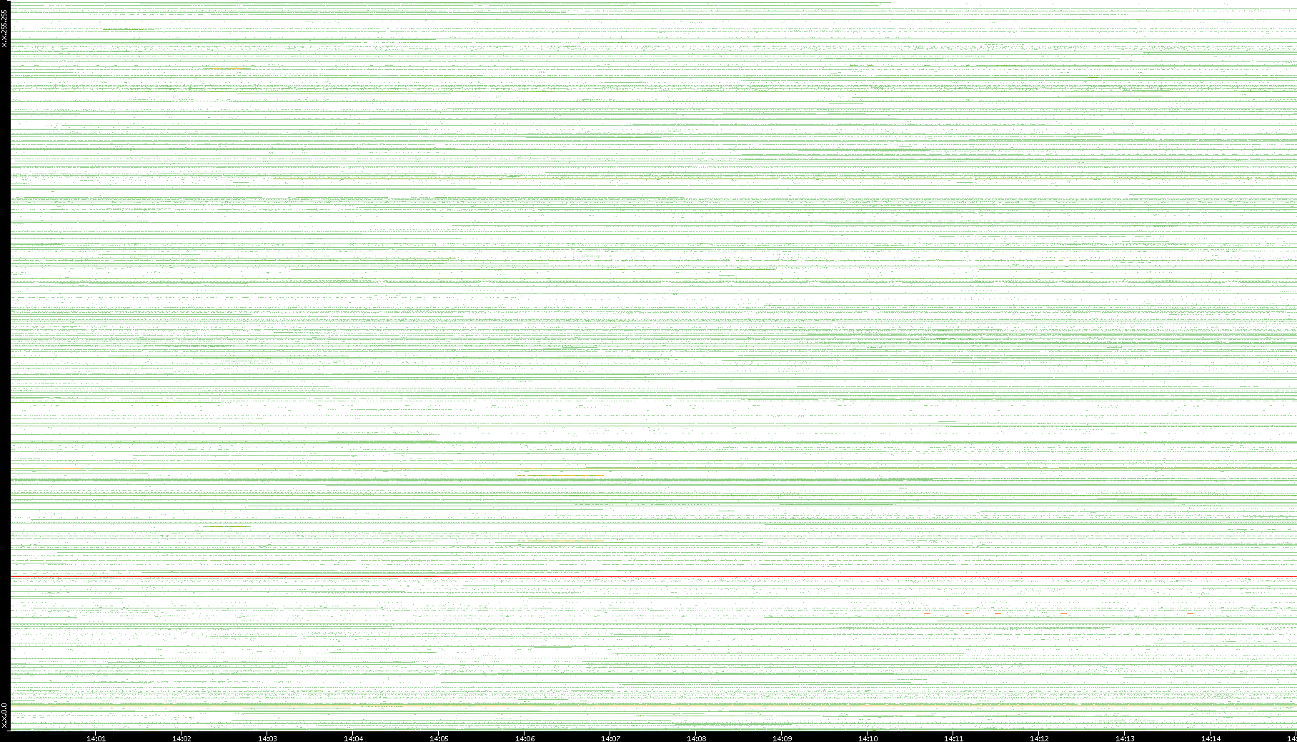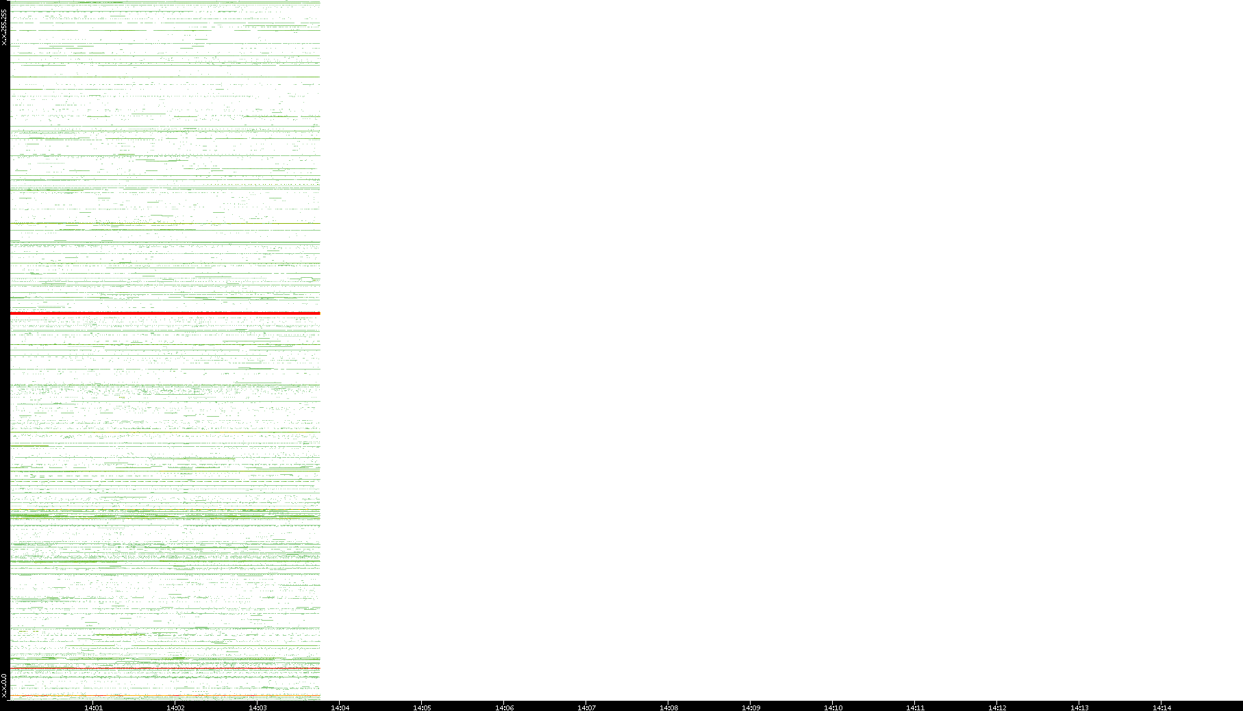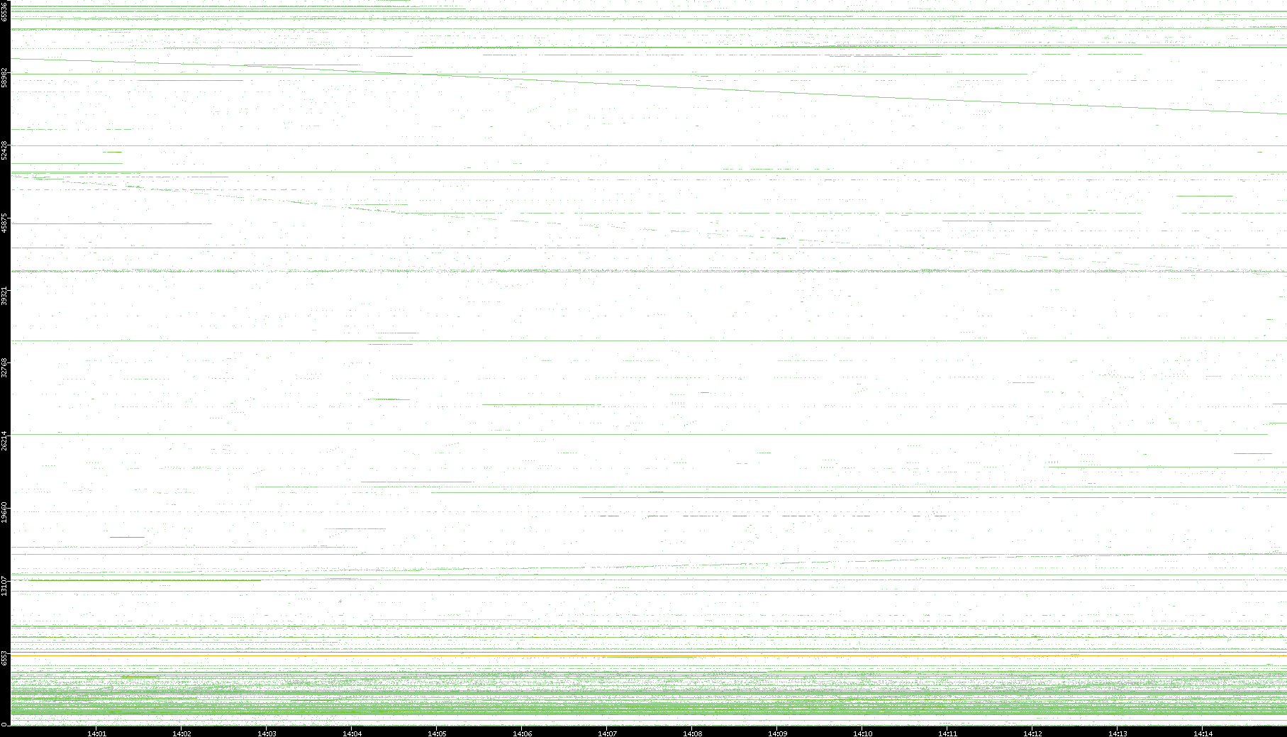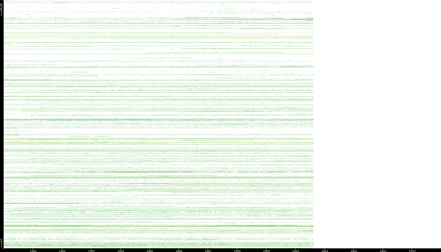 2001/05/14 Dest. IP vs. Time Dest. Port vs. Time Src. IP vs. Time Src. Port vs. Time Nb. of Packets vs. Time Throughput vs. Time Average Packet Size vs. Time Entropy of Port vs. Time