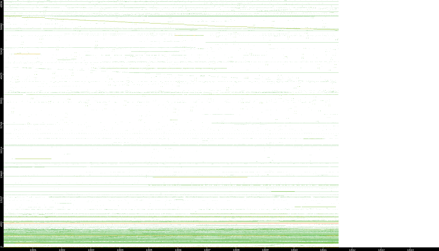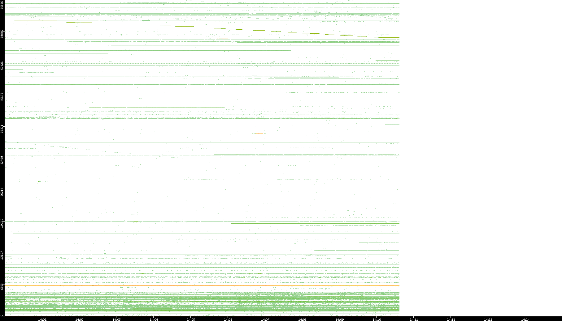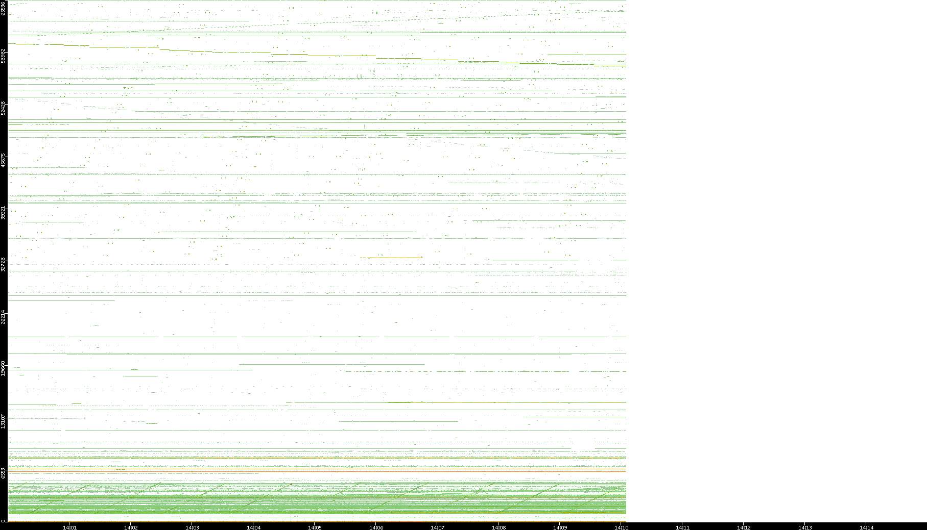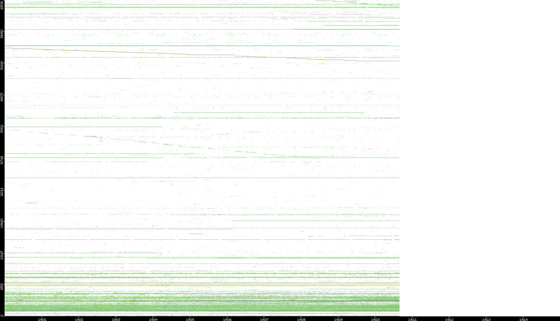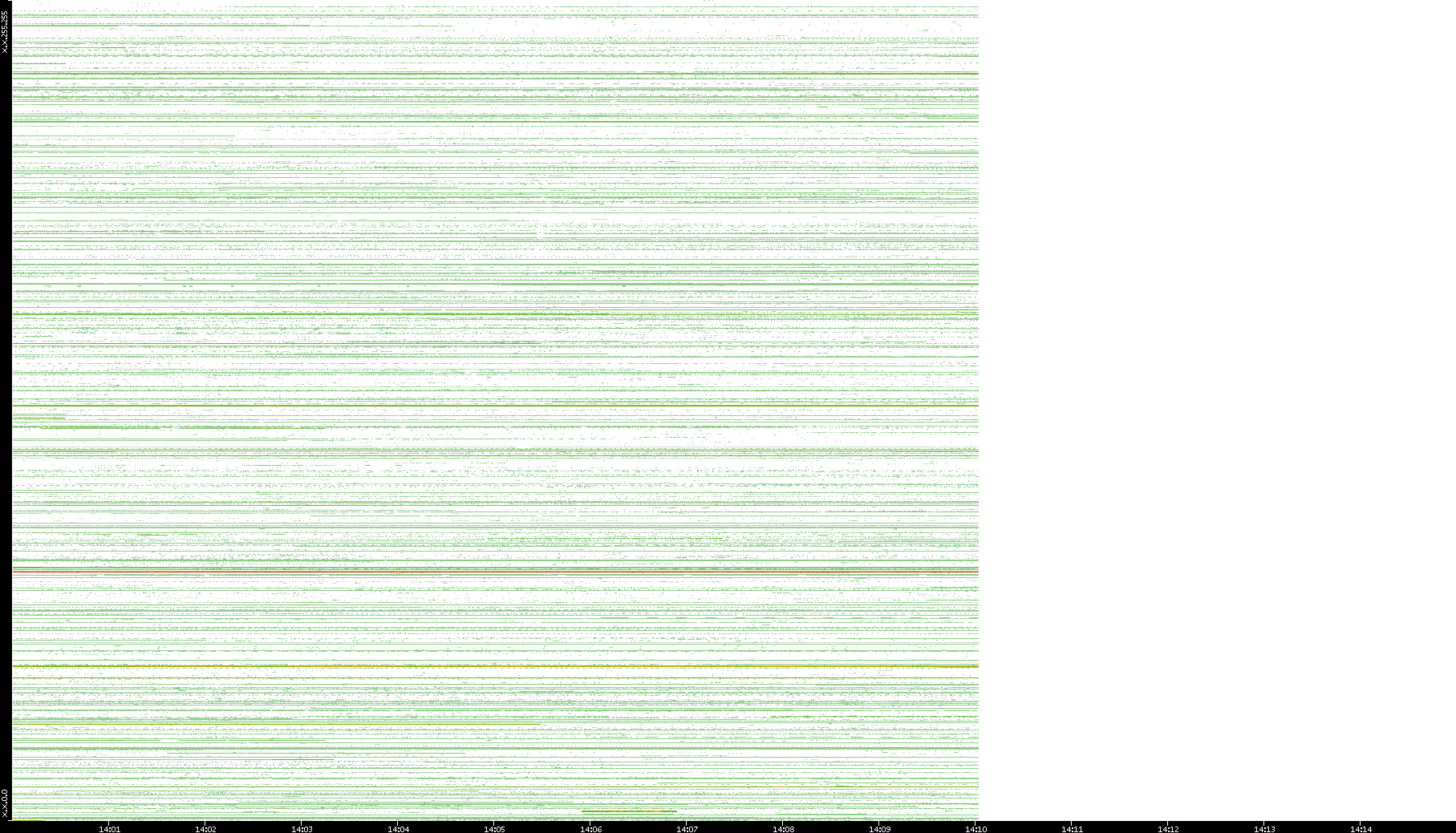 2001/05/14 Dest. IP vs. Time Dest. Port vs. Time Src. IP vs. Time Src. Port vs. Time Nb. of Packets vs. Time Throughput vs. Time Average Packet Size vs. Time Entropy of Port vs. Time