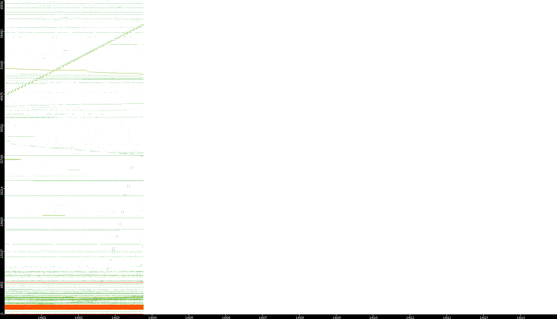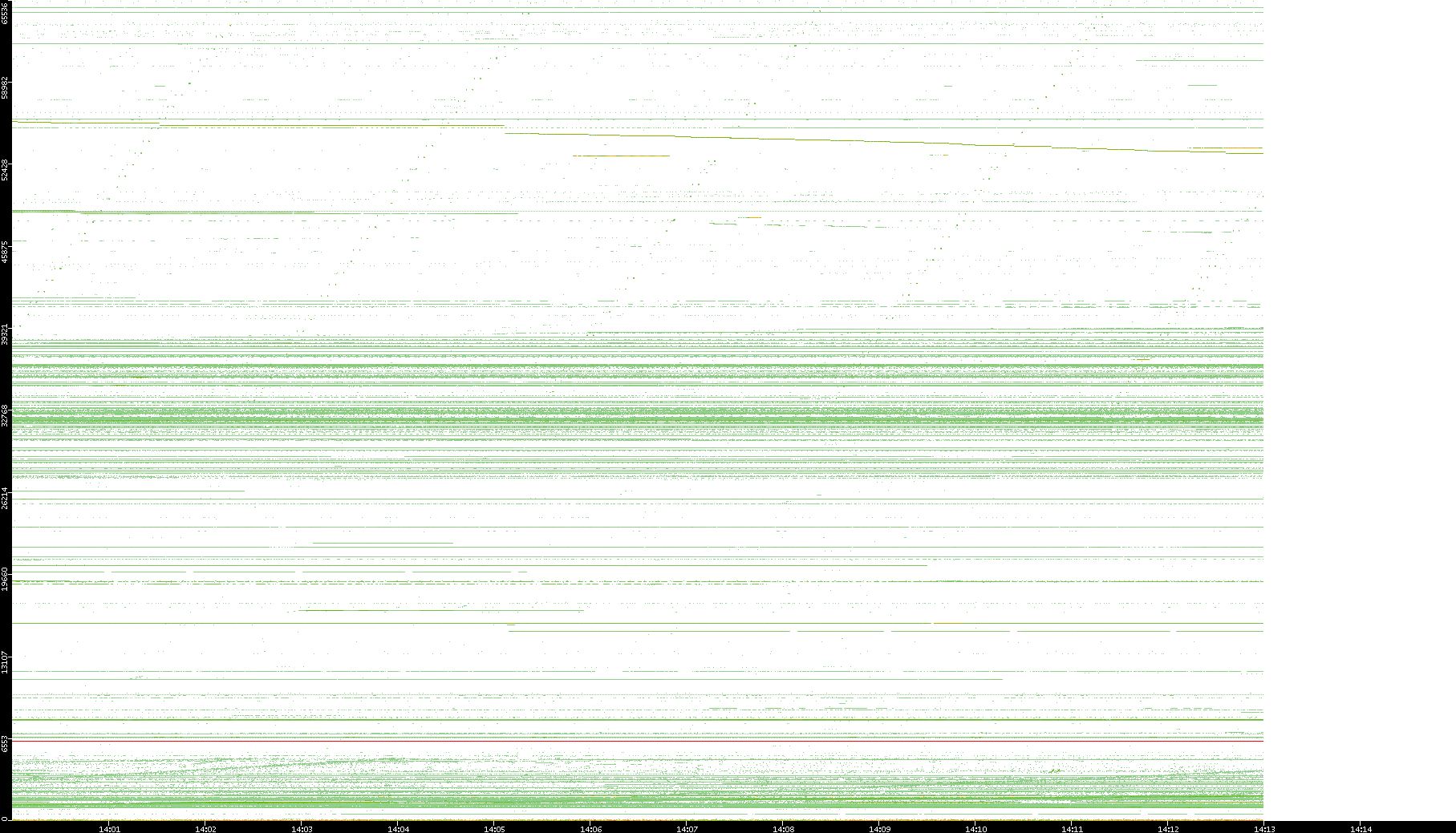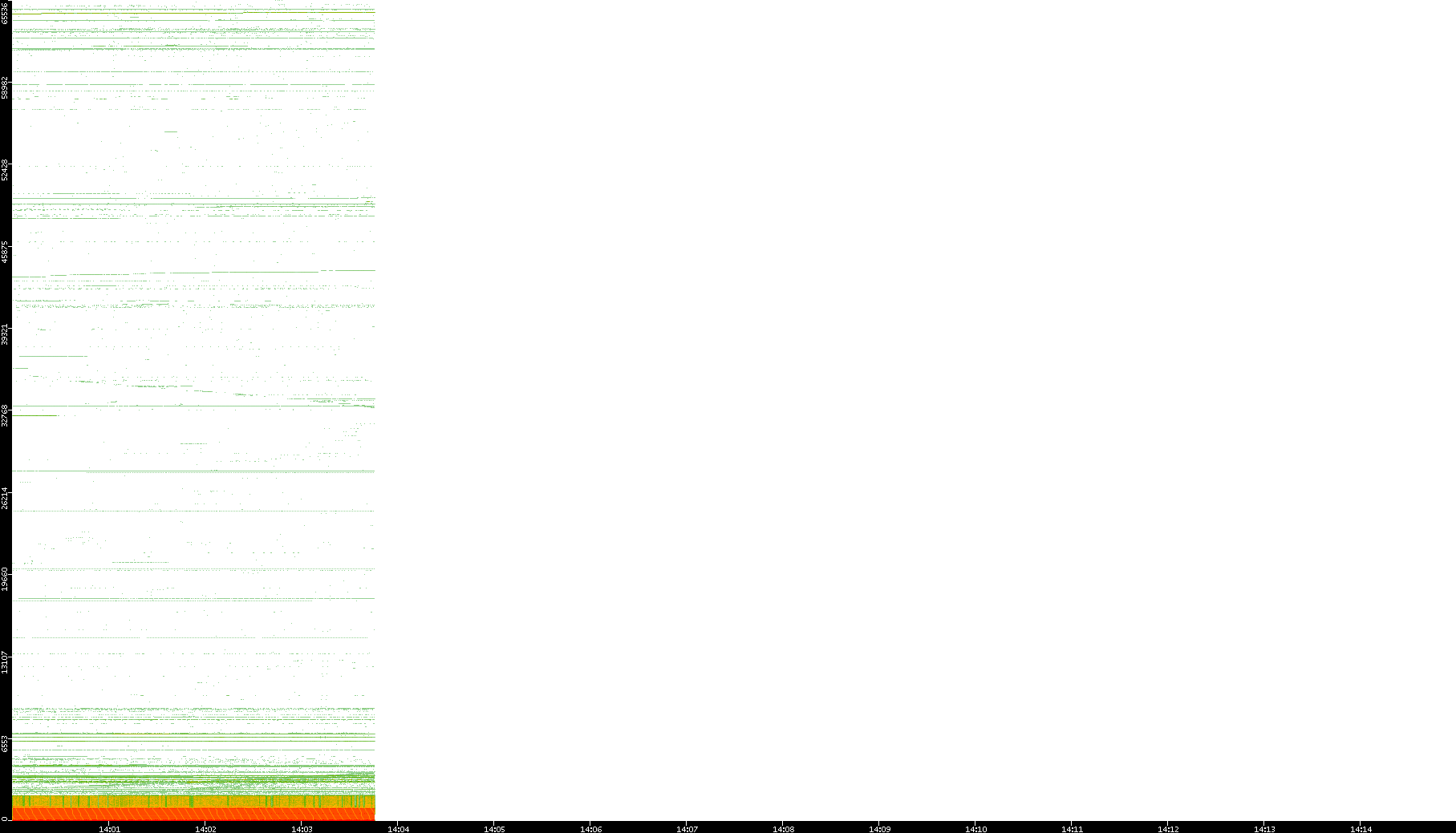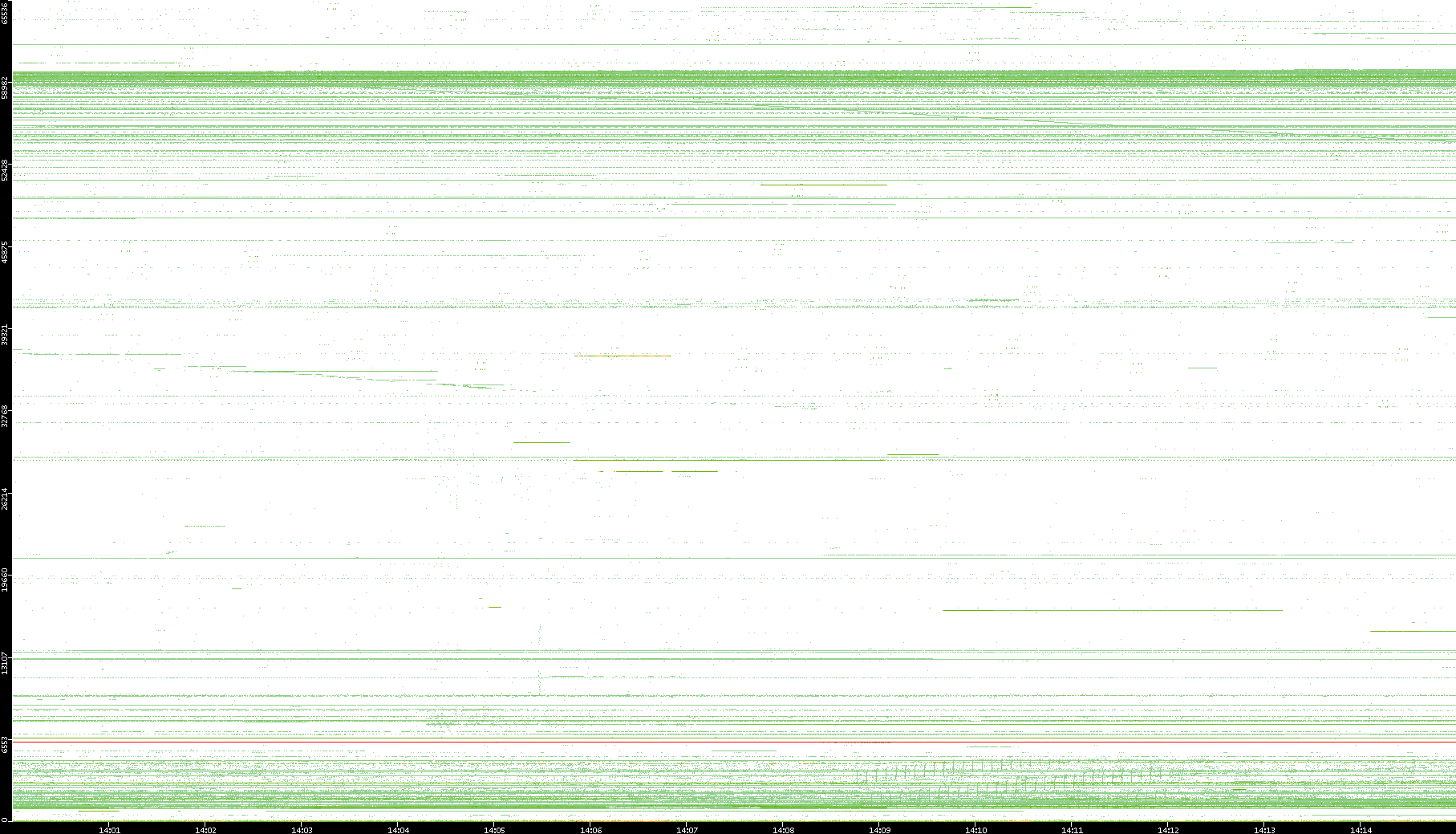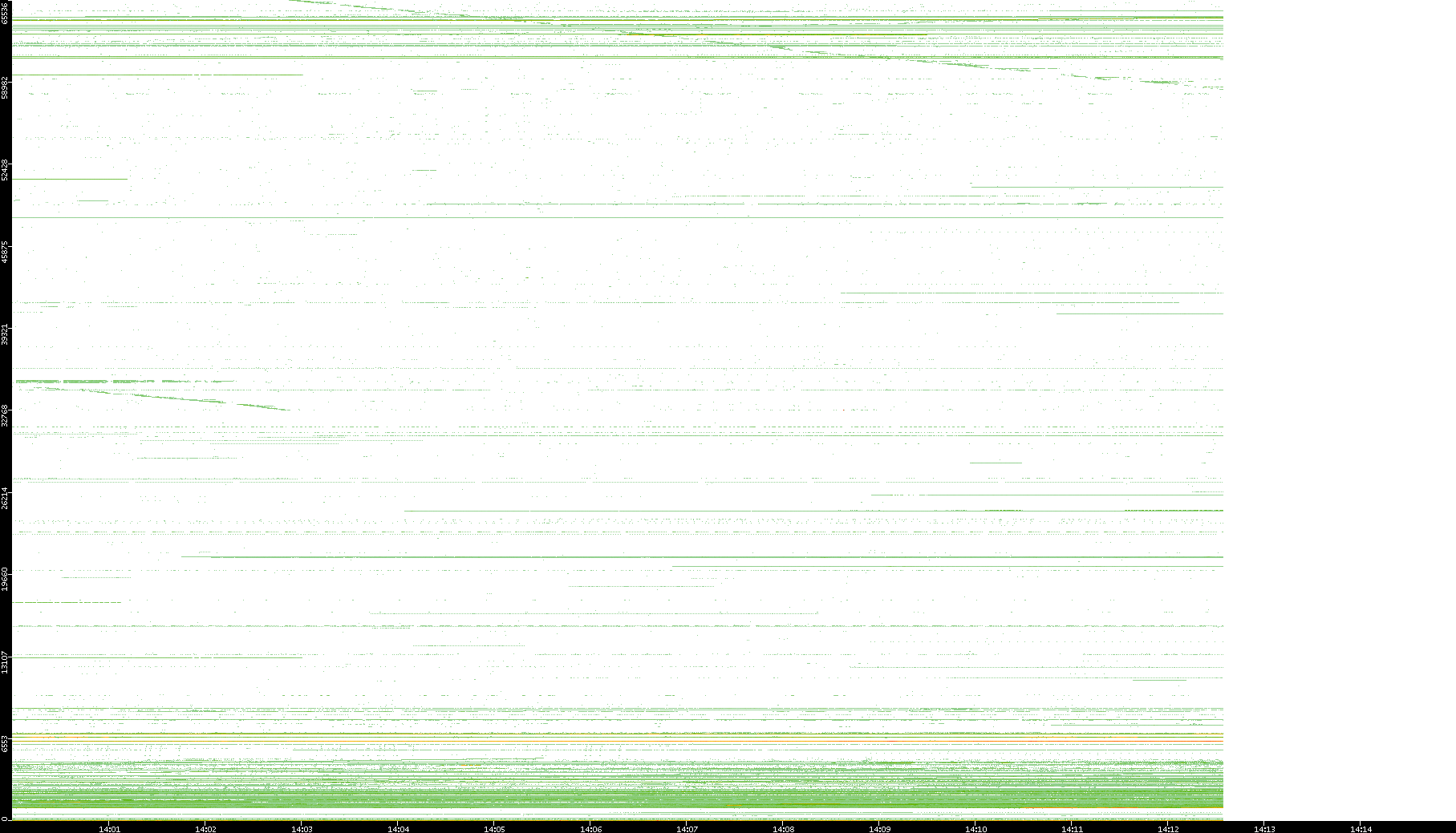 2001/05/14 Dest. IP vs. Time Dest. Port vs. Time Src. IP vs. Time Src. Port vs. Time Nb. of Packets vs. Time Throughput vs. Time Average Packet Size vs. Time Entropy of Port vs. Time