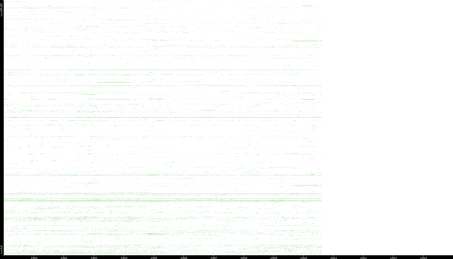 | Date | Dest. IP vs. Time | Dest. Port vs. Time | Src. IP vs. Time | Src. Port vs. Time | Nb. of Packets vs. Time | Throughput vs. Time | Average Packet Size vs. Time | Entropy of Port vs. Time |
