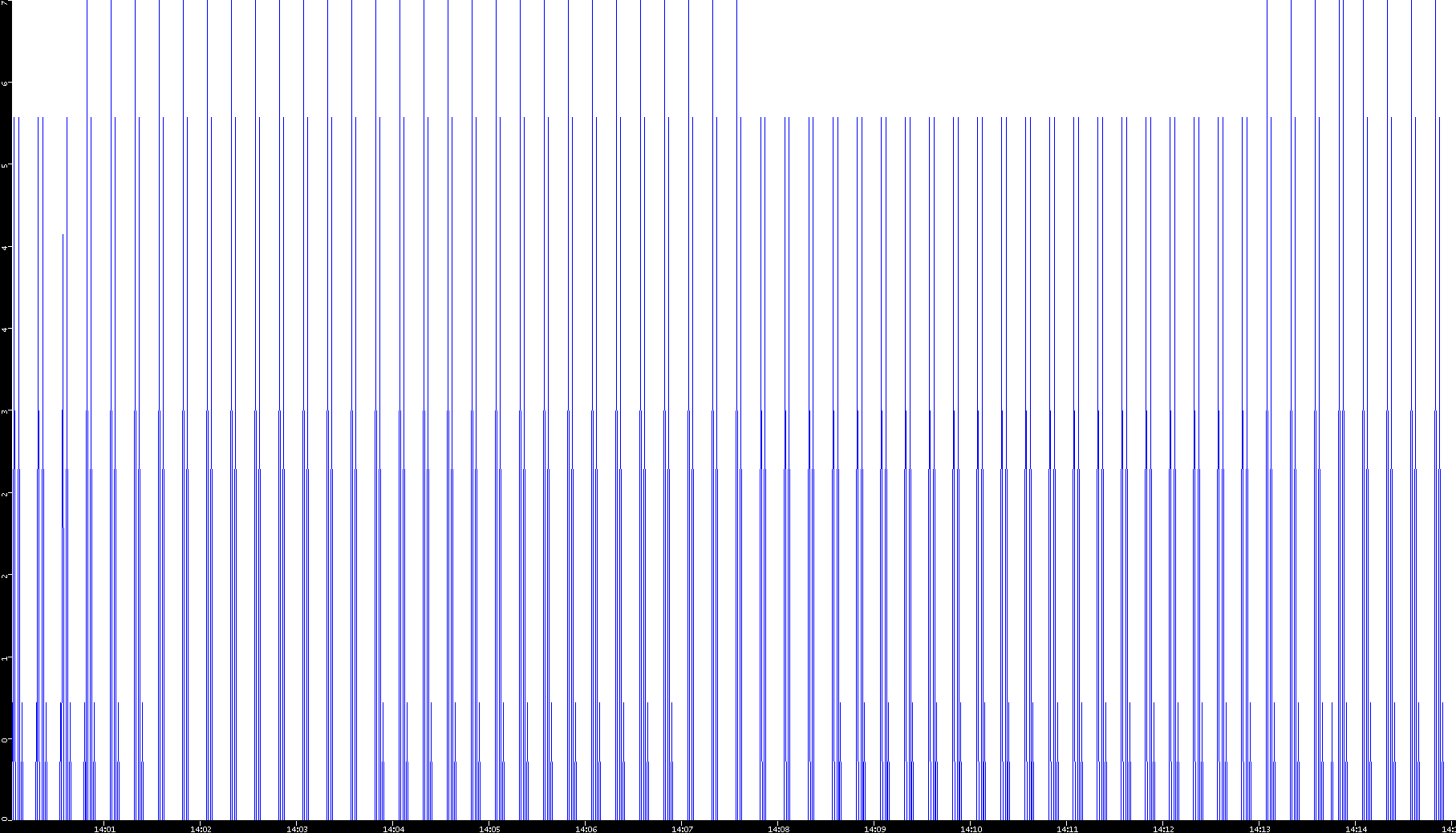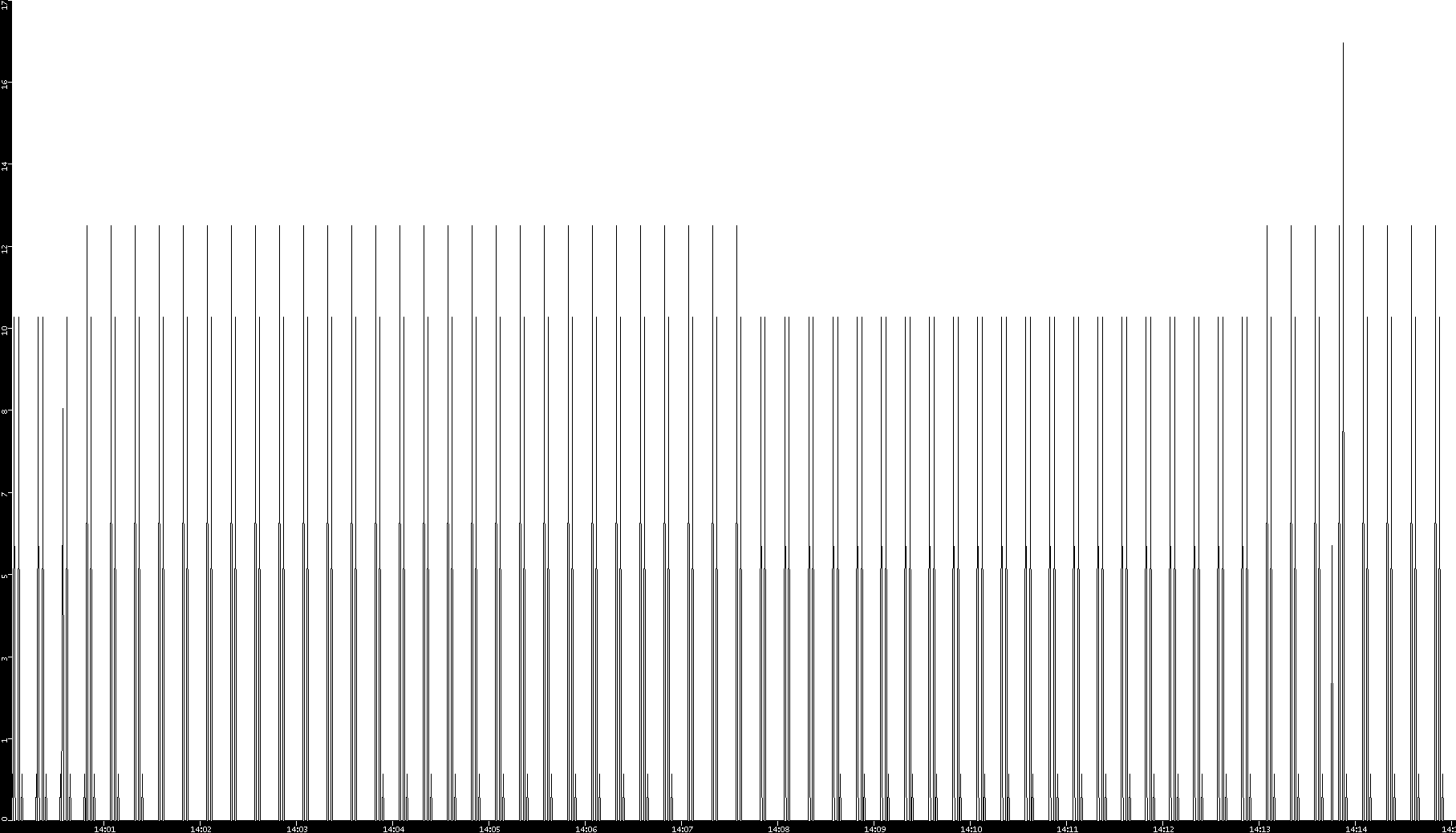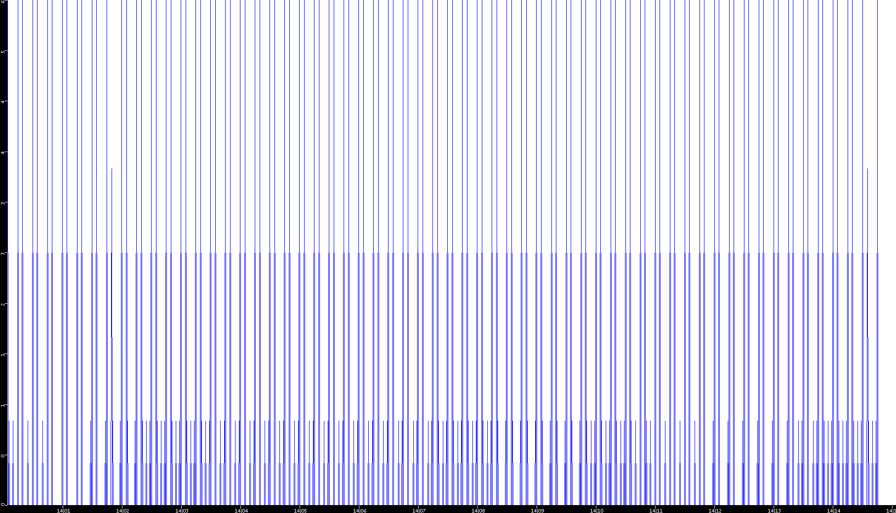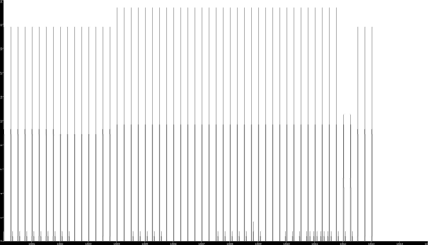 2001/08/14 Dest. IP vs. Time Dest. Port vs. Time Src. IP vs. Time Src. Port vs. Time Nb. of Packets vs. Time Throughput vs. Time Average Packet Size vs. Time Entropy of Port vs. Time