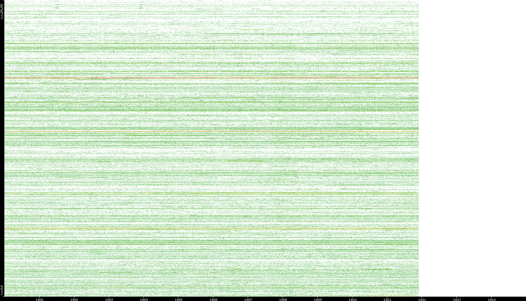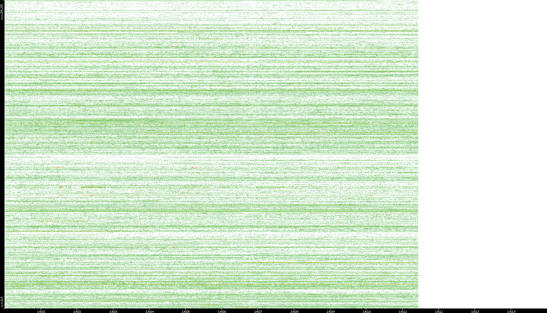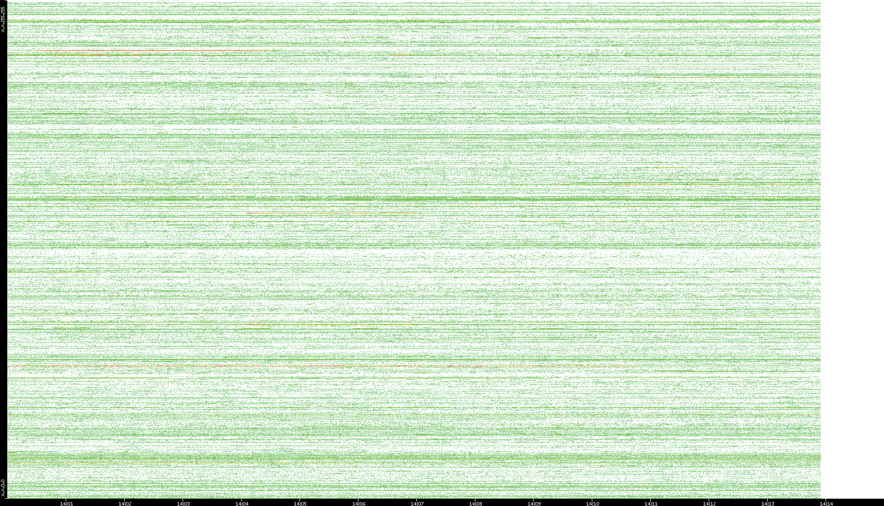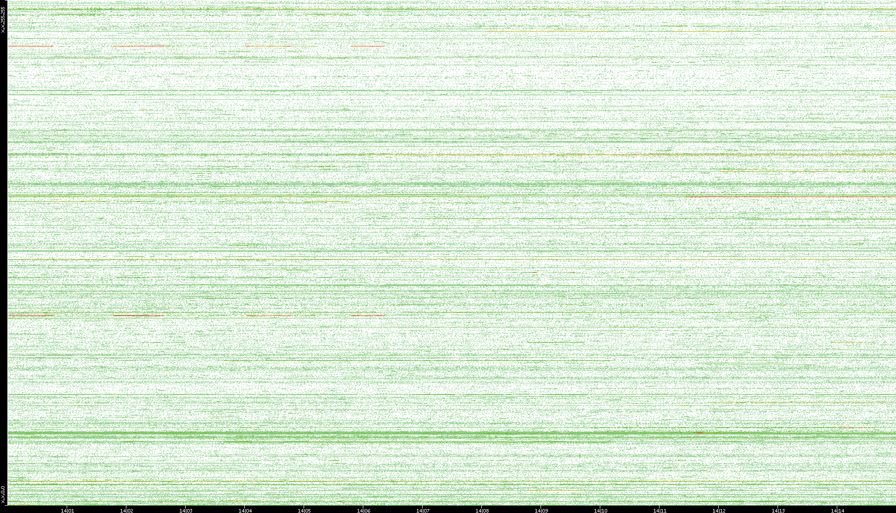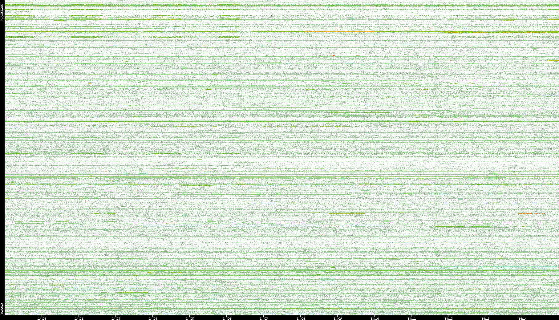 | Date | Dest. IP vs. Time | Dest. Port vs. Time | Src. IP vs. Time | Src. Port vs. Time | Nb. of Packets vs. Time | Throughput vs. Time | Average Packet Size vs. Time | Entropy of Port vs. Time |