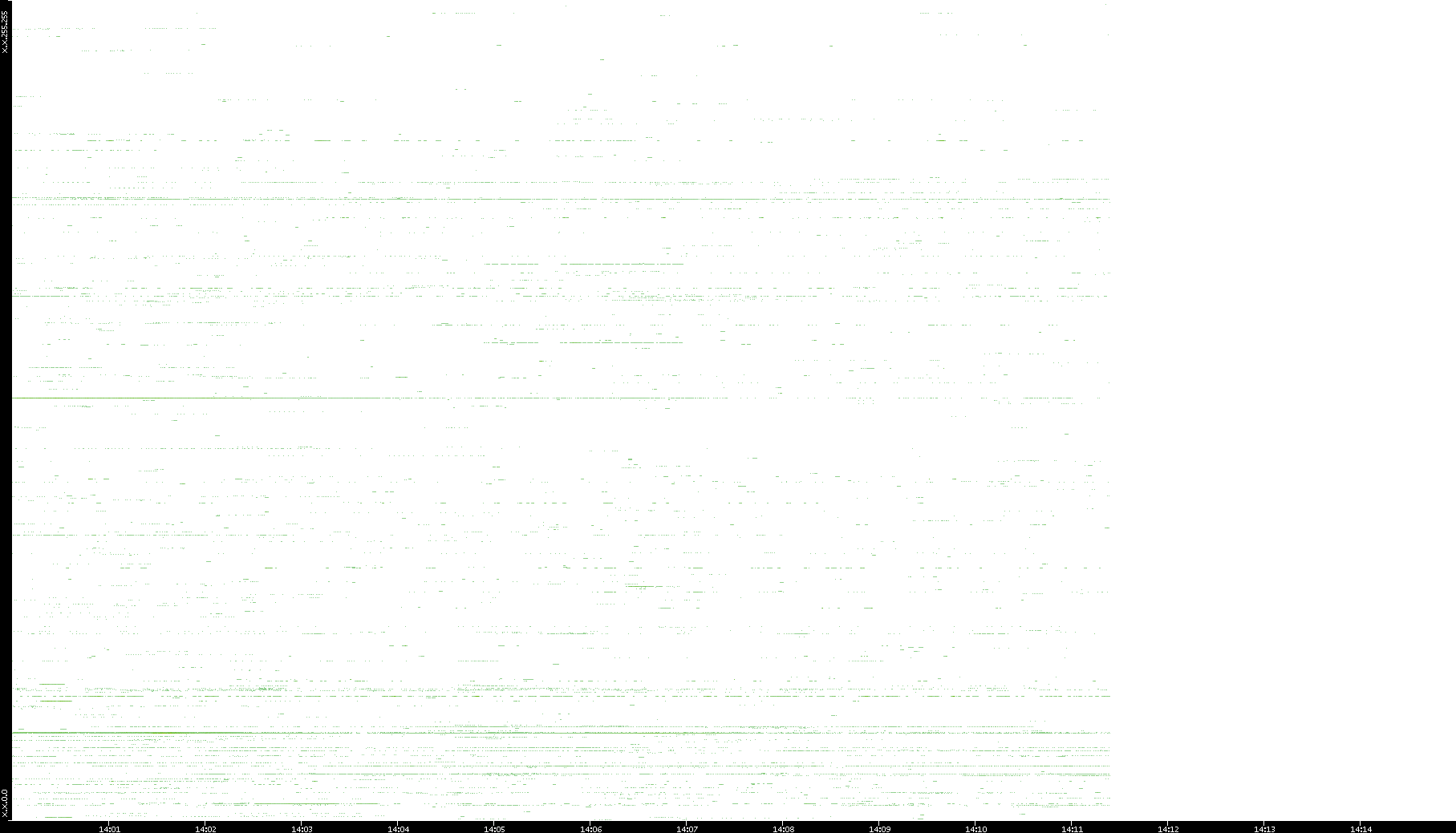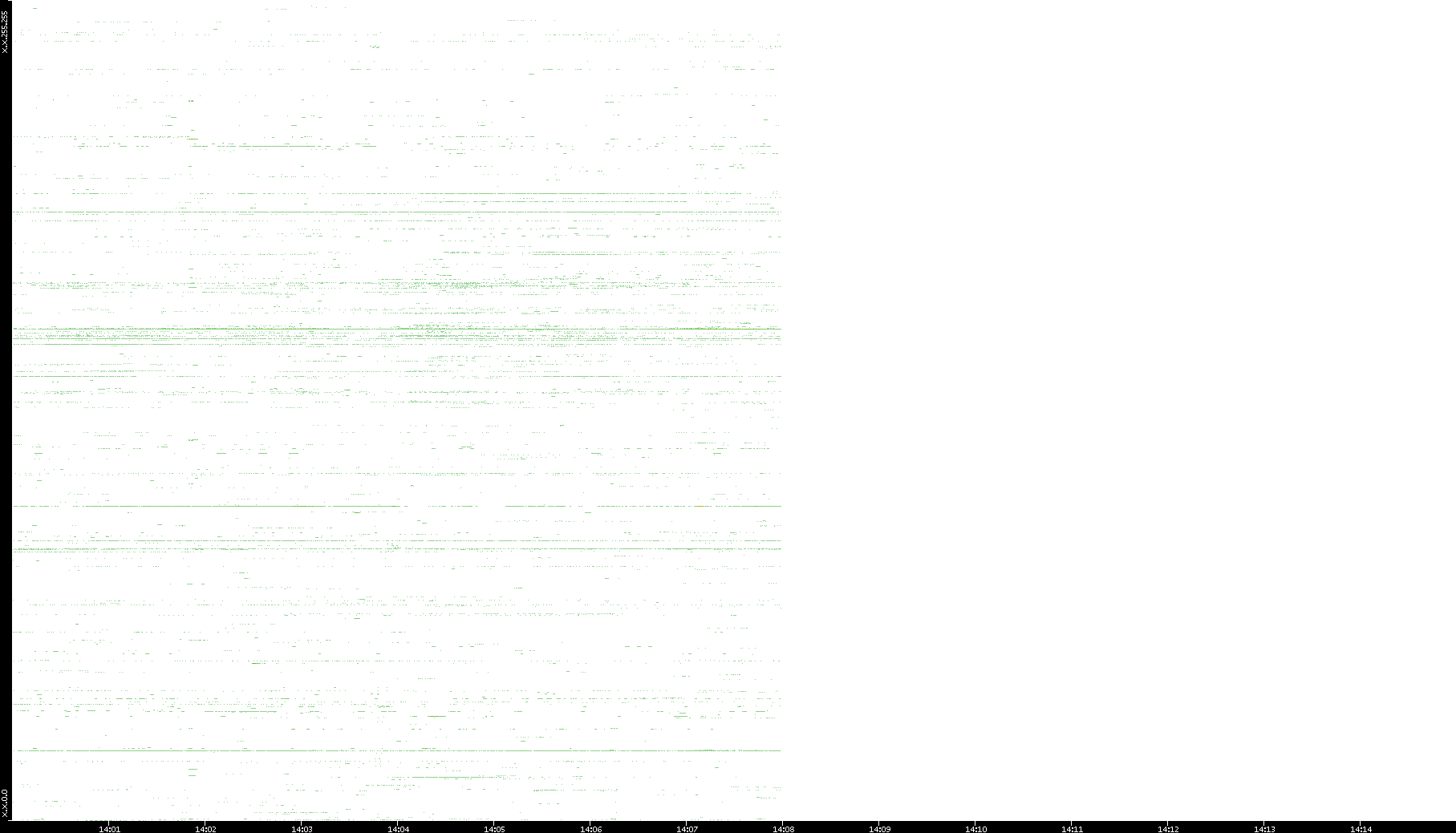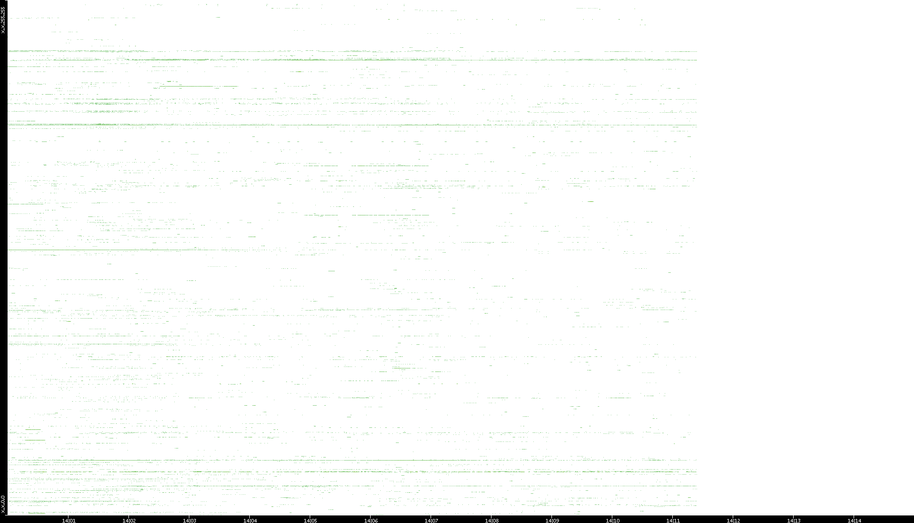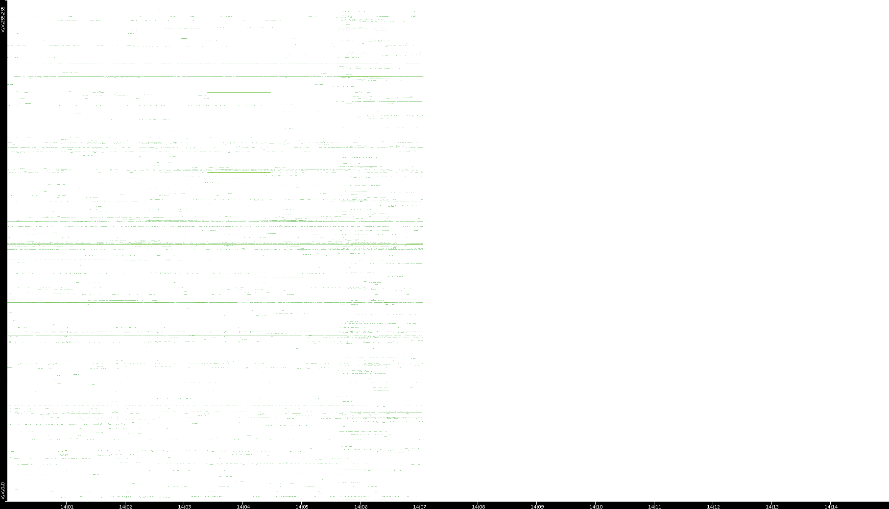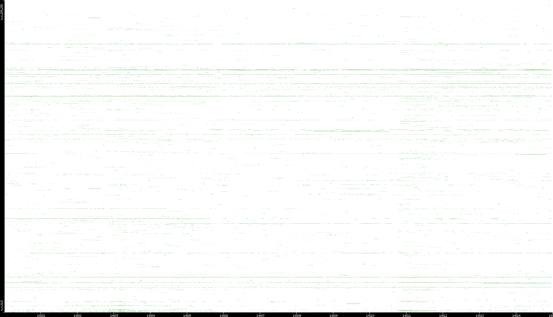 2001/11/14 Dest. IP vs. Time Dest. Port vs. Time Src. IP vs. Time Src. Port vs. Time Nb. of Packets vs. Time Throughput vs. Time Average Packet Size vs. Time Entropy of Port vs. Time