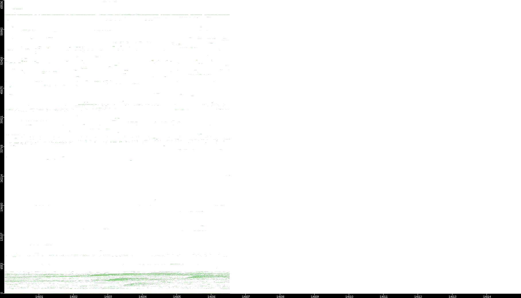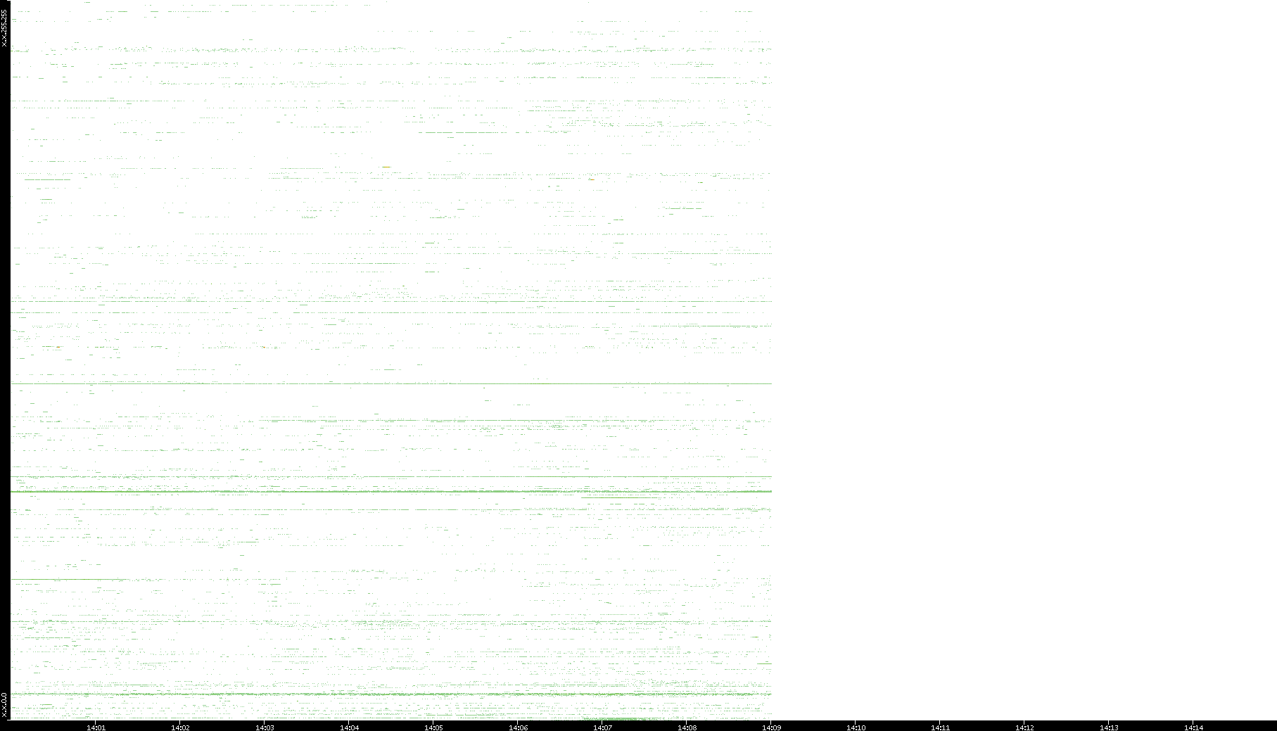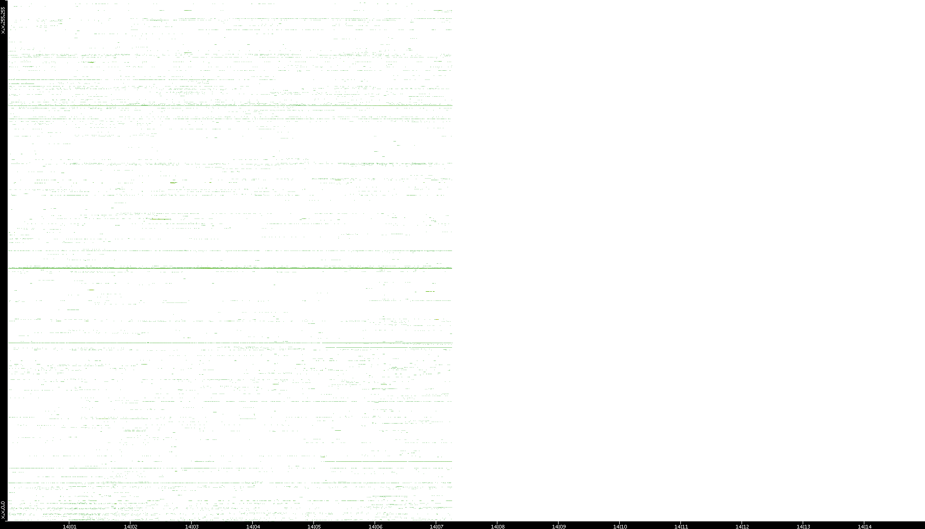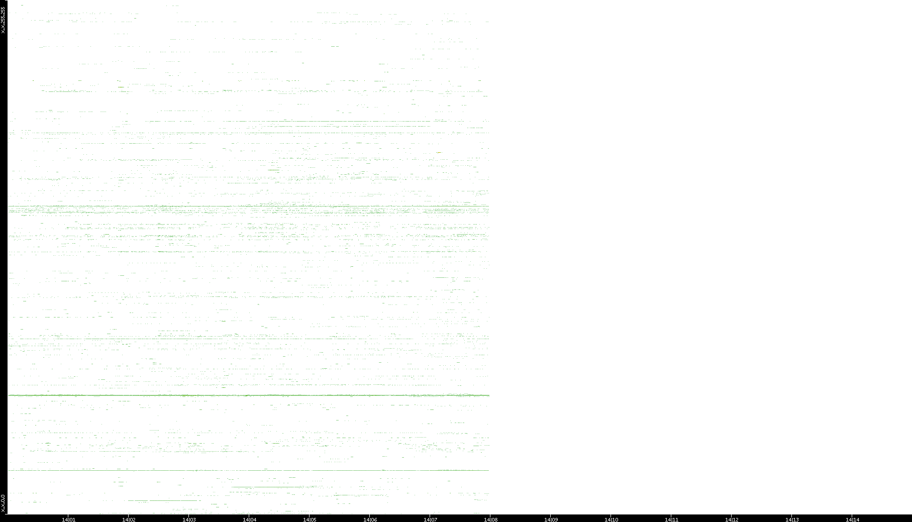 2001/11/14 Dest. IP vs. Time Dest. Port vs. Time Src. IP vs. Time Src. Port vs. Time Nb. of Packets vs. Time Throughput vs. Time Average Packet Size vs. Time Entropy of Port vs. Time