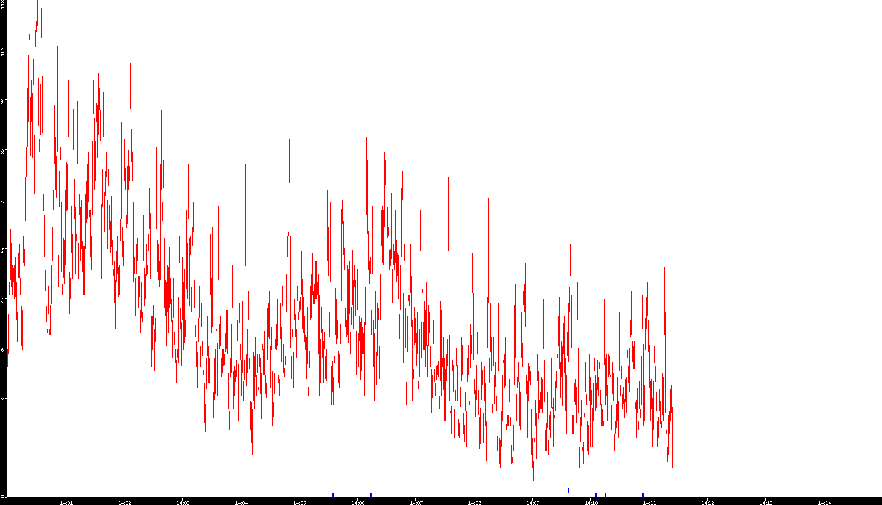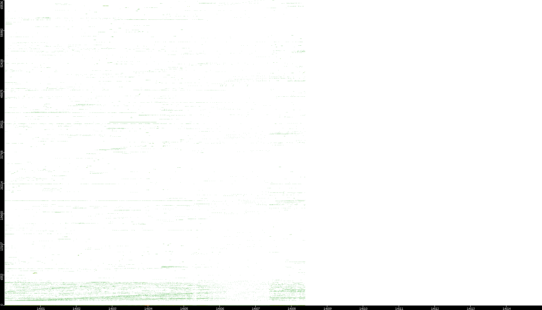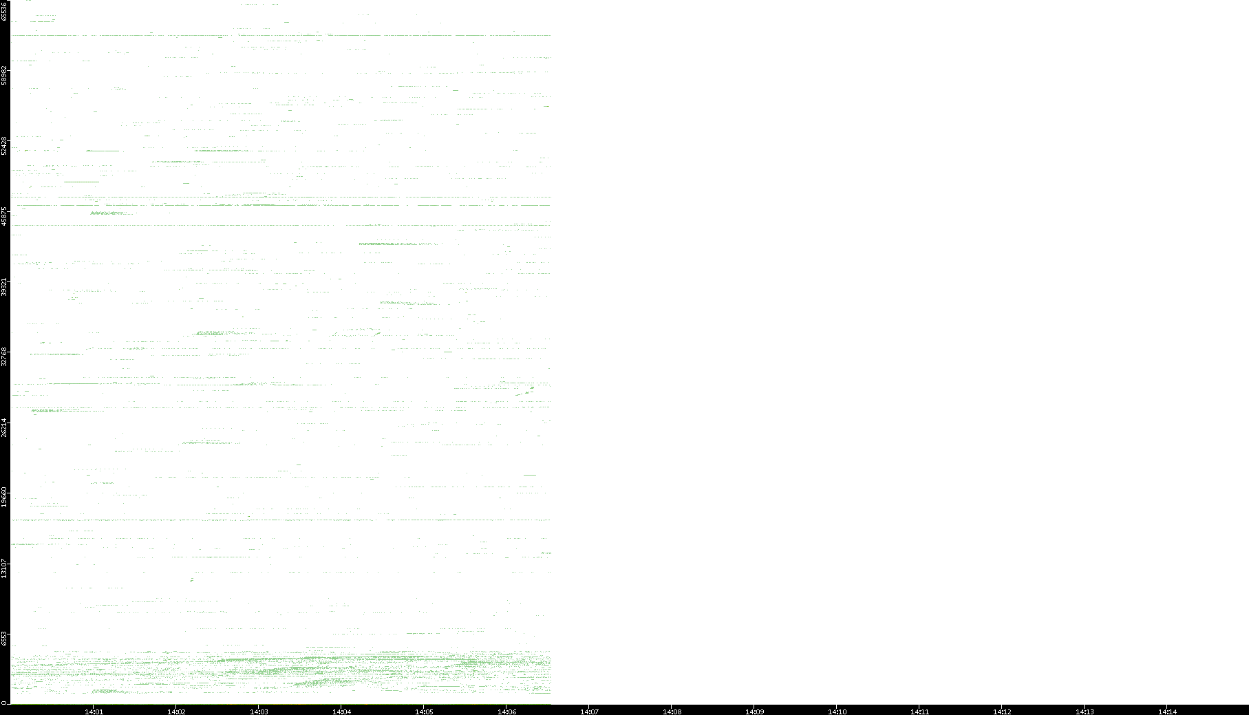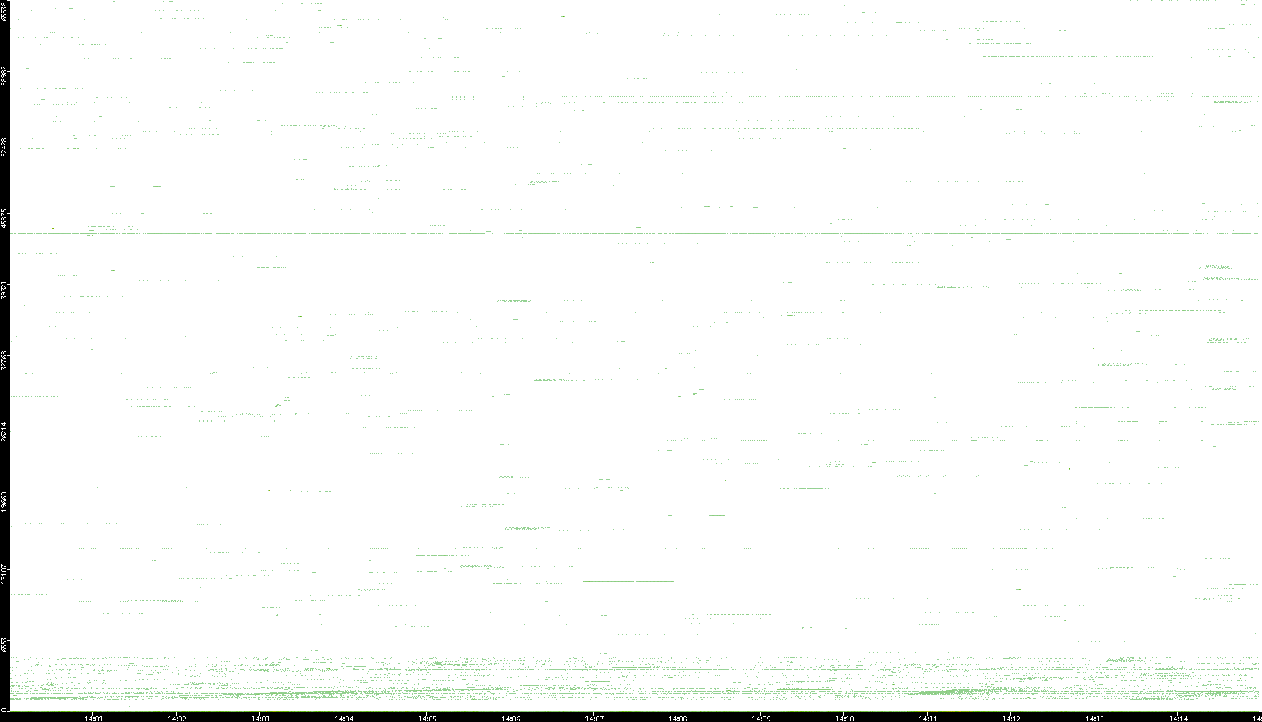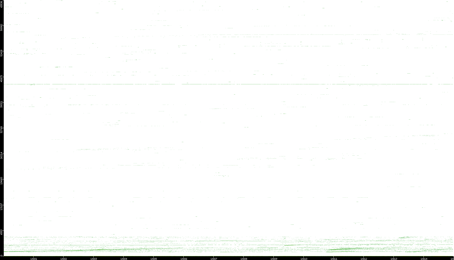 2001/11/14 Dest. IP vs. Time Dest. Port vs. Time Src. IP vs. Time Src. Port vs. Time Nb. of Packets vs. Time Throughput vs. Time Average Packet Size vs. Time Entropy of Port vs. Time