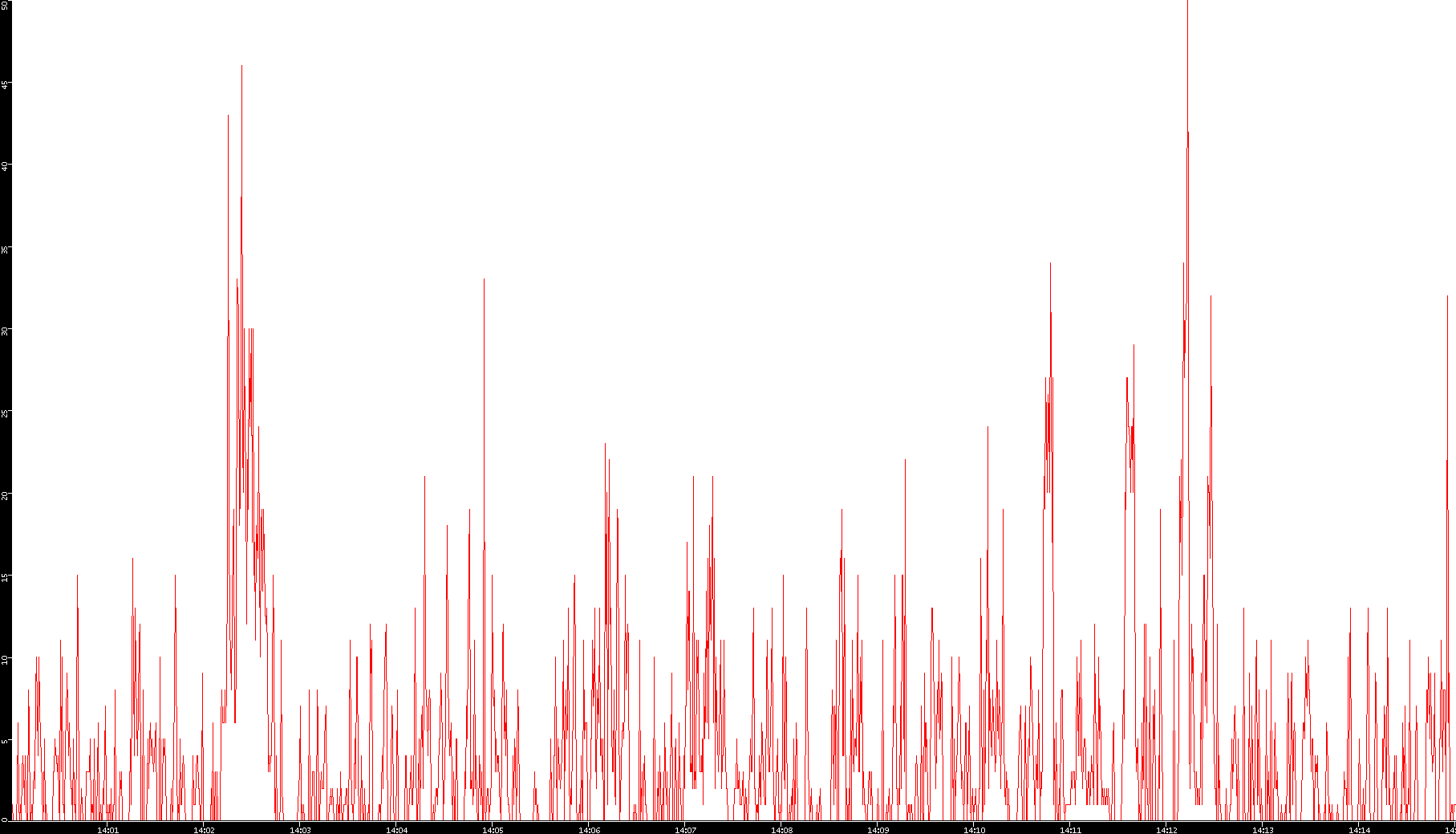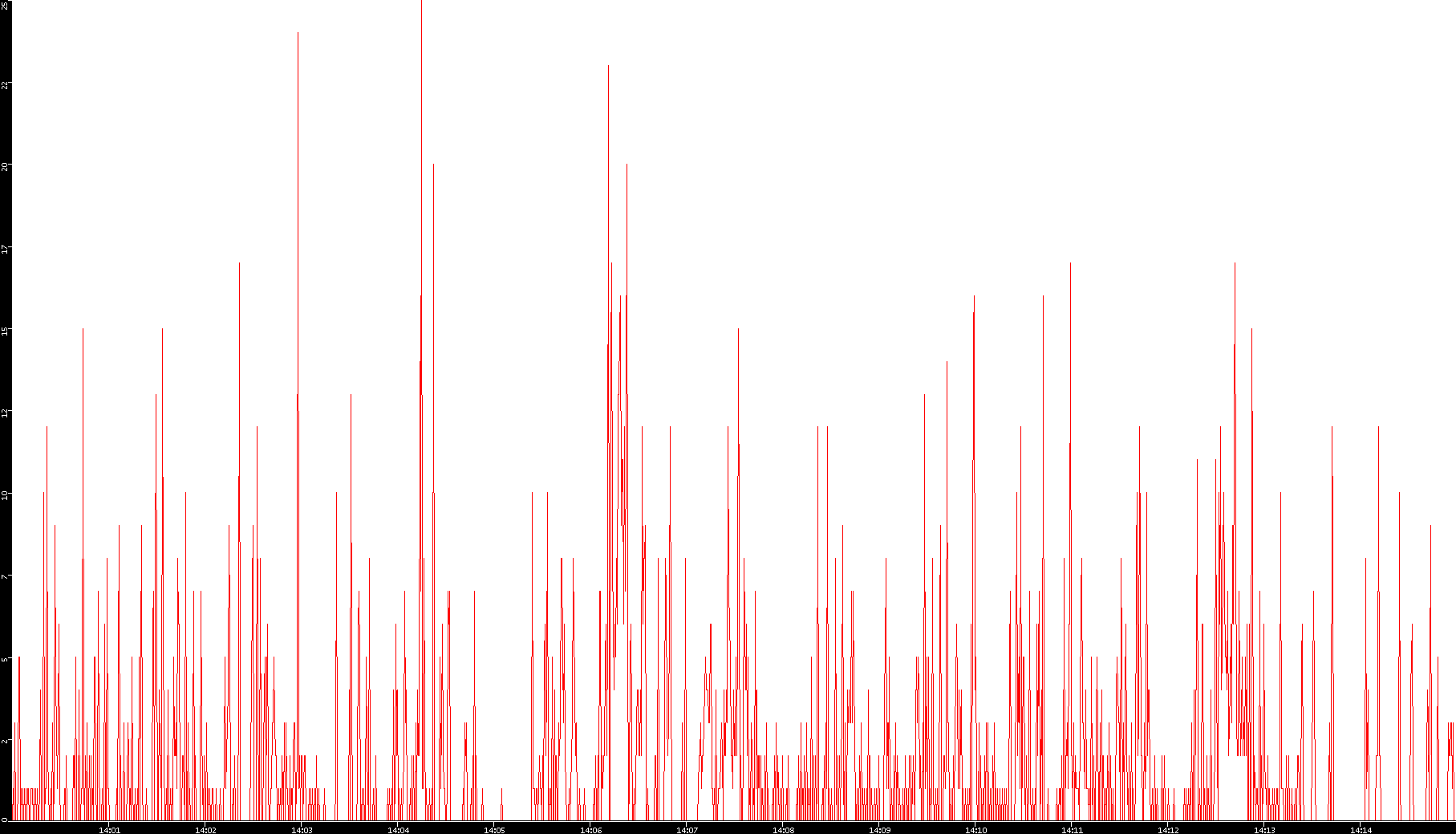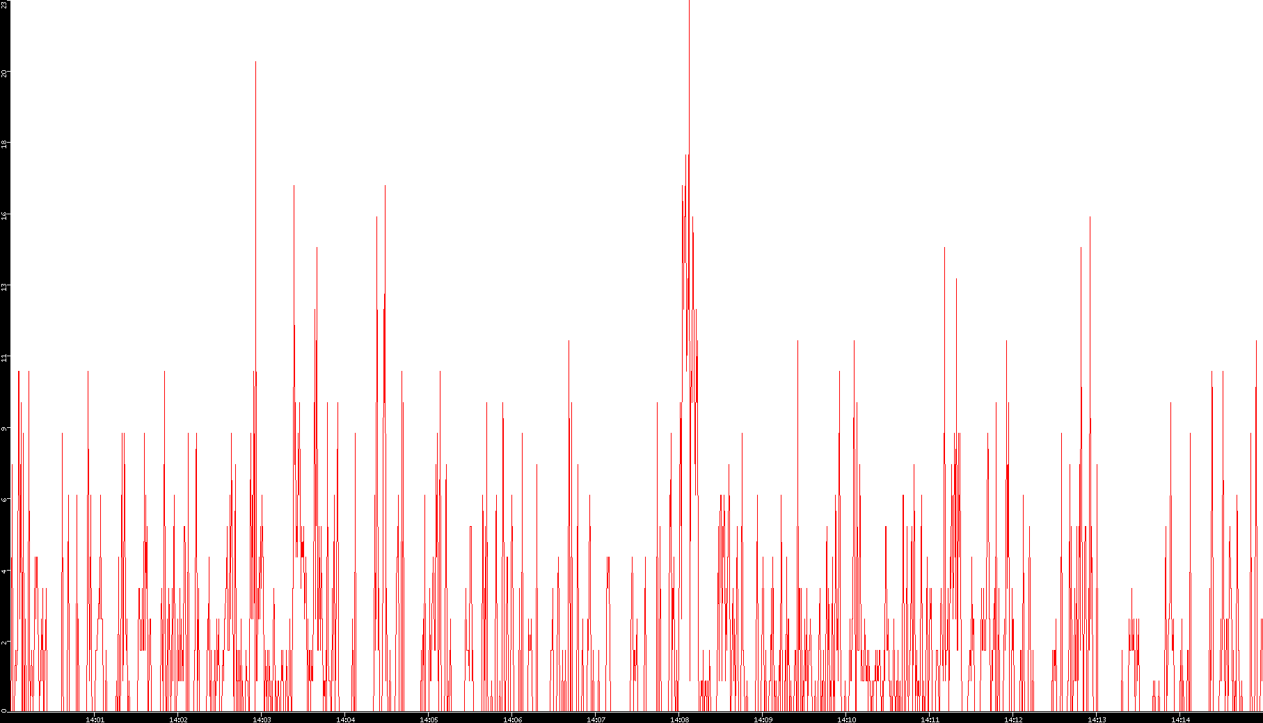 2002/01/14 Dest. IP vs. Time Dest. Port vs. Time Src. IP vs. Time Src. Port vs. Time Nb. of Packets vs. Time Throughput vs. Time Average Packet Size vs. Time Entropy of Port vs. Time