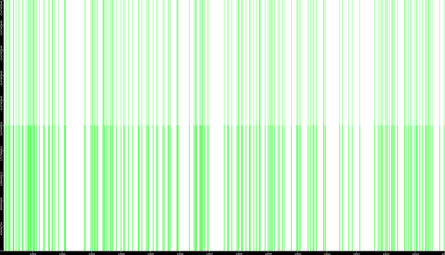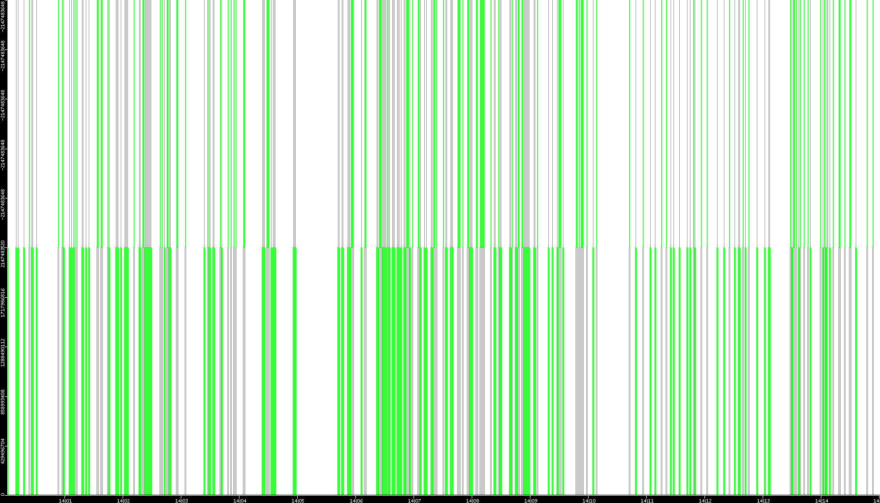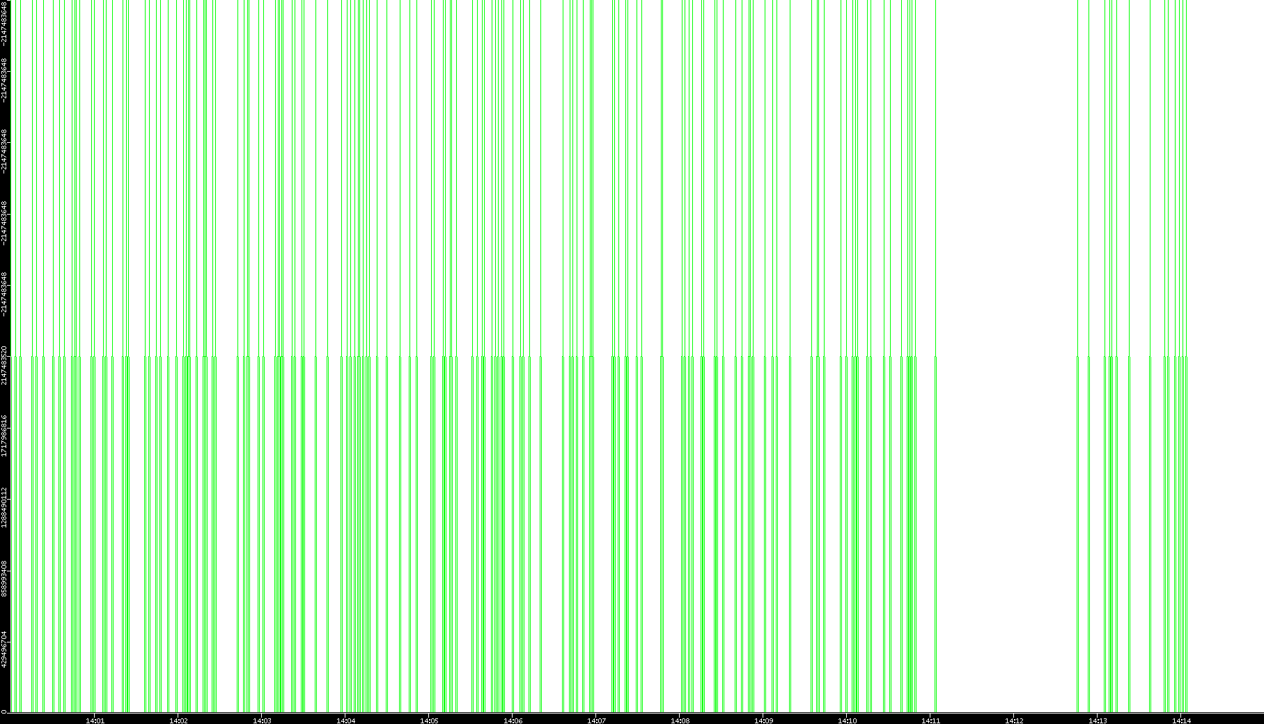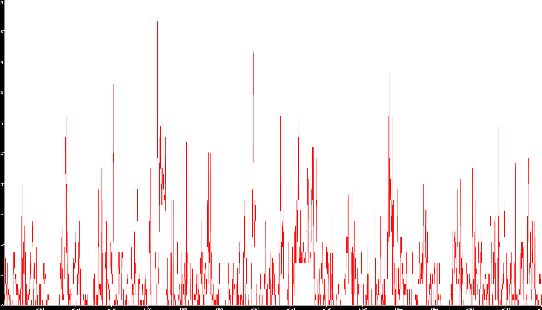 2002/01/14 Dest. IP vs. Time Dest. Port vs. Time Src. IP vs. Time Src. Port vs. Time Nb. of Packets vs. Time Throughput vs. Time Average Packet Size vs. Time Entropy of Port vs. Time