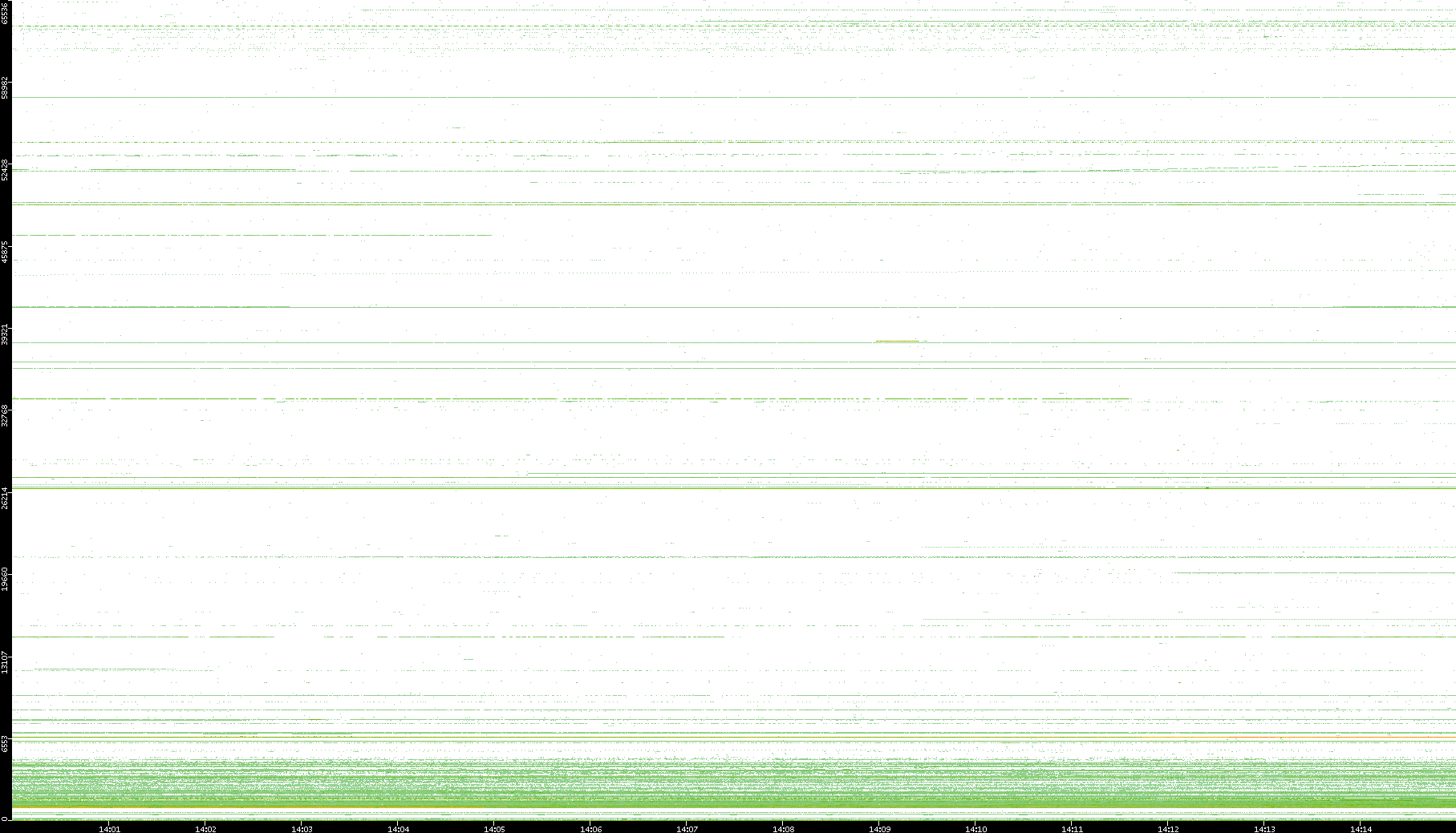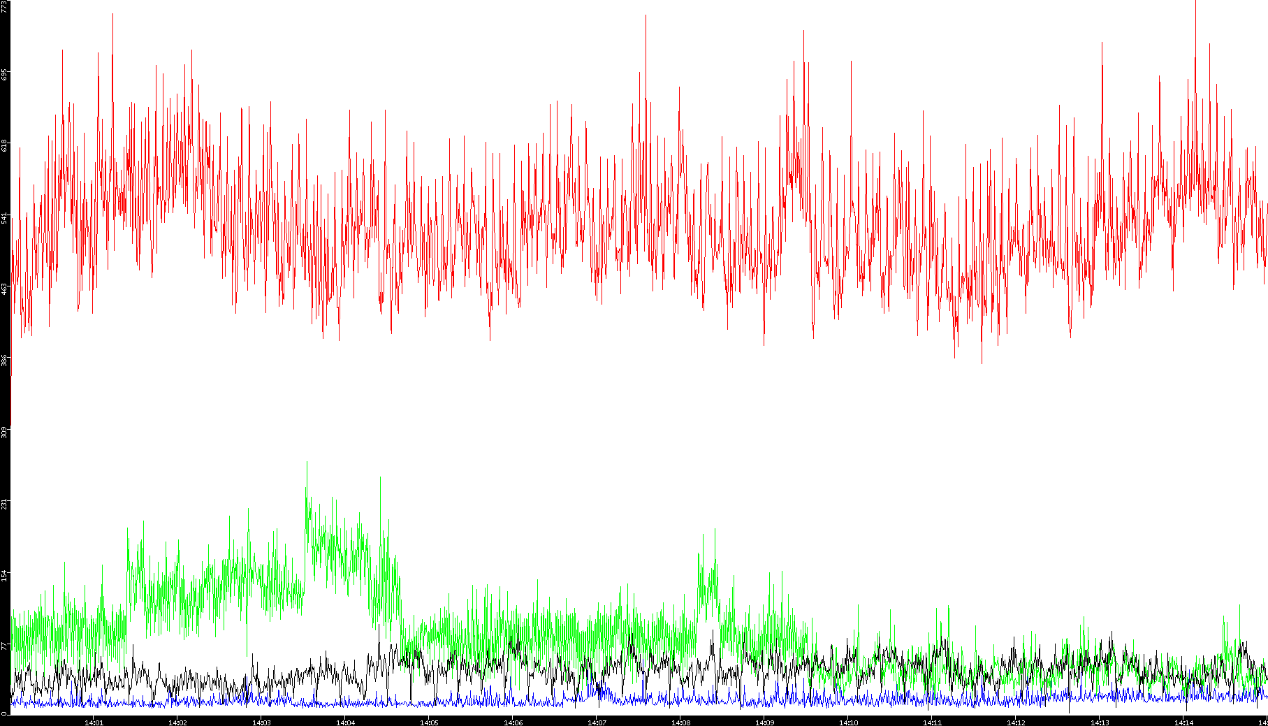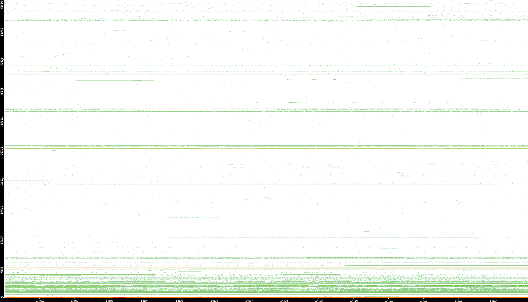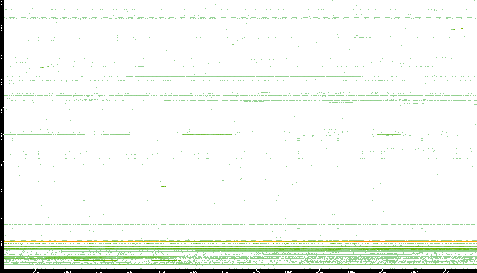 2002/04/14 Dest. IP vs. Time Dest. Port vs. Time Src. IP vs. Time Src. Port vs. Time Nb. of Packets vs. Time Throughput vs. Time Average Packet Size vs. Time Entropy of Port vs. Time
