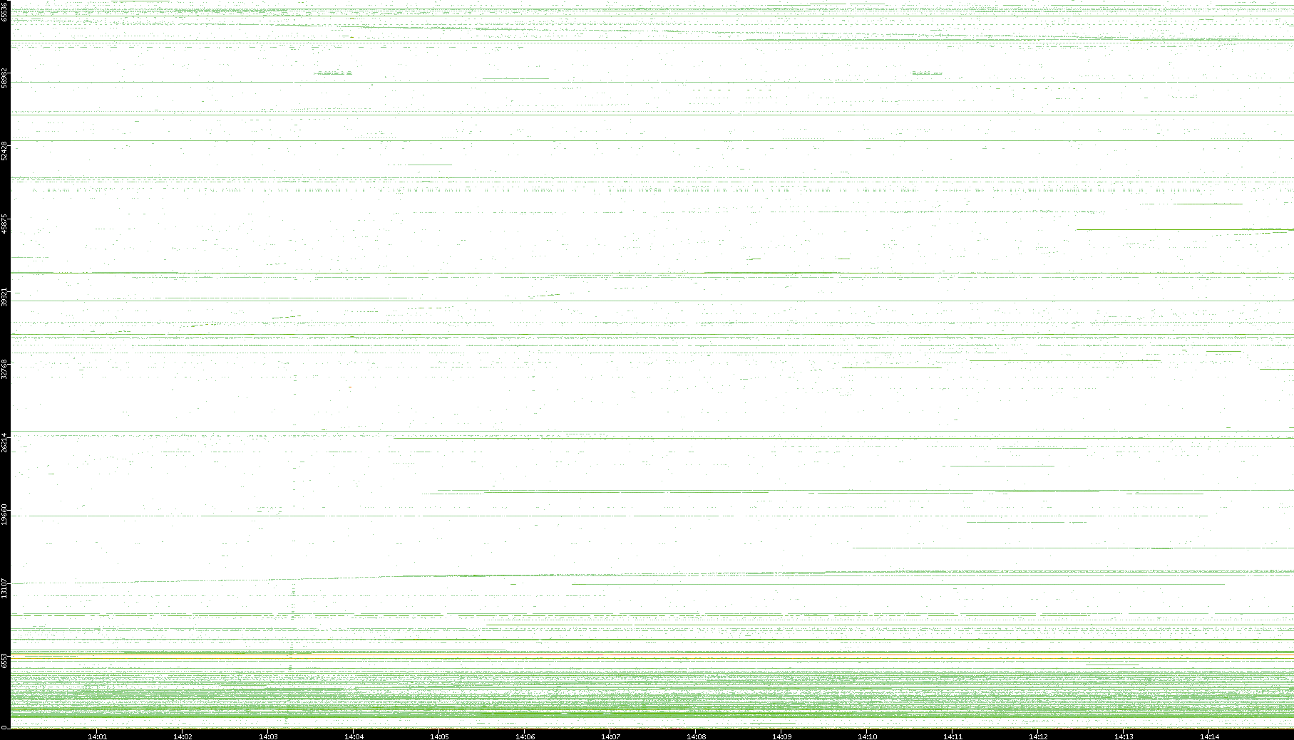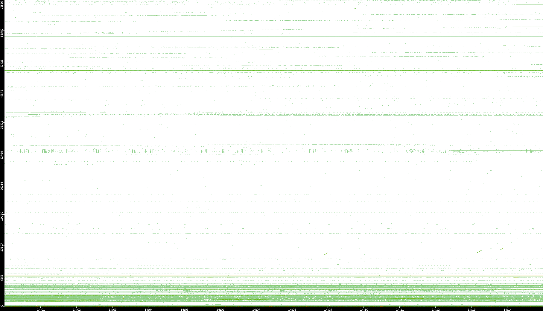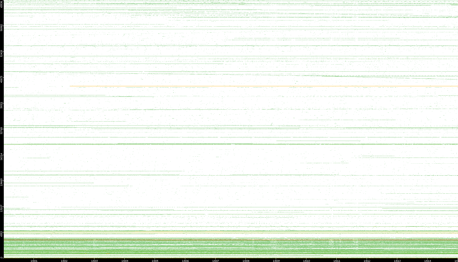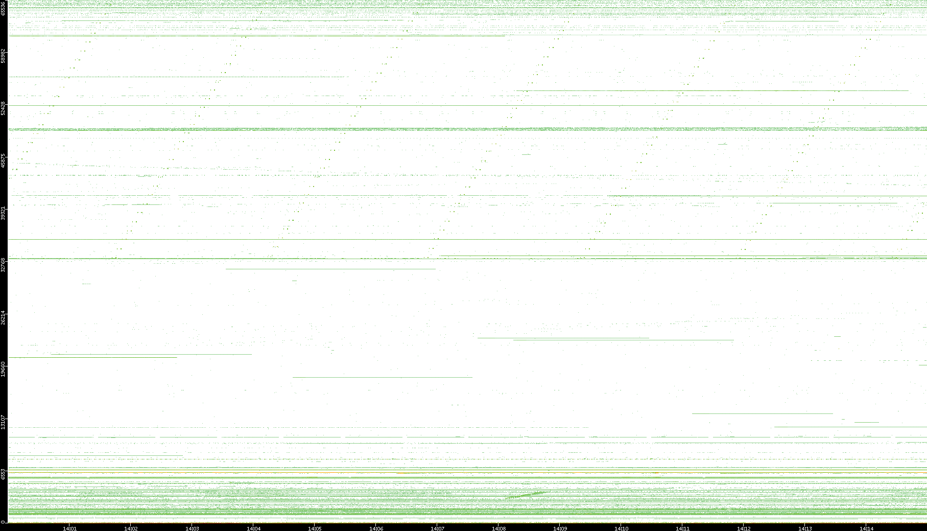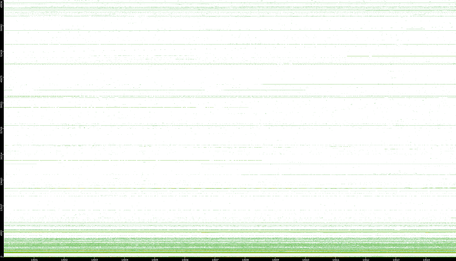 2002/04/14 Dest. IP vs. Time Dest. Port vs. Time Src. IP vs. Time Src. Port vs. Time Nb. of Packets vs. Time Throughput vs. Time Average Packet Size vs. Time Entropy of Port vs. Time
