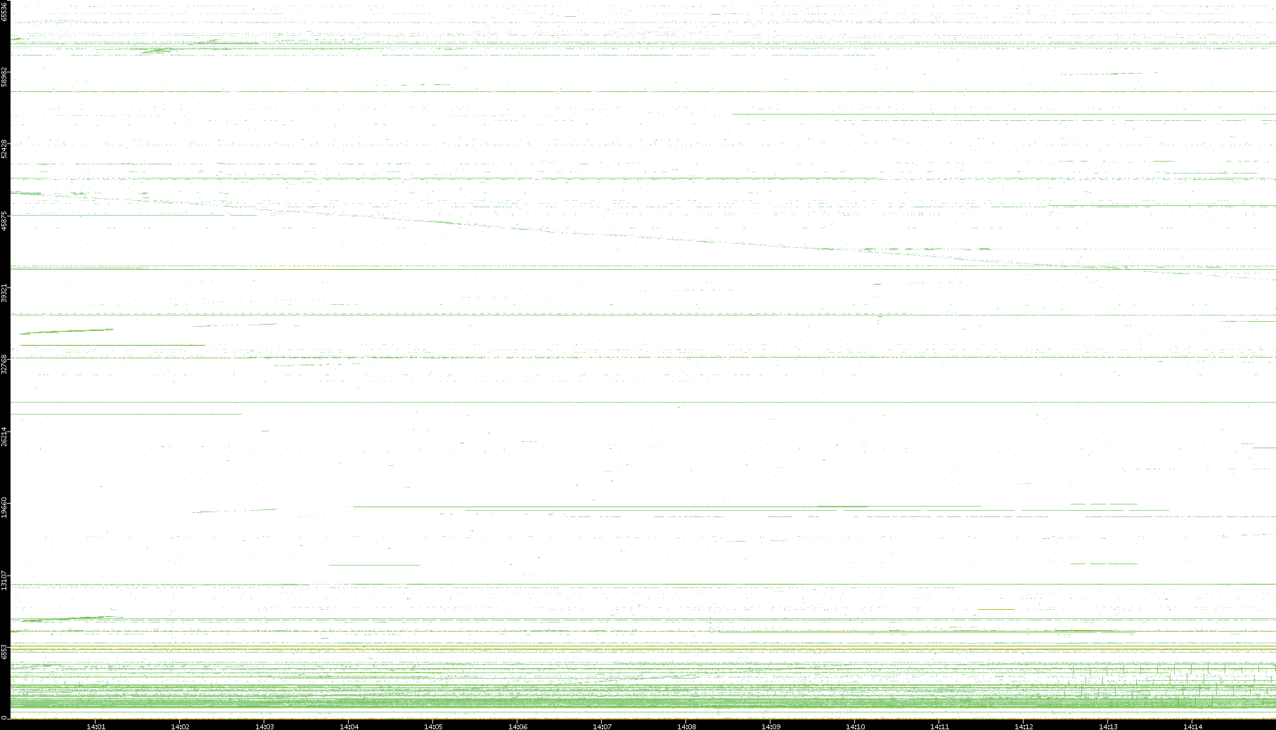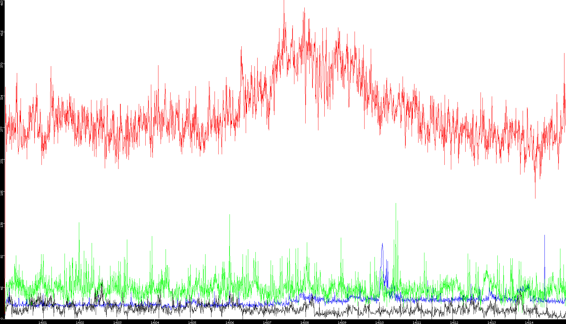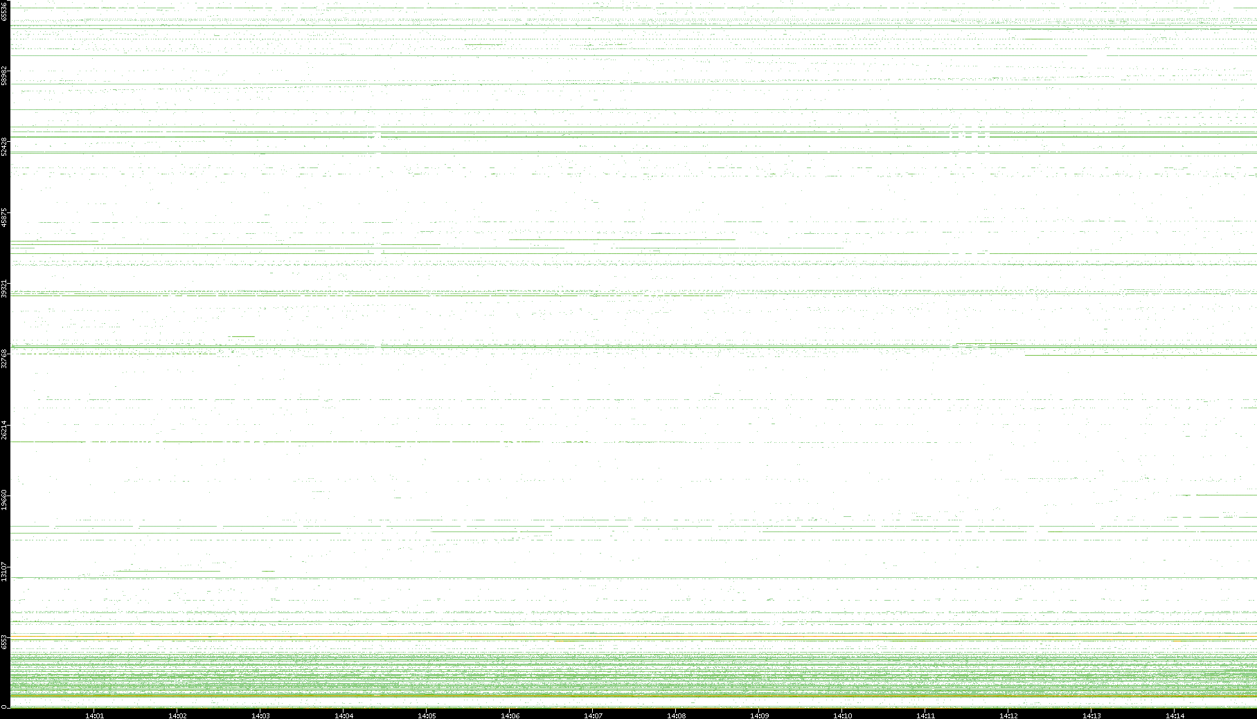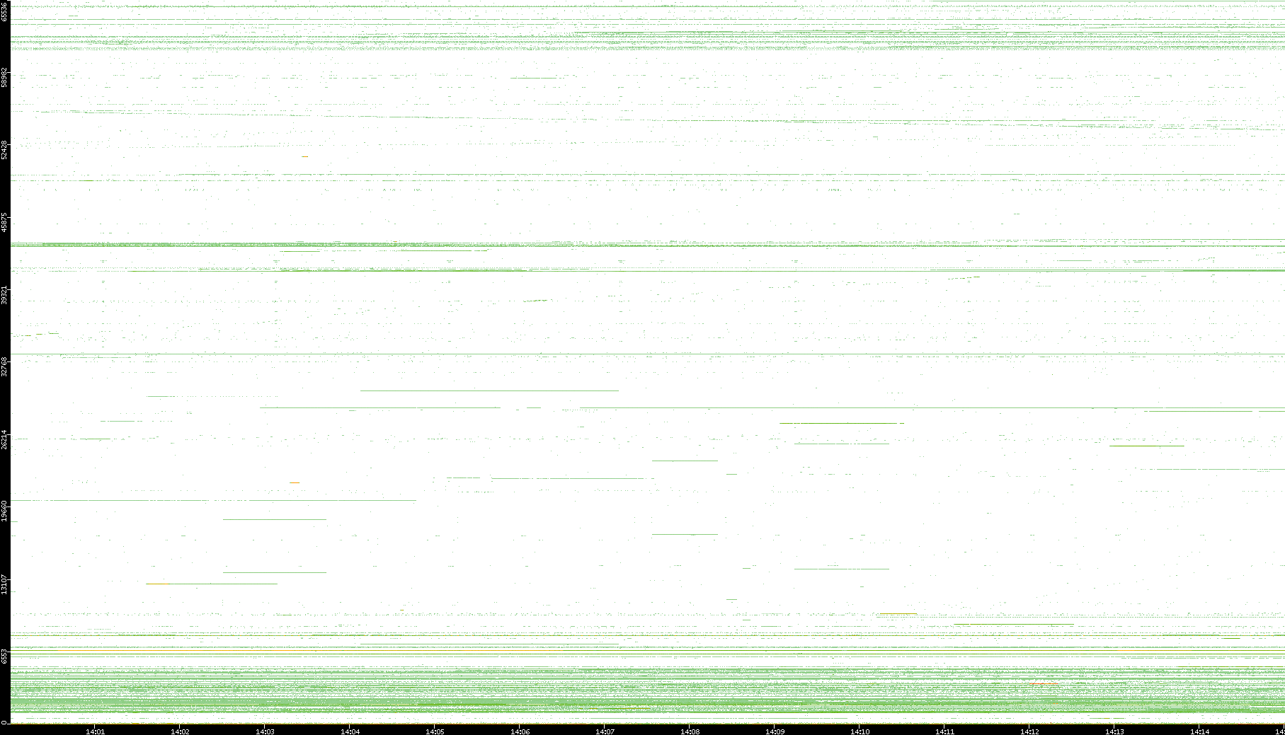 2002/04/14 Dest. IP vs. Time Dest. Port vs. Time Src. IP vs. Time Src. Port vs. Time Nb. of Packets vs. Time Throughput vs. Time Average Packet Size vs. Time Entropy of Port vs. Time
