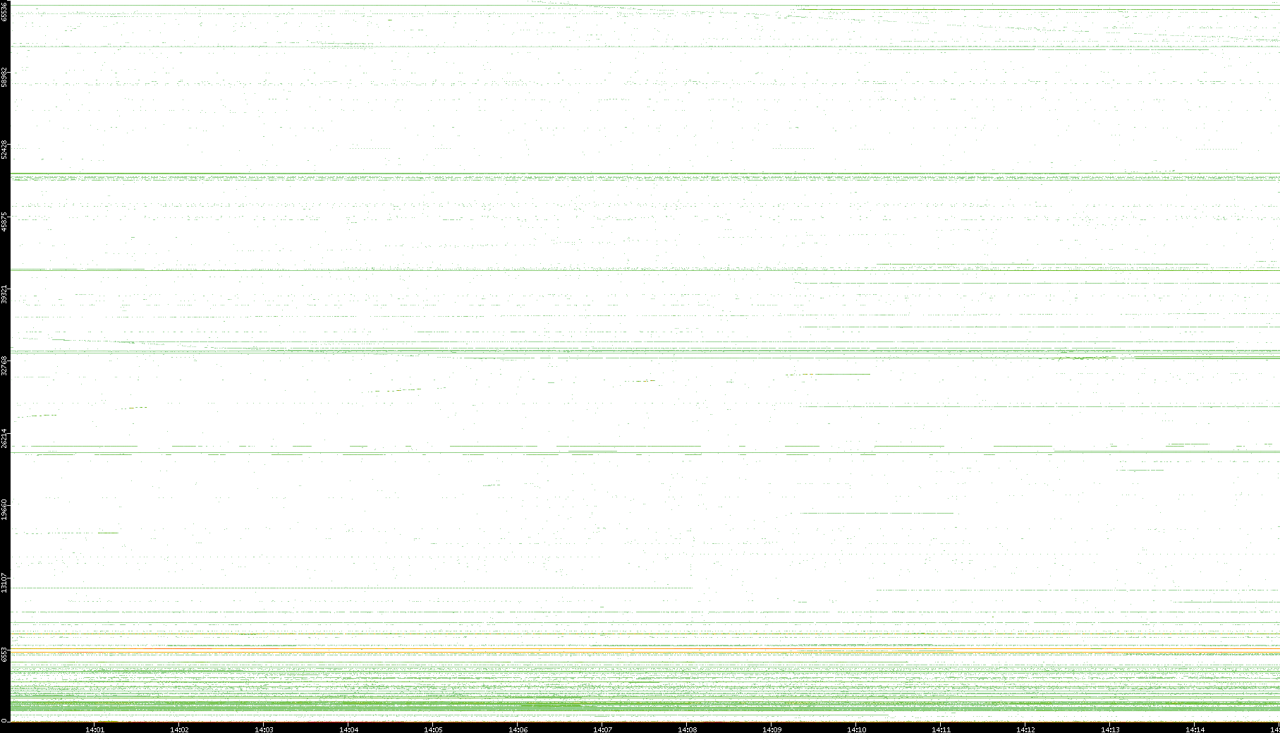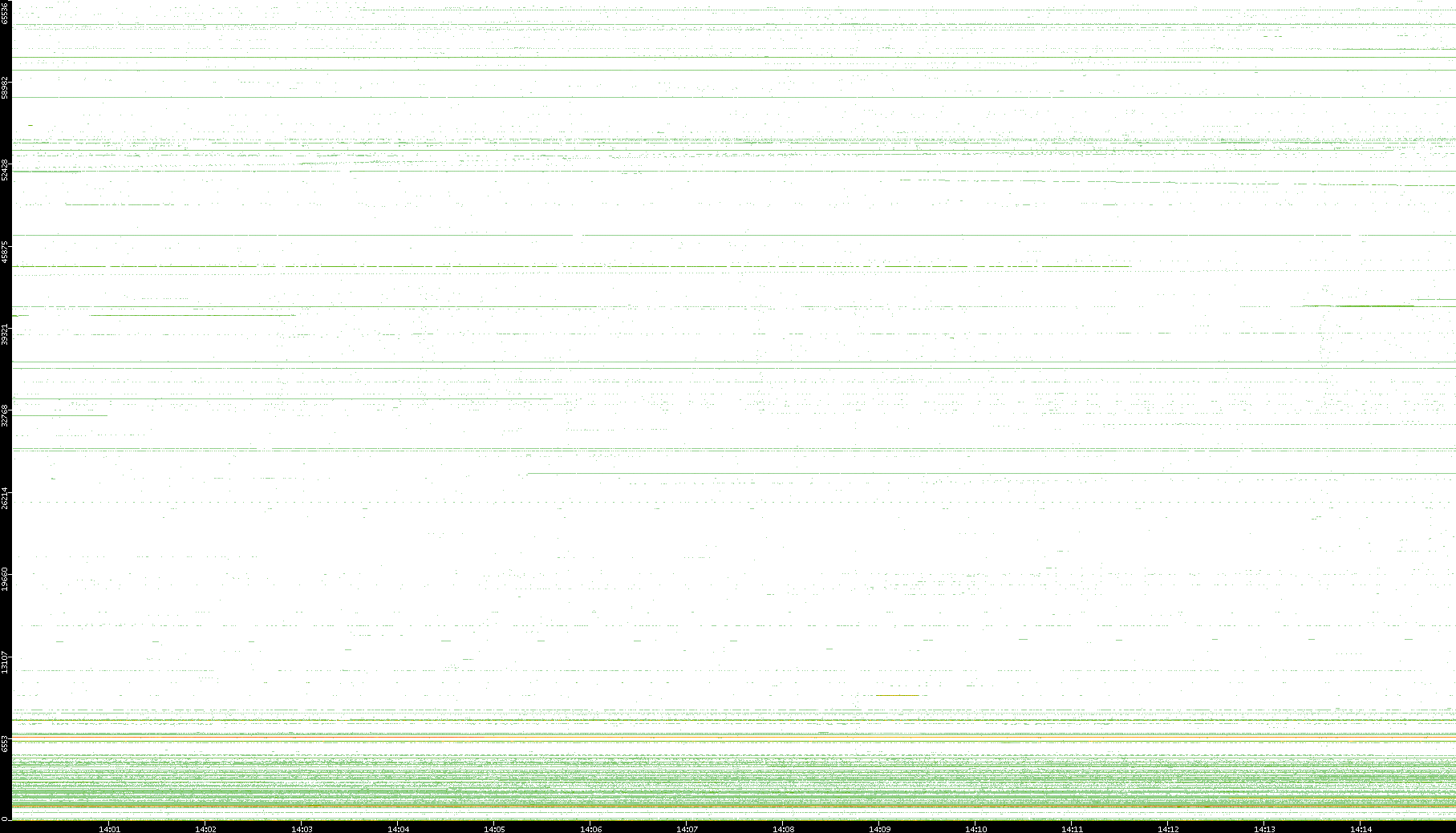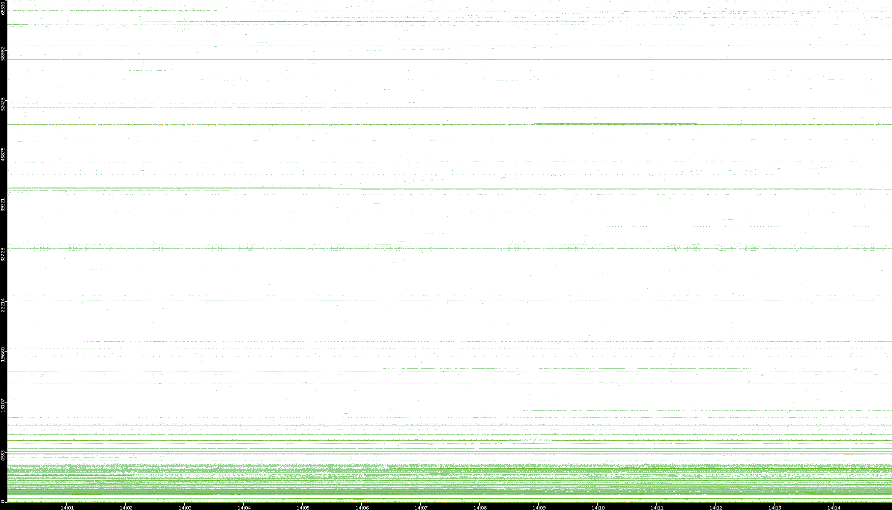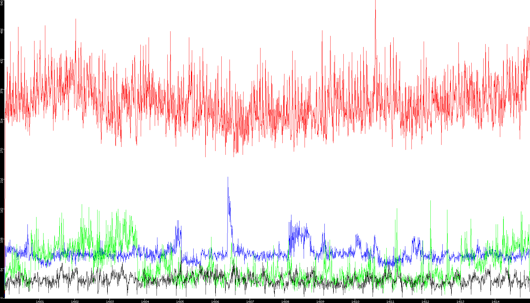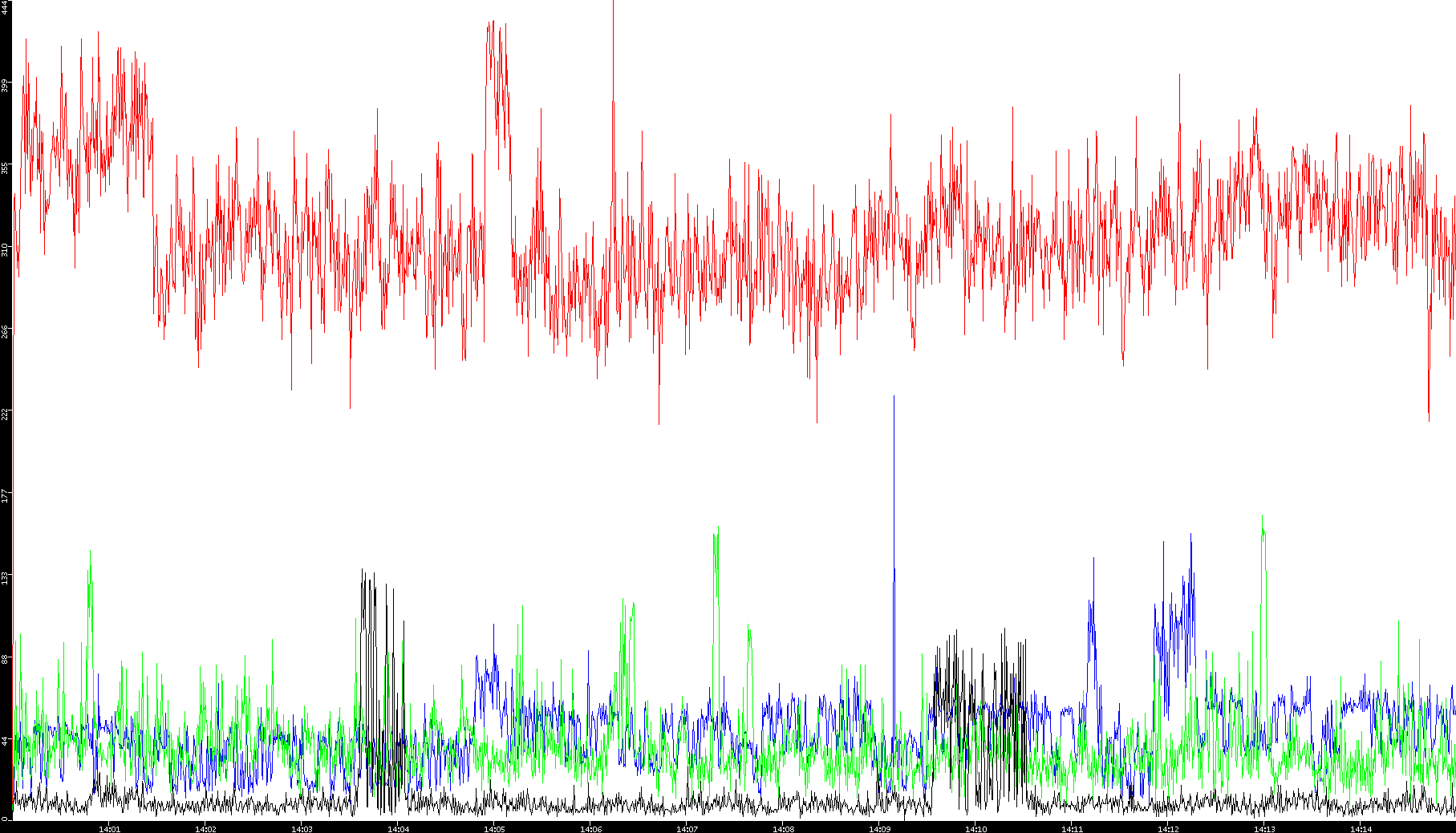 2002/04/14 Dest. IP vs. Time Dest. Port vs. Time Src. IP vs. Time Src. Port vs. Time Nb. of Packets vs. Time Throughput vs. Time Average Packet Size vs. Time Entropy of Port vs. Time