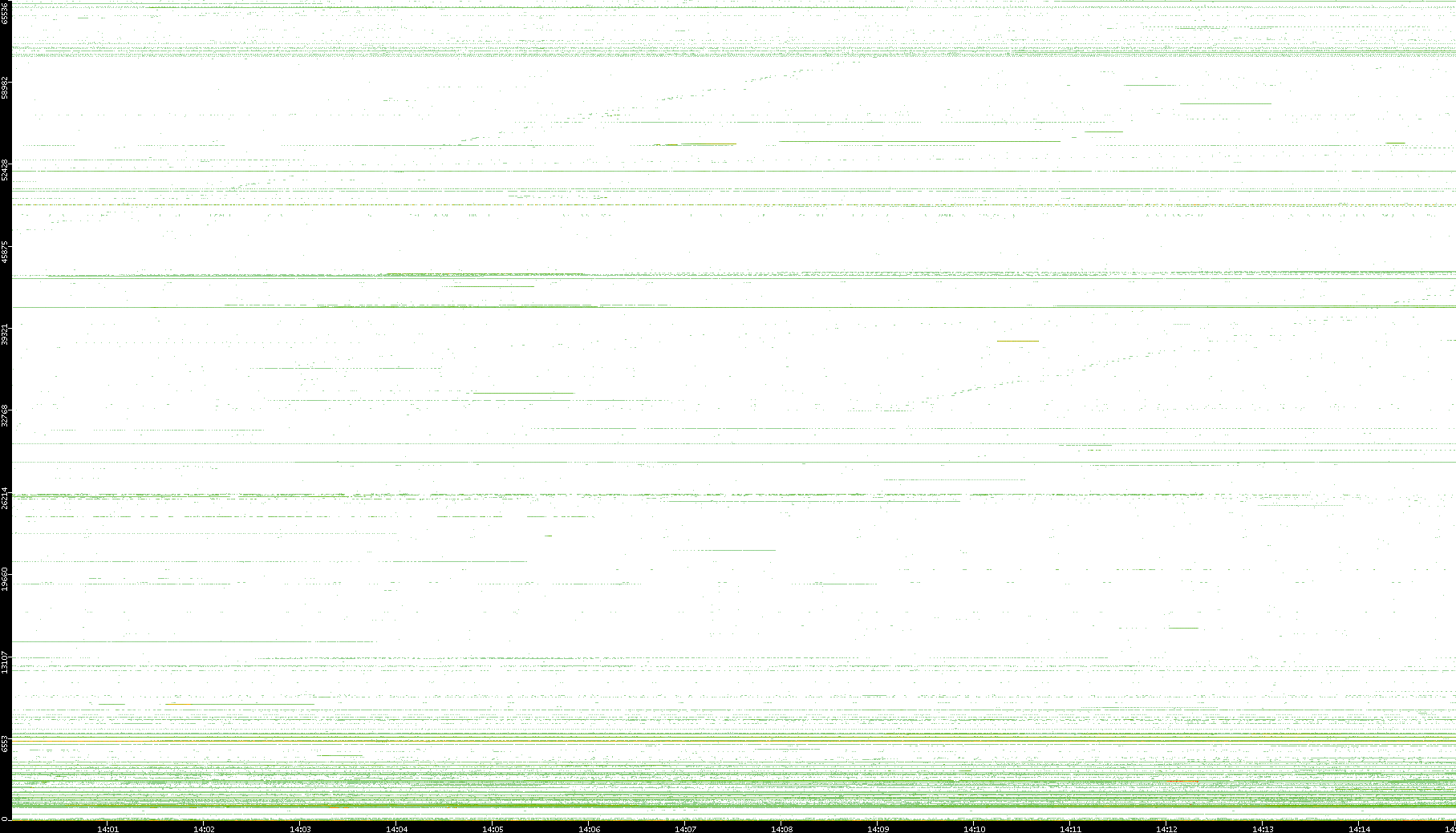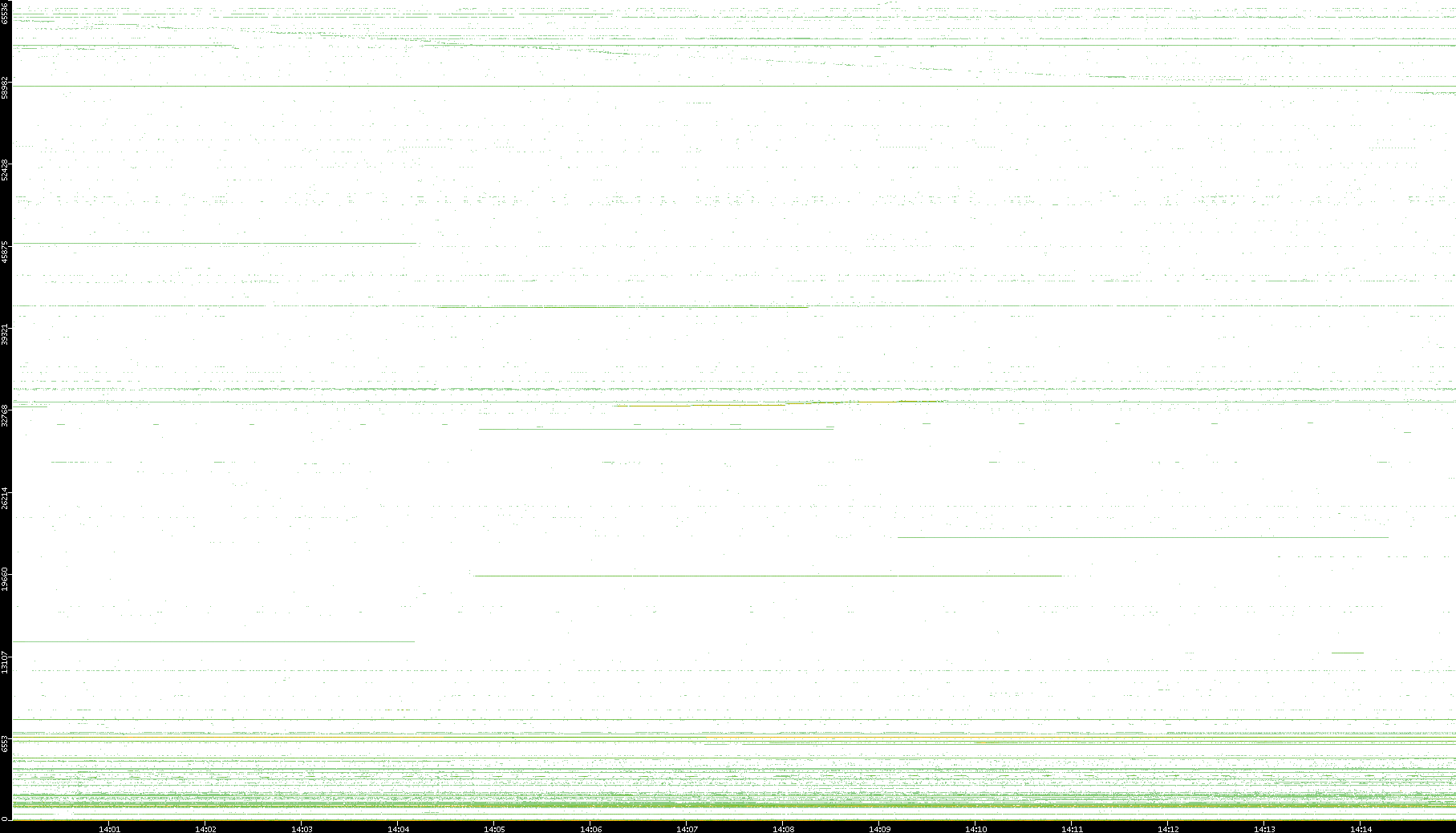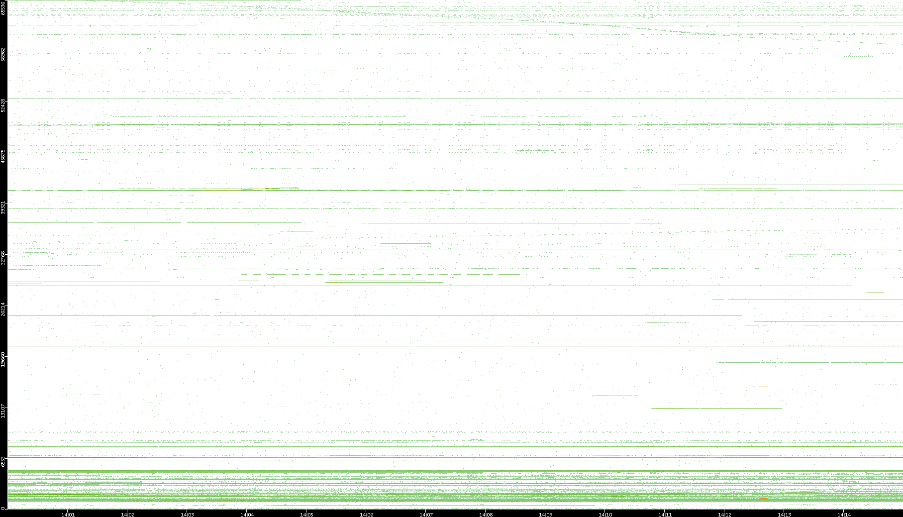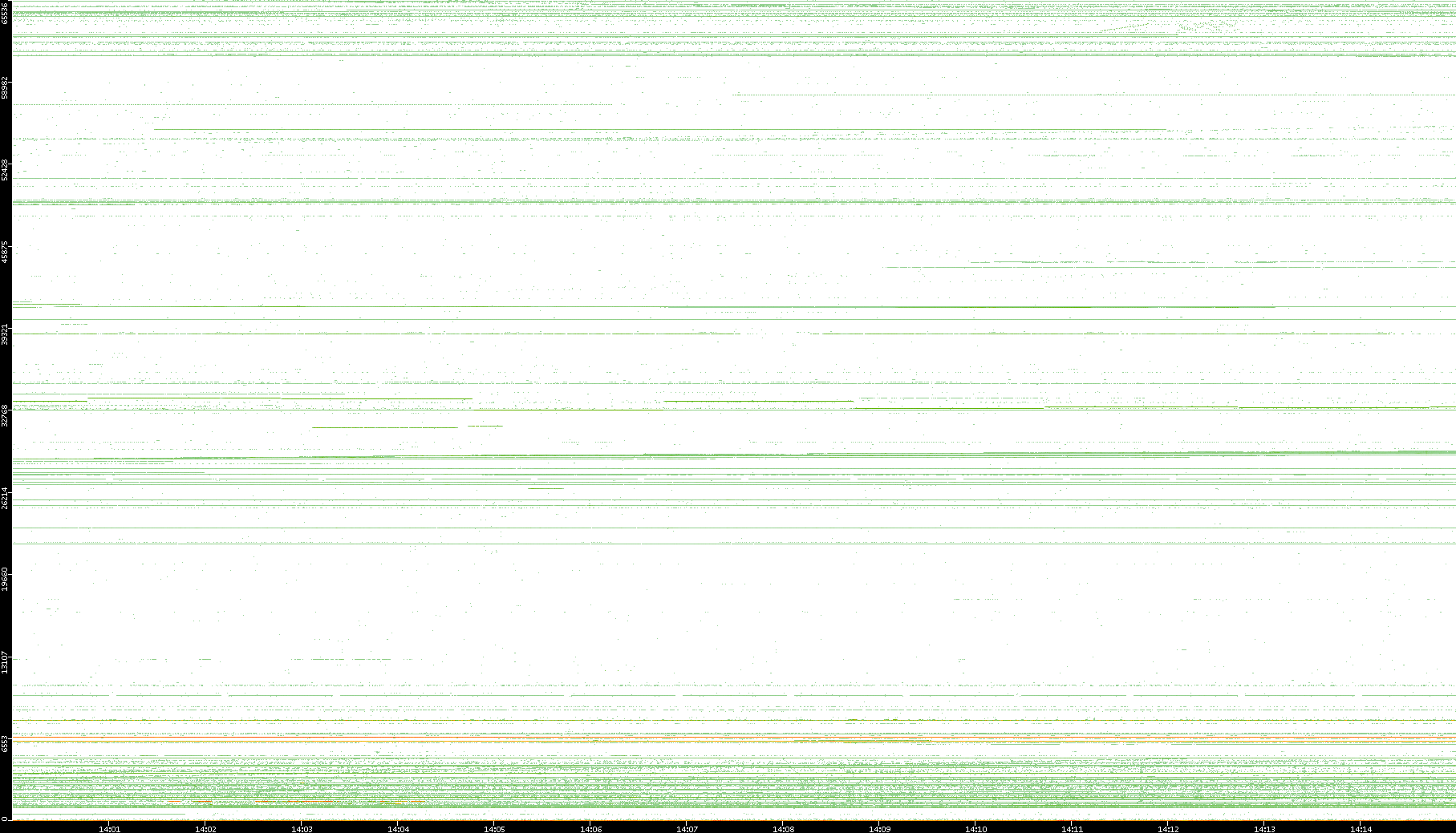 2002/04/14 Dest. IP vs. Time Dest. Port vs. Time Src. IP vs. Time Src. Port vs. Time Nb. of Packets vs. Time Throughput vs. Time Average Packet Size vs. Time Entropy of Port vs. Time