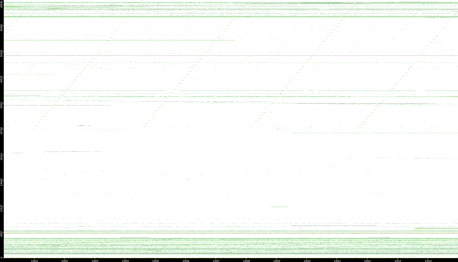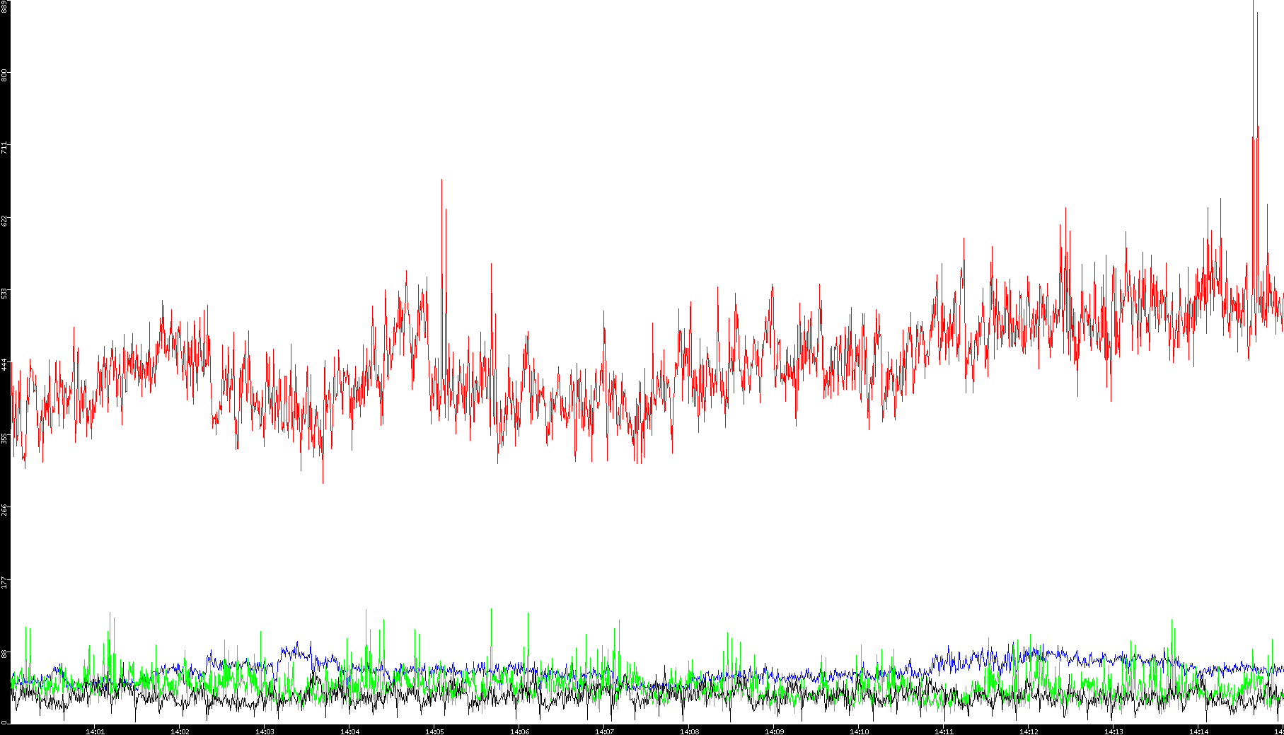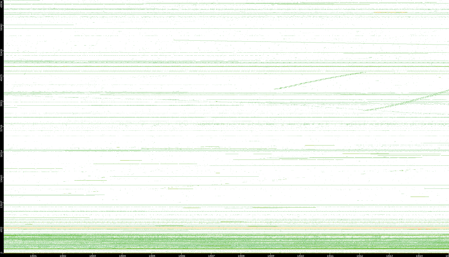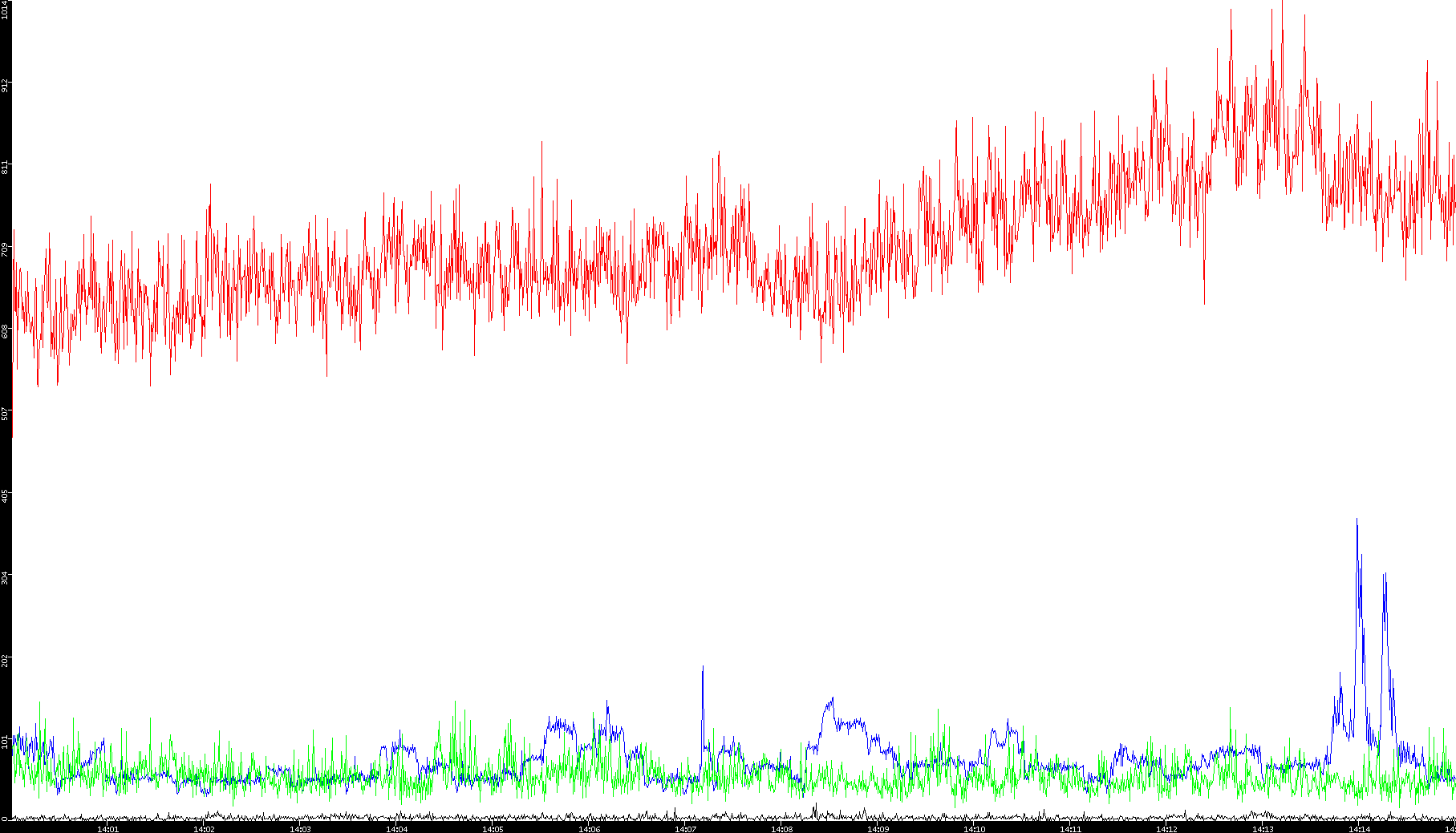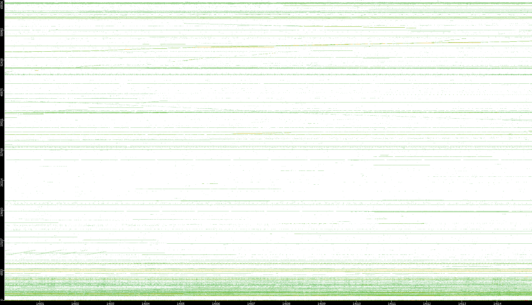 2002/04/14 Dest. IP vs. Time Dest. Port vs. Time Src. IP vs. Time Src. Port vs. Time Nb. of Packets vs. Time Throughput vs. Time Average Packet Size vs. Time Entropy of Port vs. Time