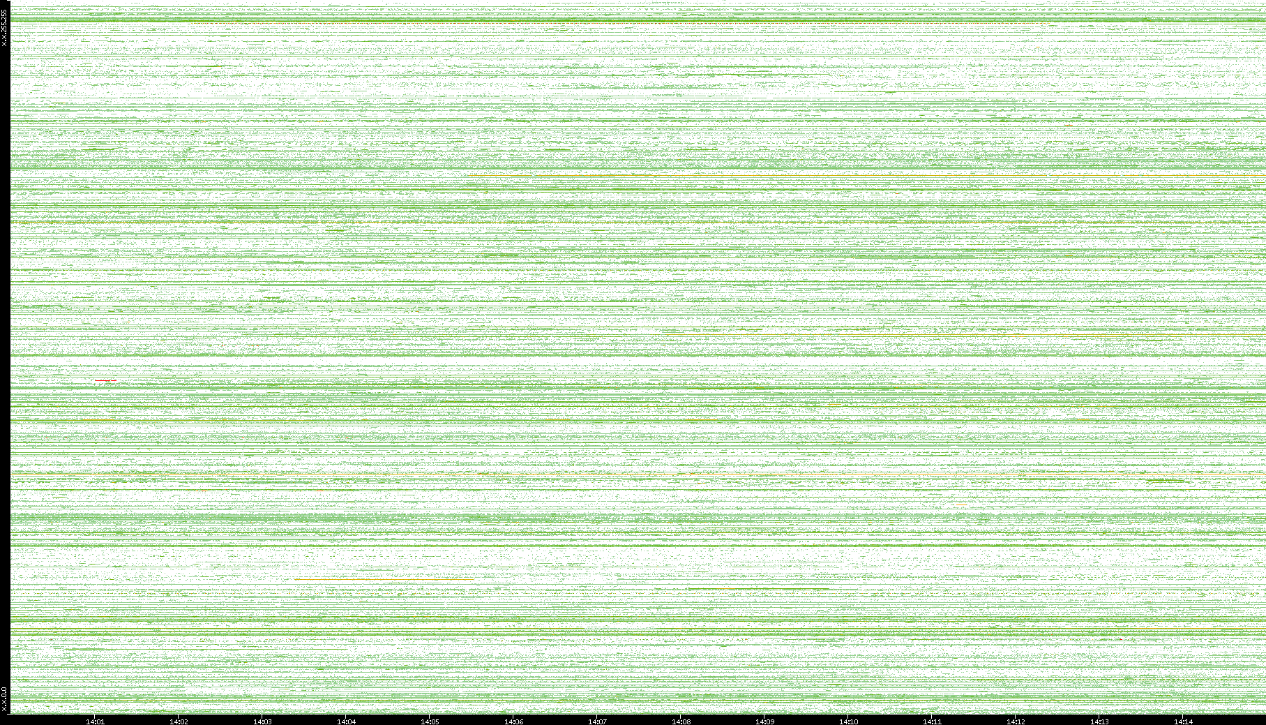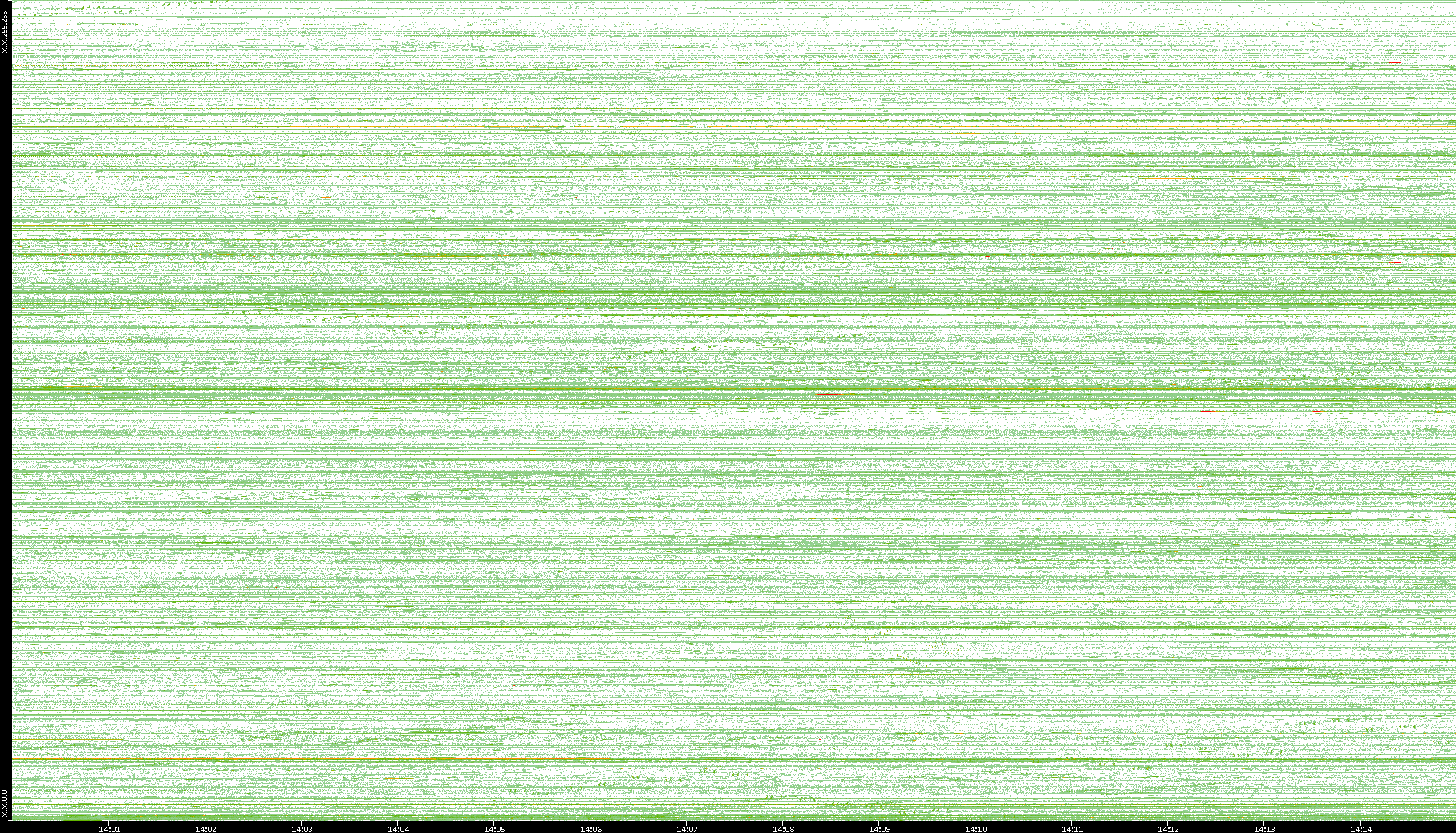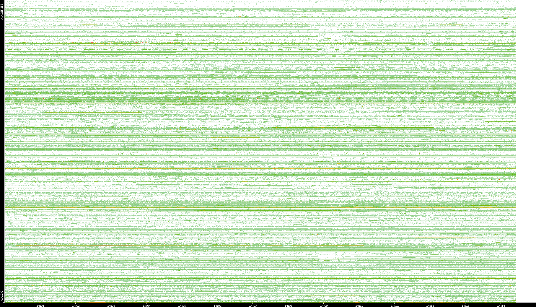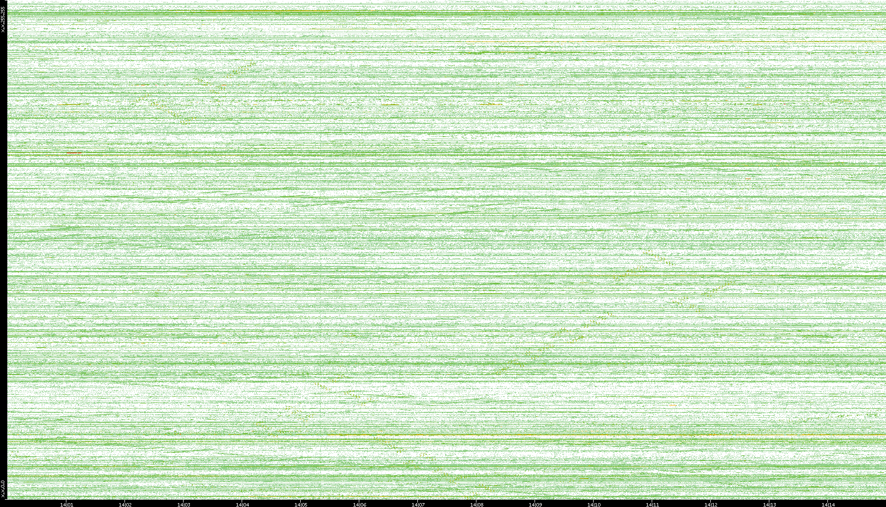 2002/05/14 Dest. IP vs. Time Dest. Port vs. Time Src. IP vs. Time Src. Port vs. Time Nb. of Packets vs. Time Throughput vs. Time Average Packet Size vs. Time Entropy of Port vs. Time
