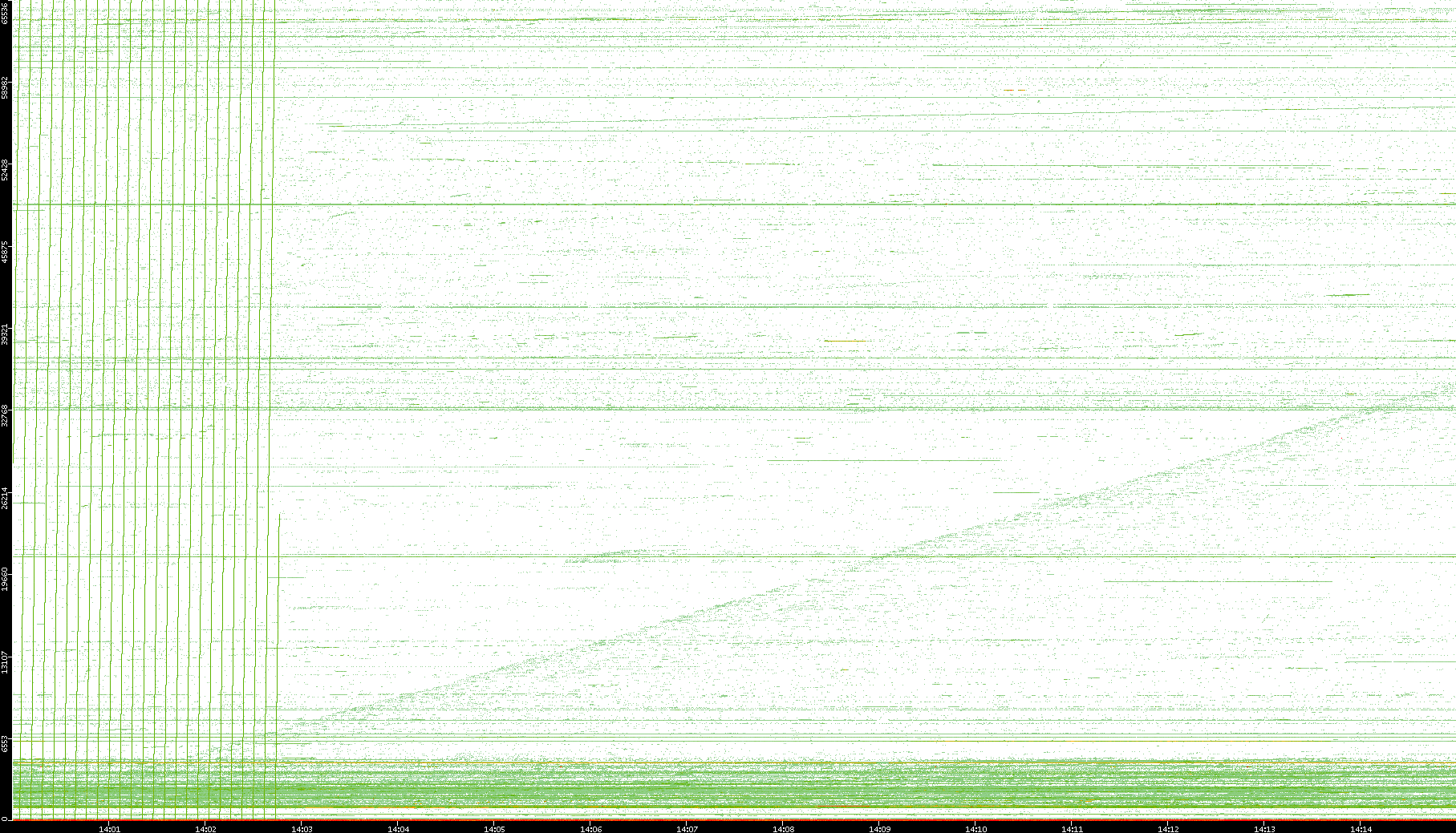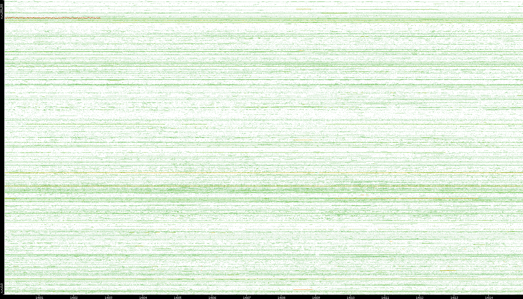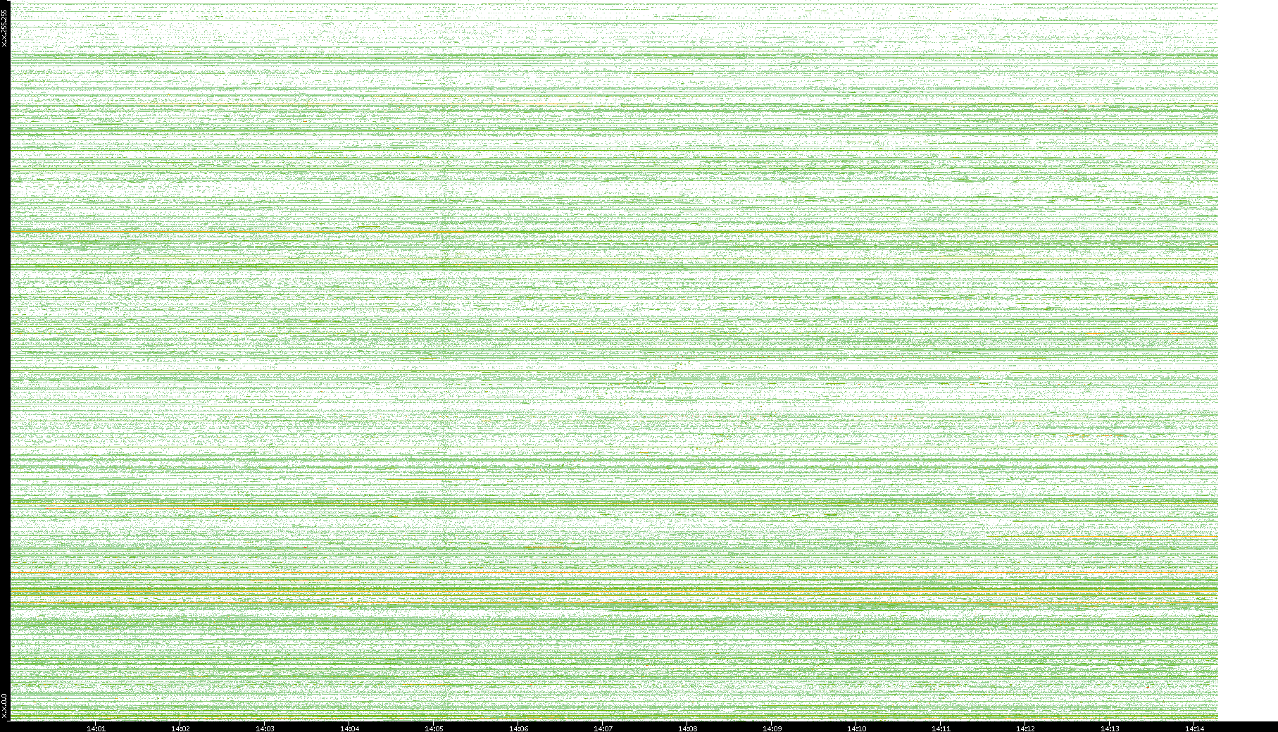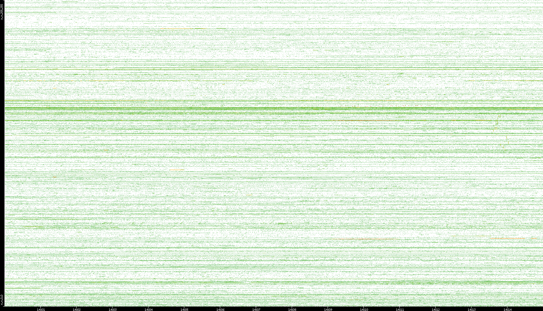 2002/05/14 Dest. IP vs. Time Dest. Port vs. Time Src. IP vs. Time Src. Port vs. Time Nb. of Packets vs. Time Throughput vs. Time Average Packet Size vs. Time Entropy of Port vs. Time