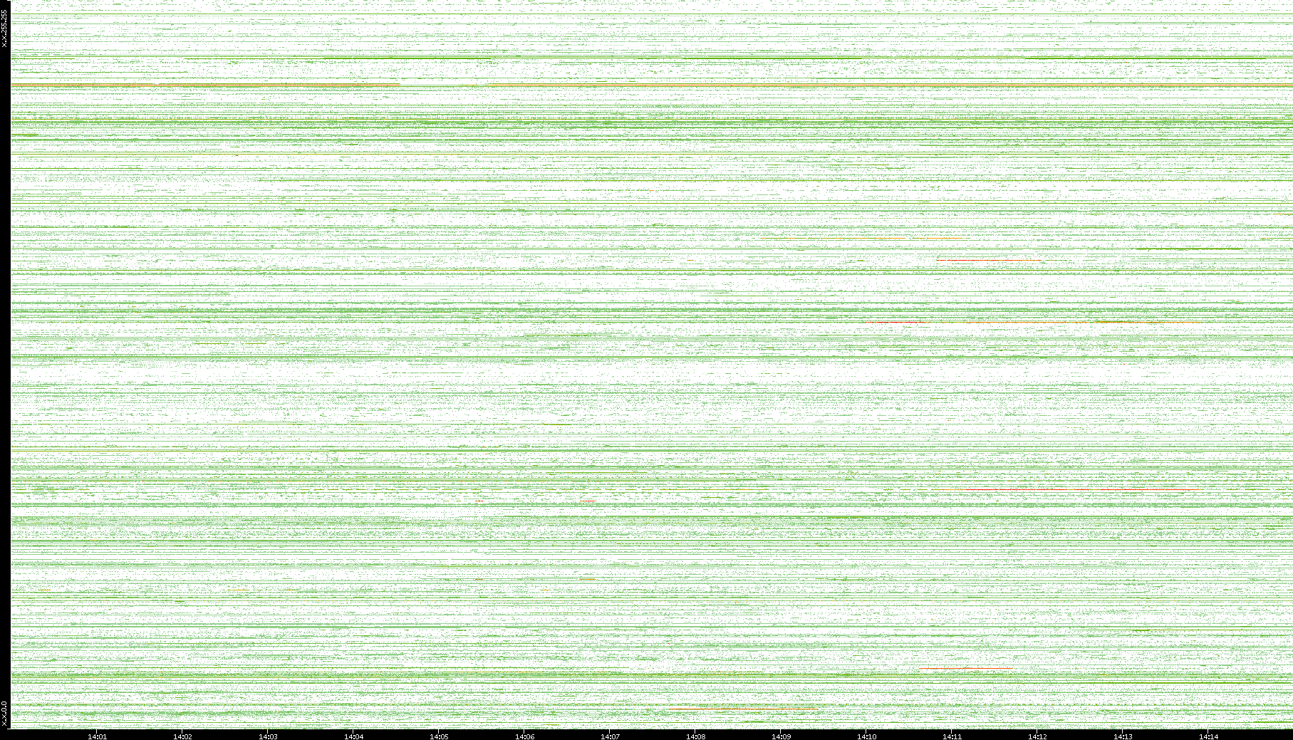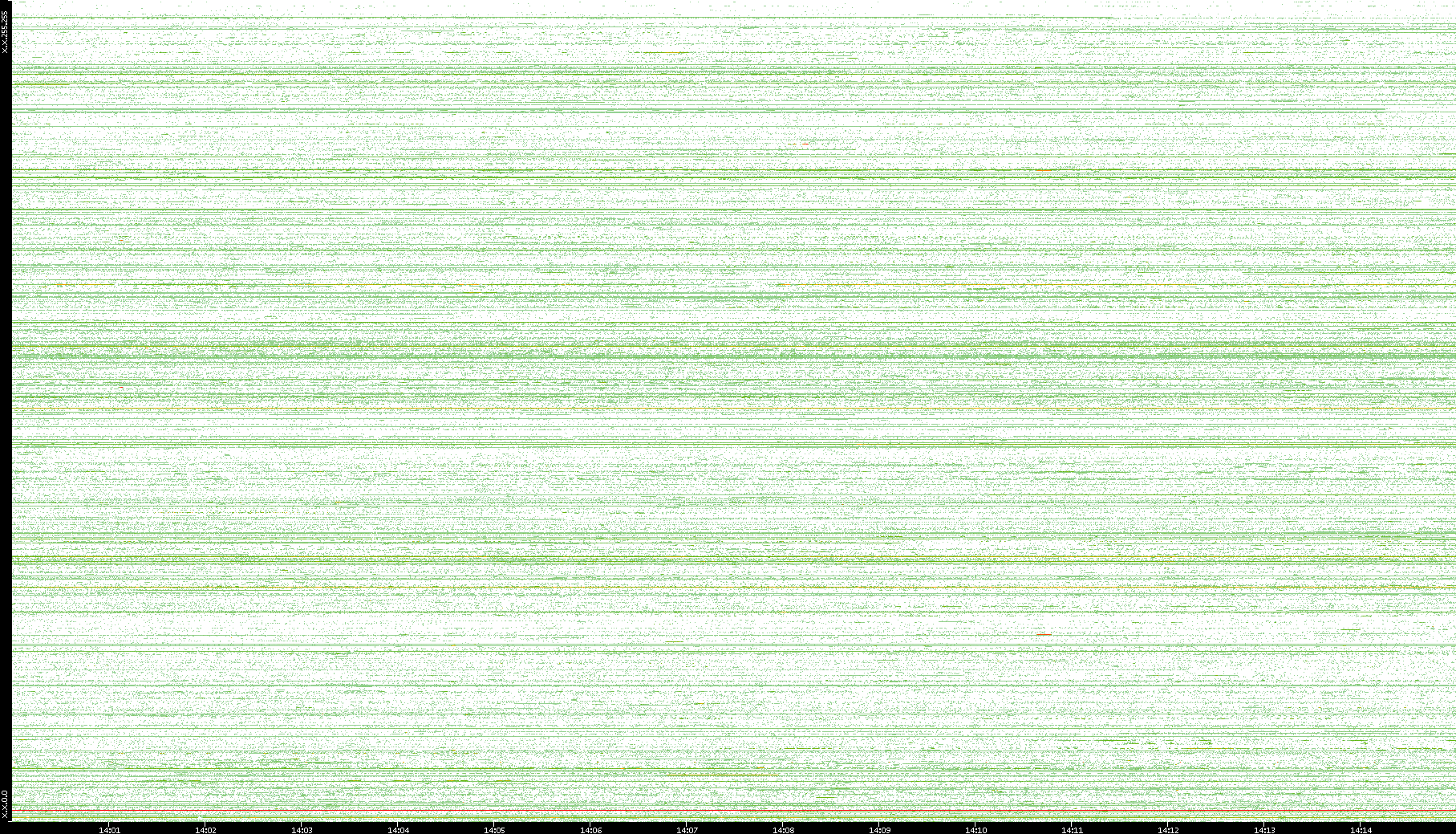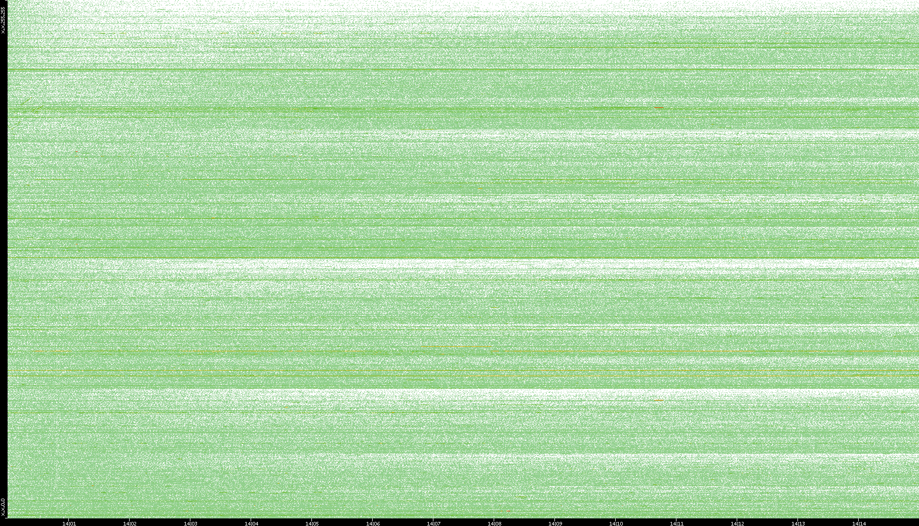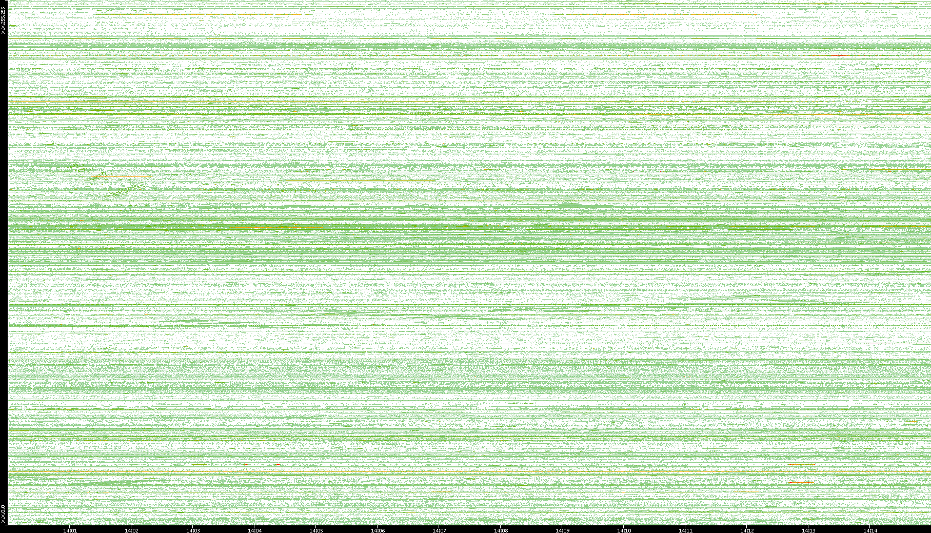 2002/05/14 Dest. IP vs. Time Dest. Port vs. Time Src. IP vs. Time Src. Port vs. Time Nb. of Packets vs. Time Throughput vs. Time Average Packet Size vs. Time Entropy of Port vs. Time
