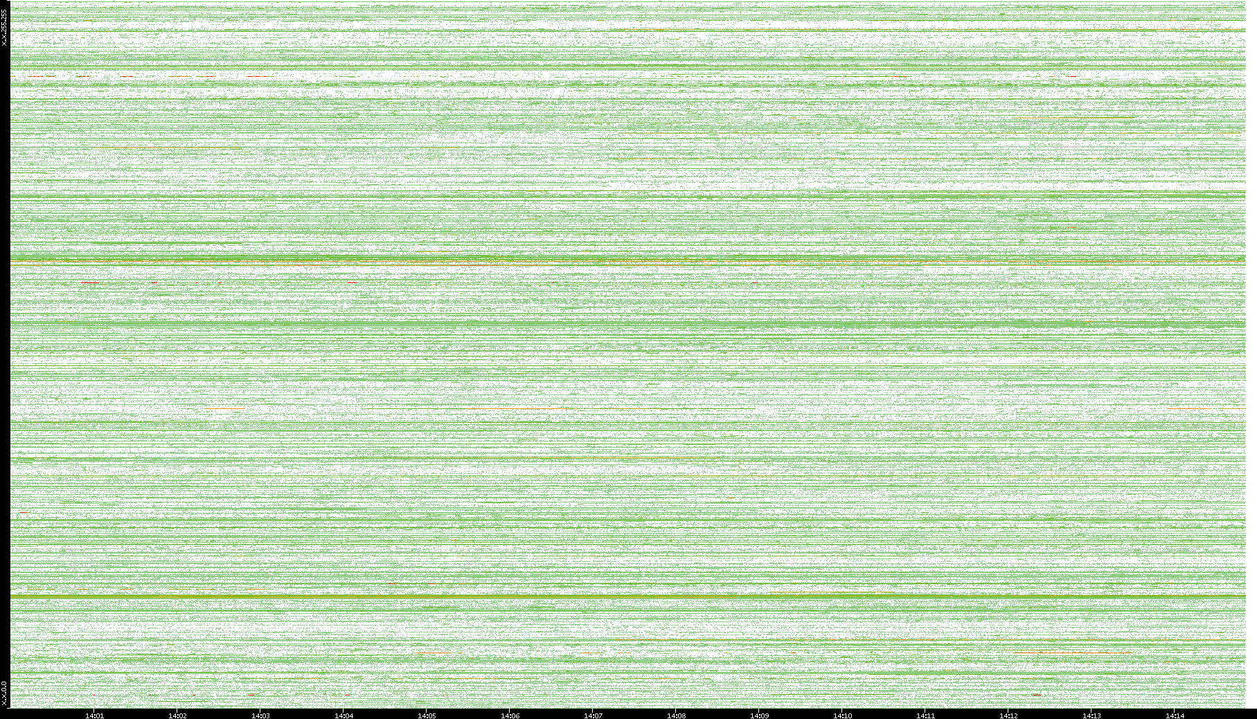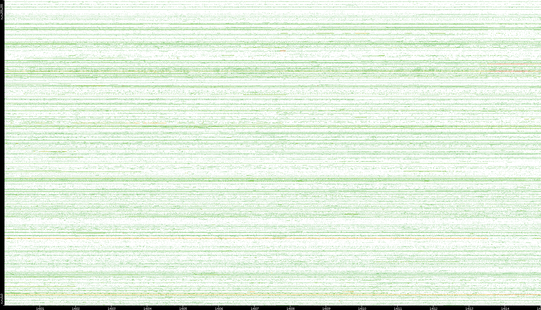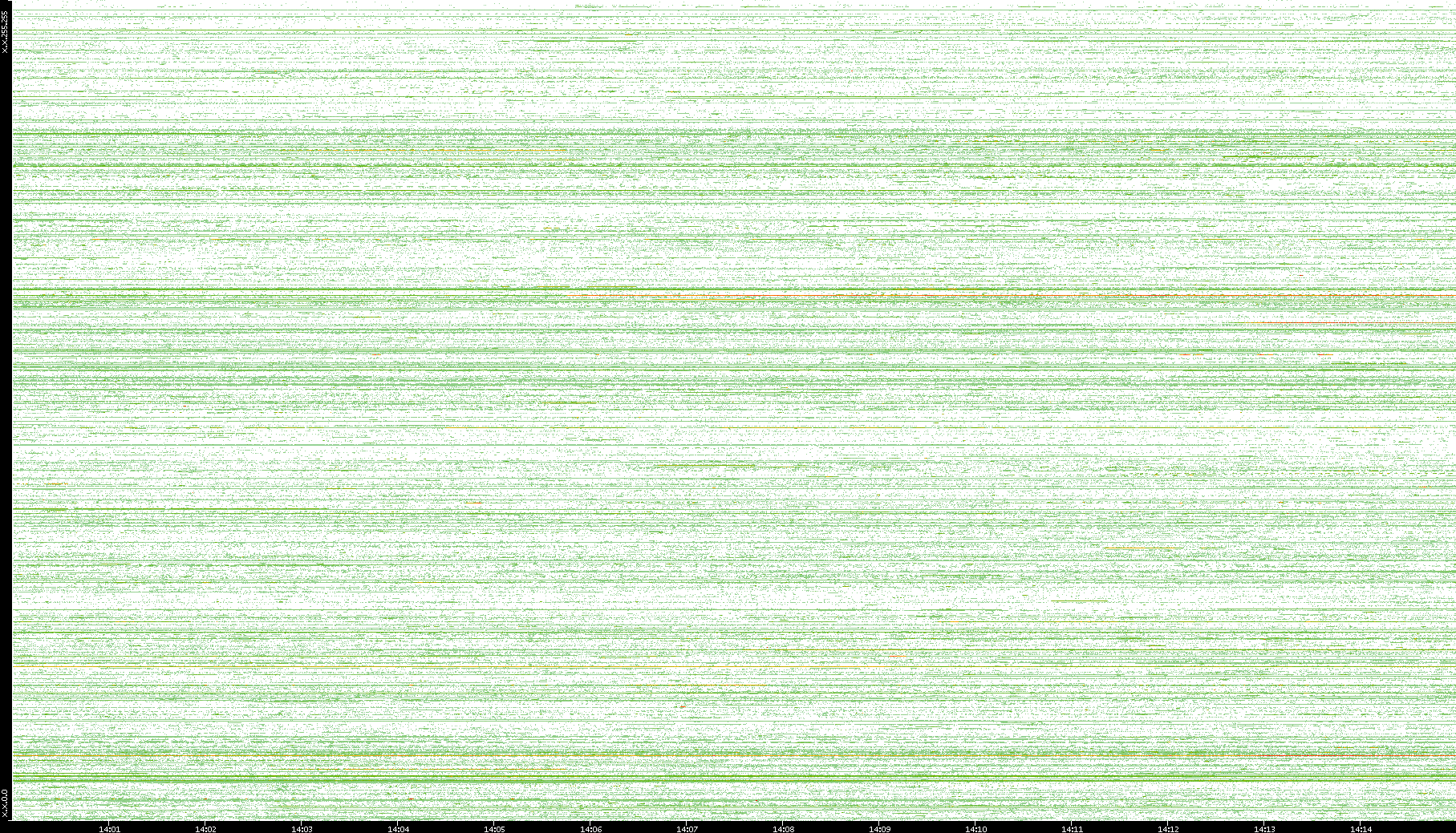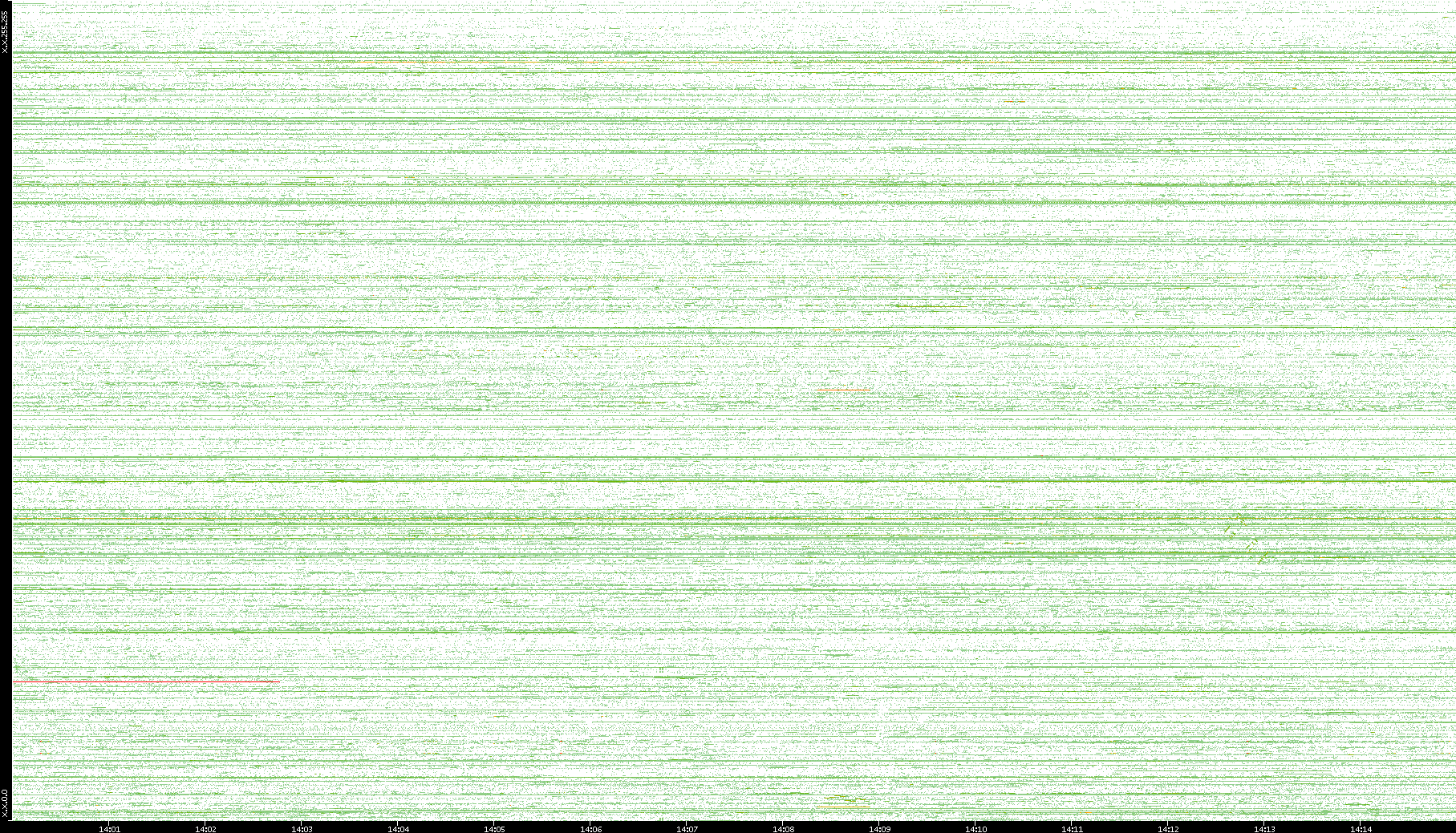 2002/05/14 Dest. IP vs. Time Dest. Port vs. Time Src. IP vs. Time Src. Port vs. Time Nb. of Packets vs. Time Throughput vs. Time Average Packet Size vs. Time Entropy of Port vs. Time