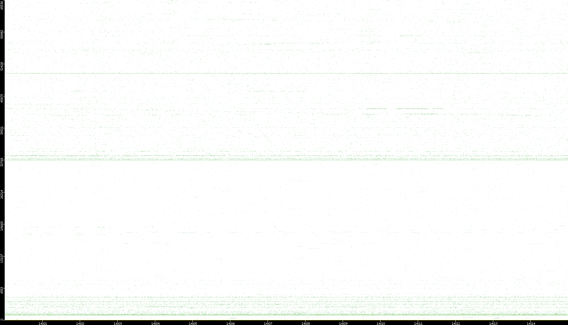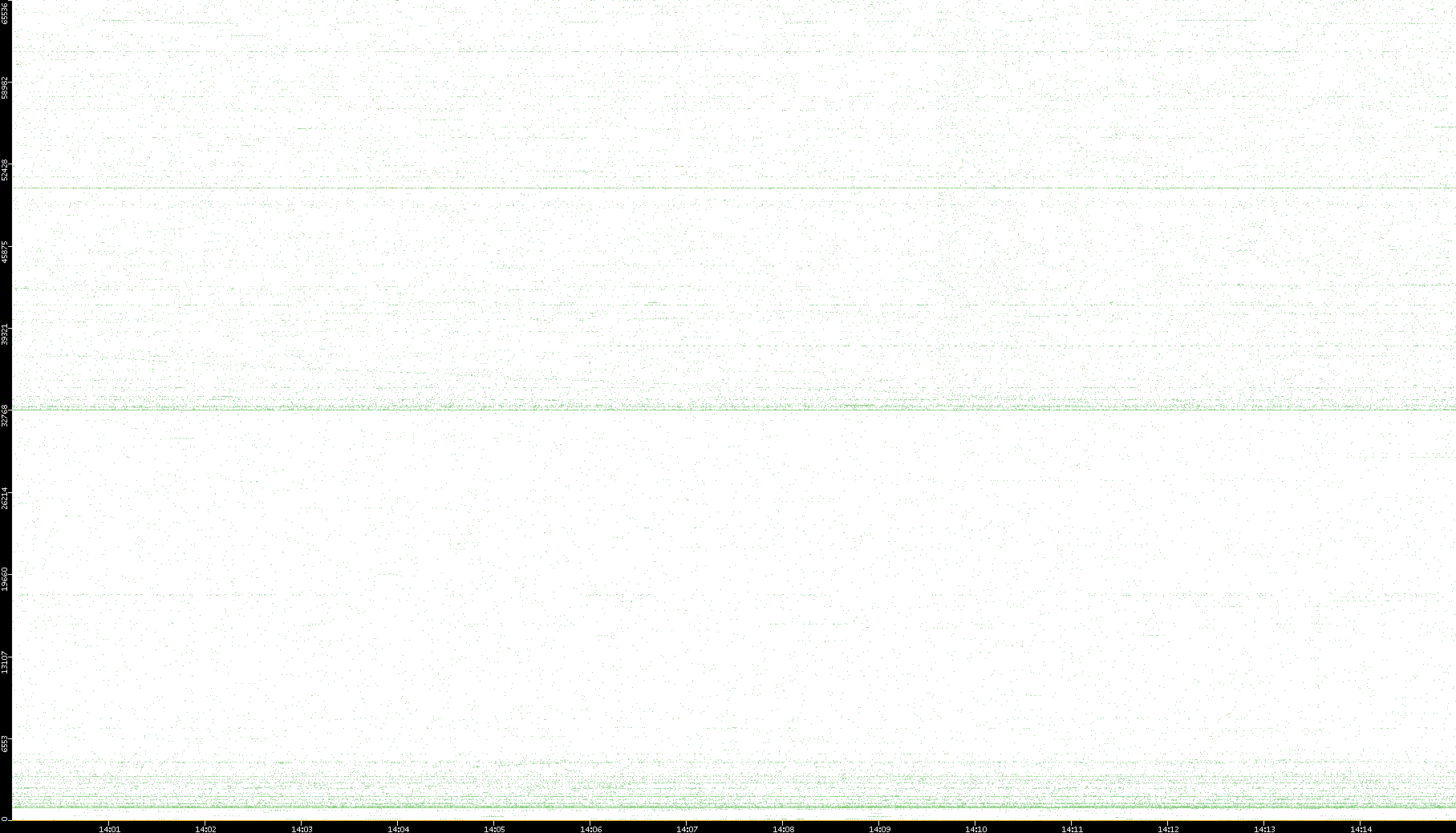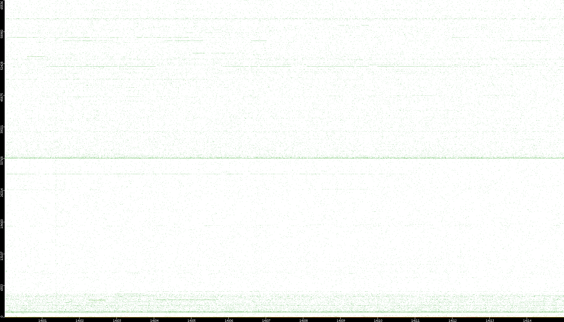 | Date | Dest. IP vs. Time | Dest. Port vs. Time | Src. IP vs. Time | Src. Port vs. Time | Nb. of Packets vs. Time | Throughput vs. Time | Average Packet Size vs. Time | Entropy of Port vs. Time |
