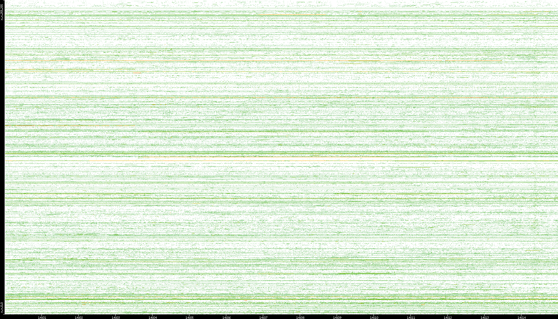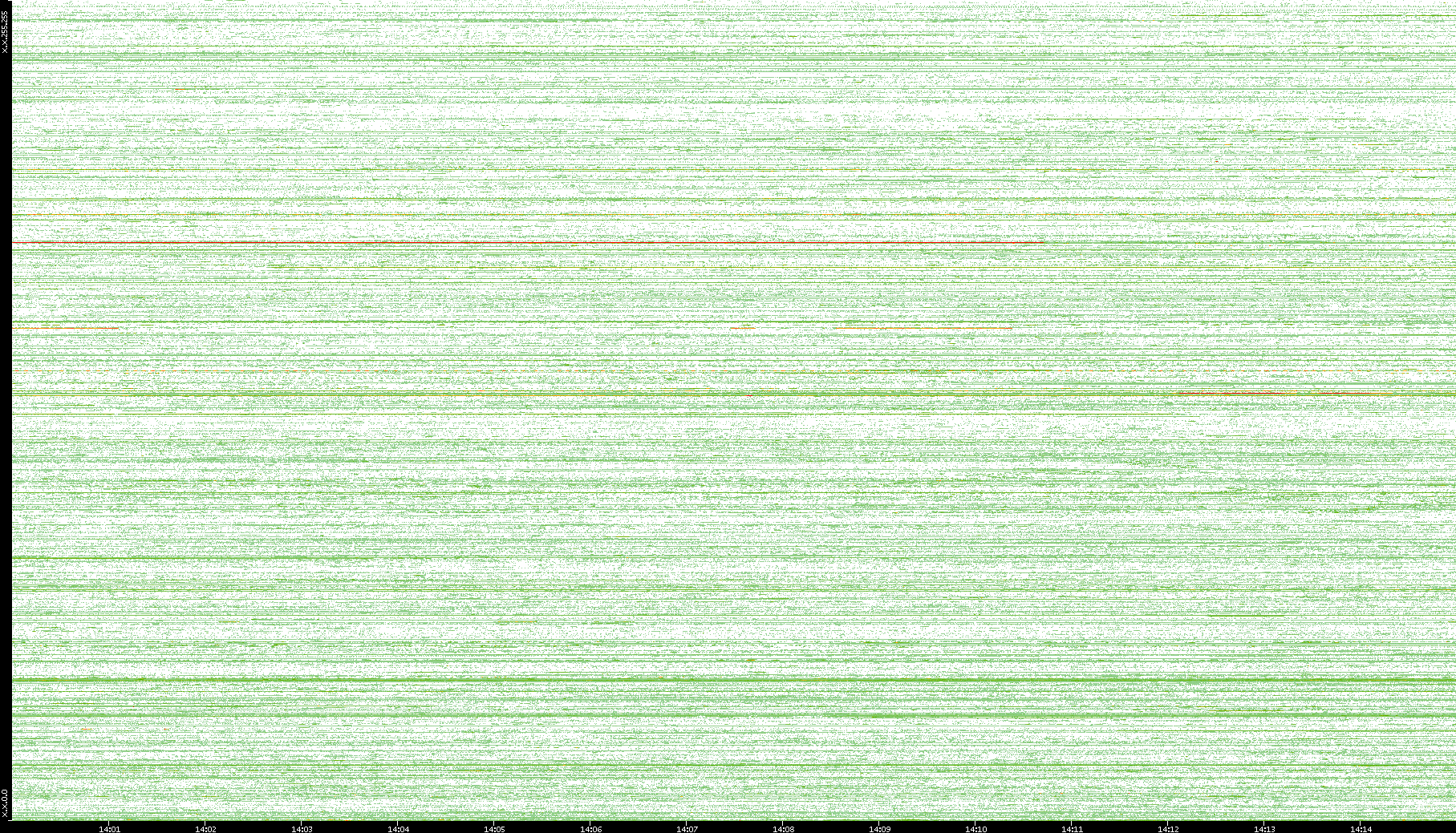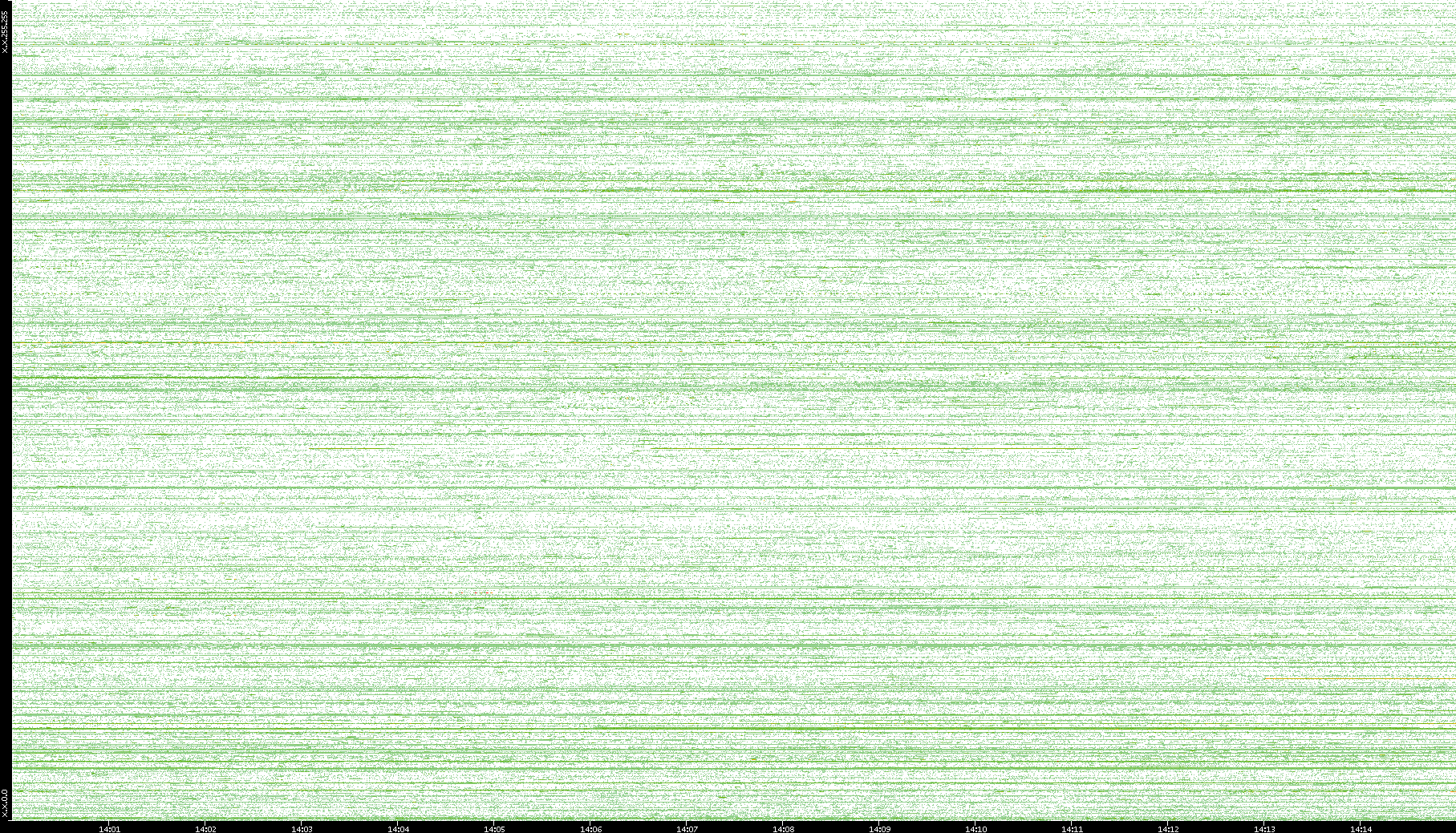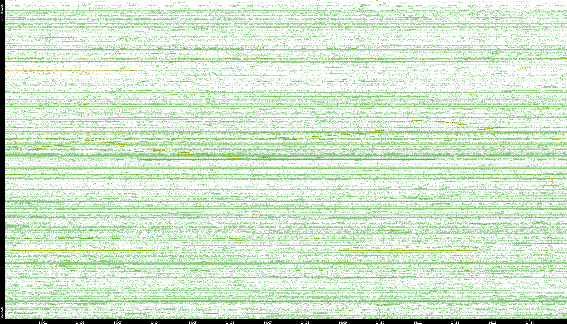 2002/08/01 Dest. IP vs. Time Dest. Port vs. Time Src. IP vs. Time Src. Port vs. Time Nb. of Packets vs. Time Throughput vs. Time Average Packet Size vs. Time Entropy of Port vs. Time