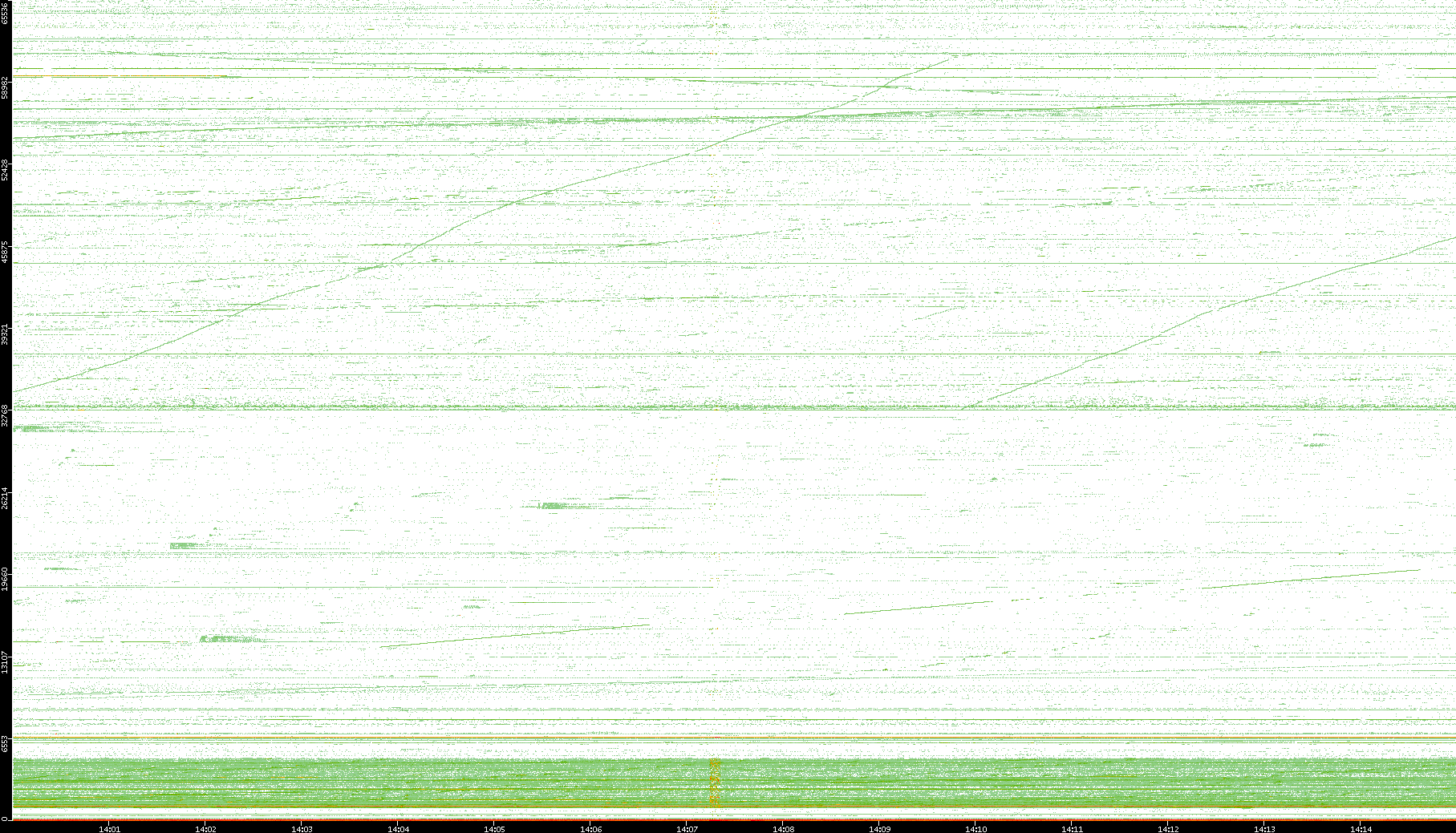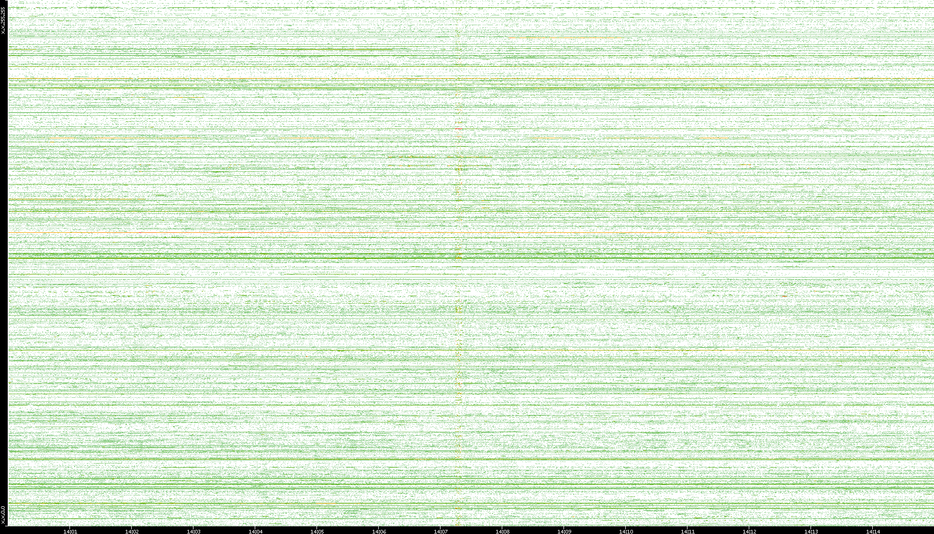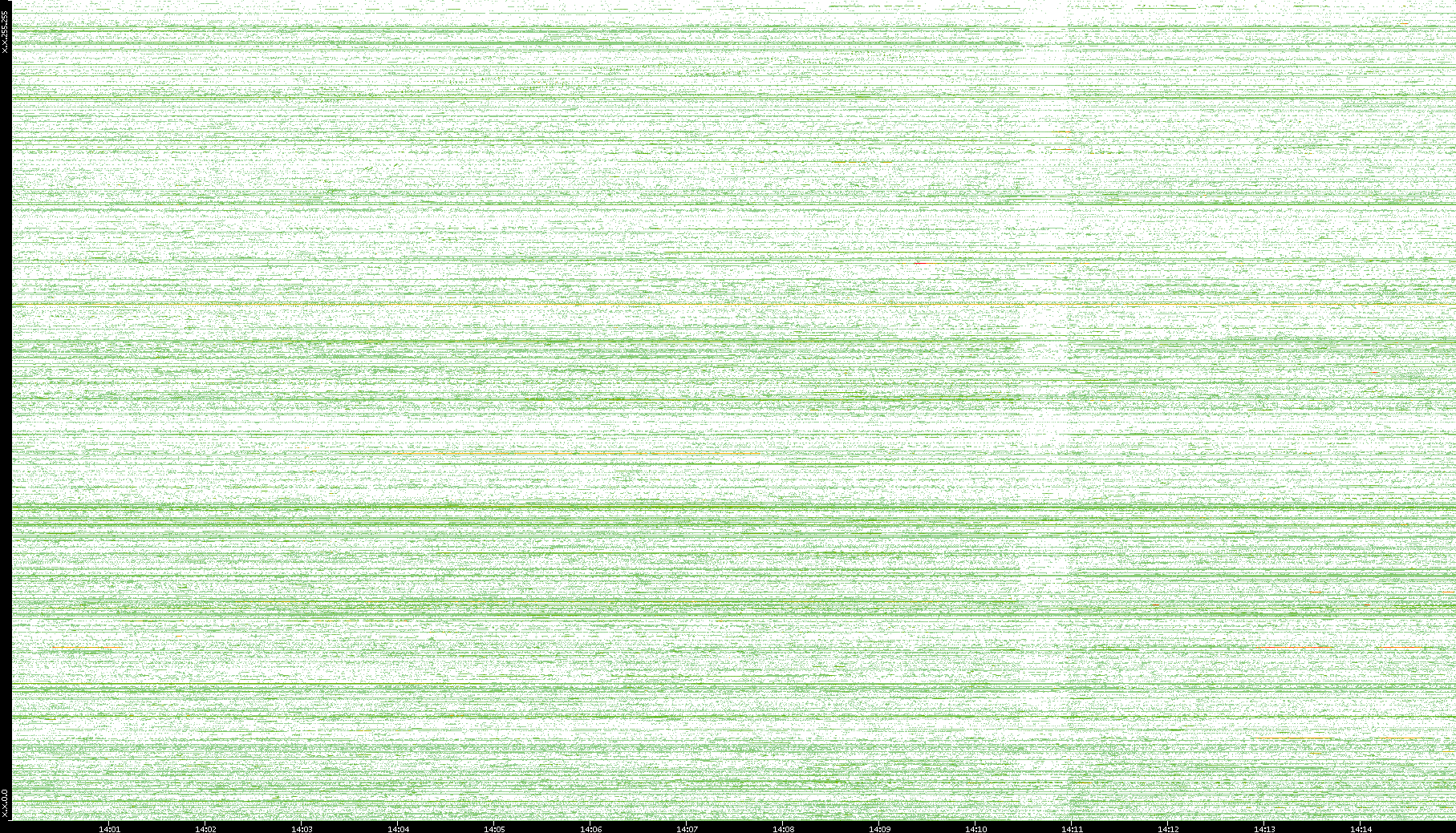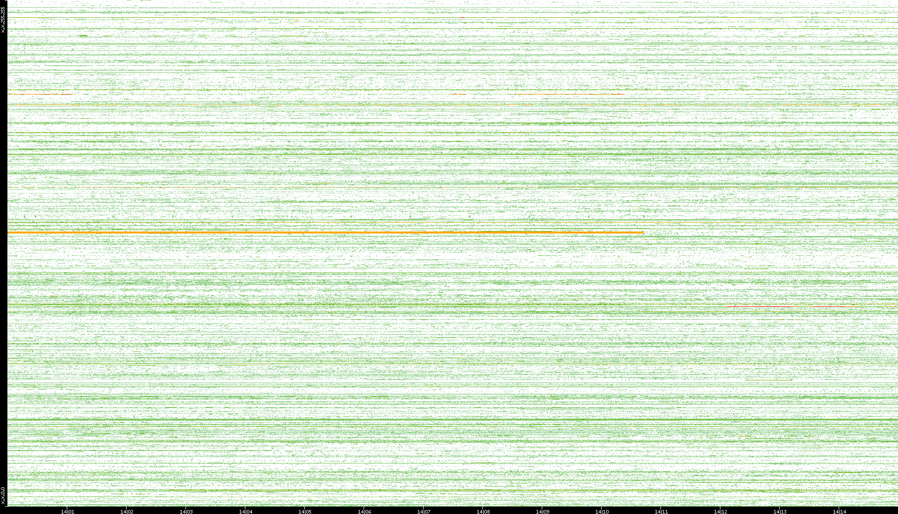 2002/08/01 Dest. IP vs. Time Dest. Port vs. Time Src. IP vs. Time Src. Port vs. Time Nb. of Packets vs. Time Throughput vs. Time Average Packet Size vs. Time Entropy of Port vs. Time