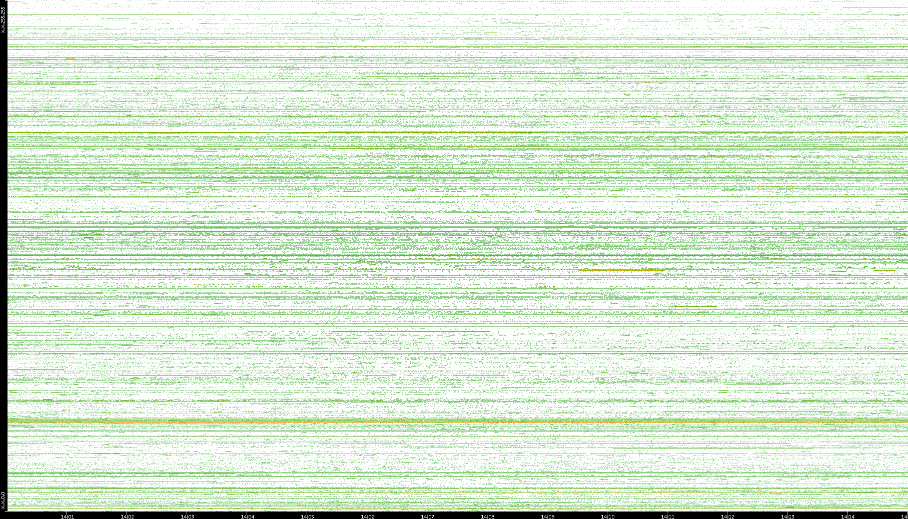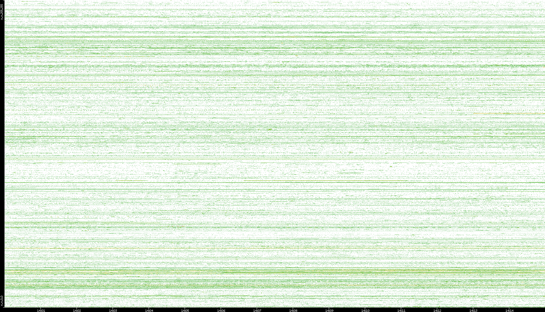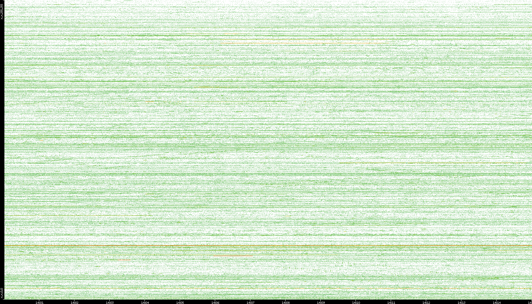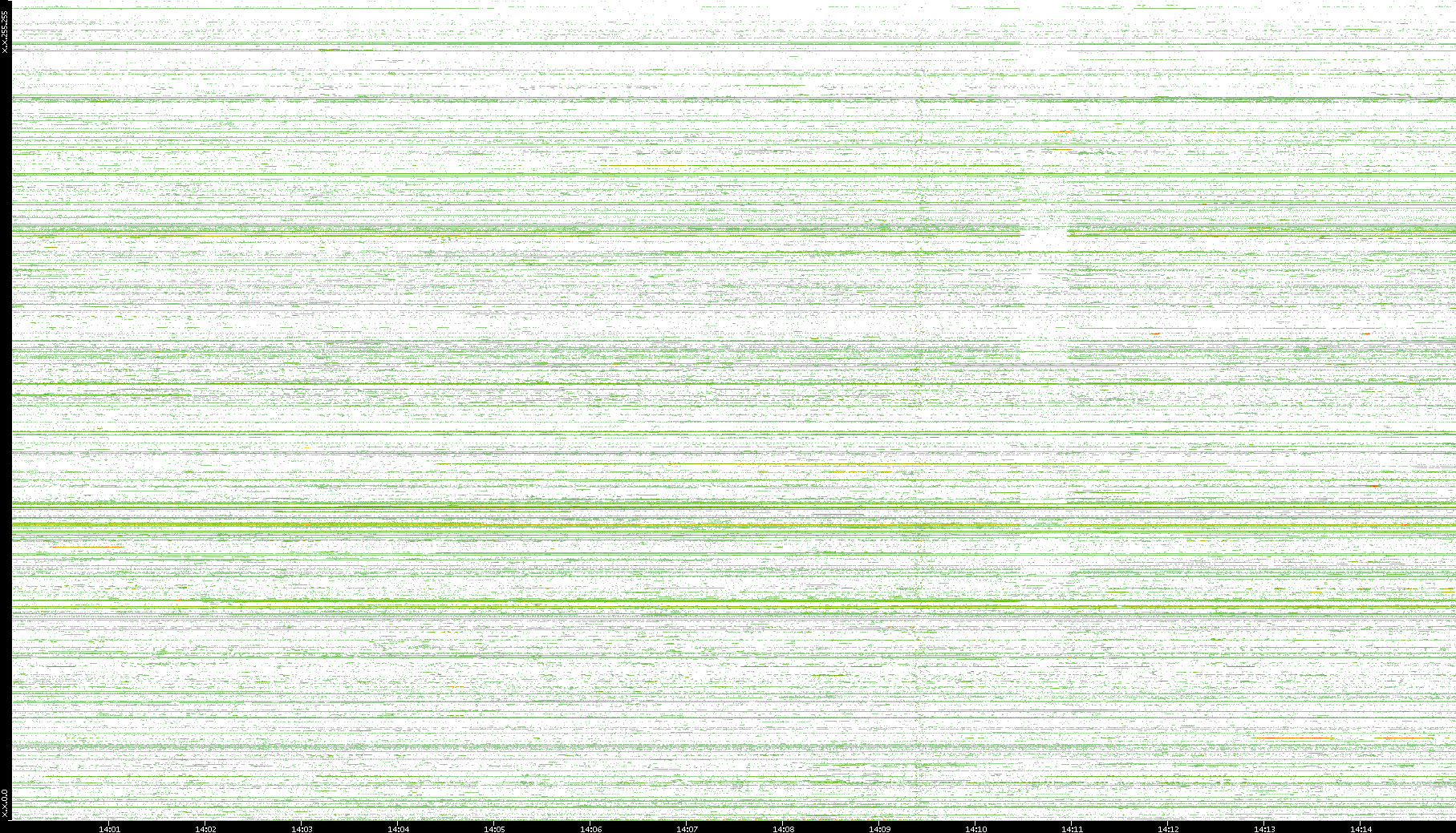 2002/08/01 Dest. IP vs. Time Dest. Port vs. Time Src. IP vs. Time Src. Port vs. Time Nb. of Packets vs. Time Throughput vs. Time Average Packet Size vs. Time Entropy of Port vs. Time