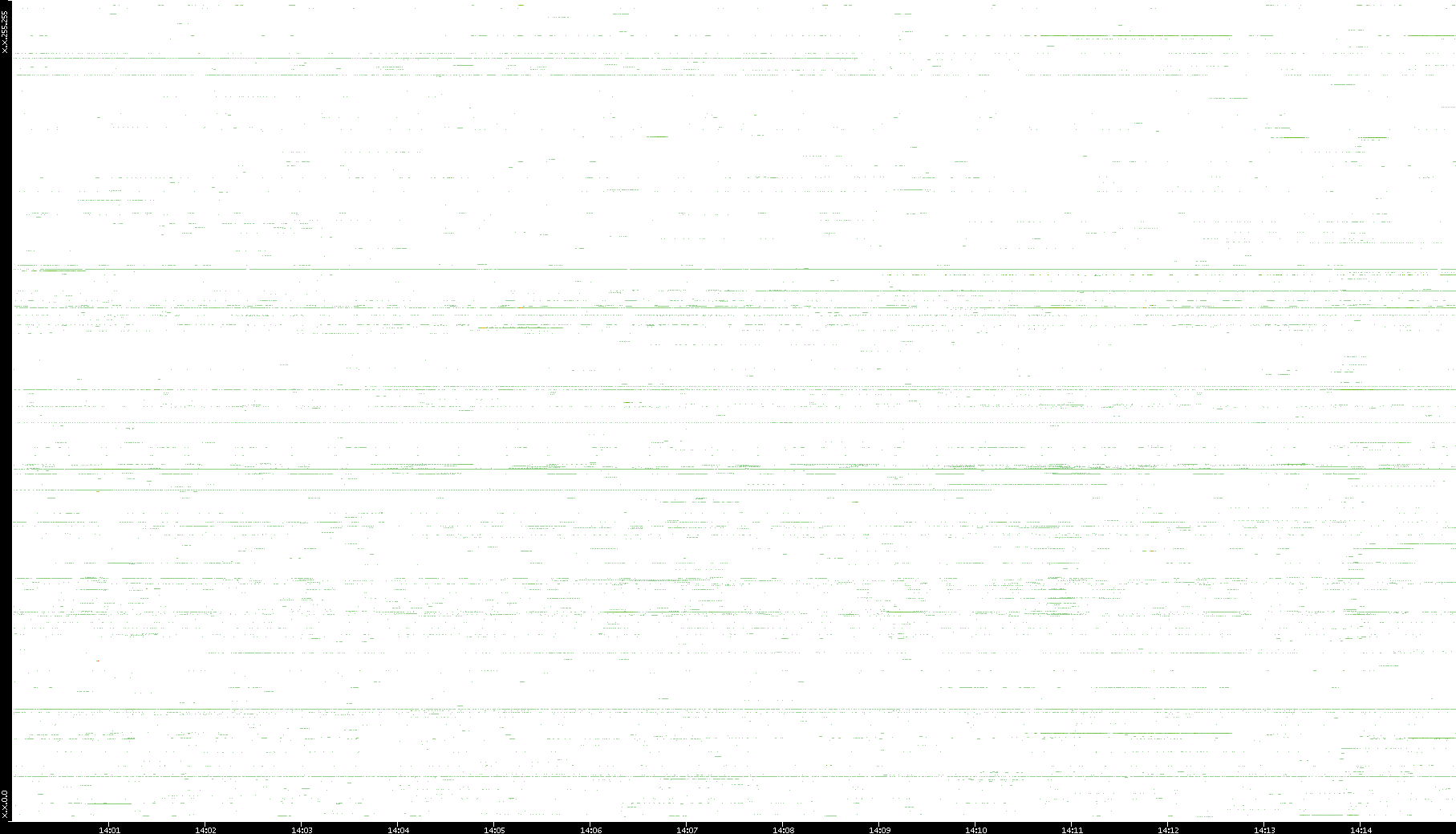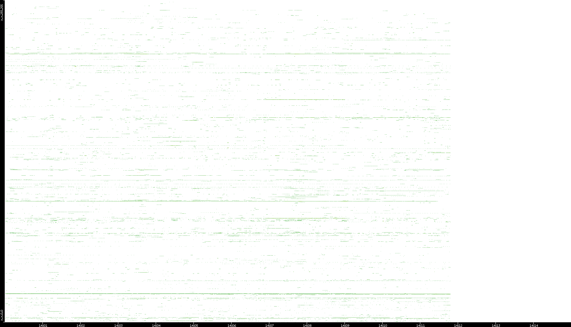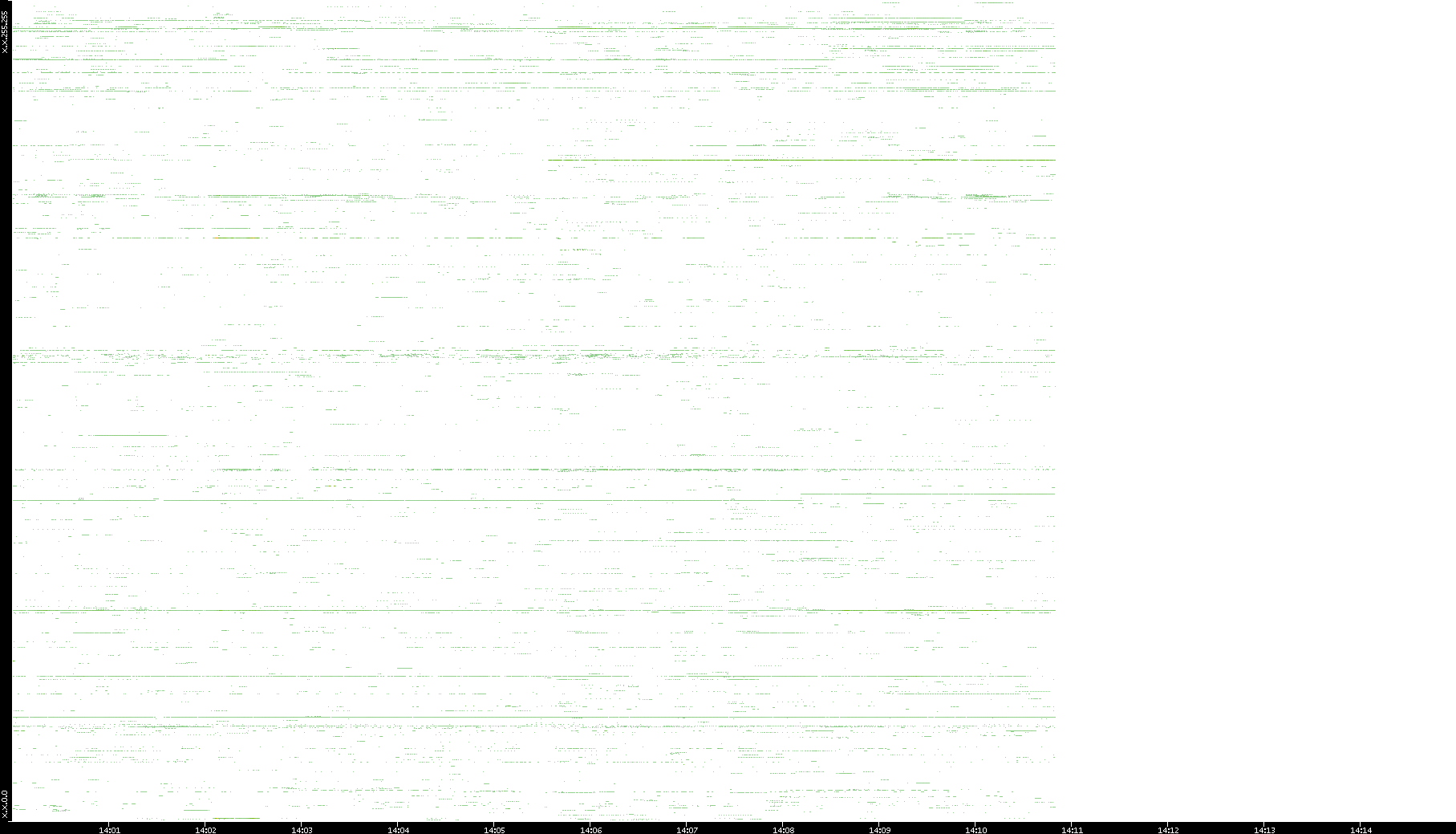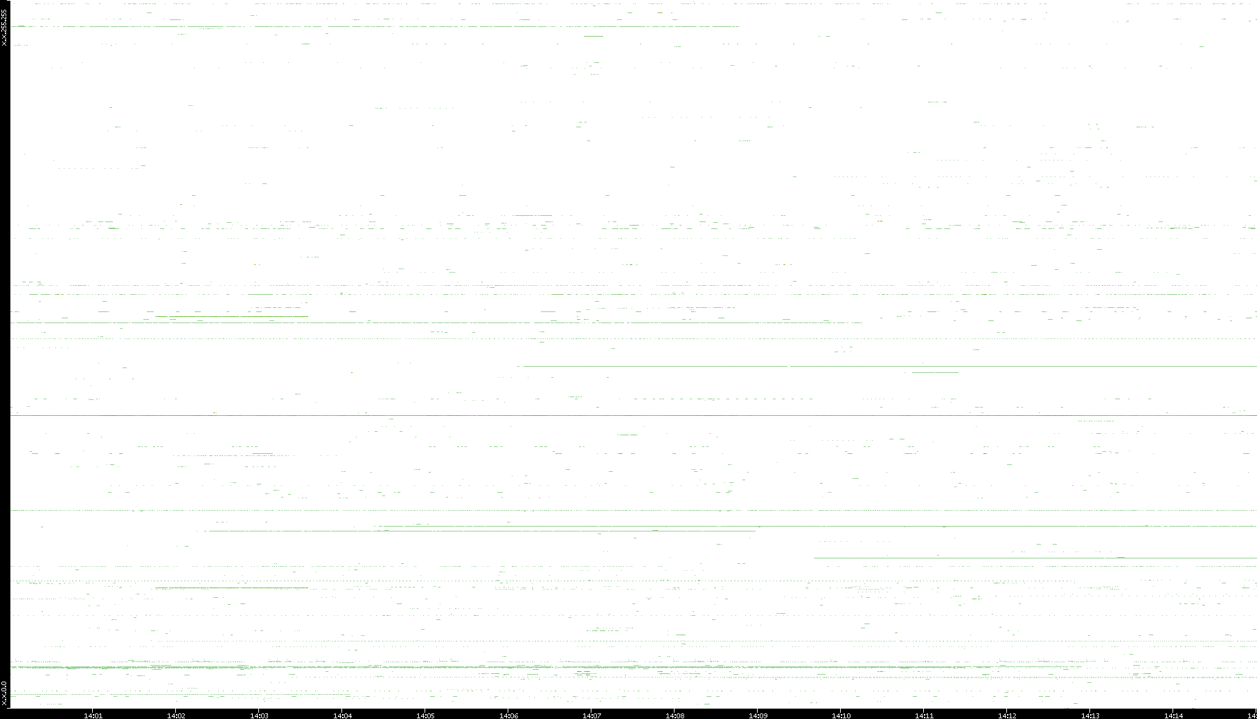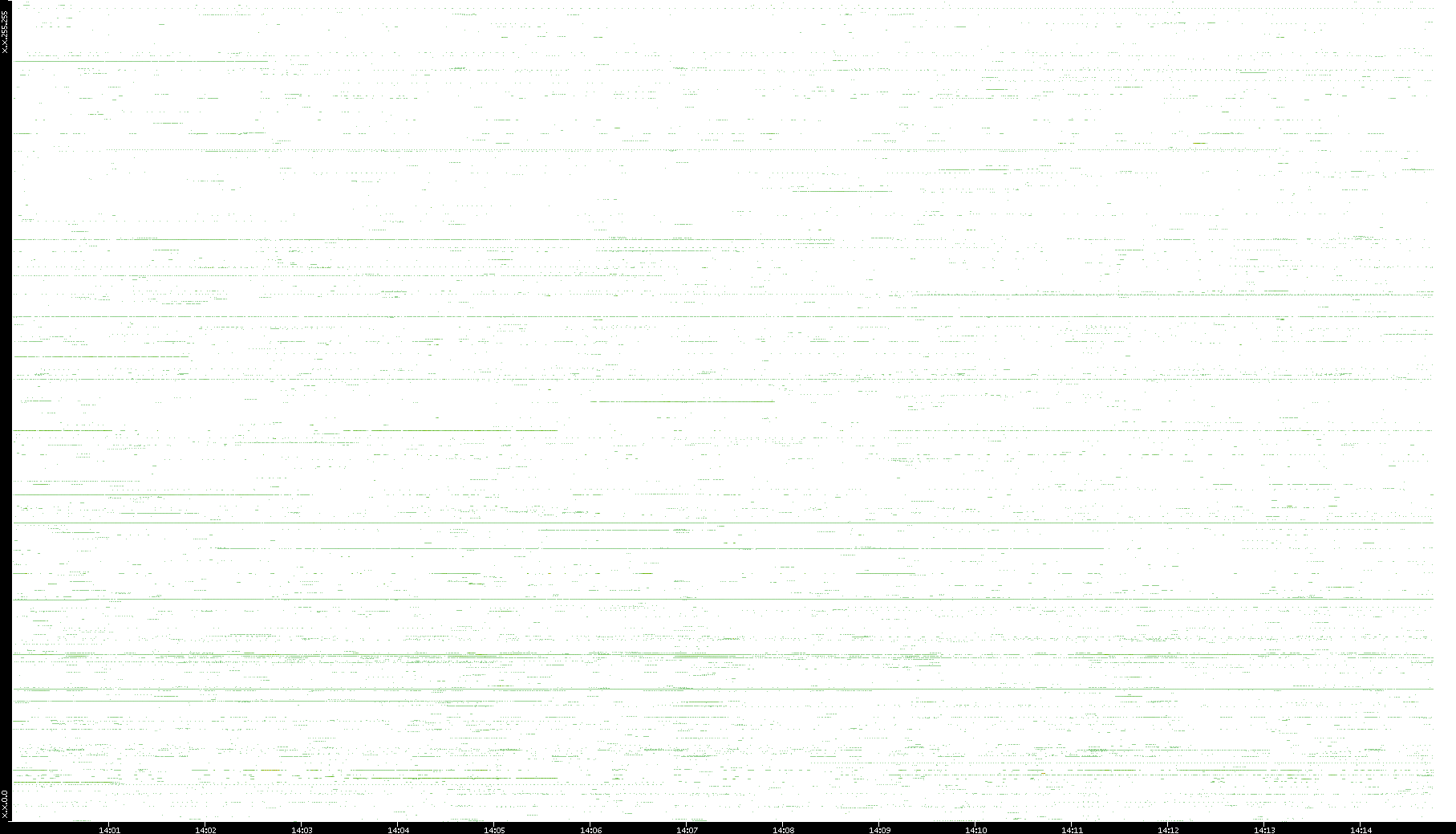 | Date | Dest. IP vs. Time | Dest. Port vs. Time | Src. IP vs. Time | Src. Port vs. Time | Nb. of Packets vs. Time | Throughput vs. Time | Average Packet Size vs. Time | Entropy of Port vs. Time |