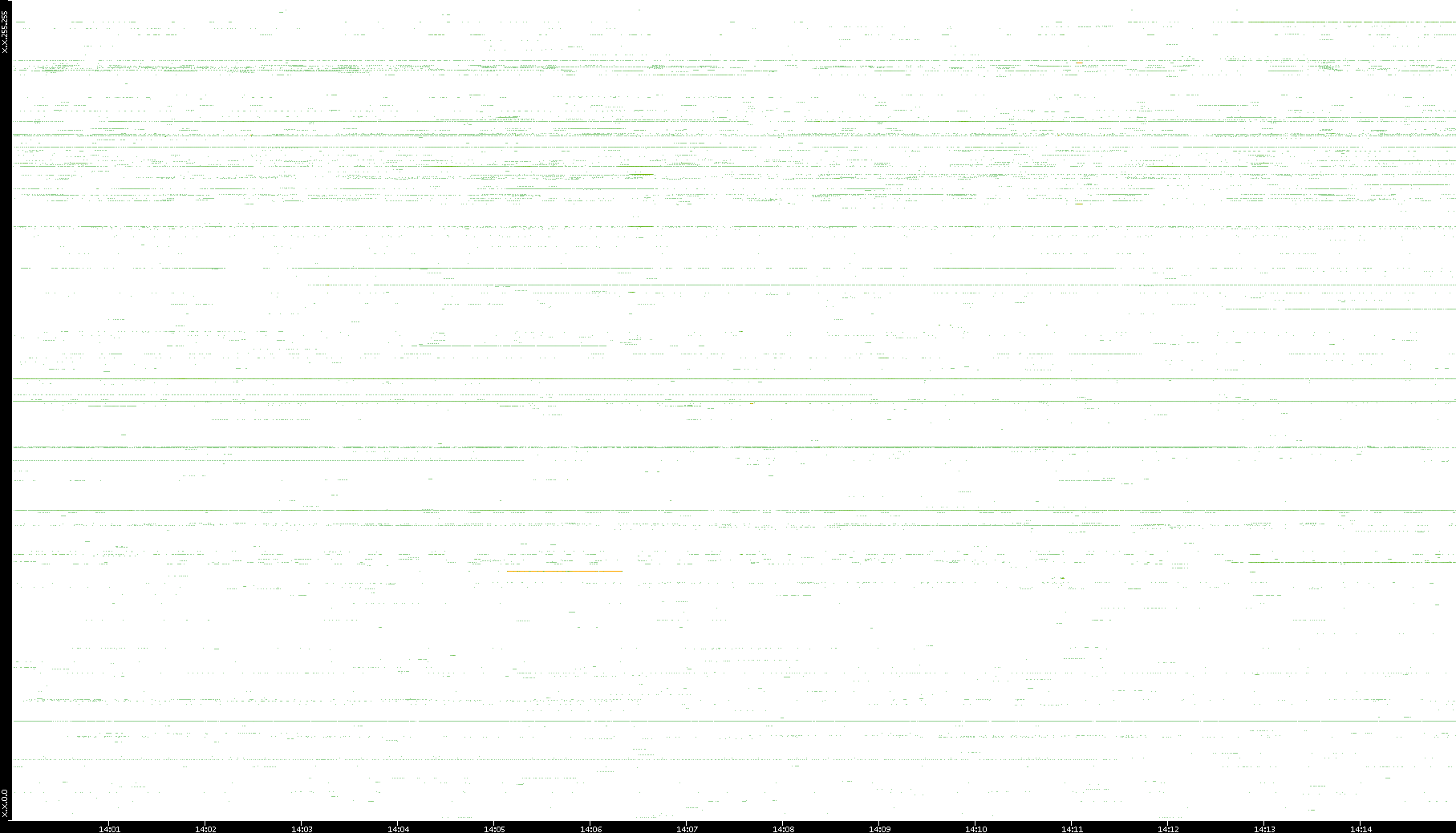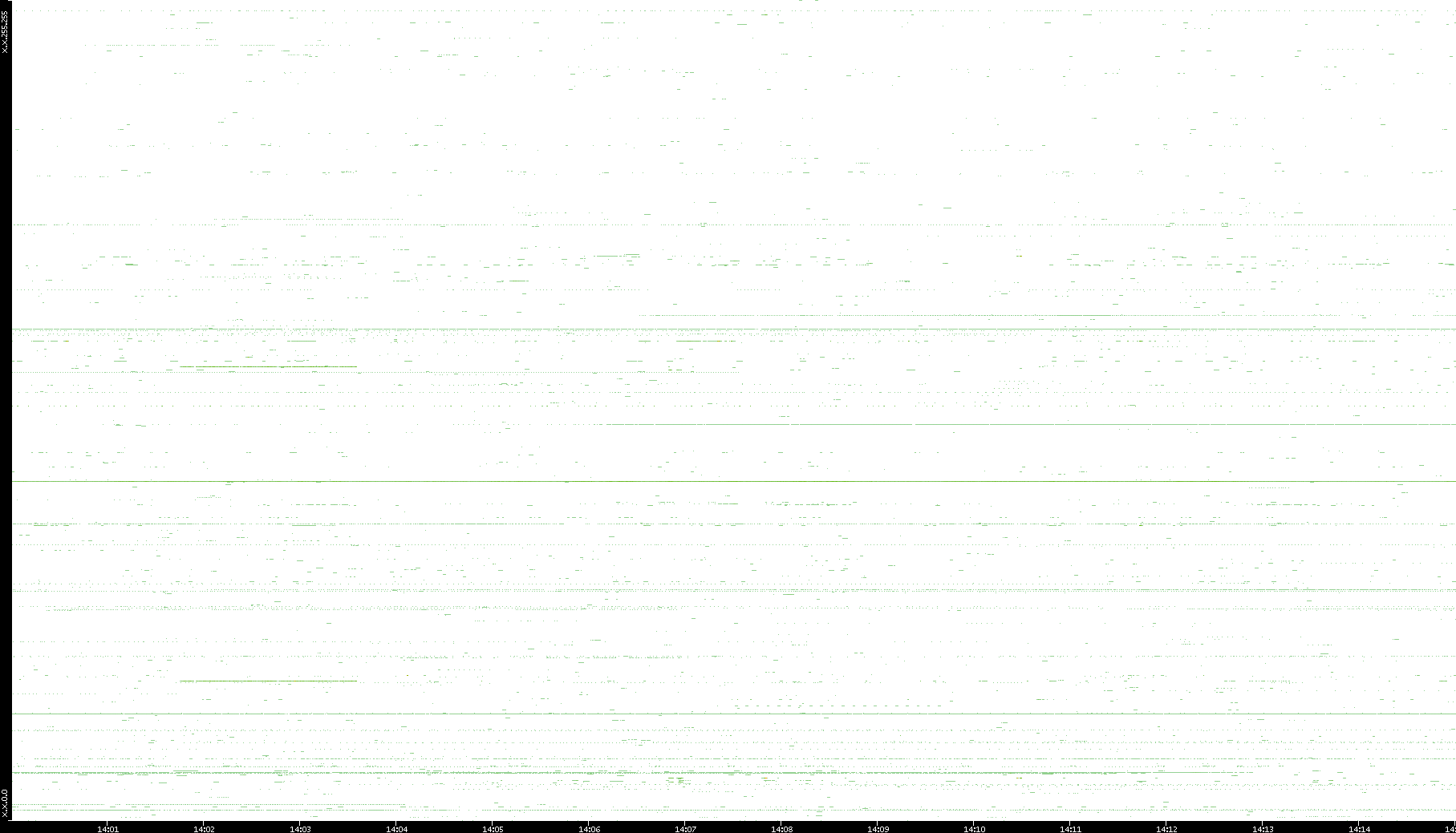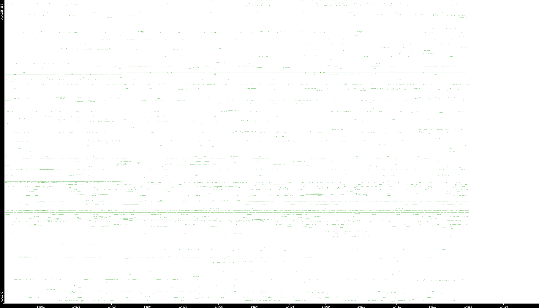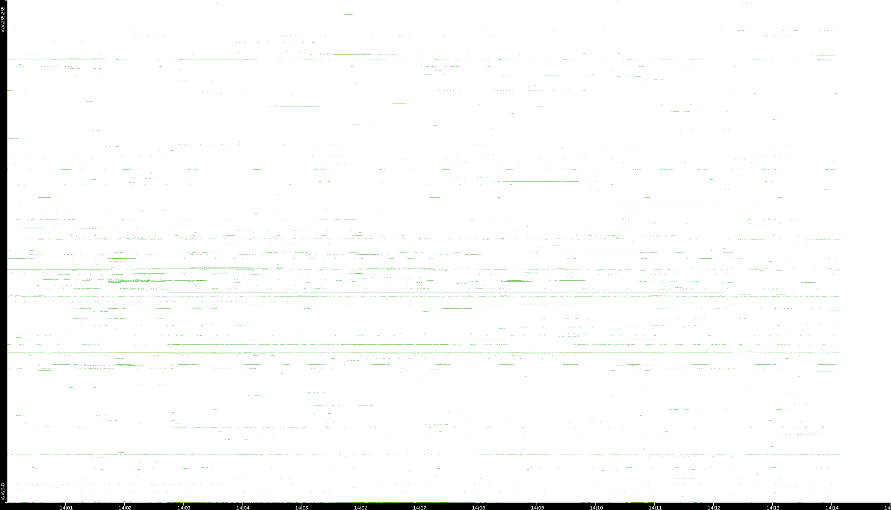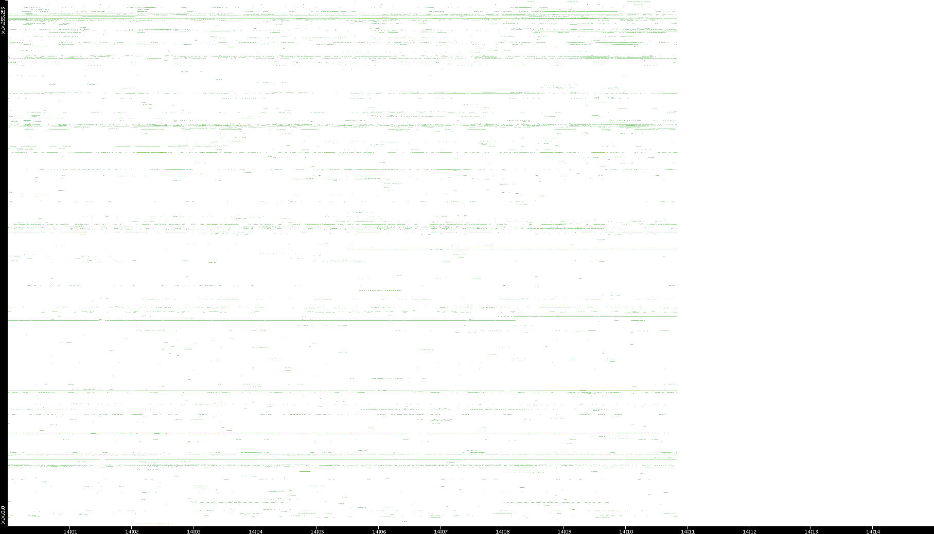 | Date | Dest. IP vs. Time | Dest. Port vs. Time | Src. IP vs. Time | Src. Port vs. Time | Nb. of Packets vs. Time | Throughput vs. Time | Average Packet Size vs. Time | Entropy of Port vs. Time |