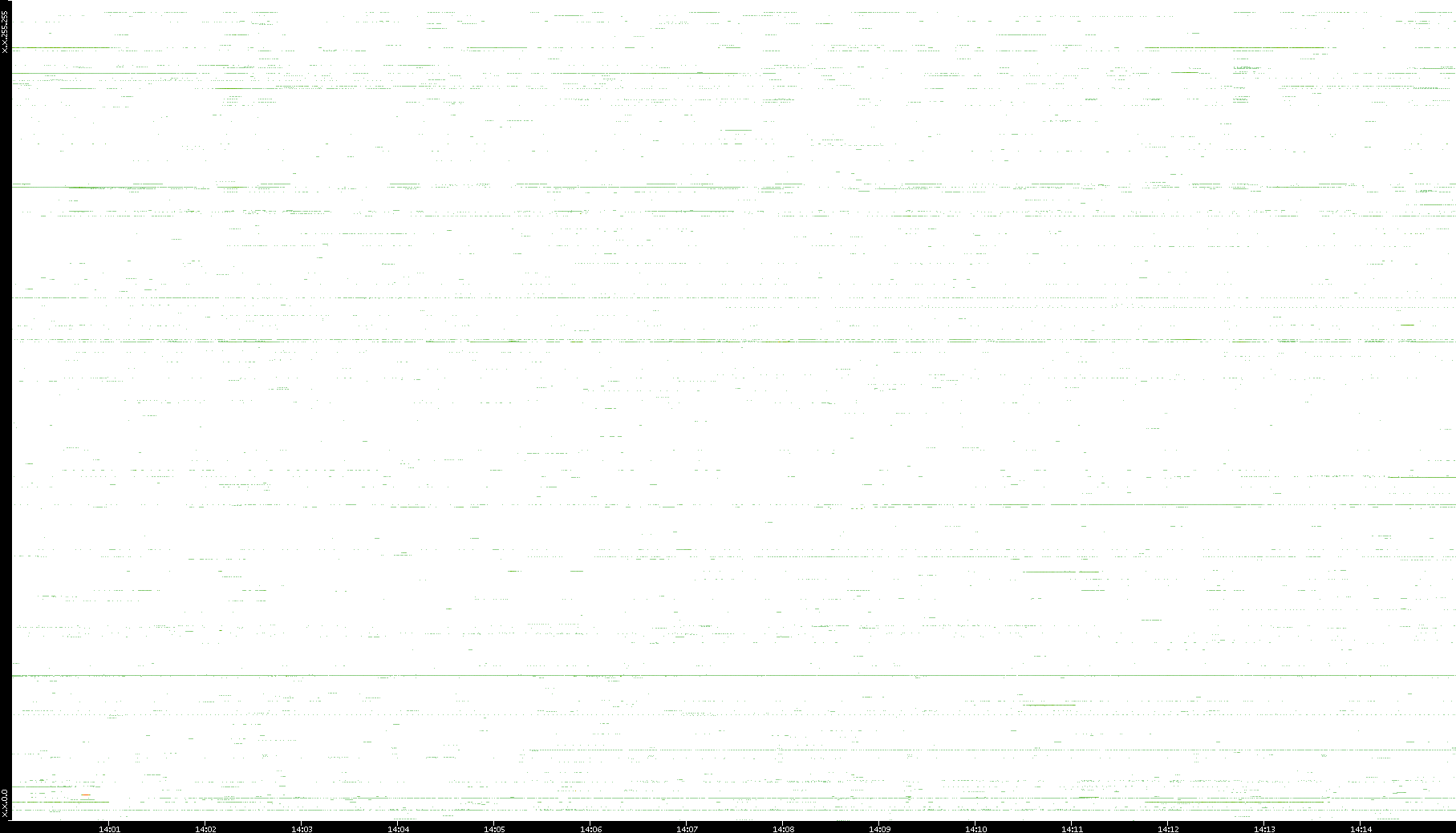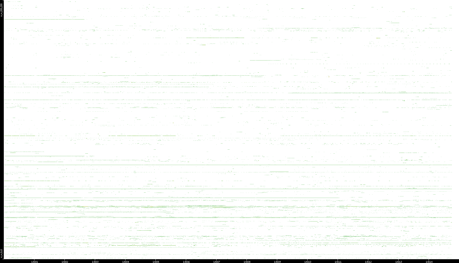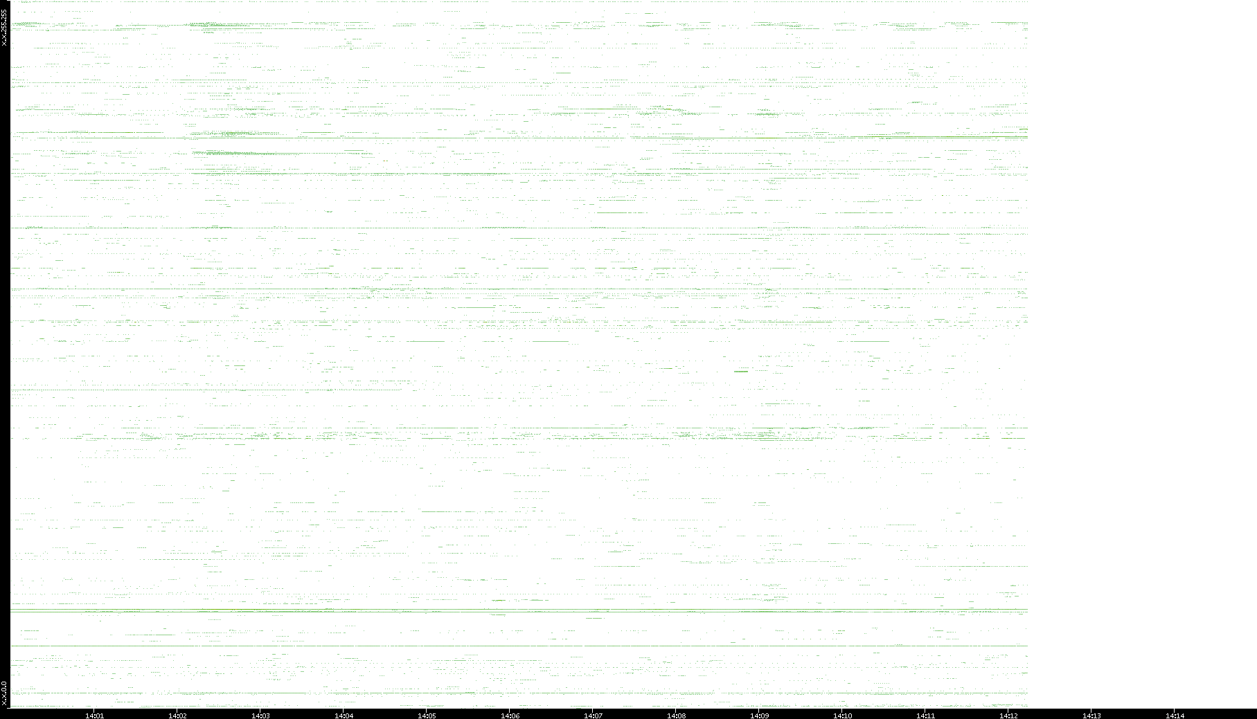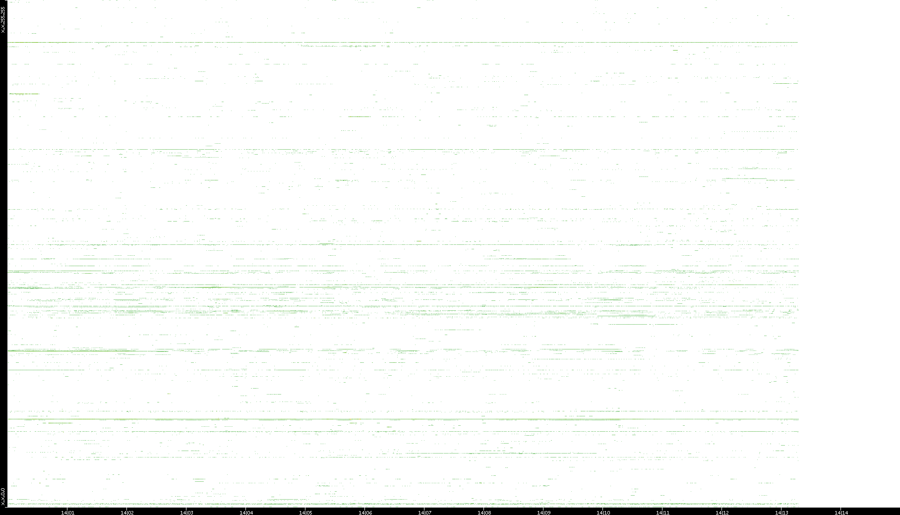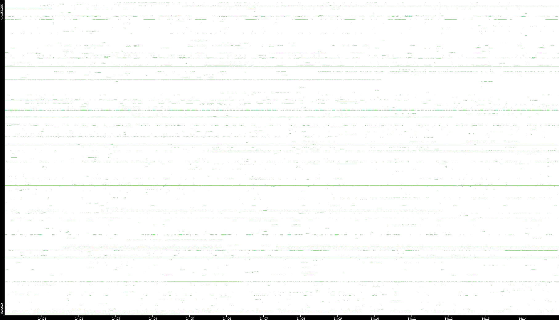 | Date | Dest. IP vs. Time | Dest. Port vs. Time | Src. IP vs. Time | Src. Port vs. Time | Nb. of Packets vs. Time | Throughput vs. Time | Average Packet Size vs. Time | Entropy of Port vs. Time |
