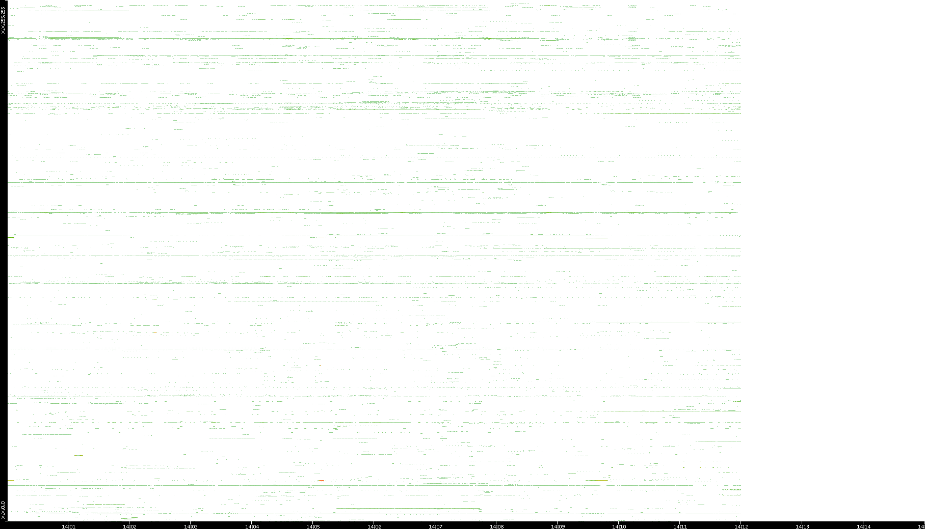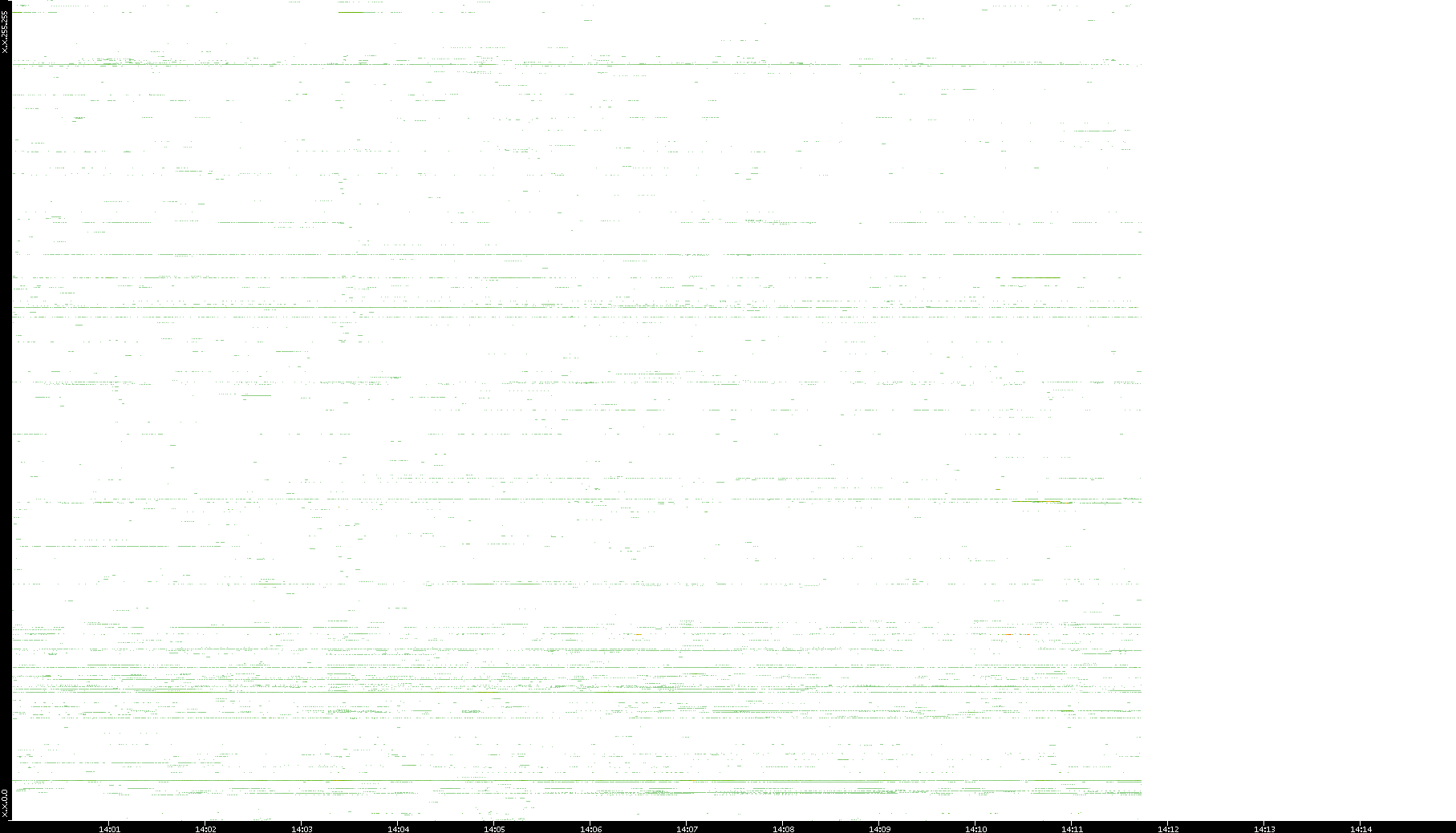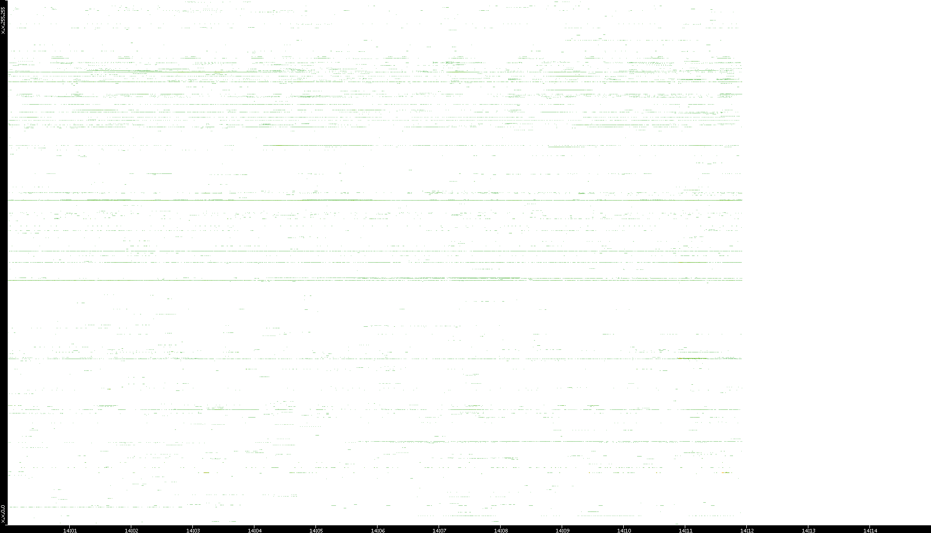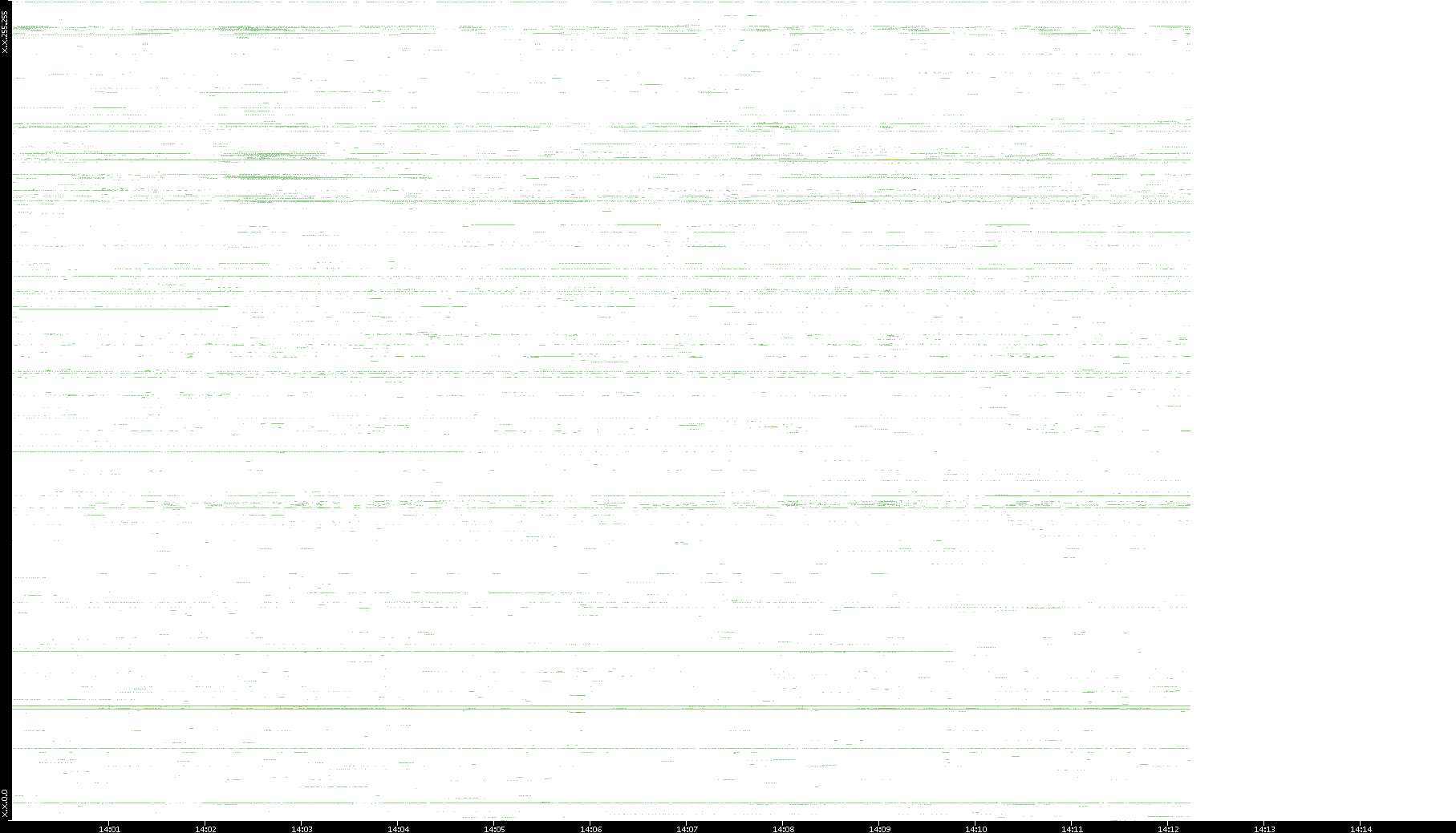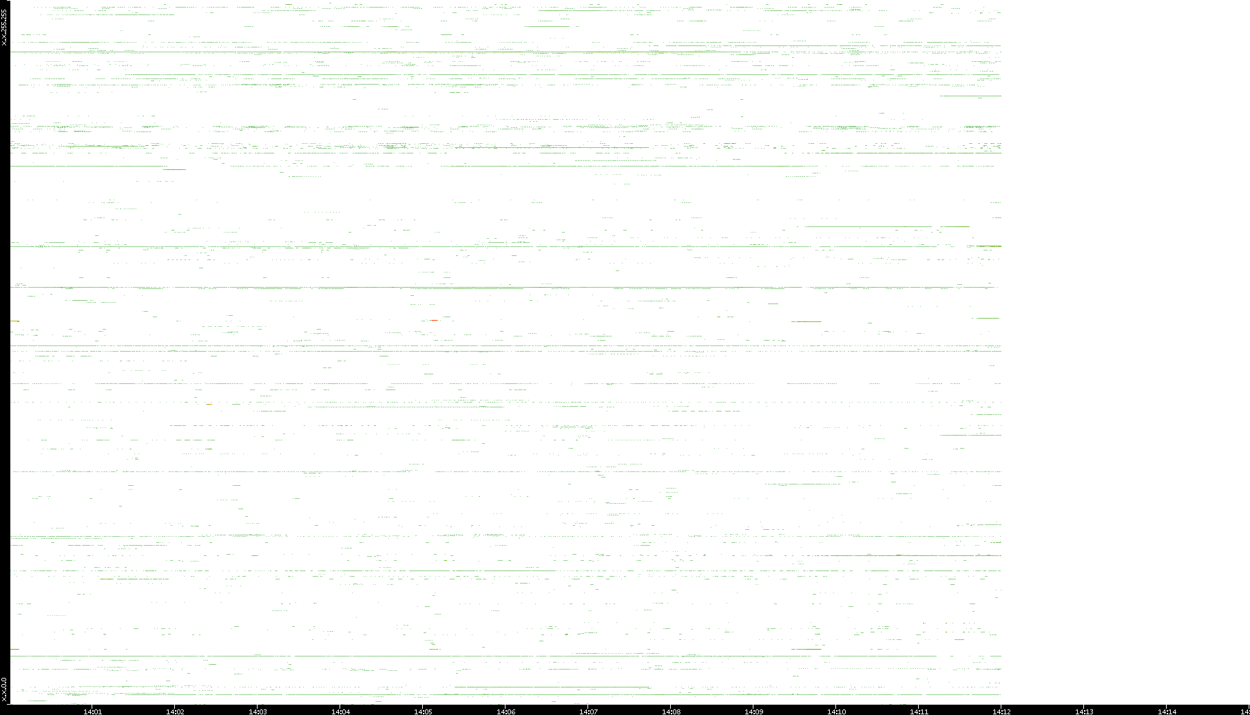 | Date | Dest. IP vs. Time | Dest. Port vs. Time | Src. IP vs. Time | Src. Port vs. Time | Nb. of Packets vs. Time | Throughput vs. Time | Average Packet Size vs. Time | Entropy of Port vs. Time |