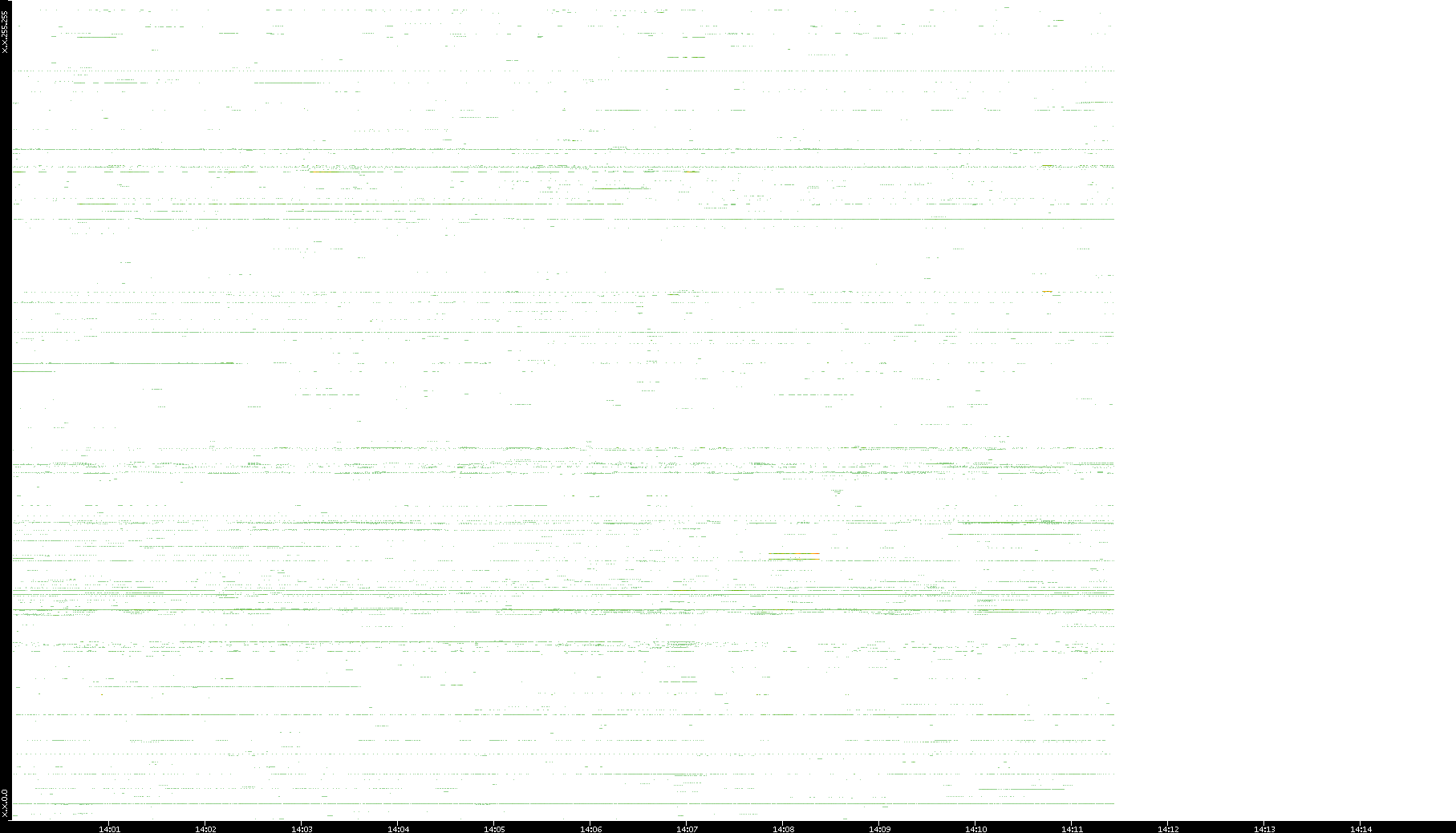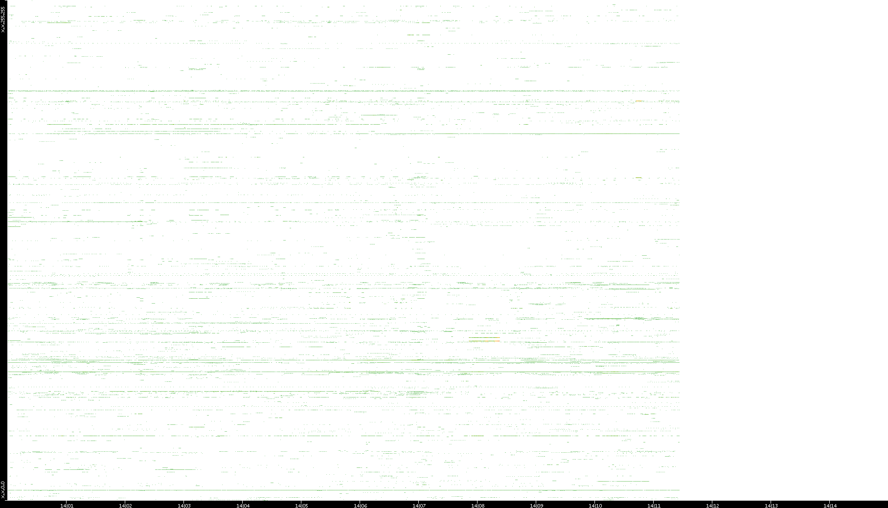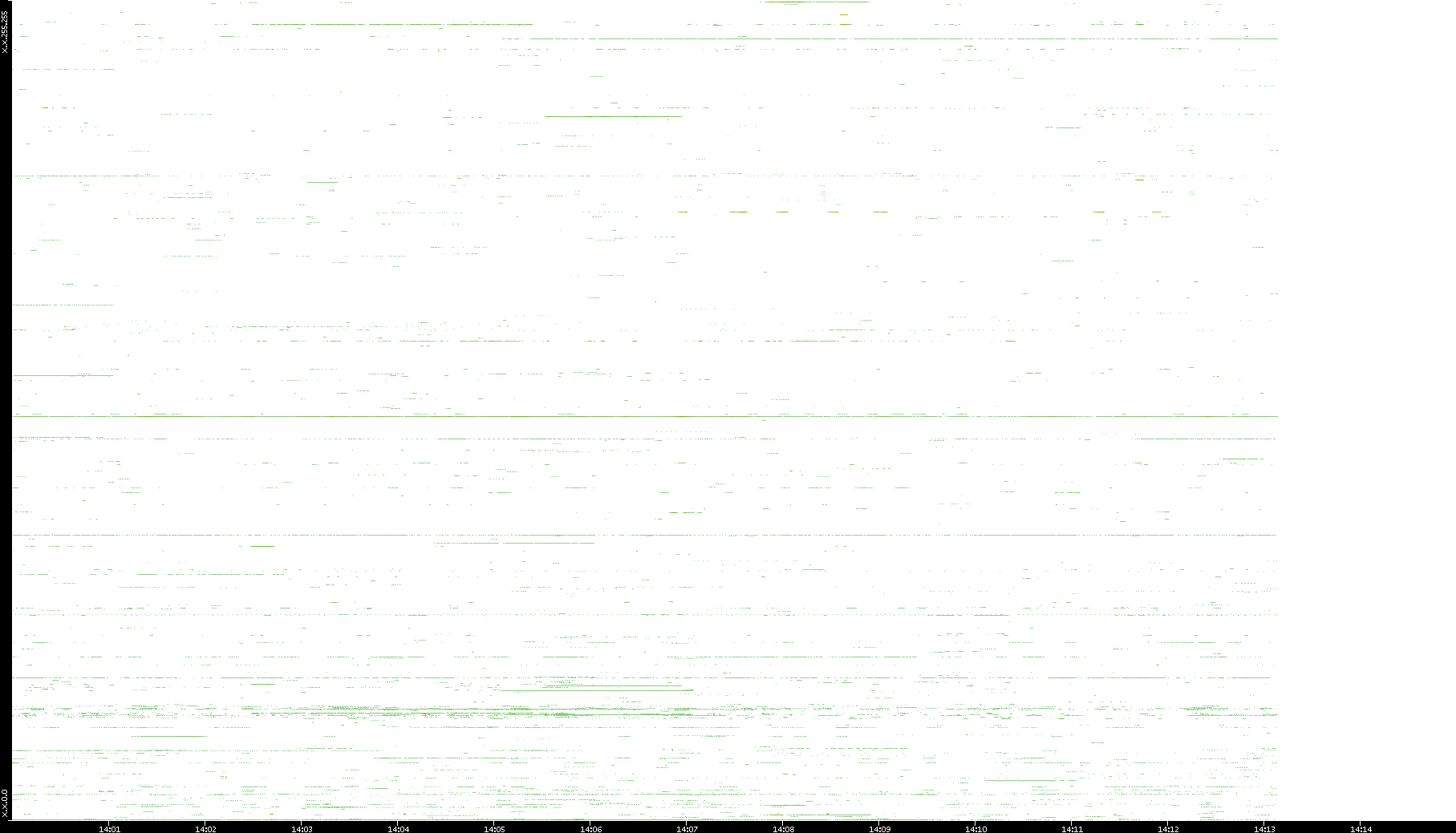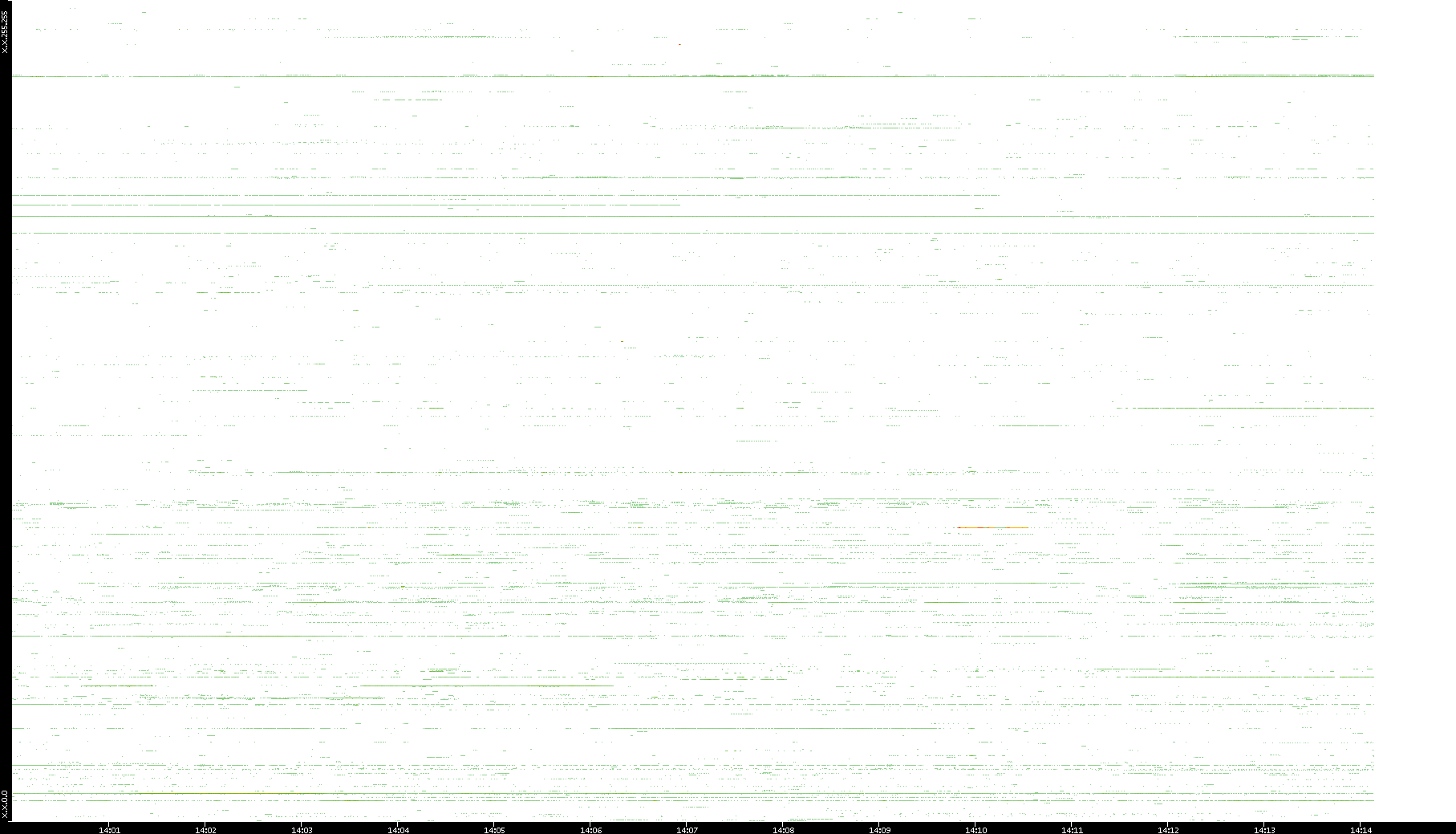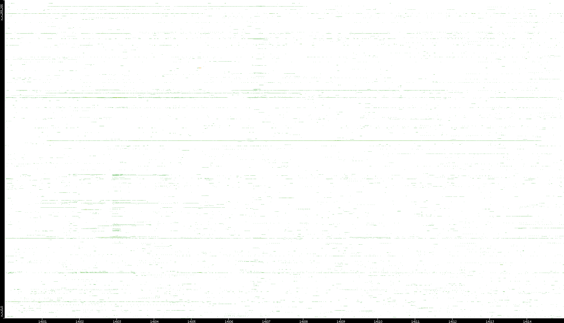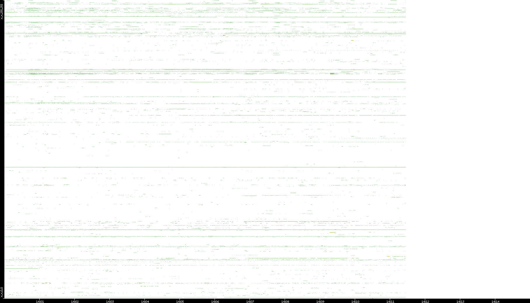 | Date | Dest. IP vs. Time | Dest. Port vs. Time | Src. IP vs. Time | Src. Port vs. Time | Nb. of Packets vs. Time | Throughput vs. Time | Average Packet Size vs. Time | Entropy of Port vs. Time |