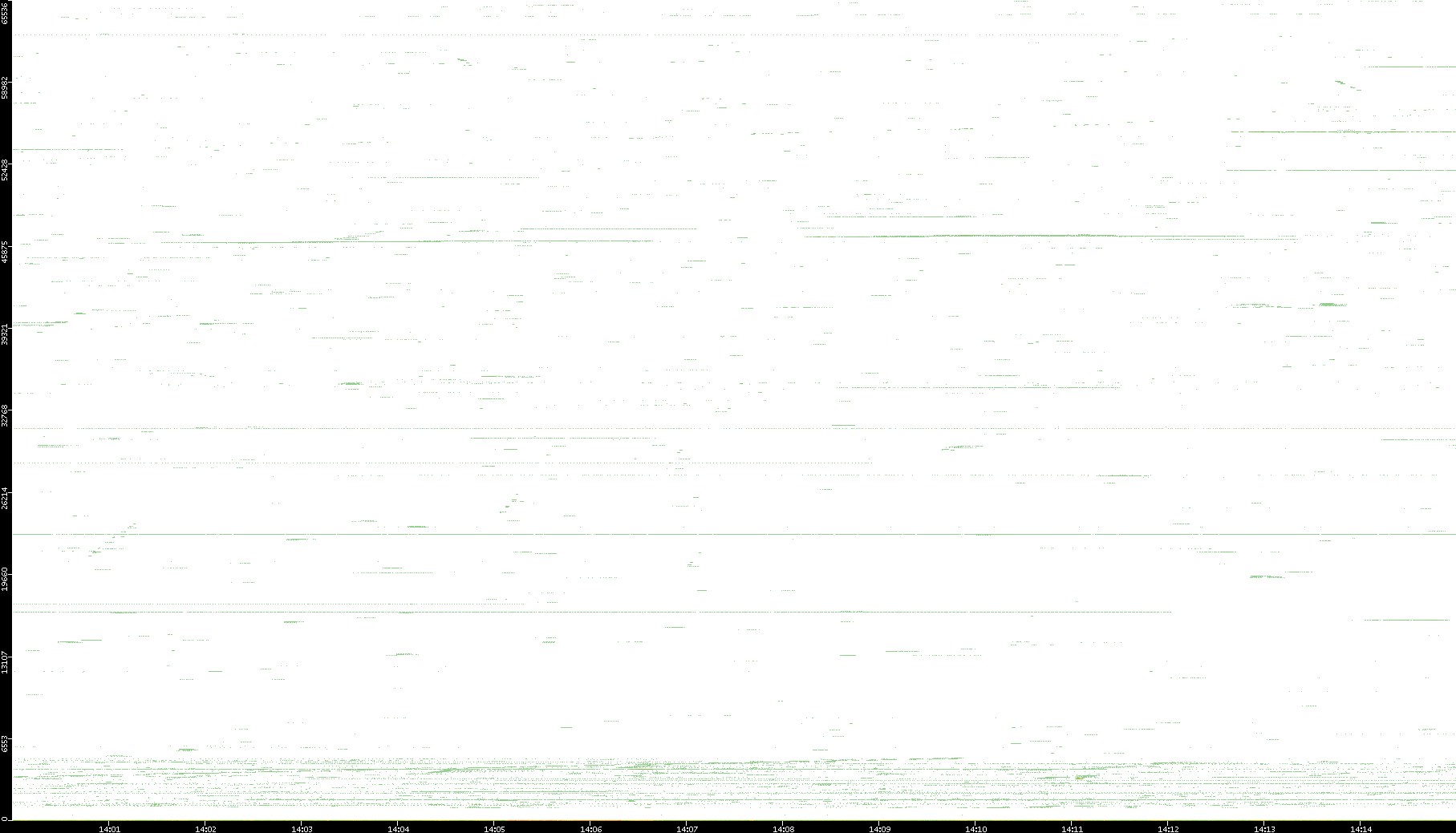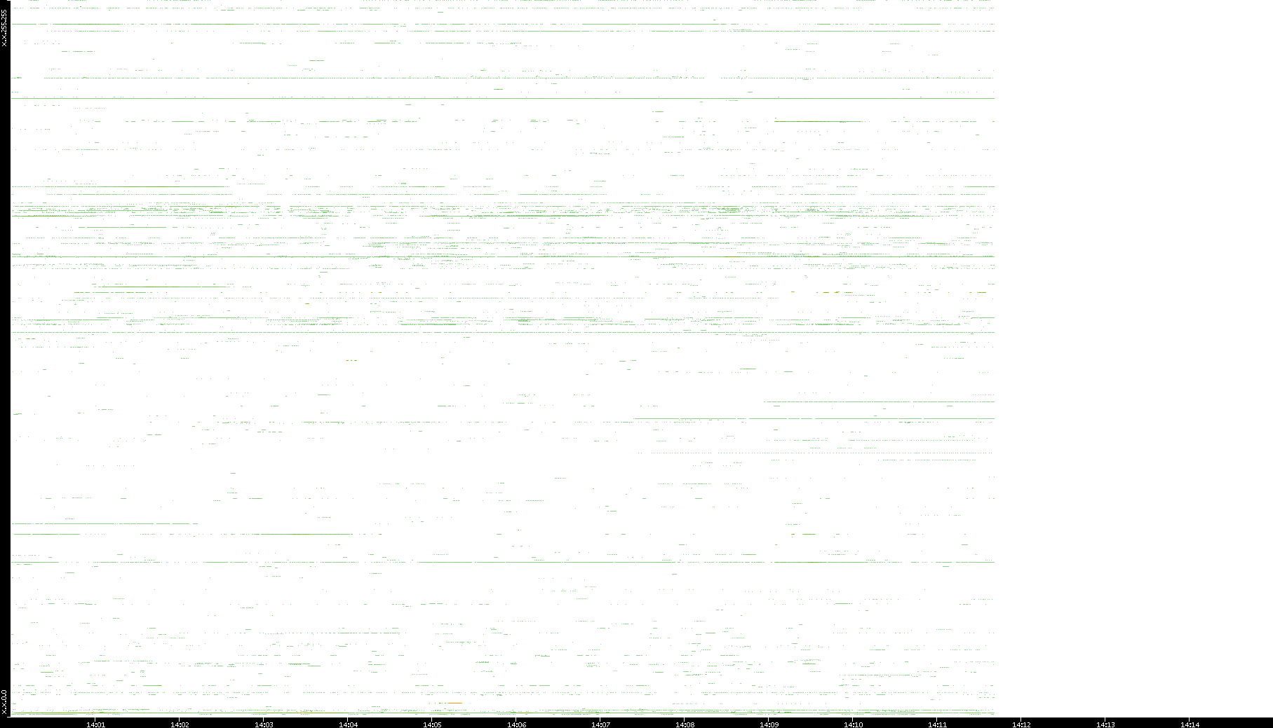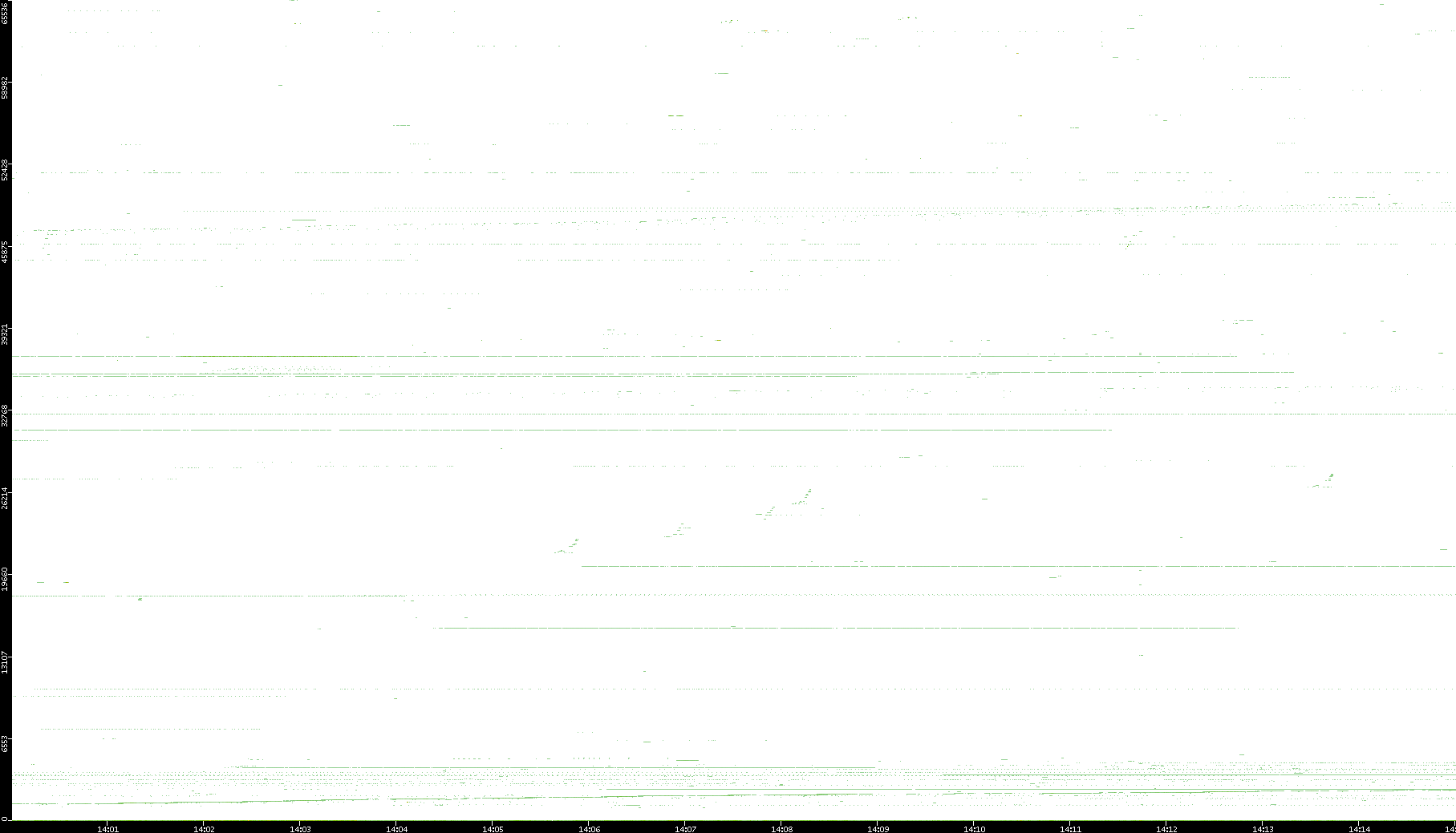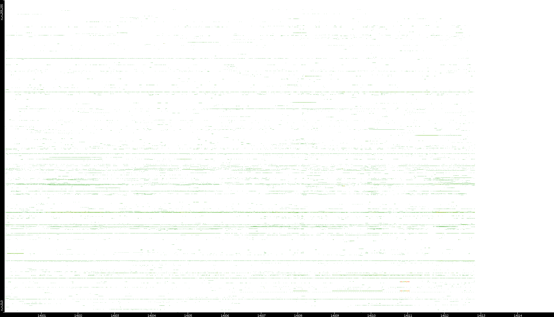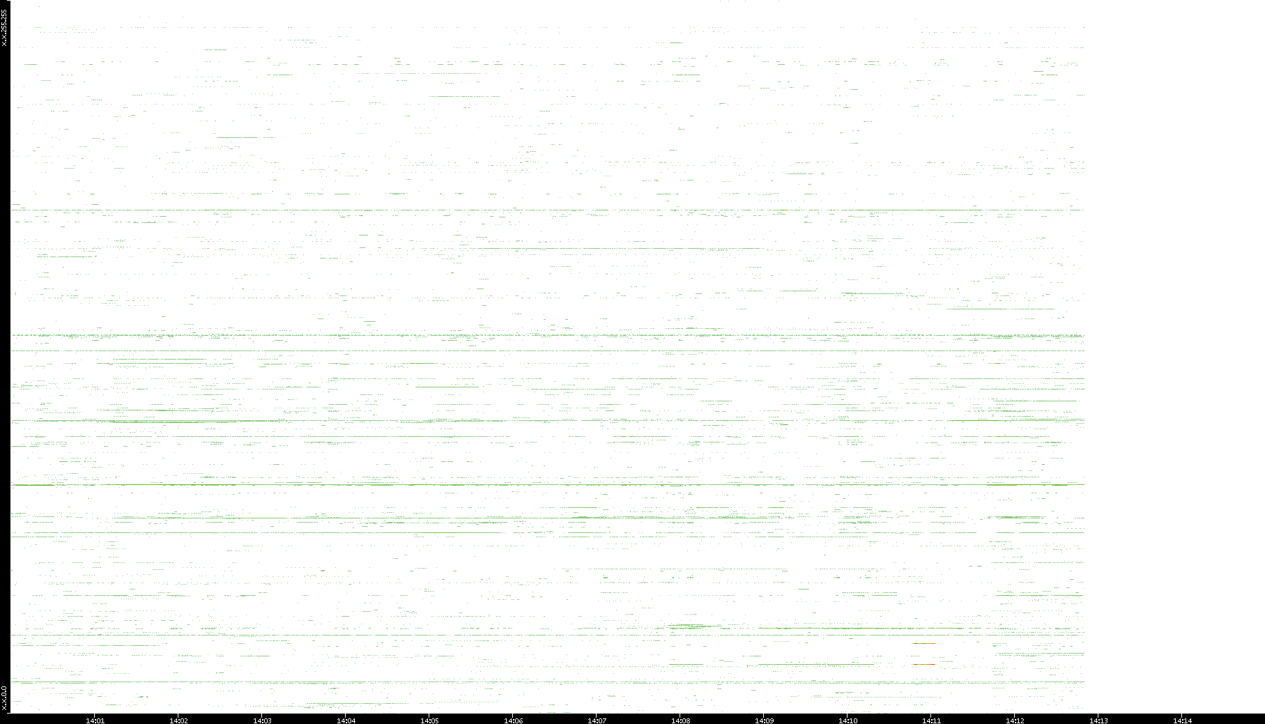 | Date | Dest. IP vs. Time | Dest. Port vs. Time | Src. IP vs. Time | Src. Port vs. Time | Nb. of Packets vs. Time | Throughput vs. Time | Average Packet Size vs. Time | Entropy of Port vs. Time |