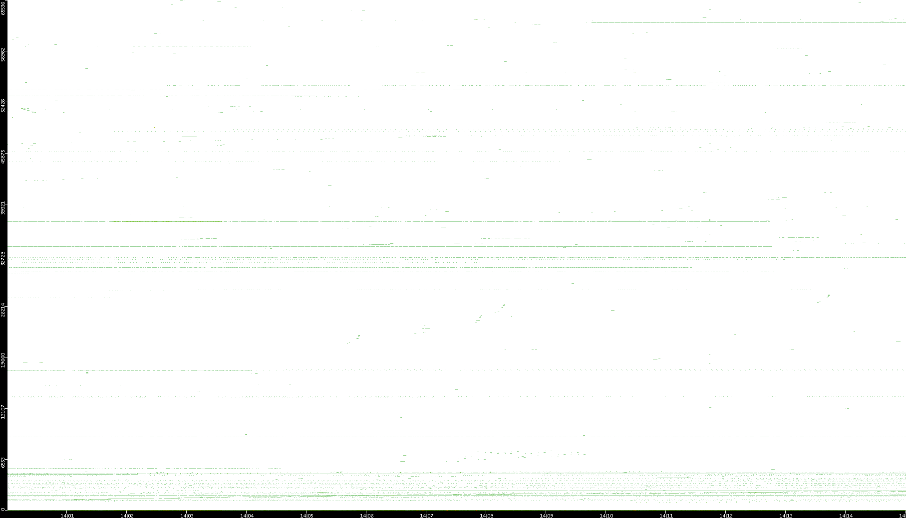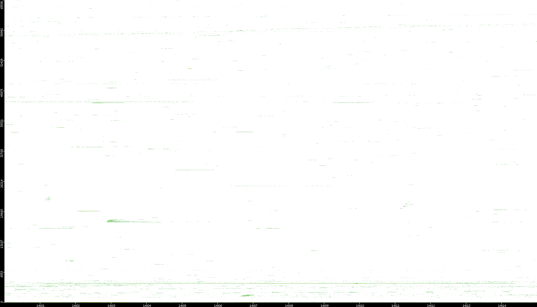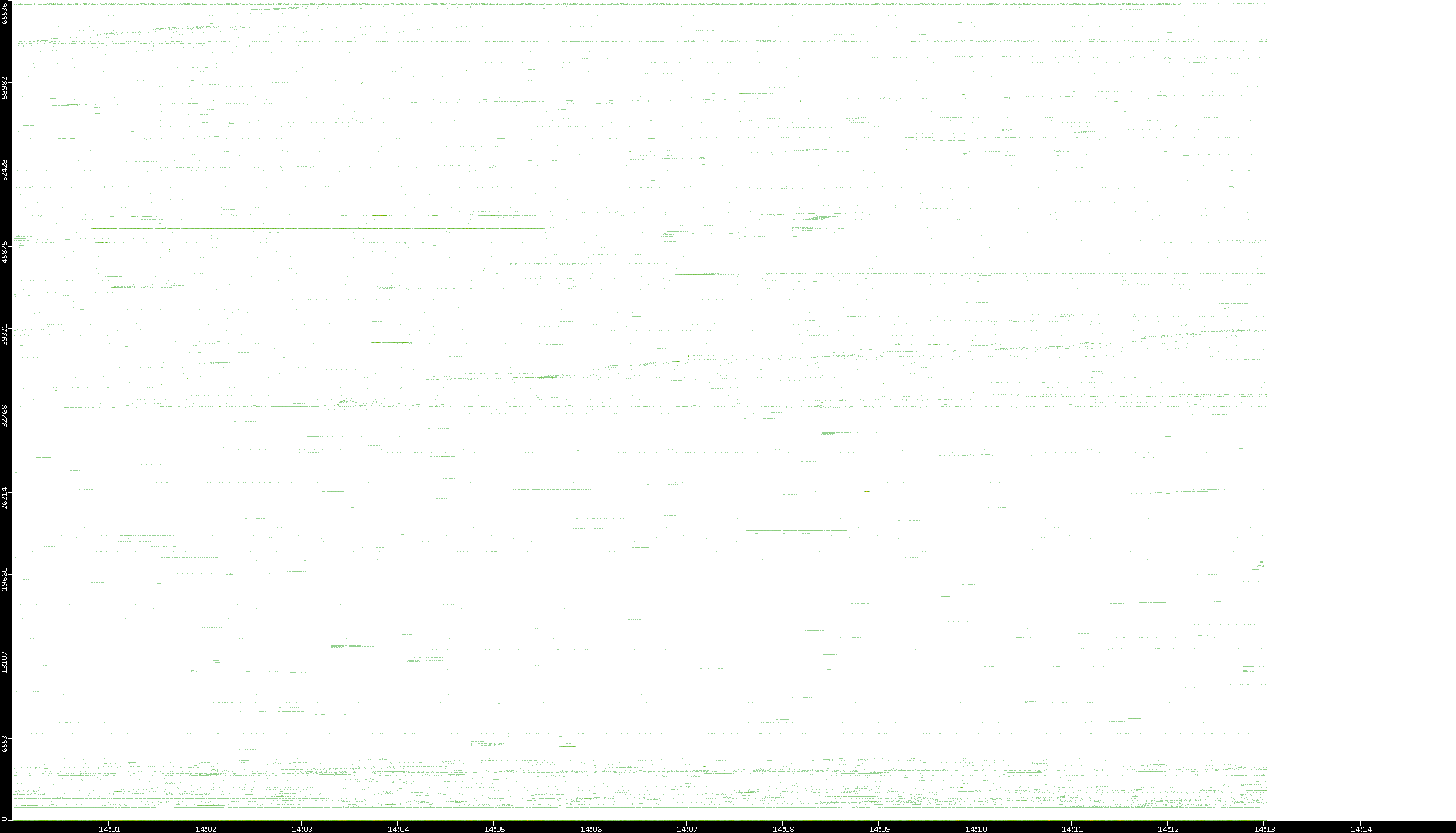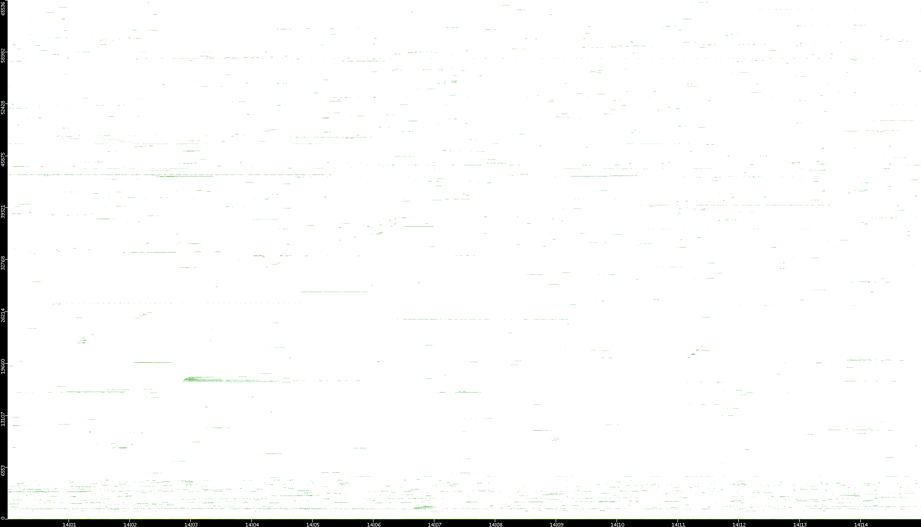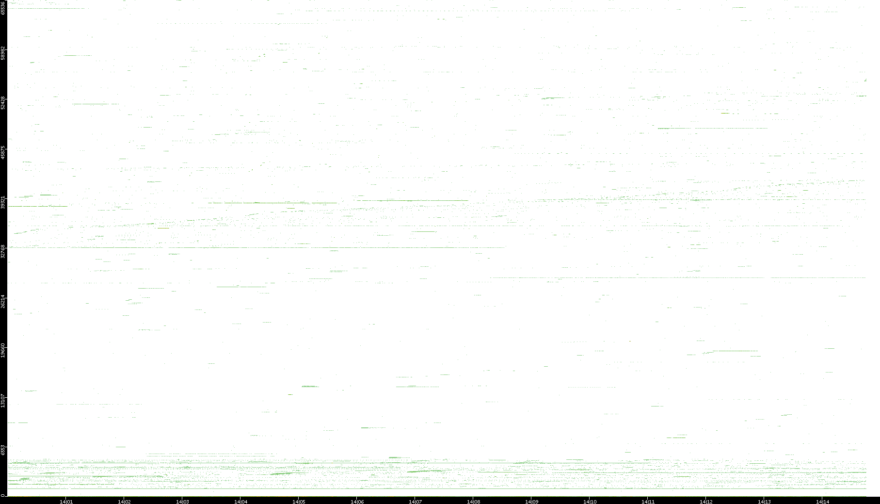 | Date | Dest. IP vs. Time | Dest. Port vs. Time | Src. IP vs. Time | Src. Port vs. Time | Nb. of Packets vs. Time | Throughput vs. Time | Average Packet Size vs. Time | Entropy of Port vs. Time |