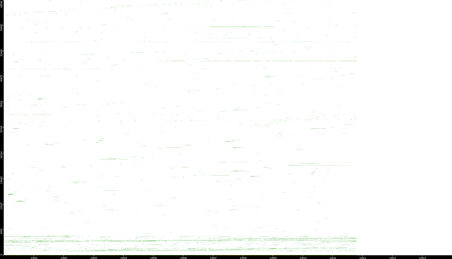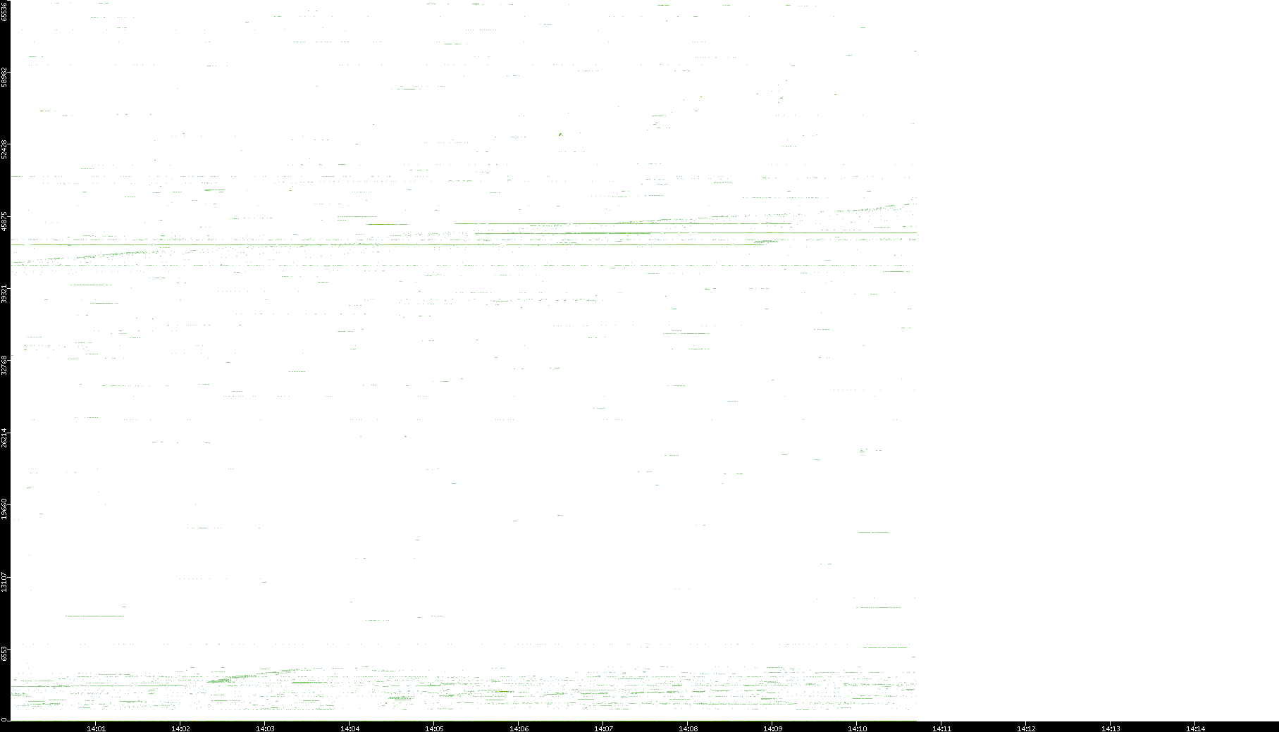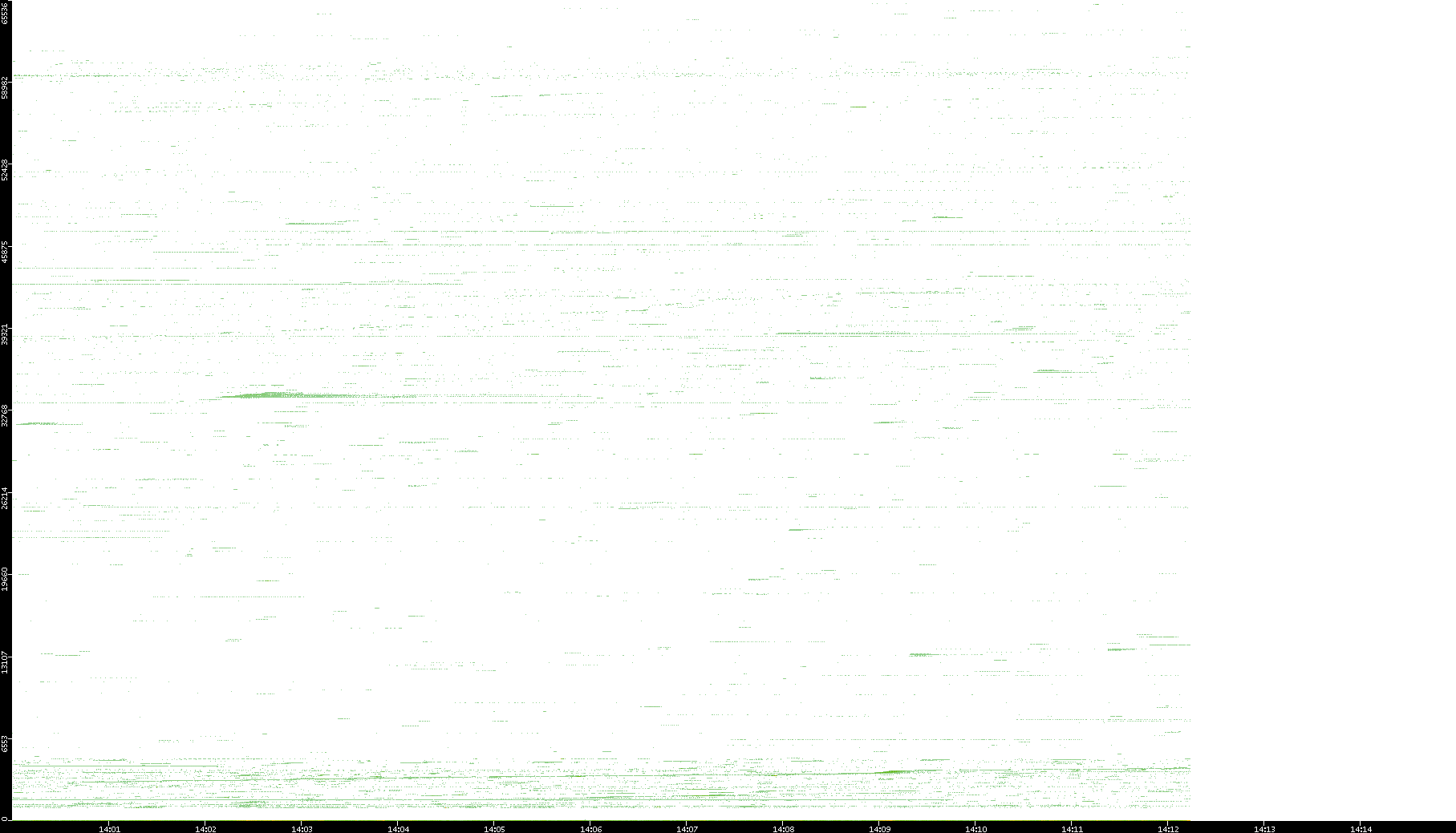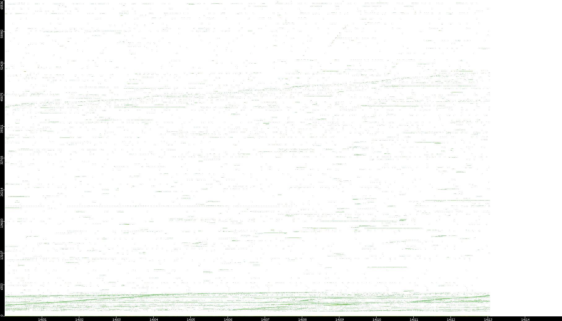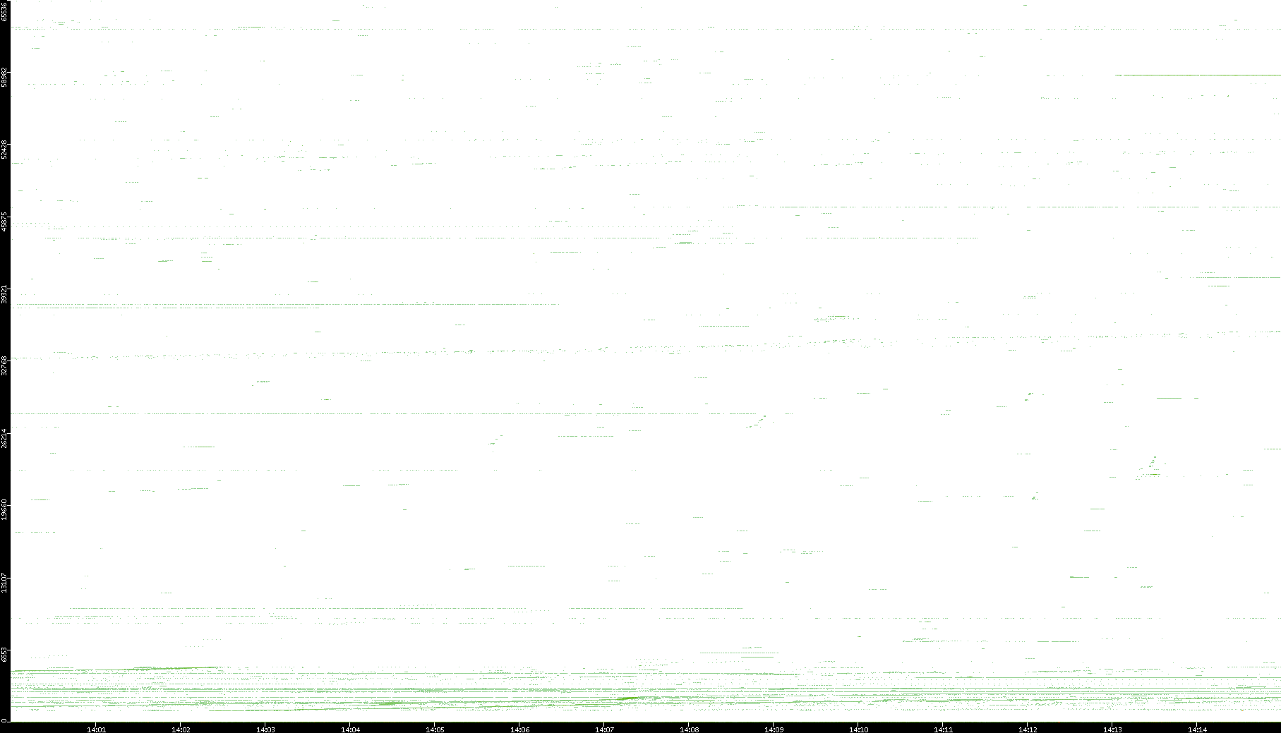 | Date | Dest. IP vs. Time | Dest. Port vs. Time | Src. IP vs. Time | Src. Port vs. Time | Nb. of Packets vs. Time | Throughput vs. Time | Average Packet Size vs. Time | Entropy of Port vs. Time |