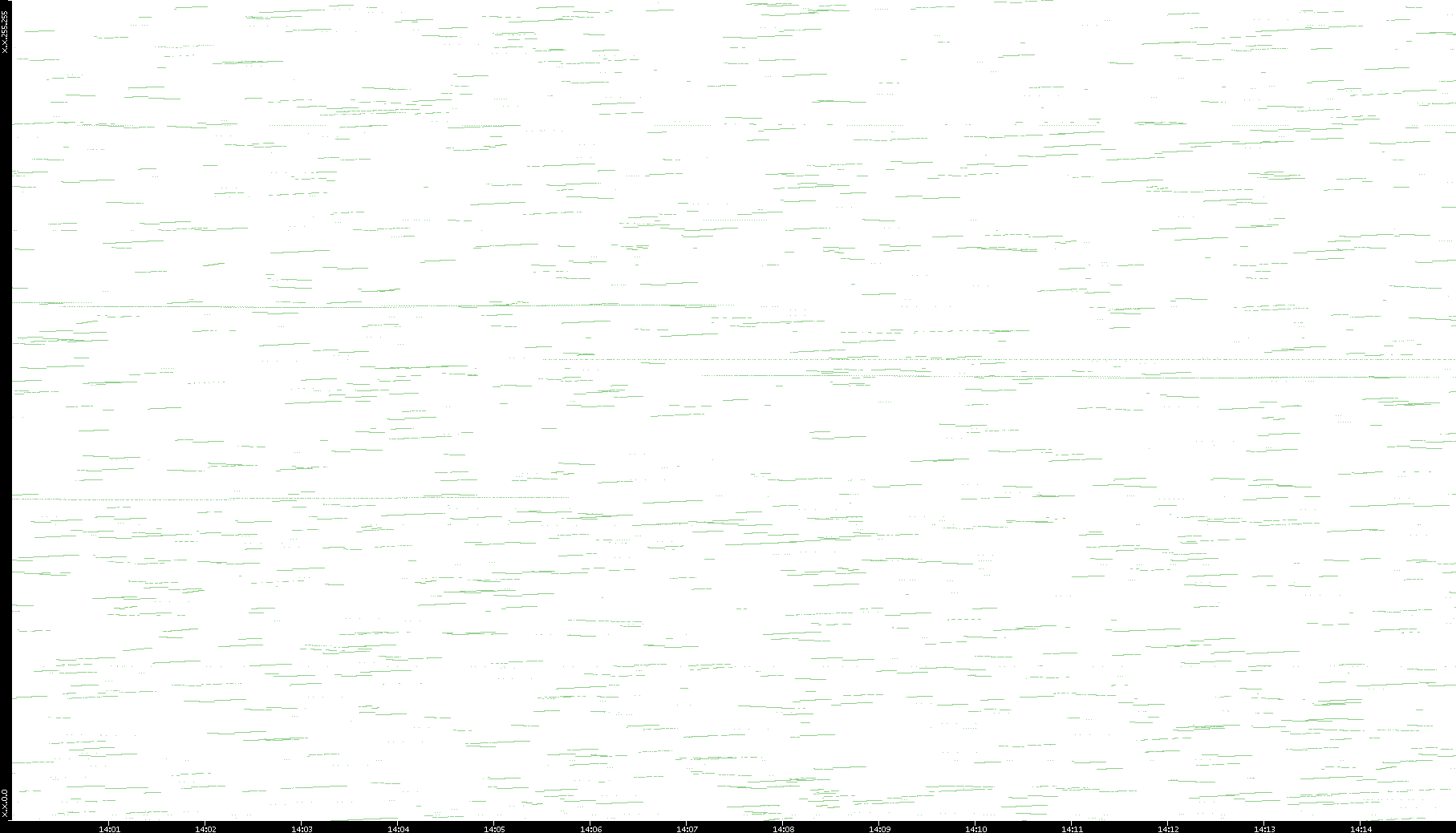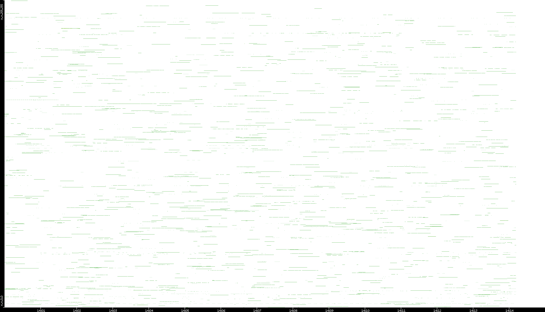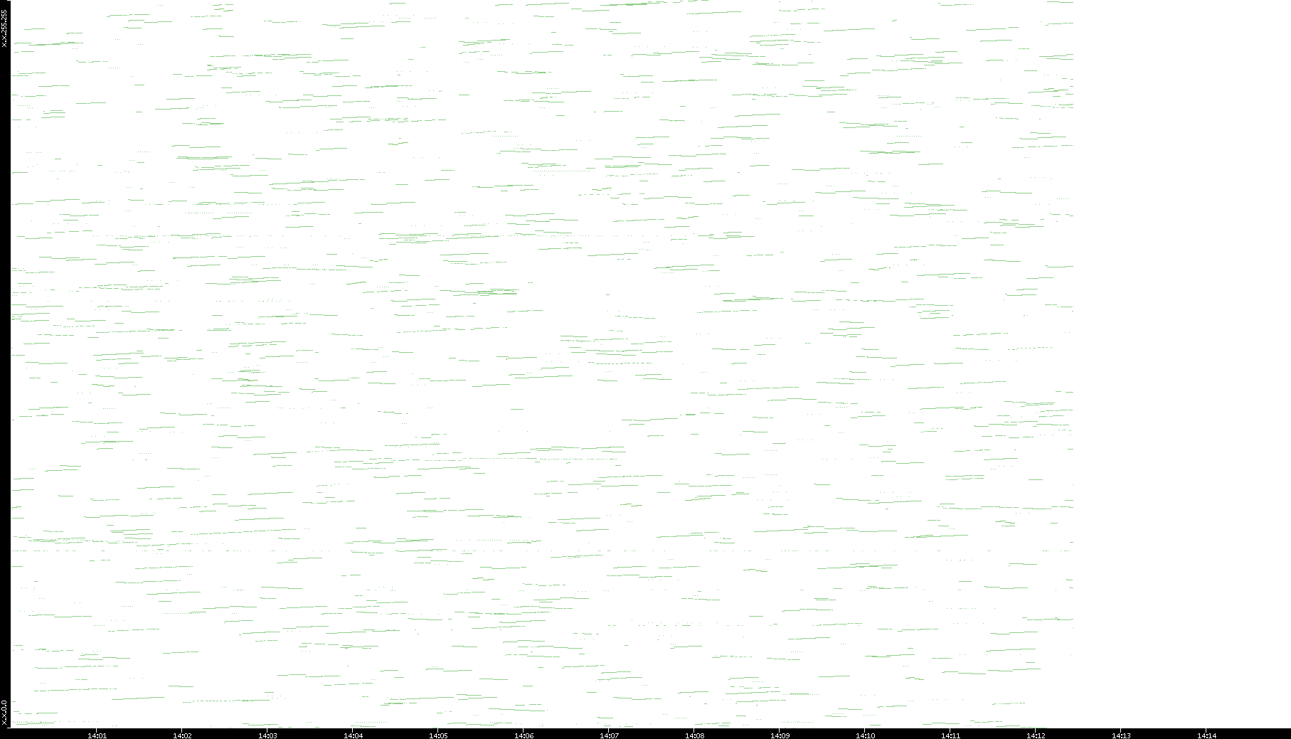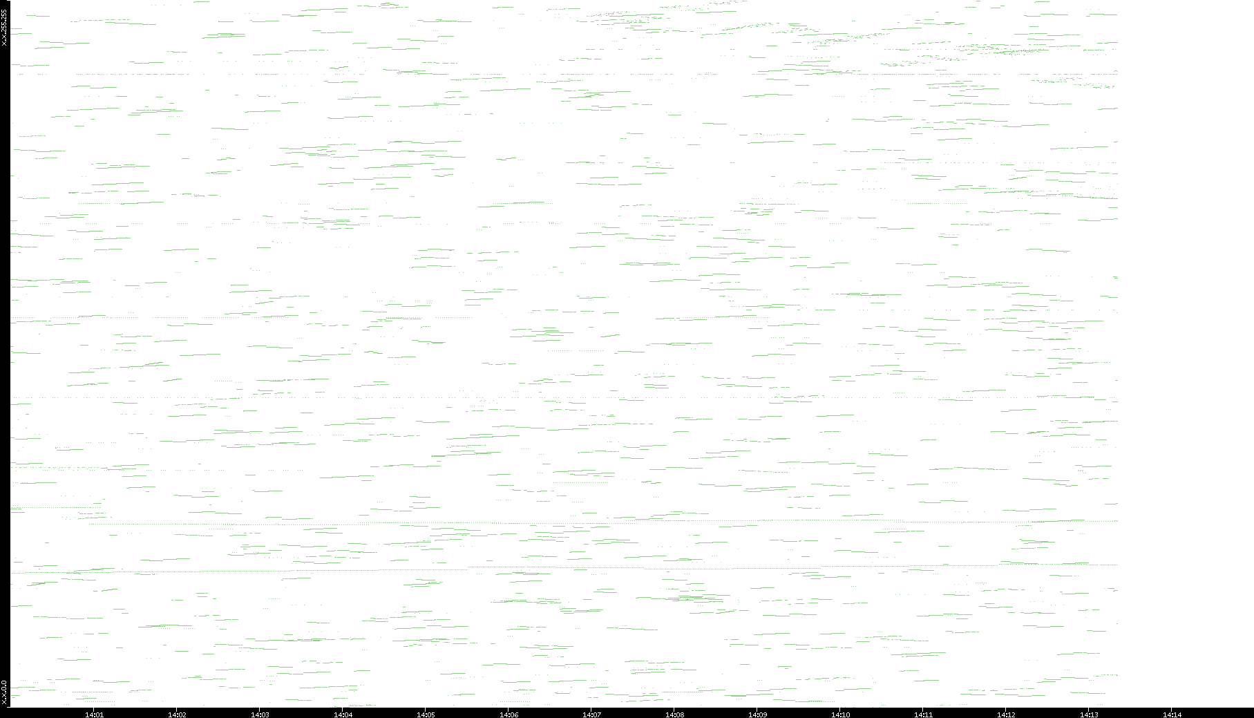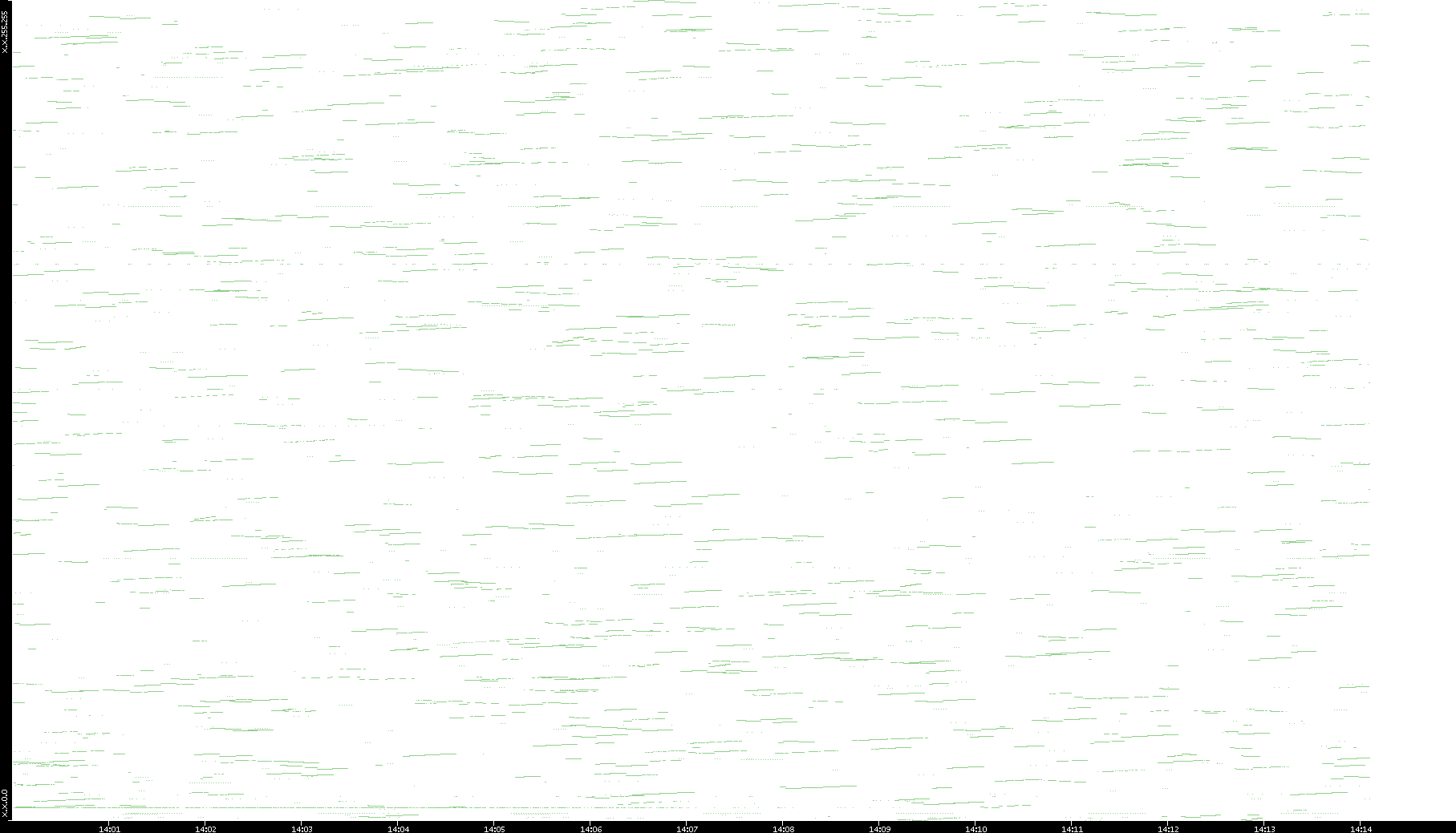 2003/01/14 Dest. IP vs. Time Dest. Port vs. Time Src. IP vs. Time Src. Port vs. Time Nb. of Packets vs. Time Throughput vs. Time Average Packet Size vs. Time Entropy of Port vs. Time
