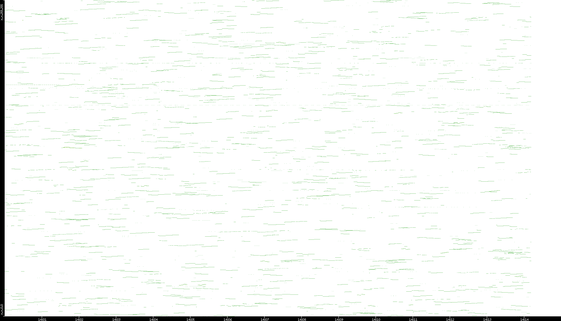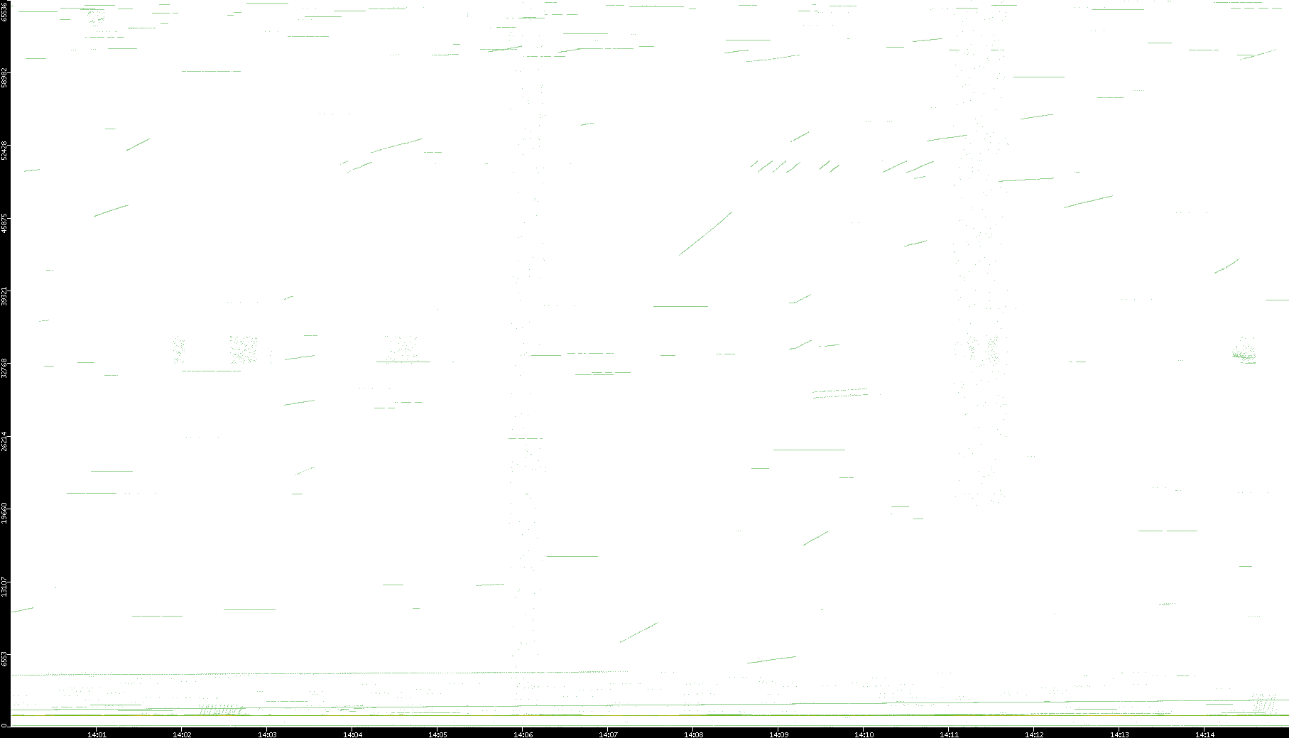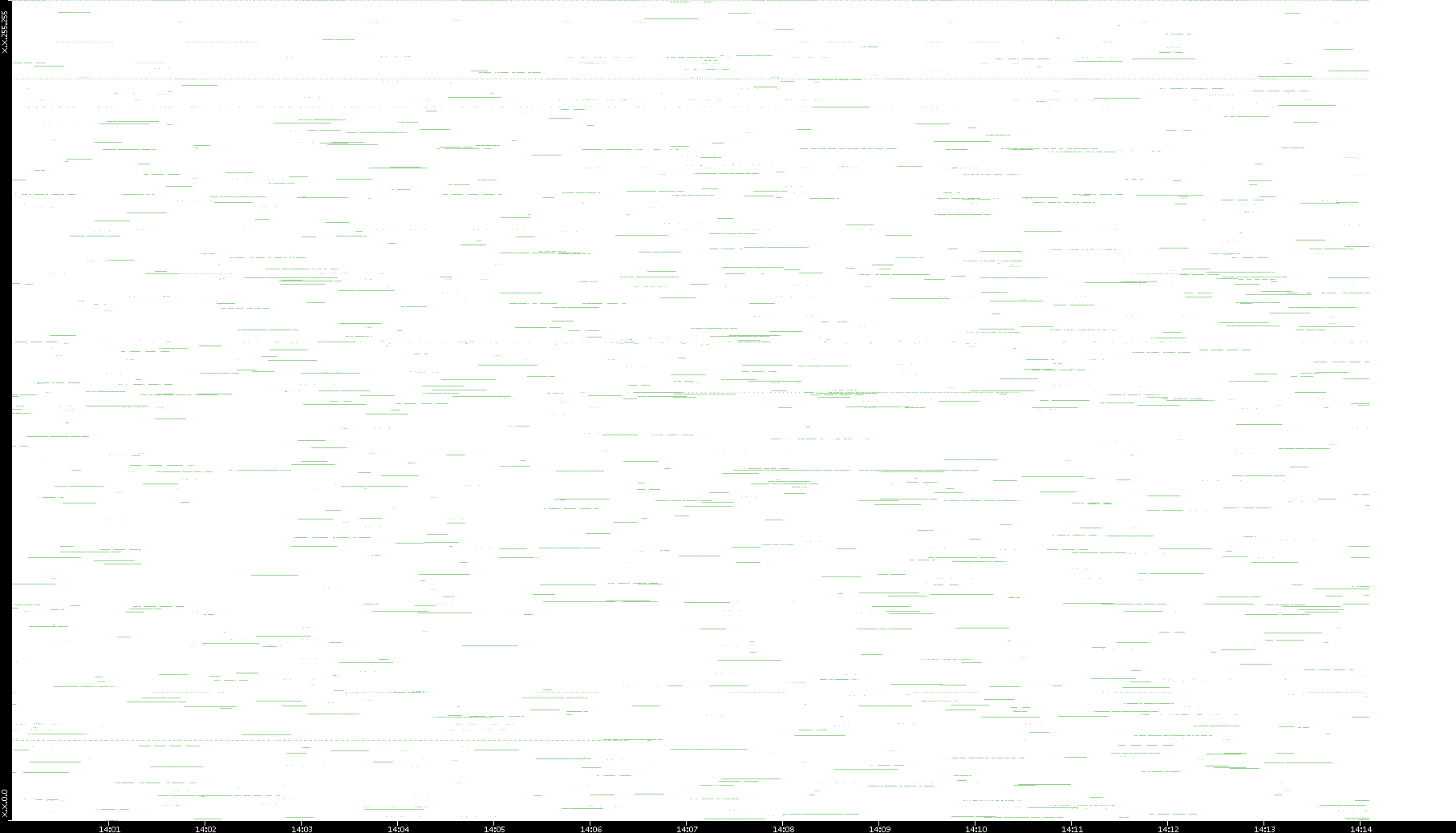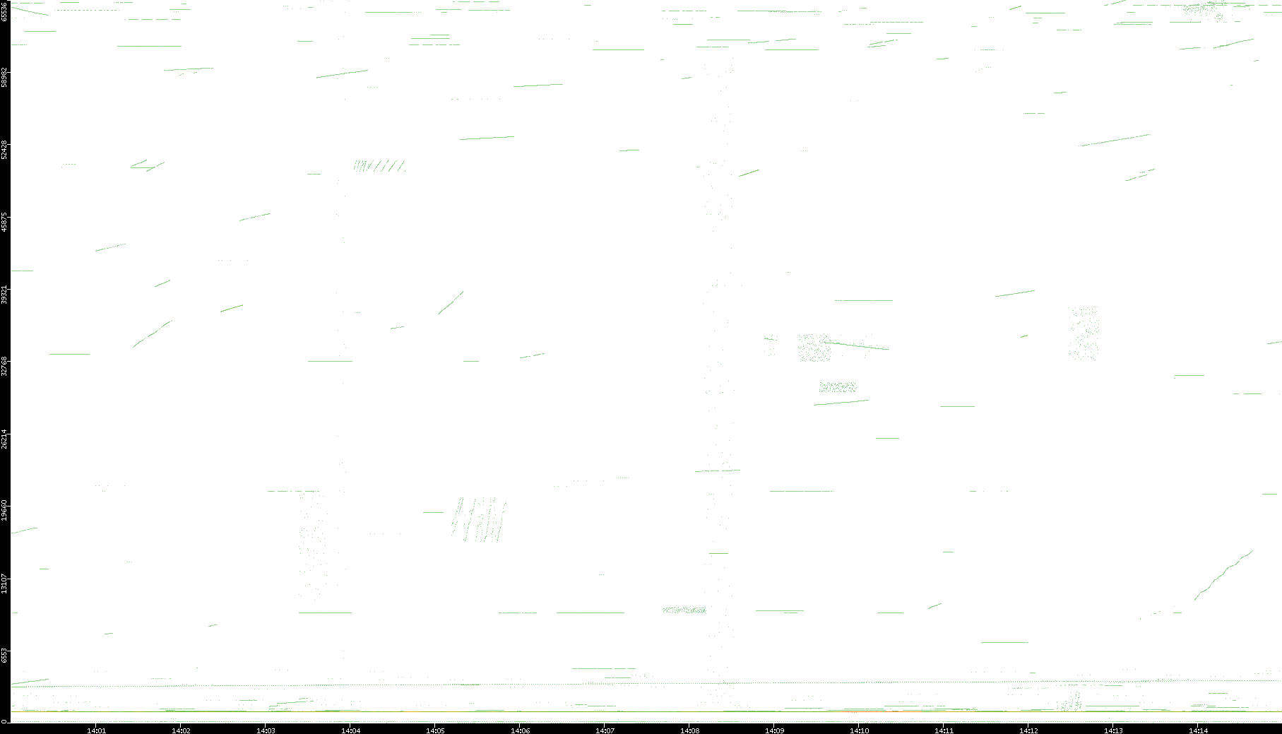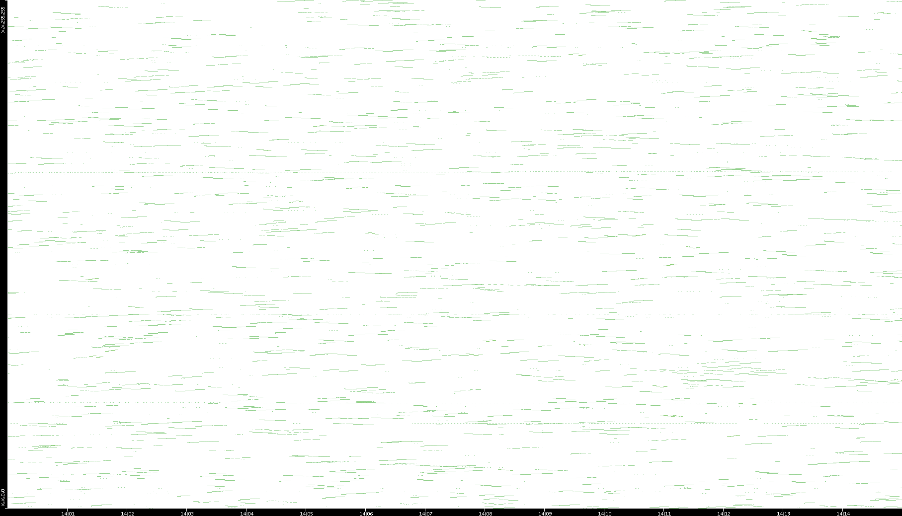 2003/01/14 Dest. IP vs. Time Dest. Port vs. Time Src. IP vs. Time Src. Port vs. Time Nb. of Packets vs. Time Throughput vs. Time Average Packet Size vs. Time Entropy of Port vs. Time