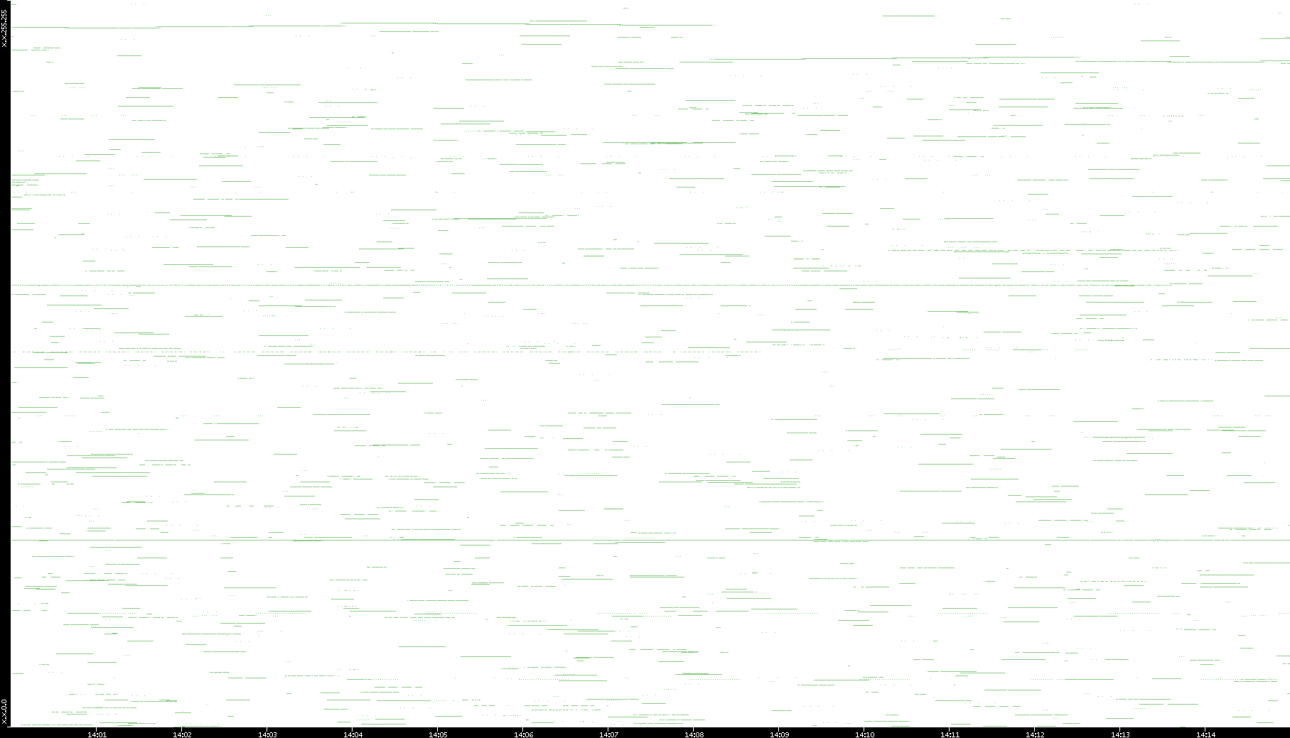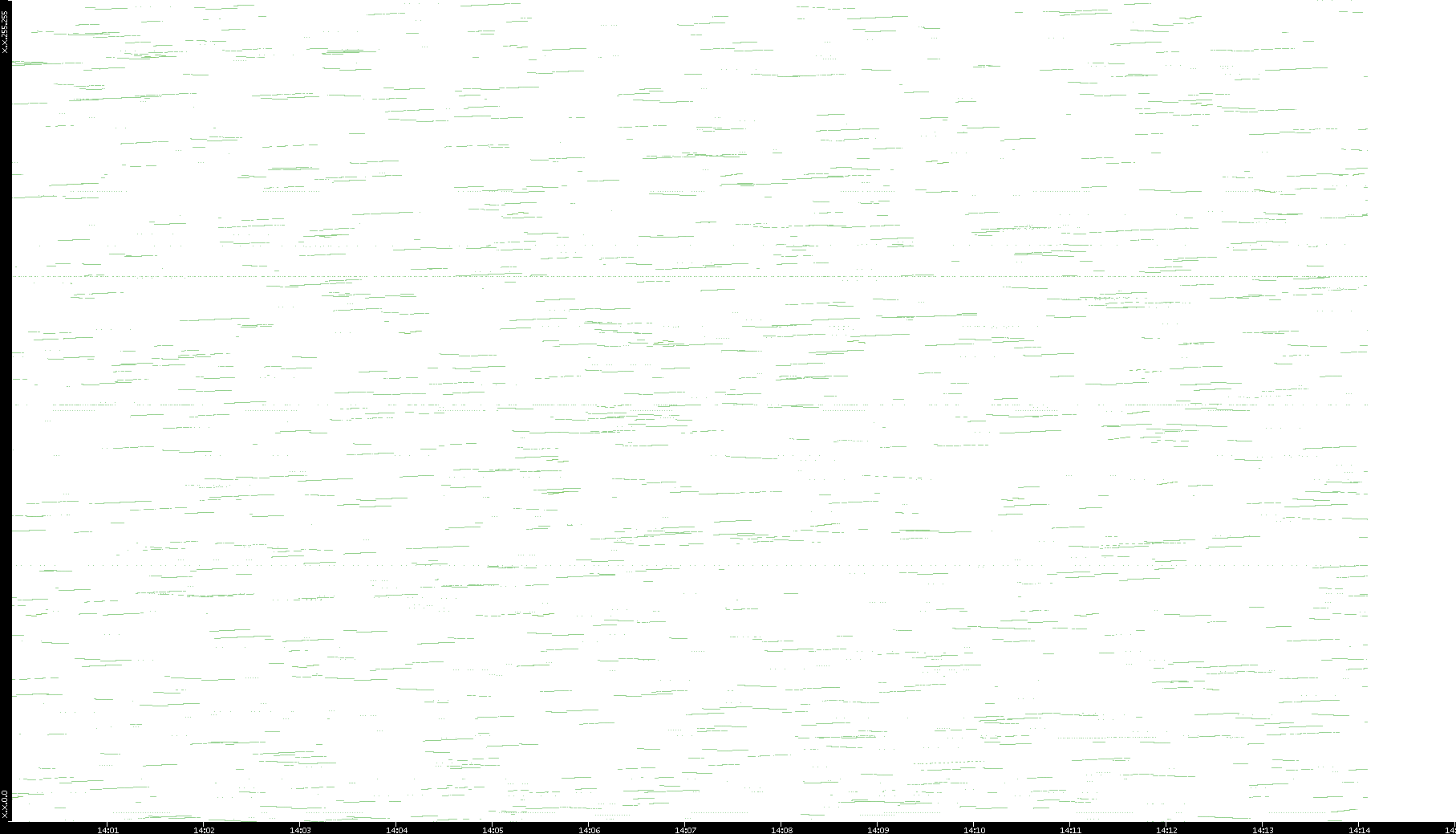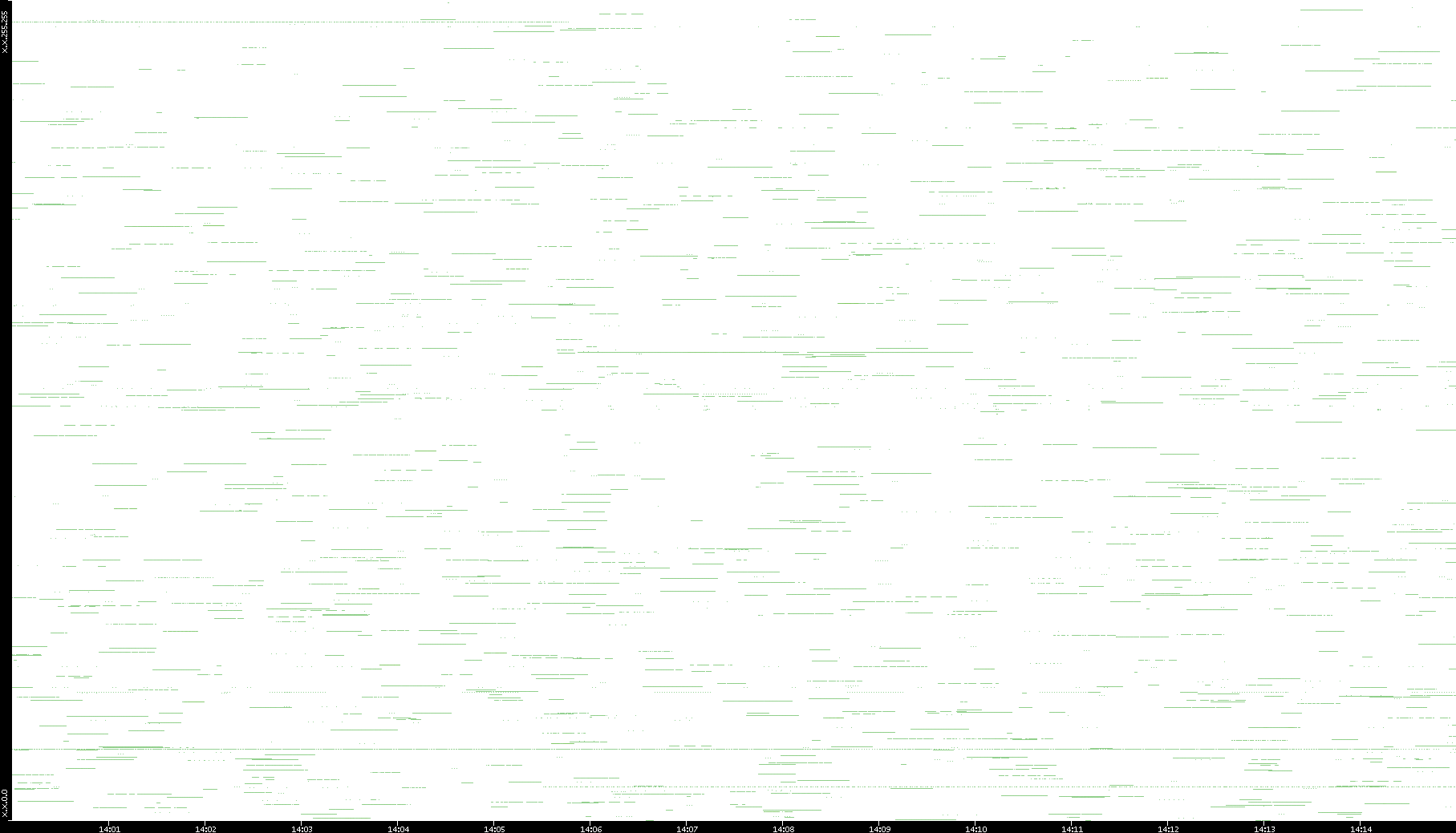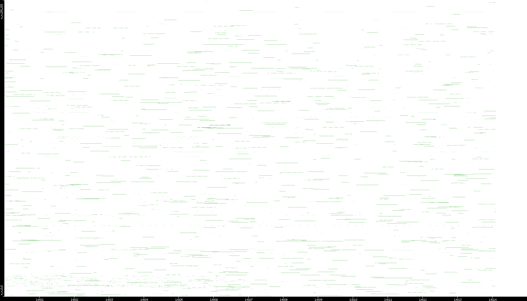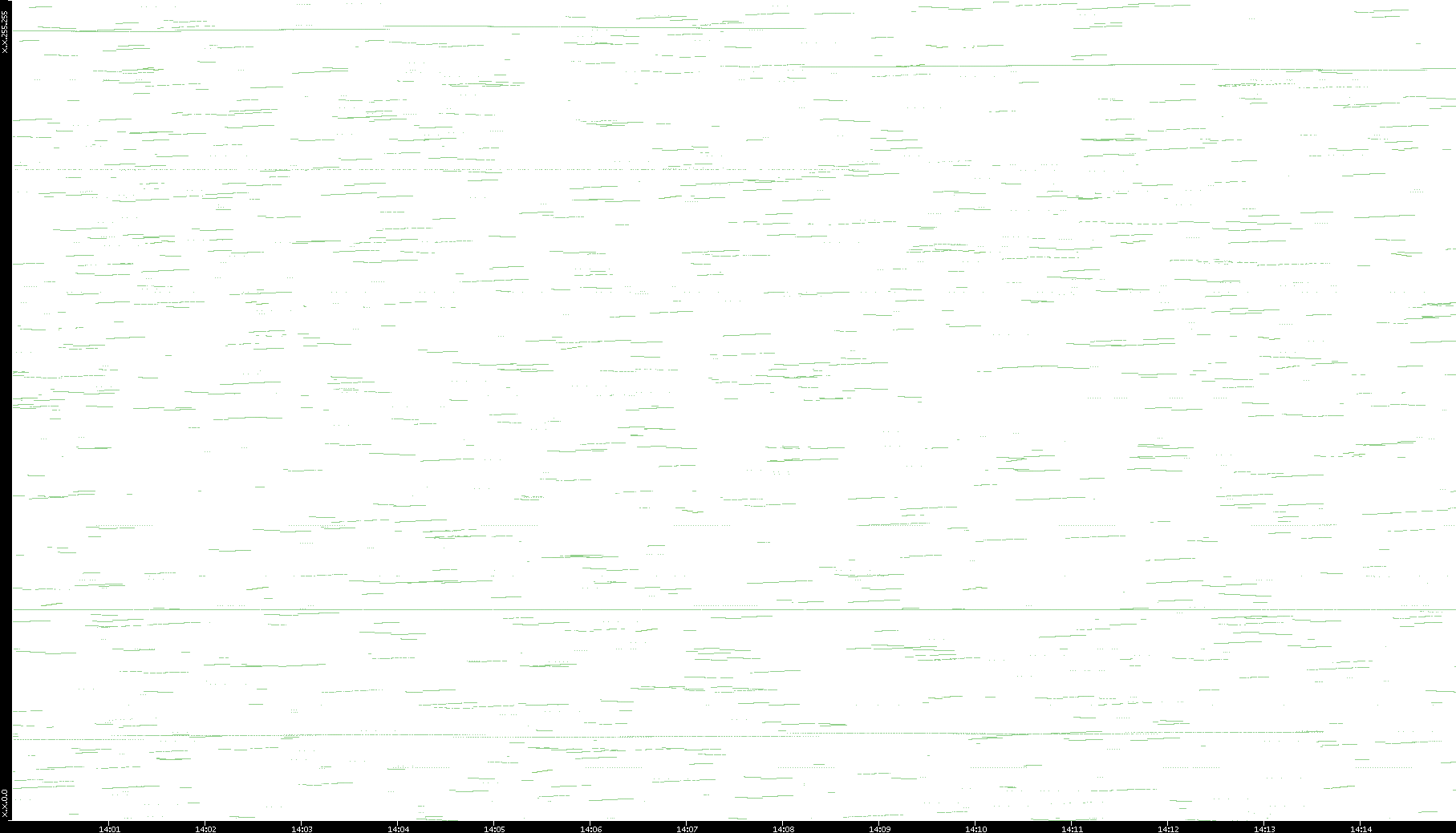 2003/01/14 Dest. IP vs. Time Dest. Port vs. Time Src. IP vs. Time Src. Port vs. Time Nb. of Packets vs. Time Throughput vs. Time Average Packet Size vs. Time Entropy of Port vs. Time