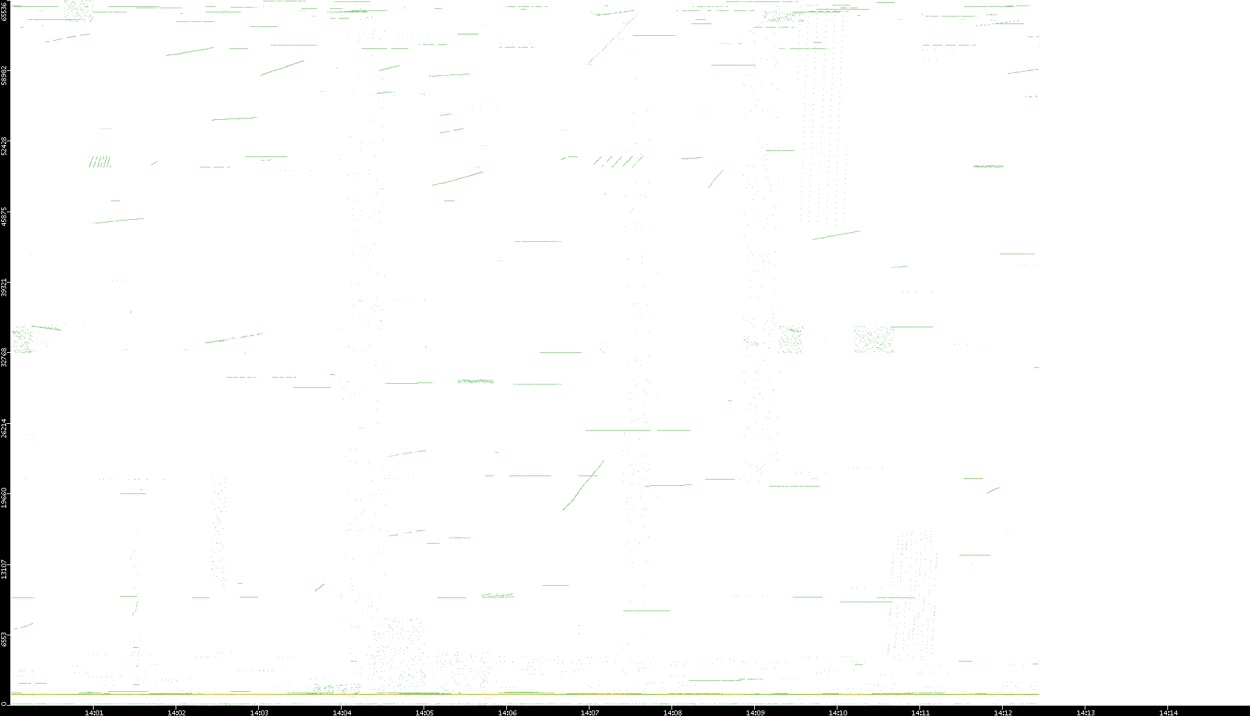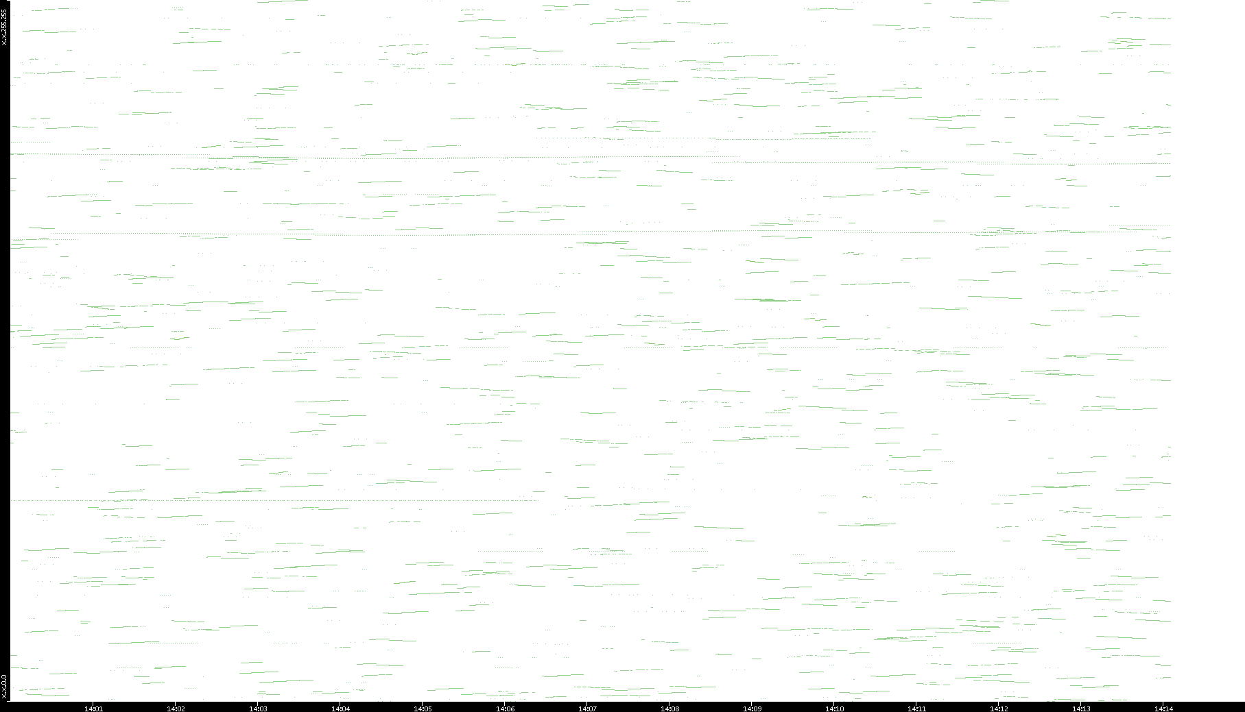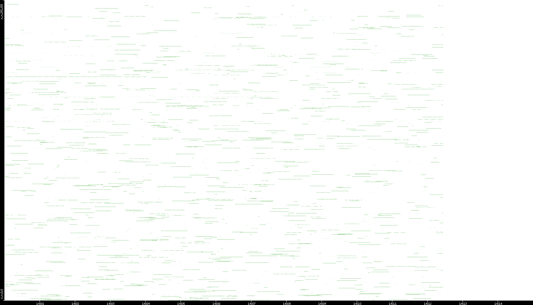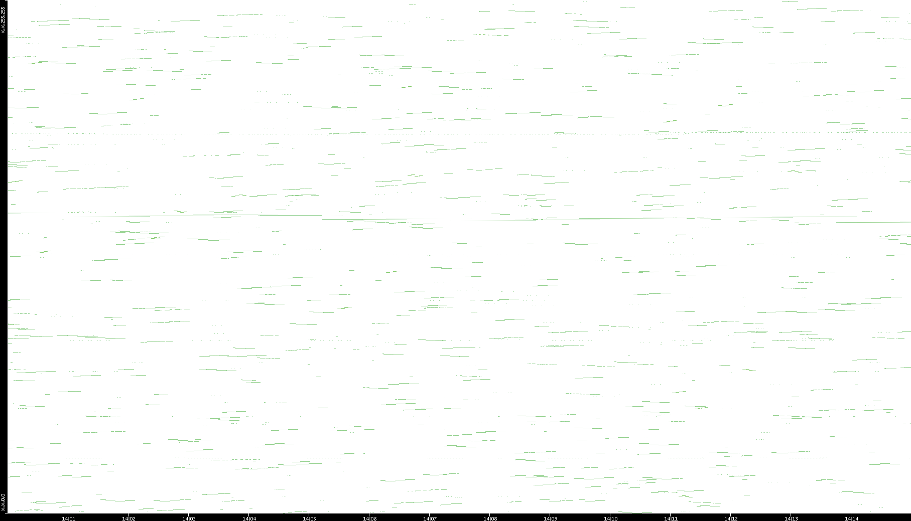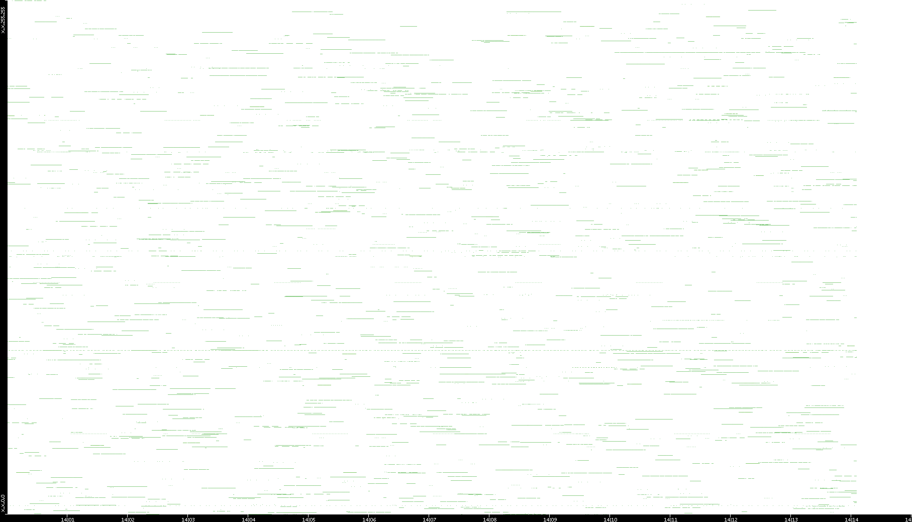 2003/01/14 Dest. IP vs. Time Dest. Port vs. Time Src. IP vs. Time Src. Port vs. Time Nb. of Packets vs. Time Throughput vs. Time Average Packet Size vs. Time Entropy of Port vs. Time