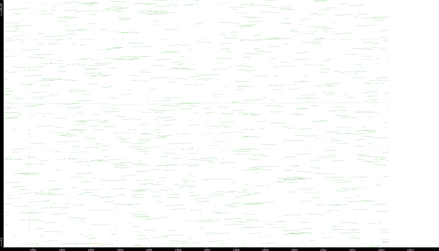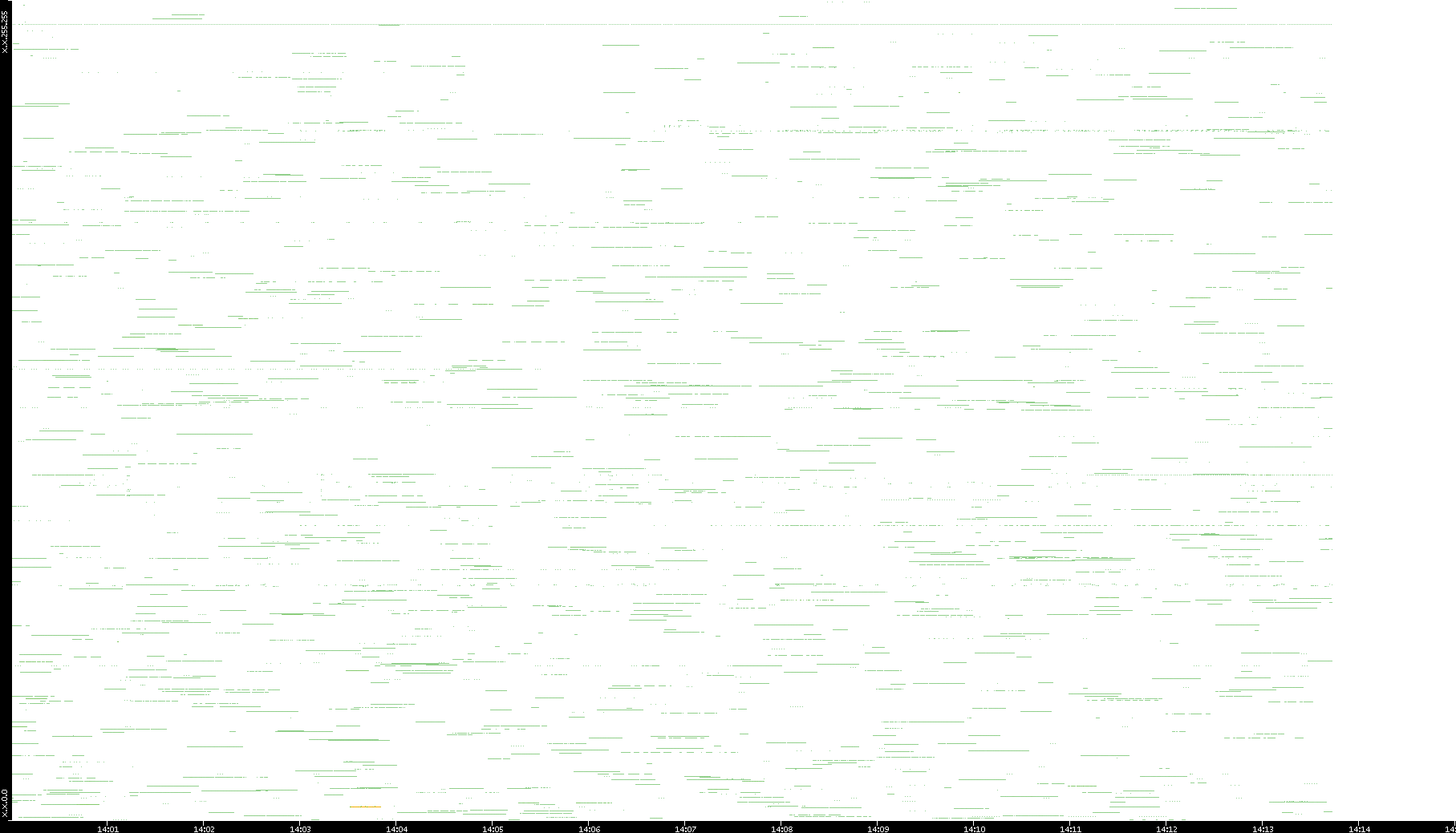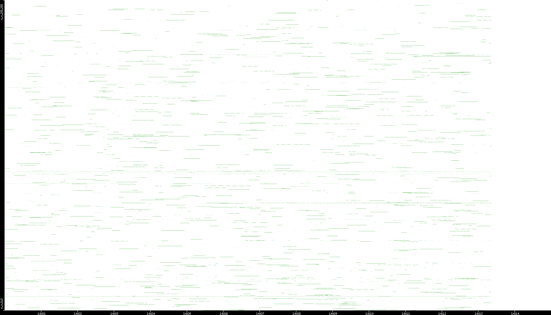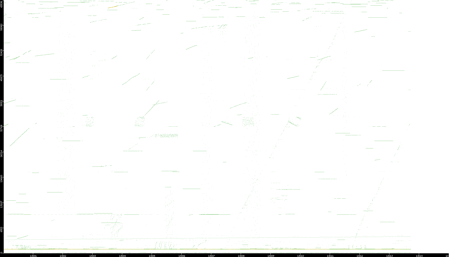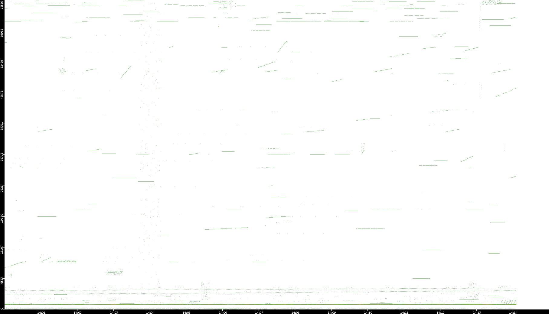 2003/01/14 Dest. IP vs. Time Dest. Port vs. Time Src. IP vs. Time Src. Port vs. Time Nb. of Packets vs. Time Throughput vs. Time Average Packet Size vs. Time Entropy of Port vs. Time