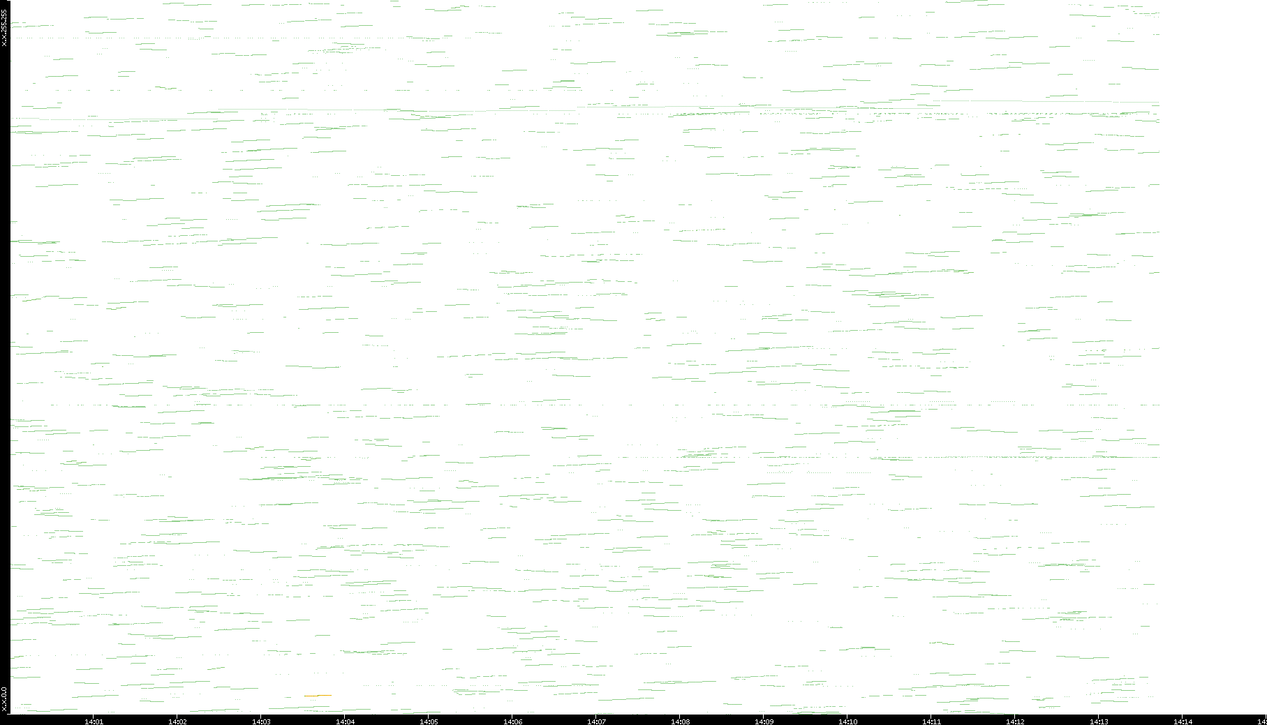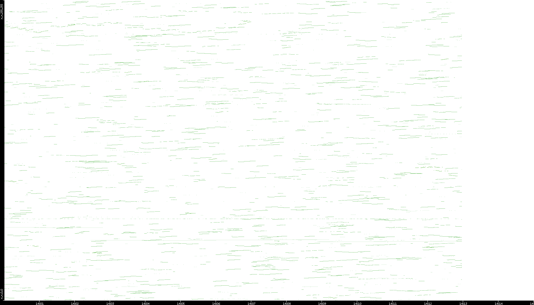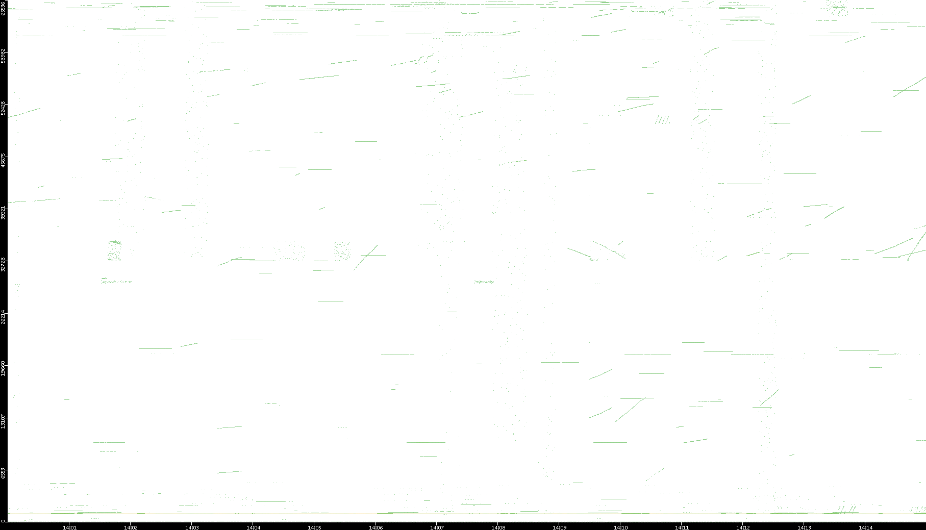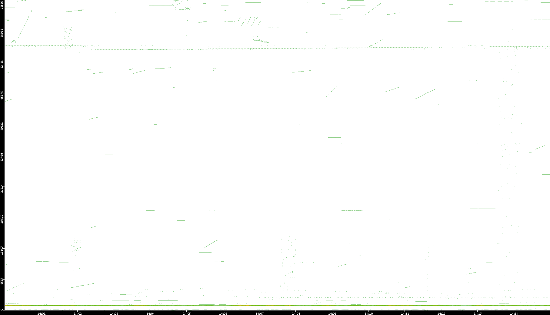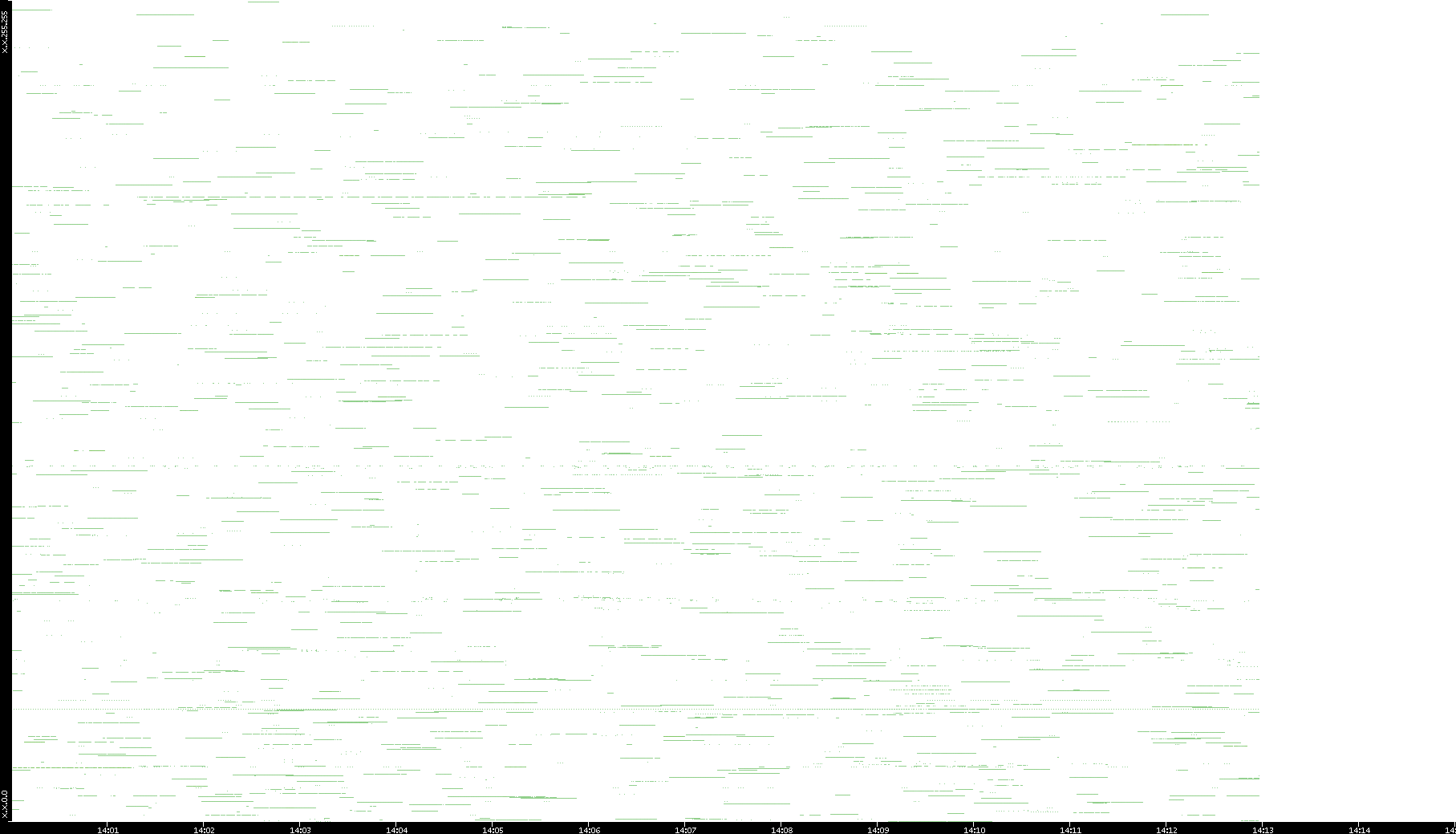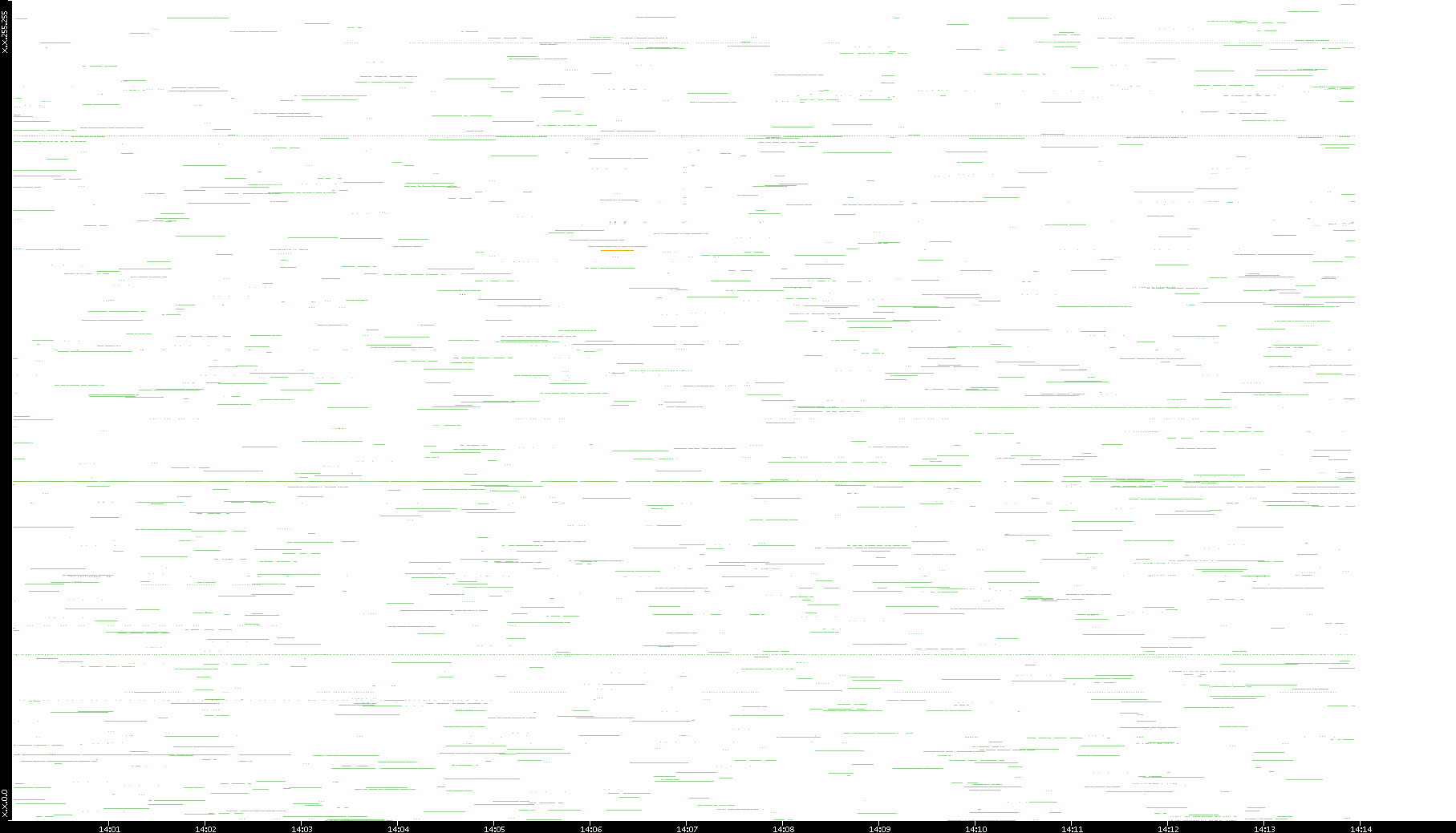 2003/01/14 Dest. IP vs. Time Dest. Port vs. Time Src. IP vs. Time Src. Port vs. Time Nb. of Packets vs. Time Throughput vs. Time Average Packet Size vs. Time Entropy of Port vs. Time