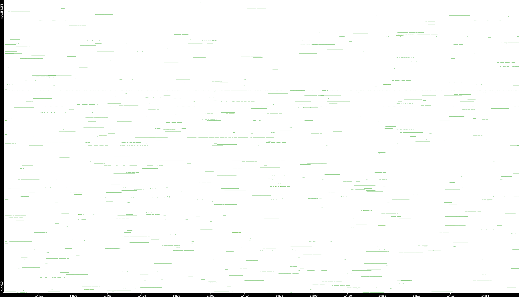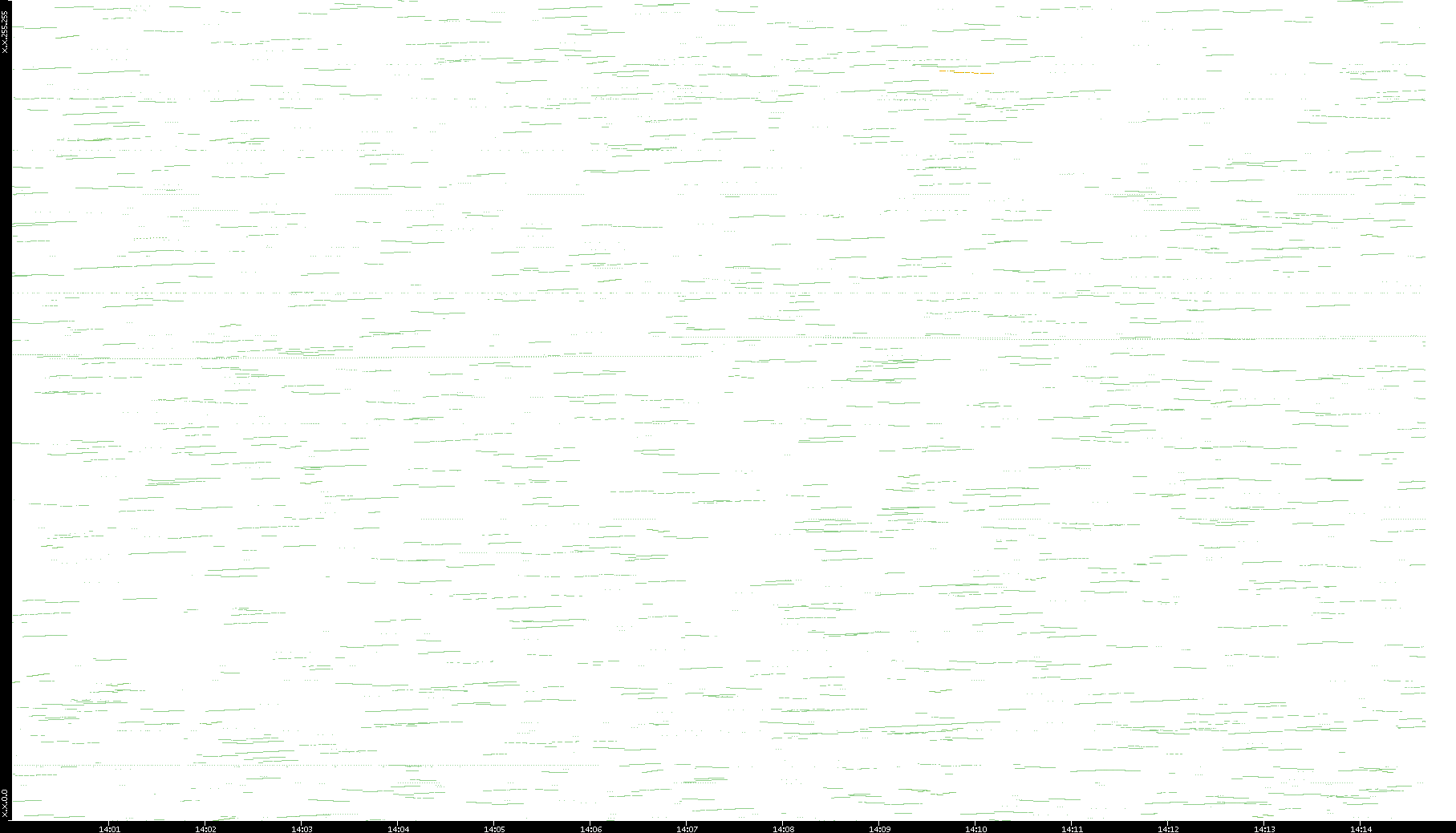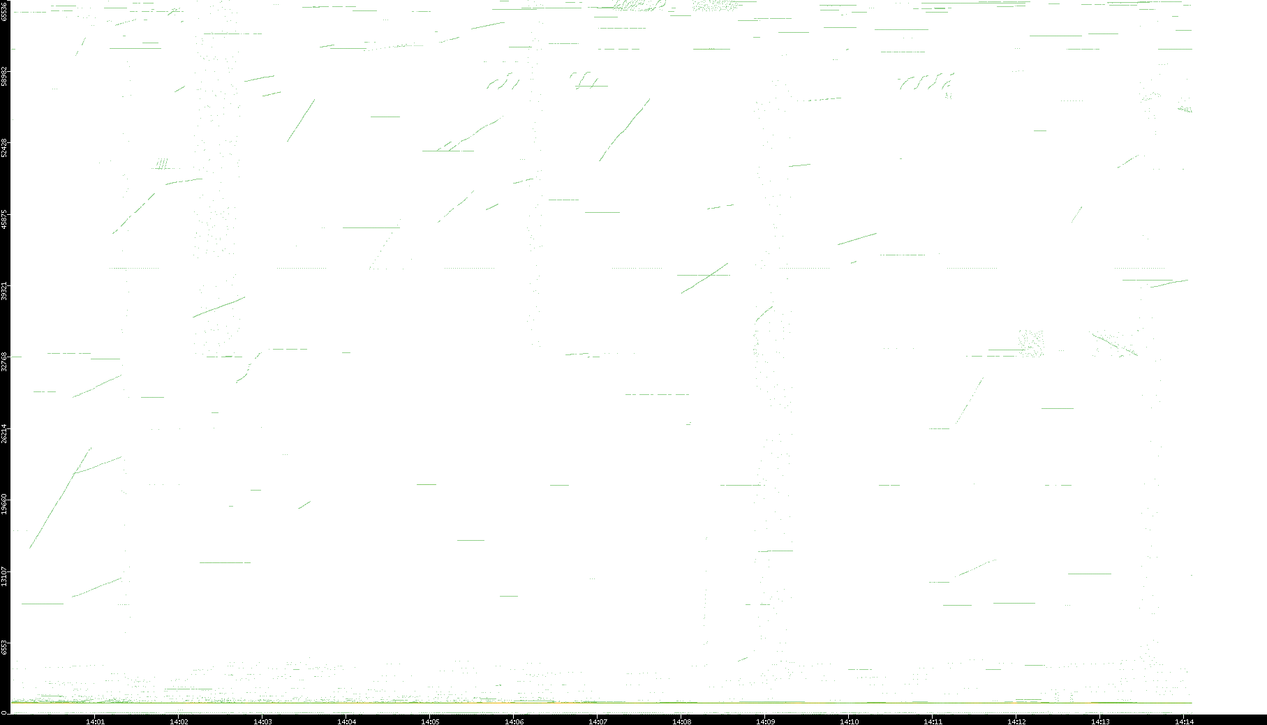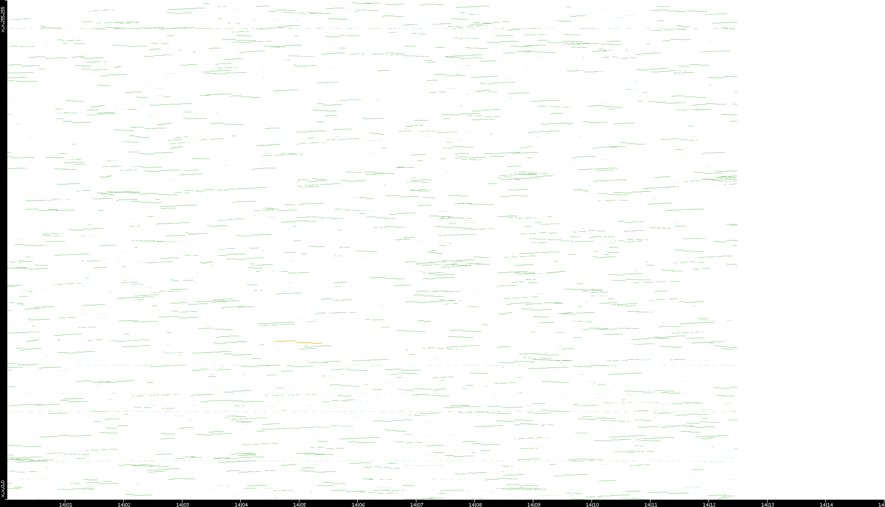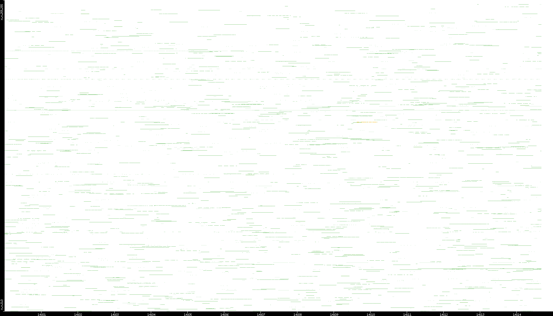 2003/01/14 Dest. IP vs. Time Dest. Port vs. Time Src. IP vs. Time Src. Port vs. Time Nb. of Packets vs. Time Throughput vs. Time Average Packet Size vs. Time Entropy of Port vs. Time