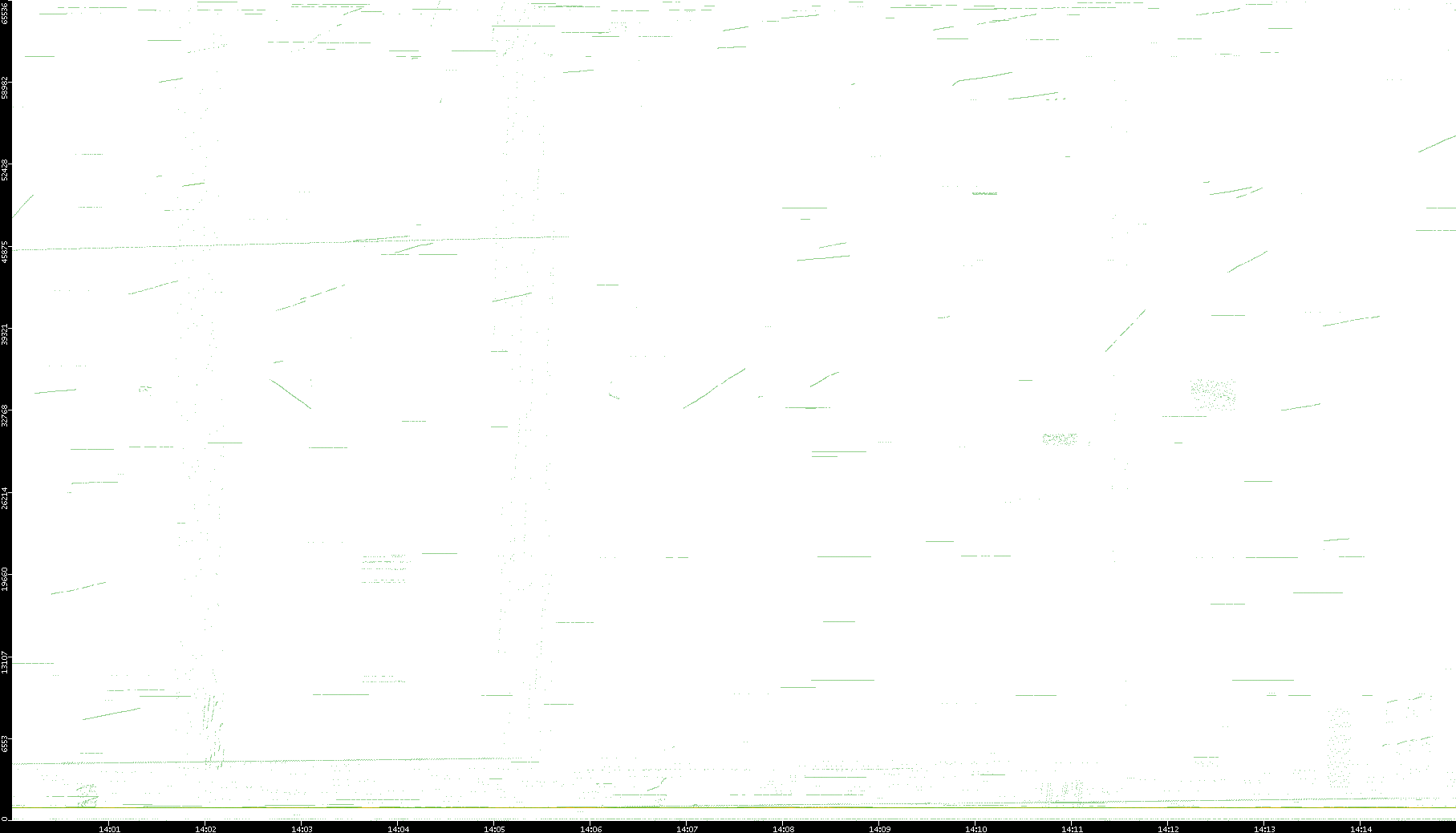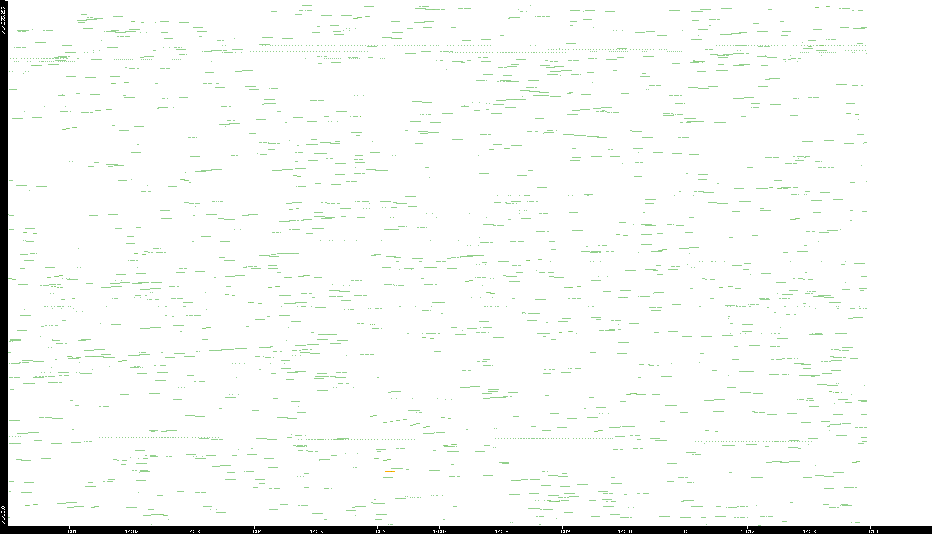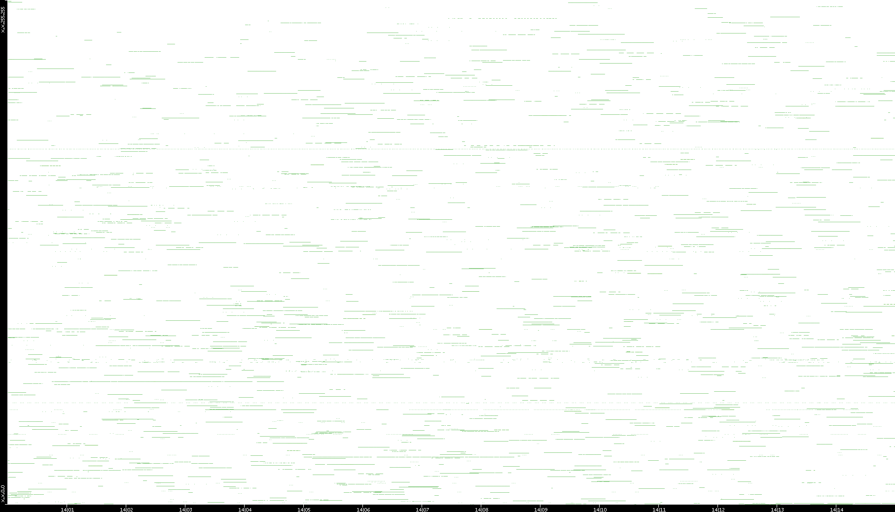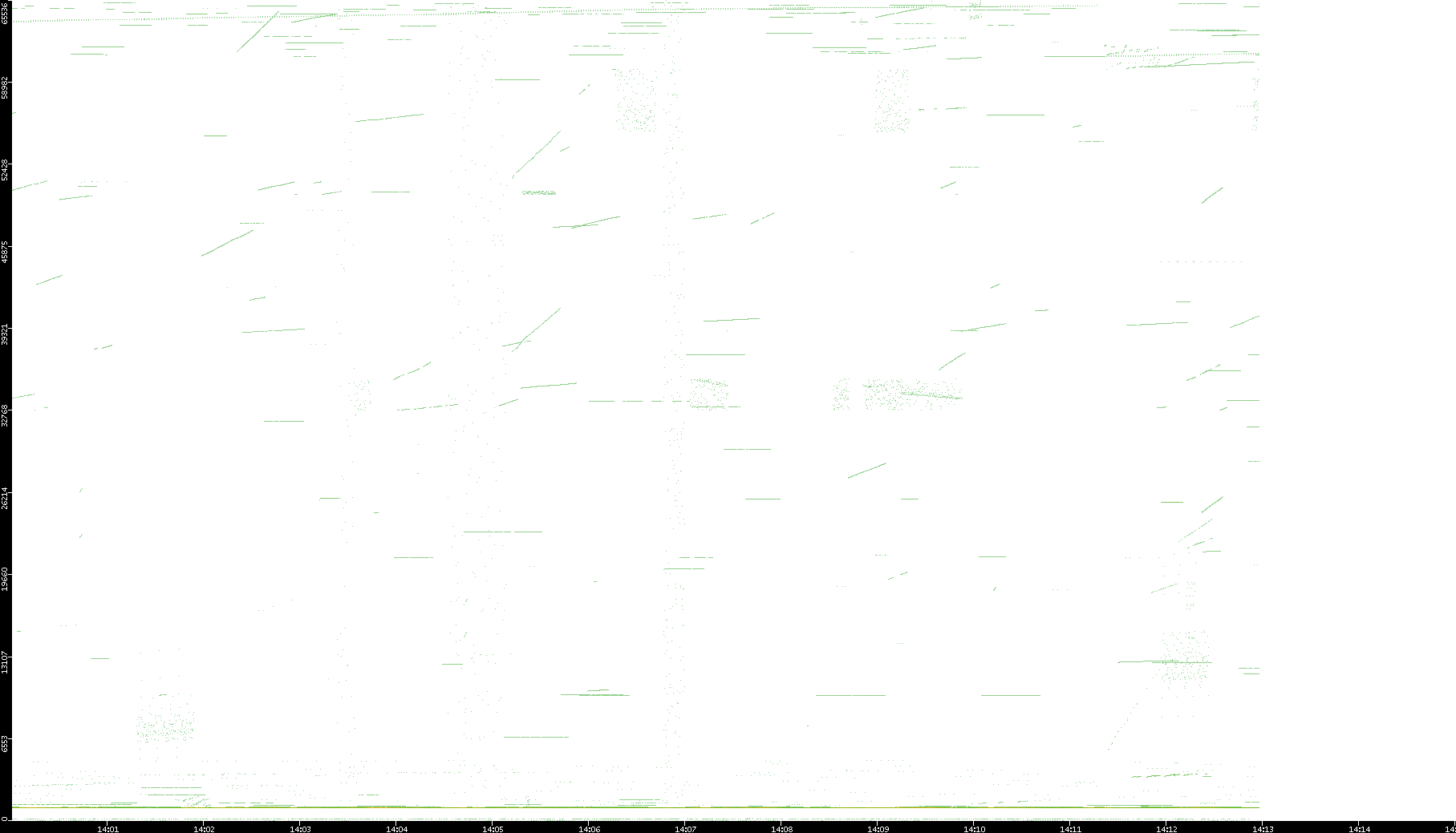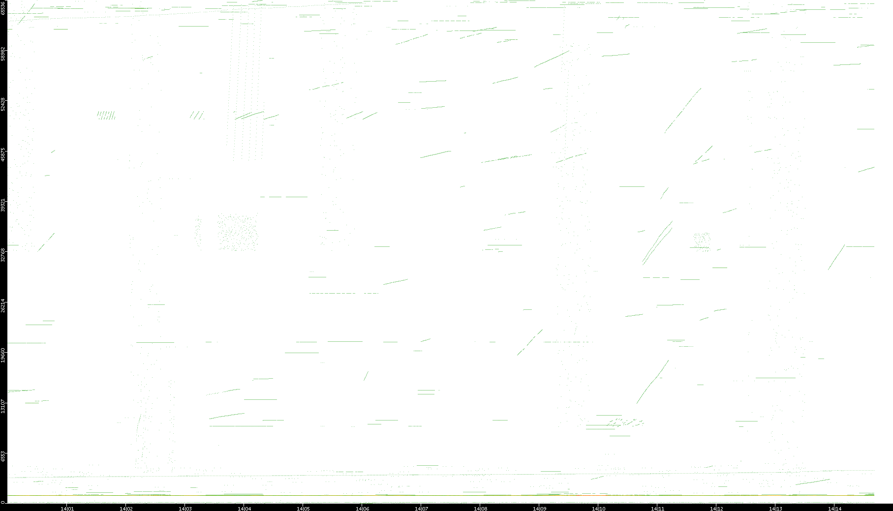 2003/01/14 Dest. IP vs. Time Dest. Port vs. Time Src. IP vs. Time Src. Port vs. Time Nb. of Packets vs. Time Throughput vs. Time Average Packet Size vs. Time Entropy of Port vs. Time