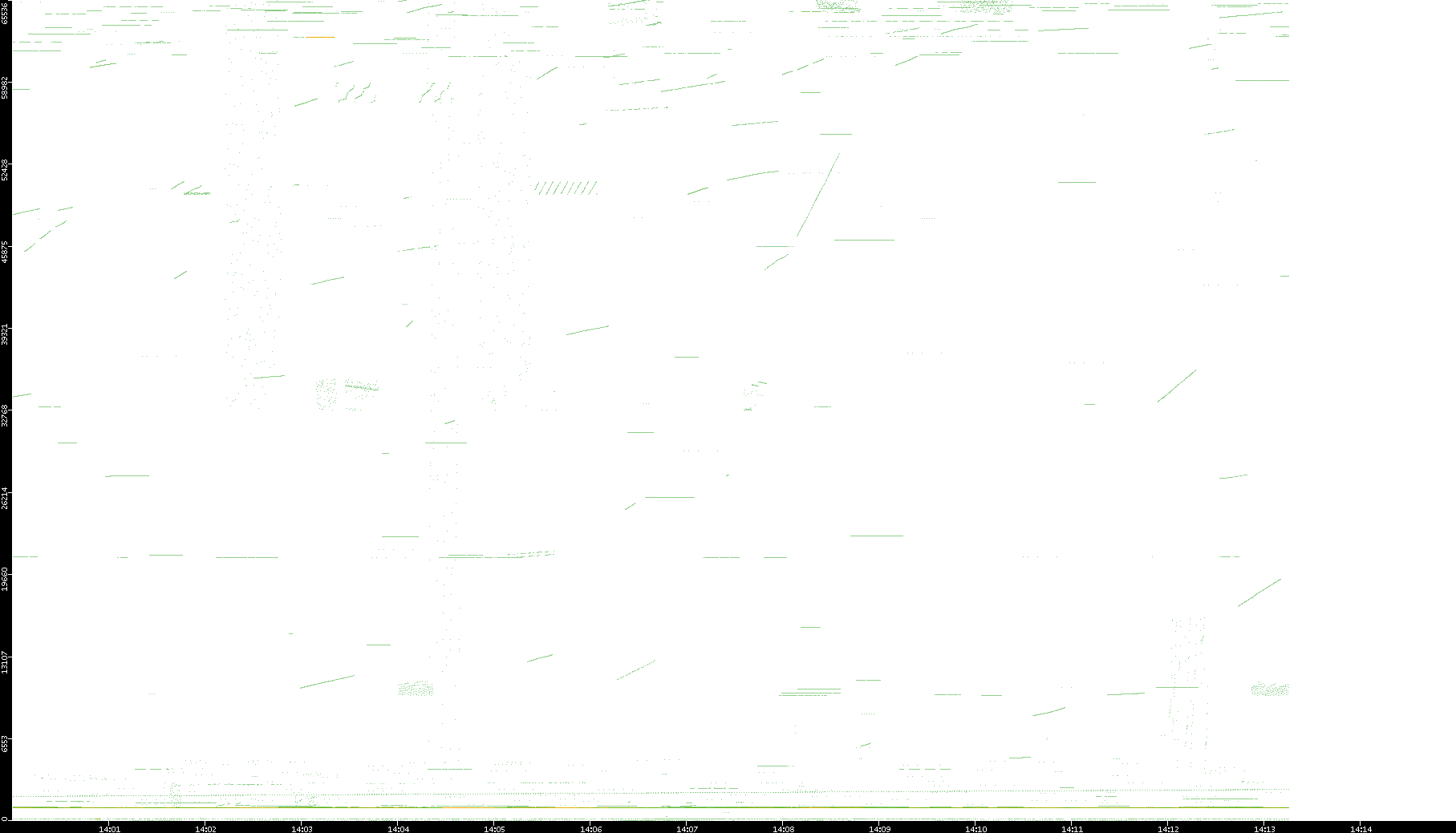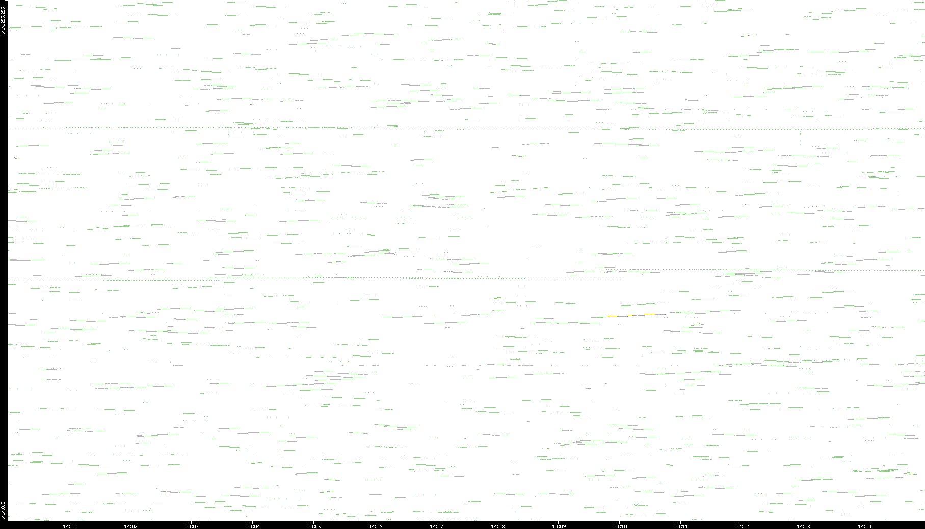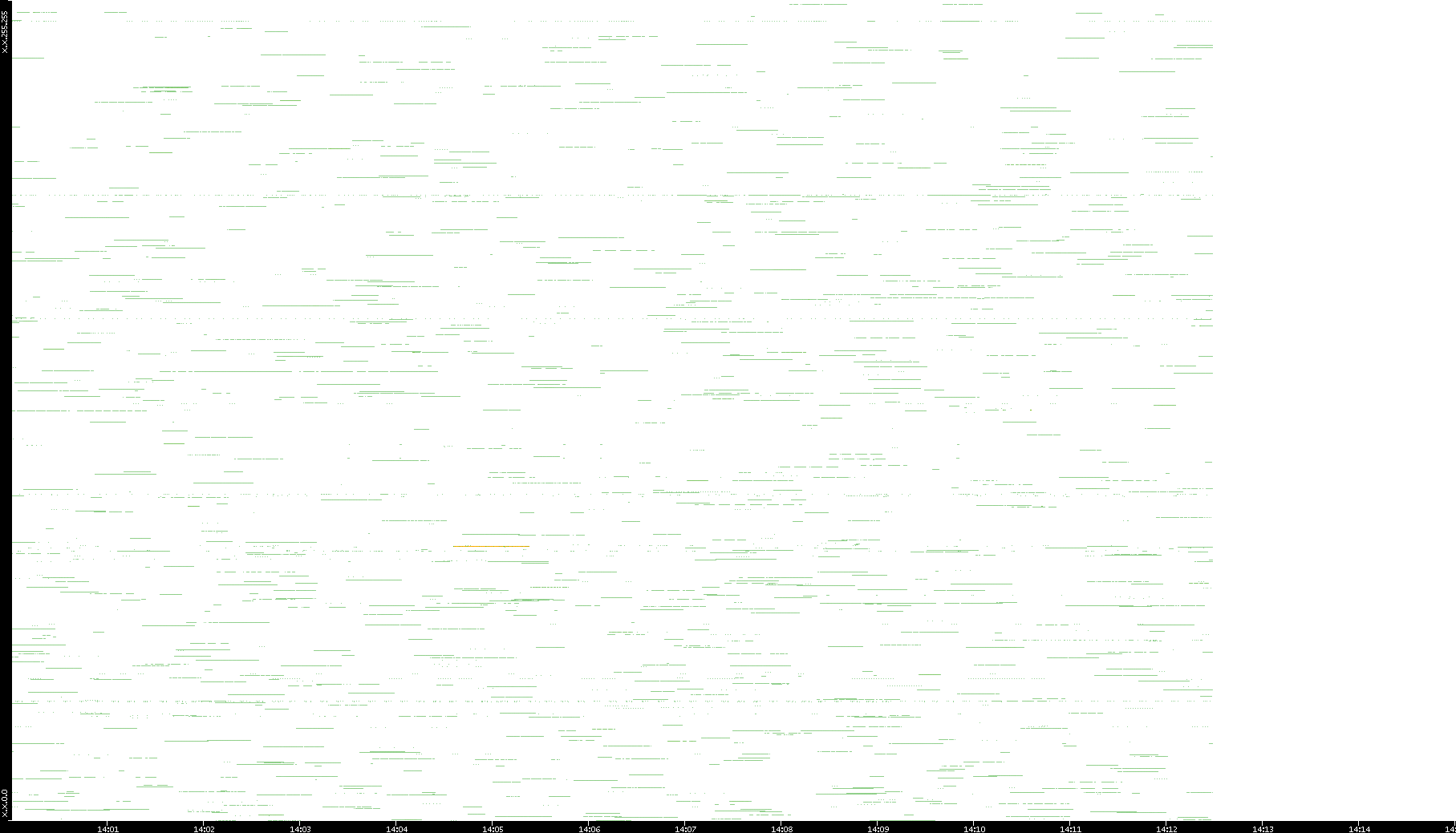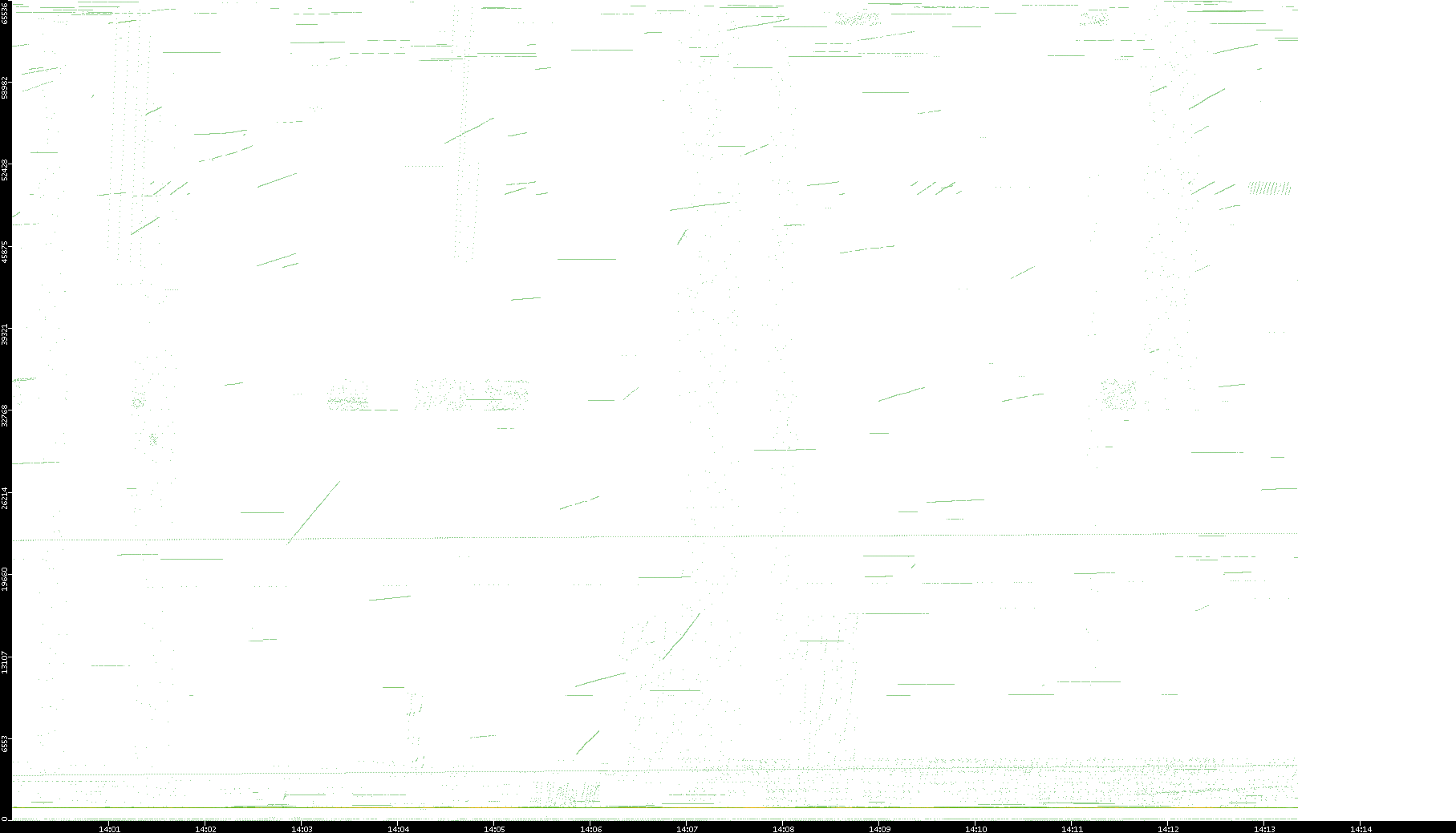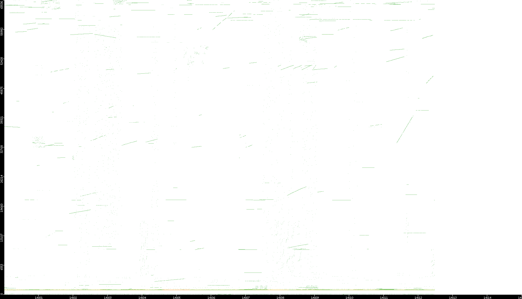 2003/01/14 Dest. IP vs. Time Dest. Port vs. Time Src. IP vs. Time Src. Port vs. Time Nb. of Packets vs. Time Throughput vs. Time Average Packet Size vs. Time Entropy of Port vs. Time