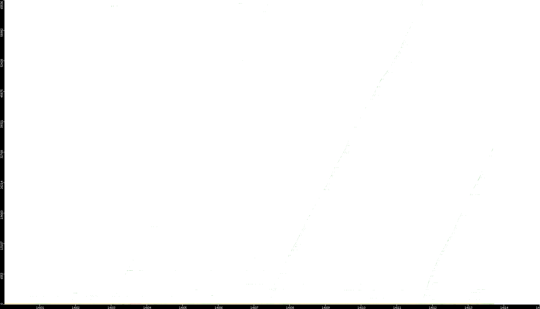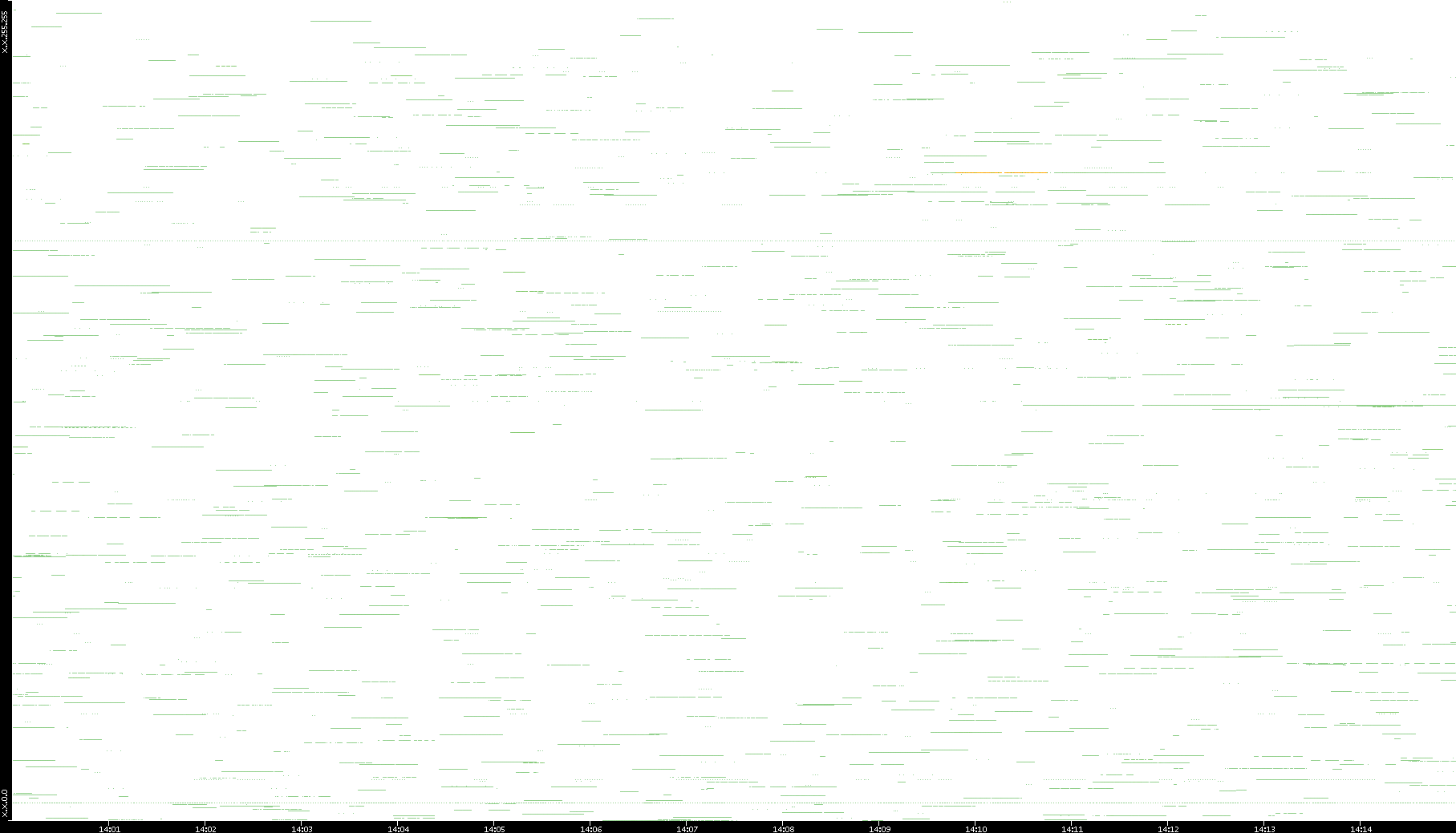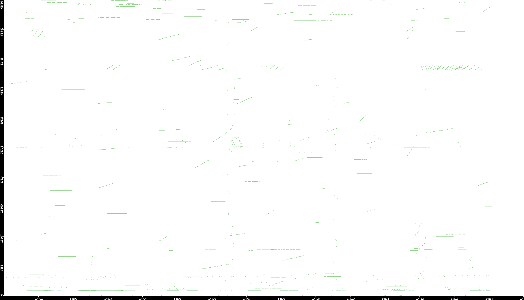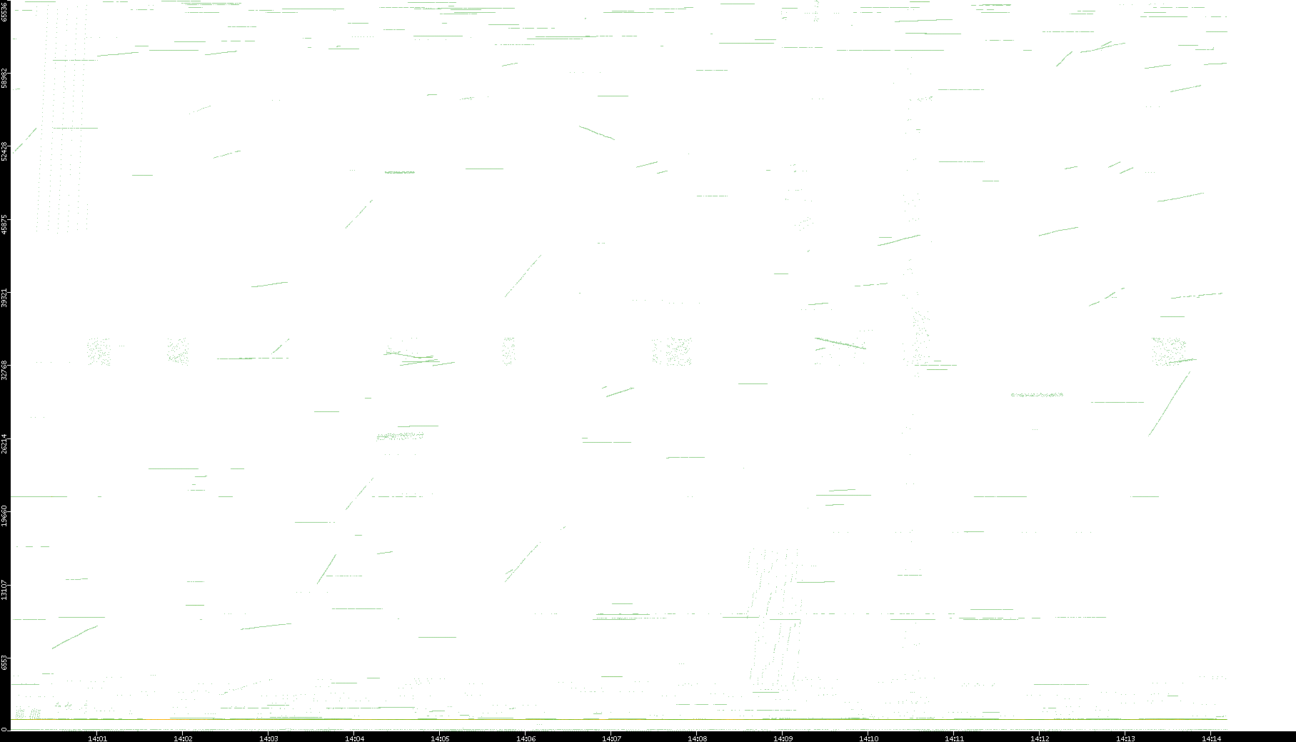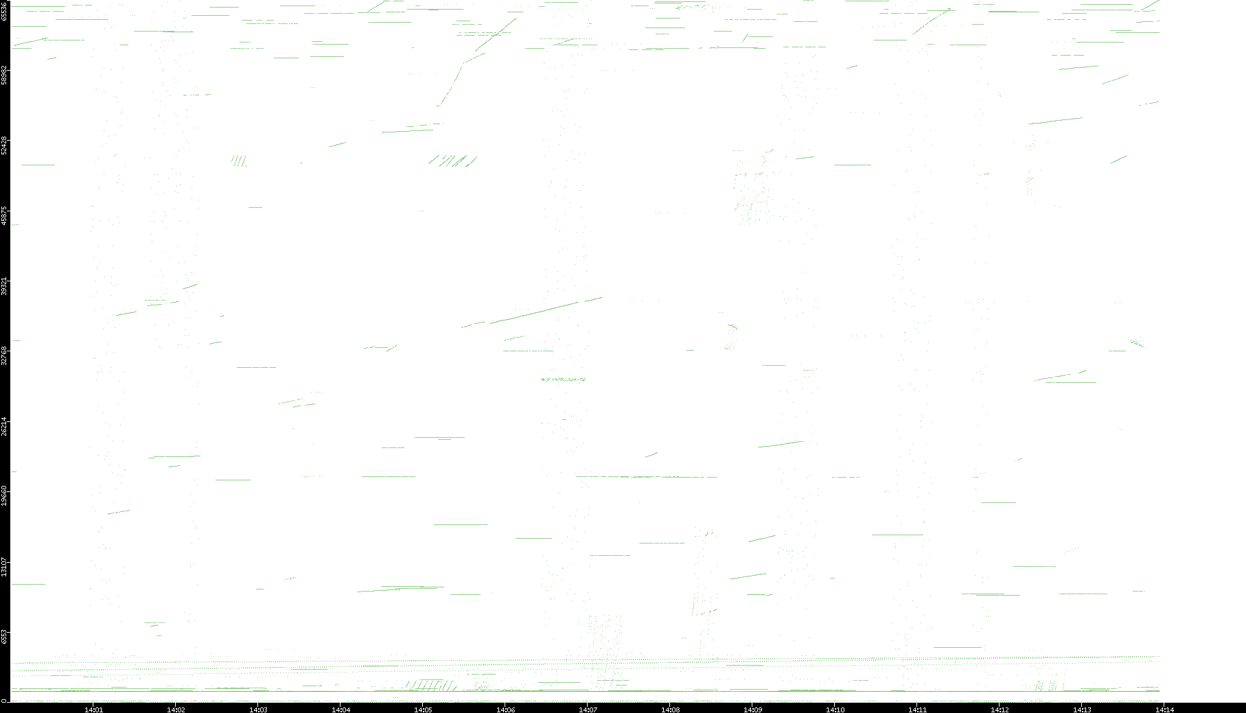 2003/01/14 Dest. IP vs. Time Dest. Port vs. Time Src. IP vs. Time Src. Port vs. Time Nb. of Packets vs. Time Throughput vs. Time Average Packet Size vs. Time Entropy of Port vs. Time