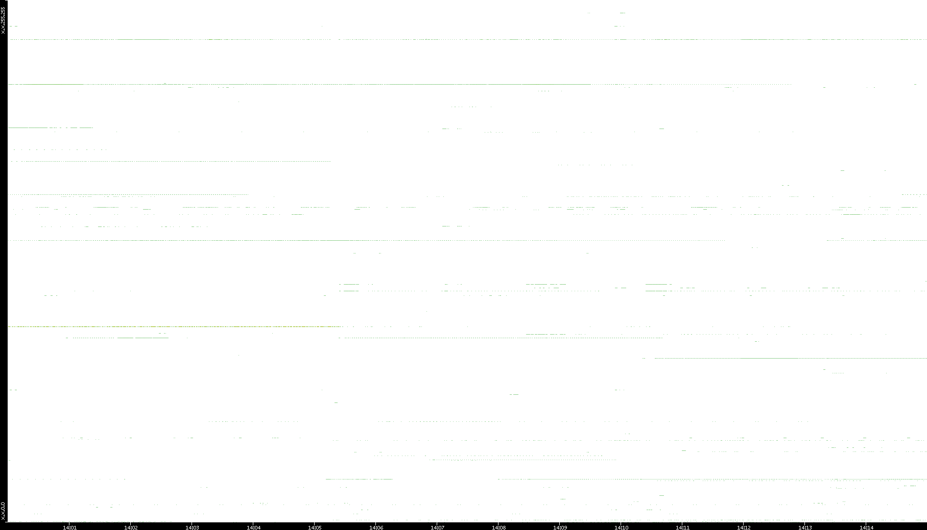 | Date | Dest. IP vs. Time | Dest. Port vs. Time | Src. IP vs. Time | Src. Port vs. Time | Nb. of Packets vs. Time | Throughput vs. Time | Average Packet Size vs. Time | Entropy of Port vs. Time |